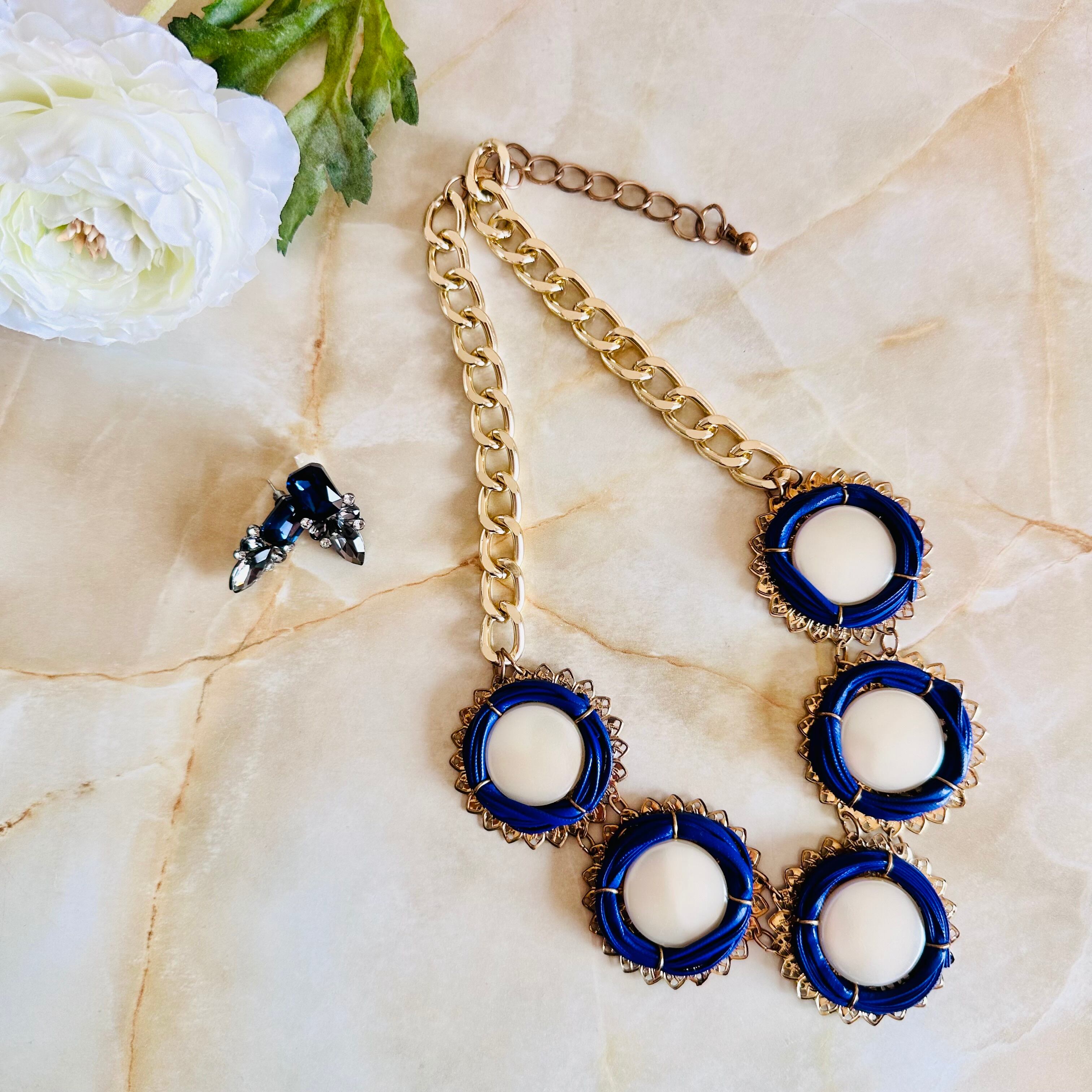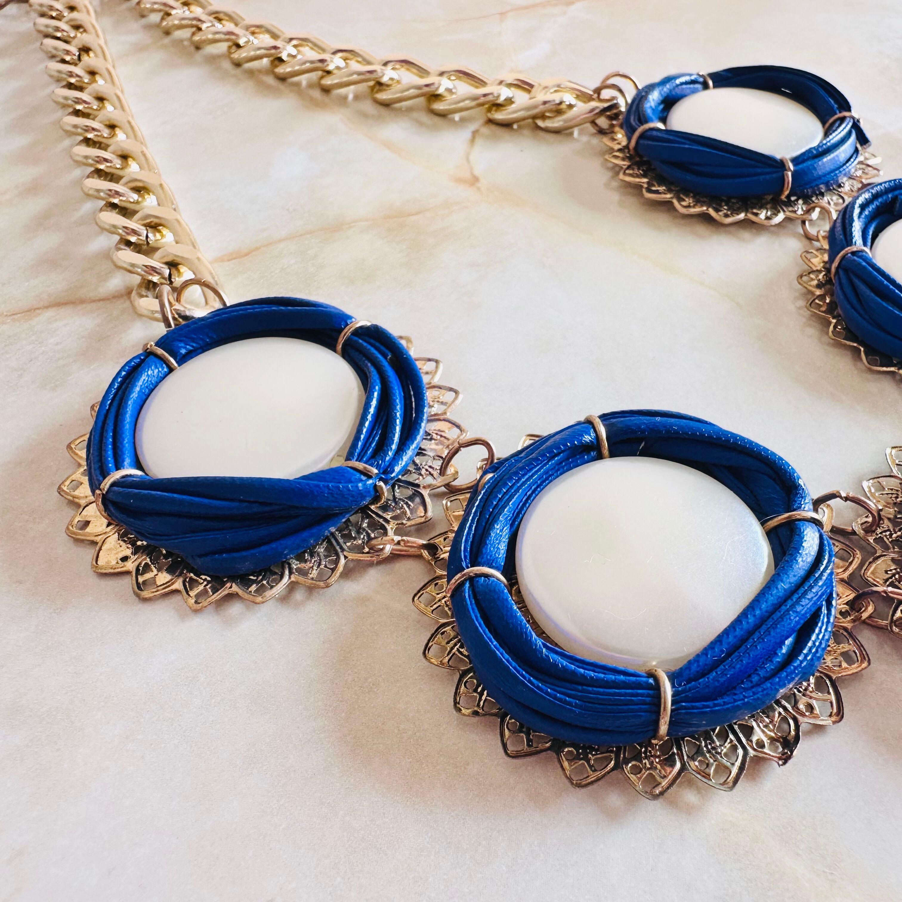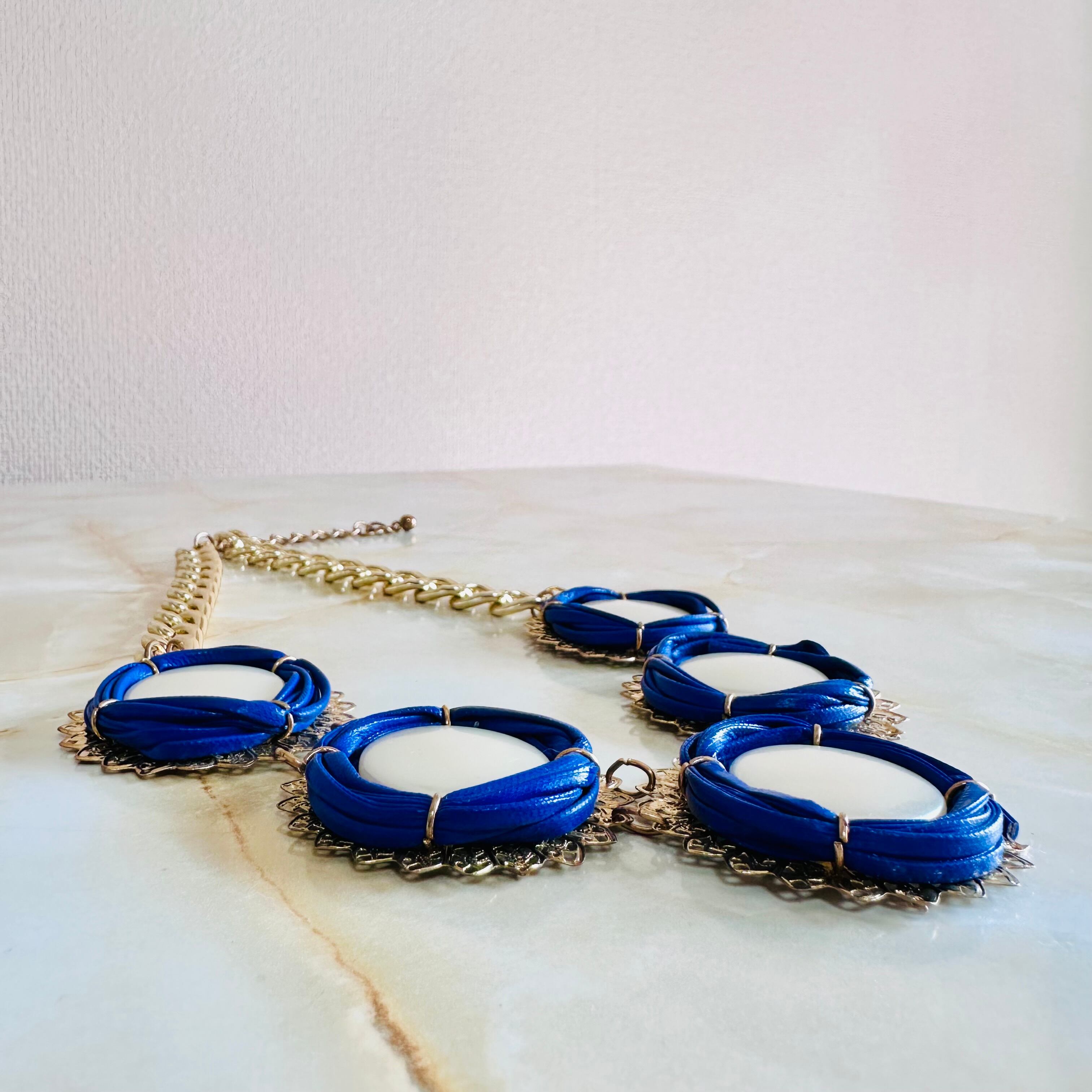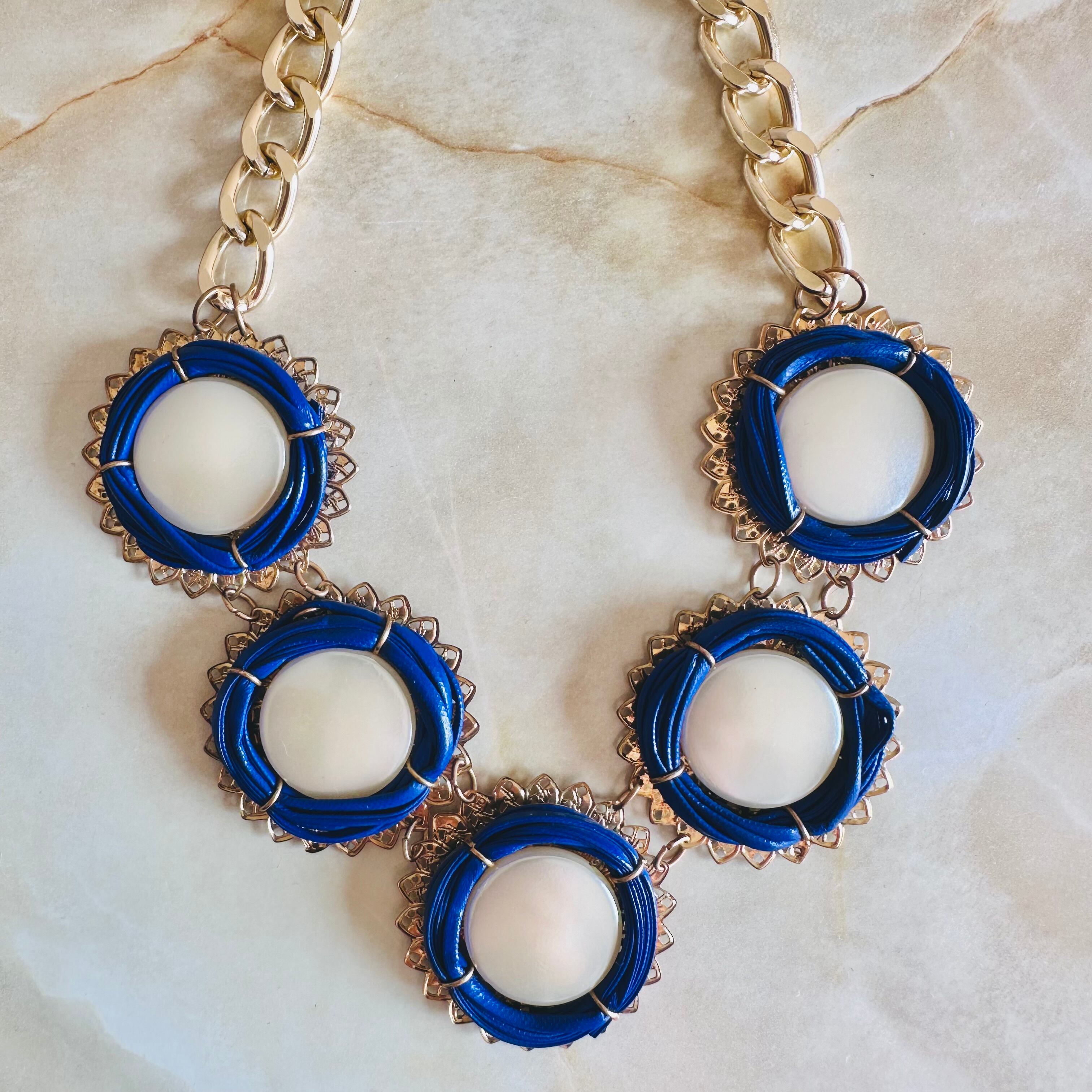 パールカラー、ブルー✖️アンティークゴールドカラーのネックレスです。