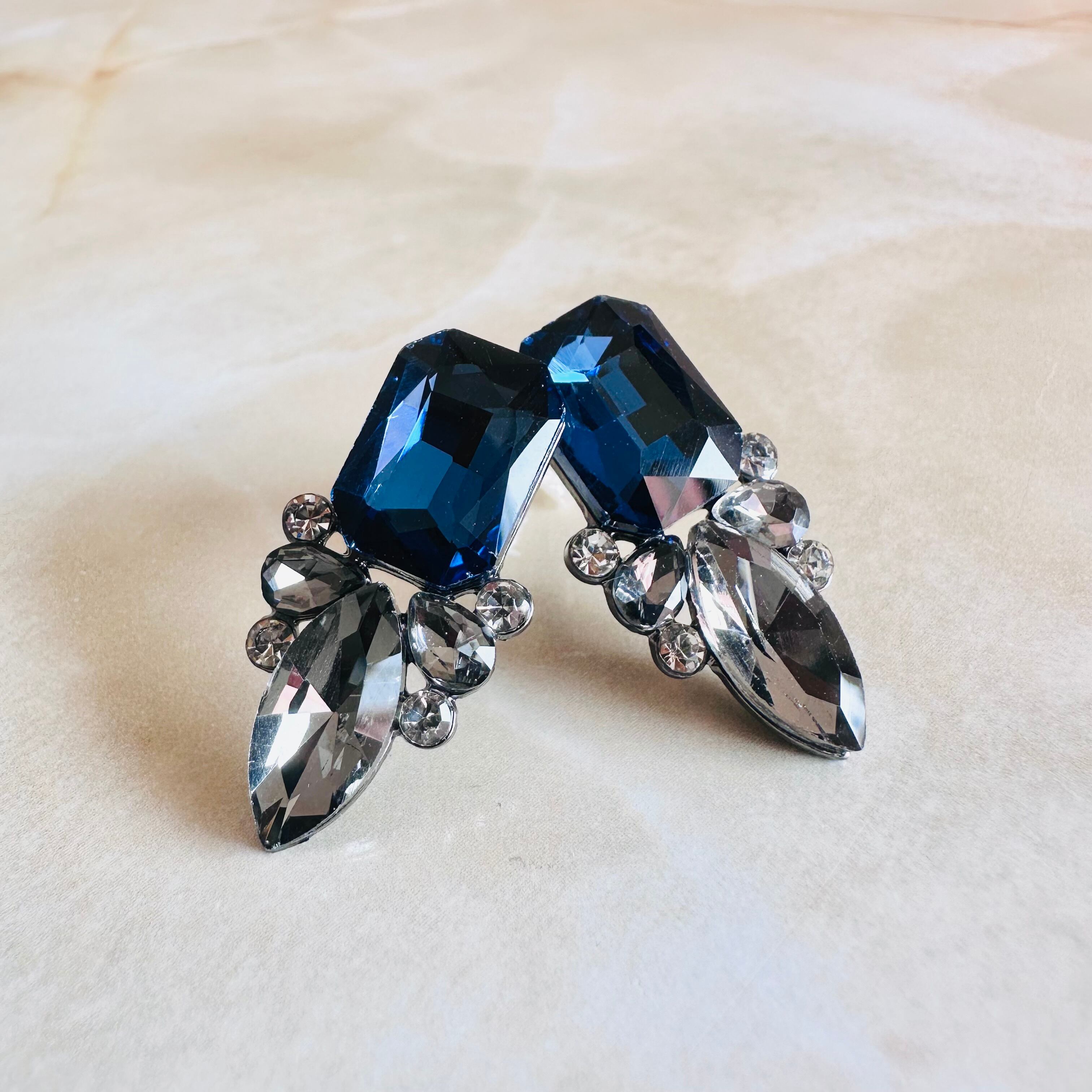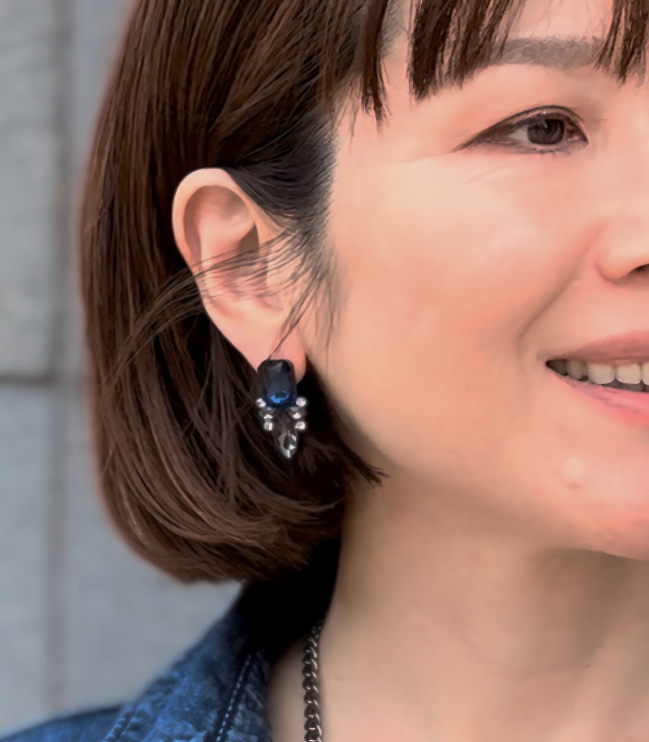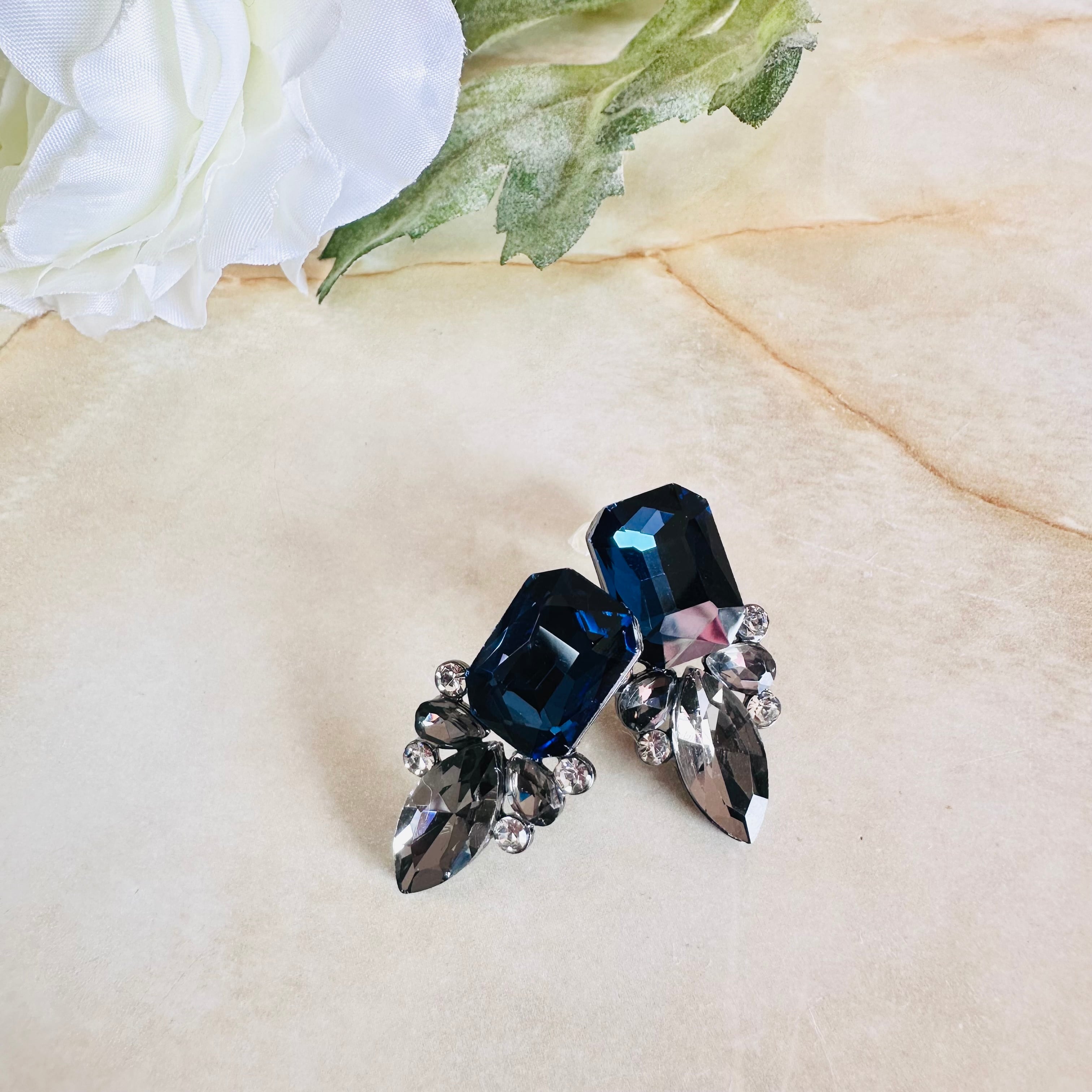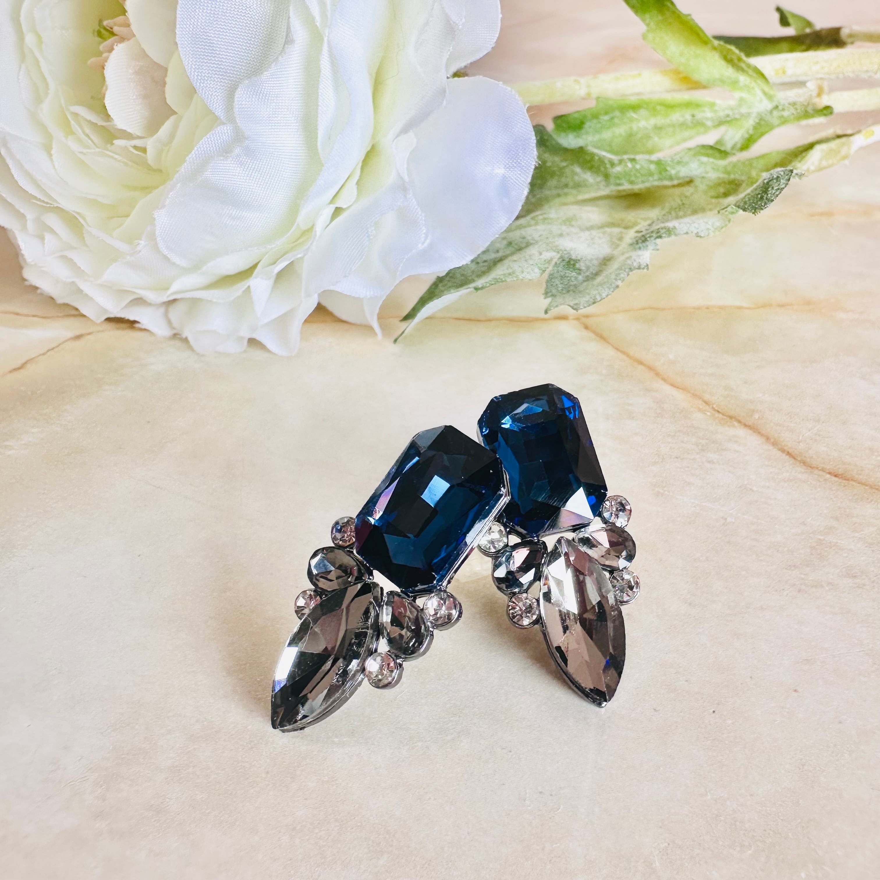 ネイビー、グレー、クリア✖️ブラックシルバーのピアスです。