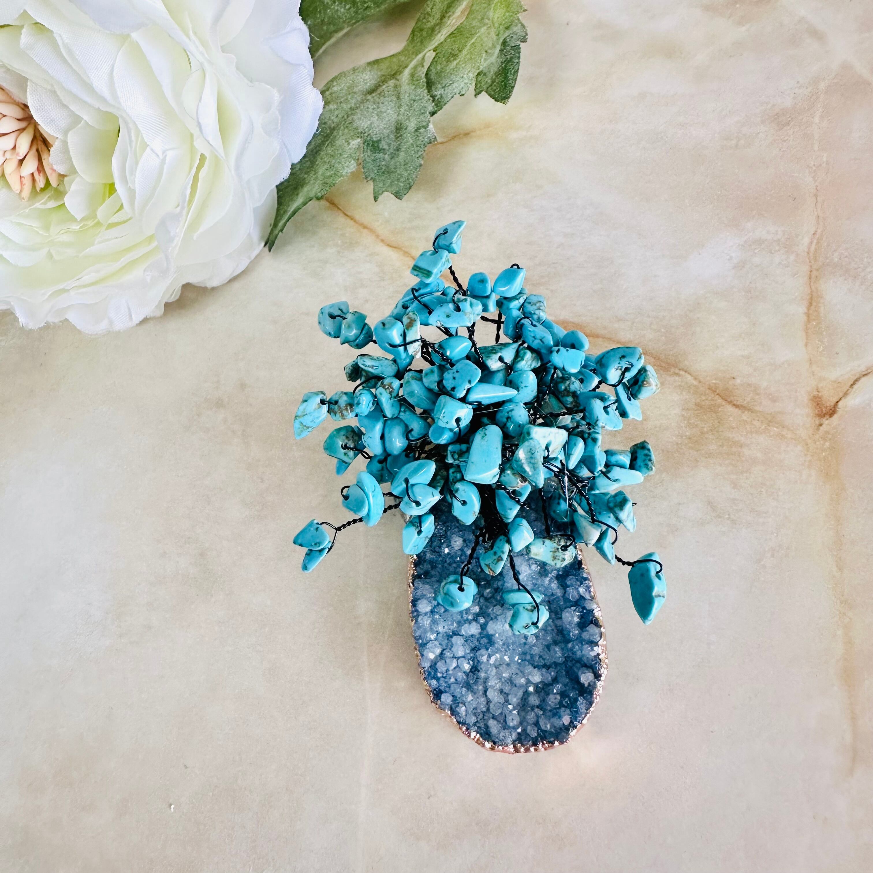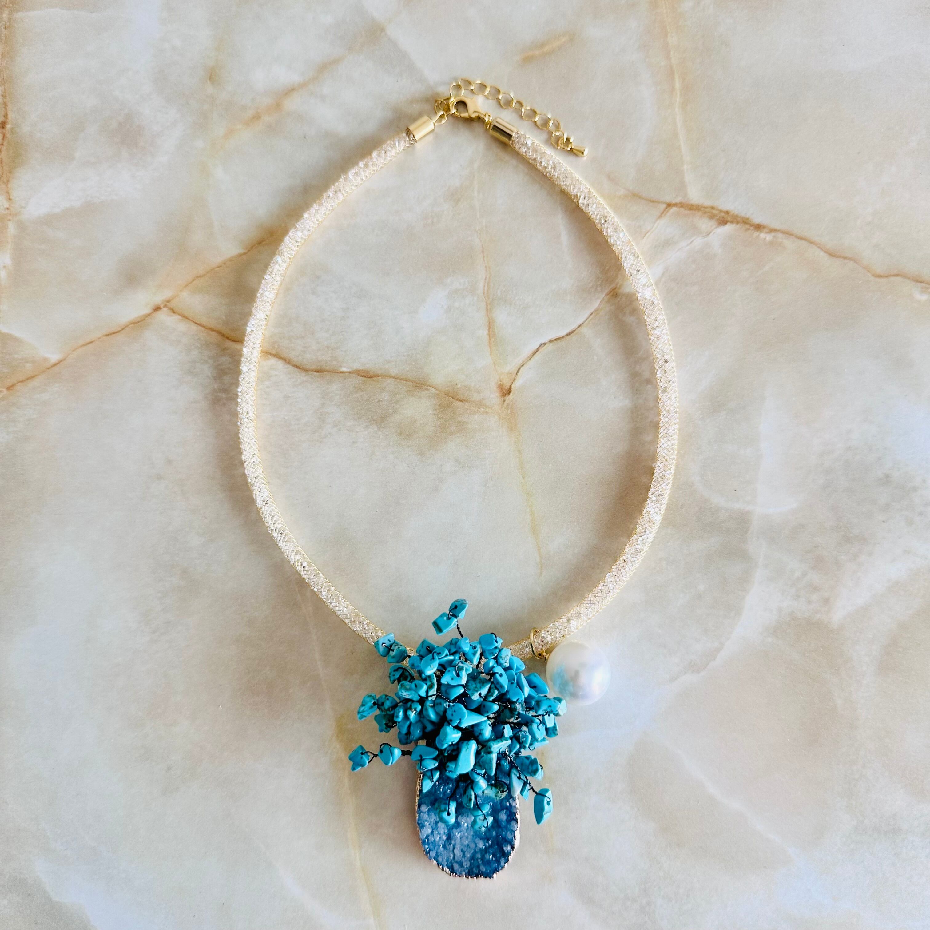 美しい天然石とターコイズストーンを使用した、世界に一つだけのブローチです。