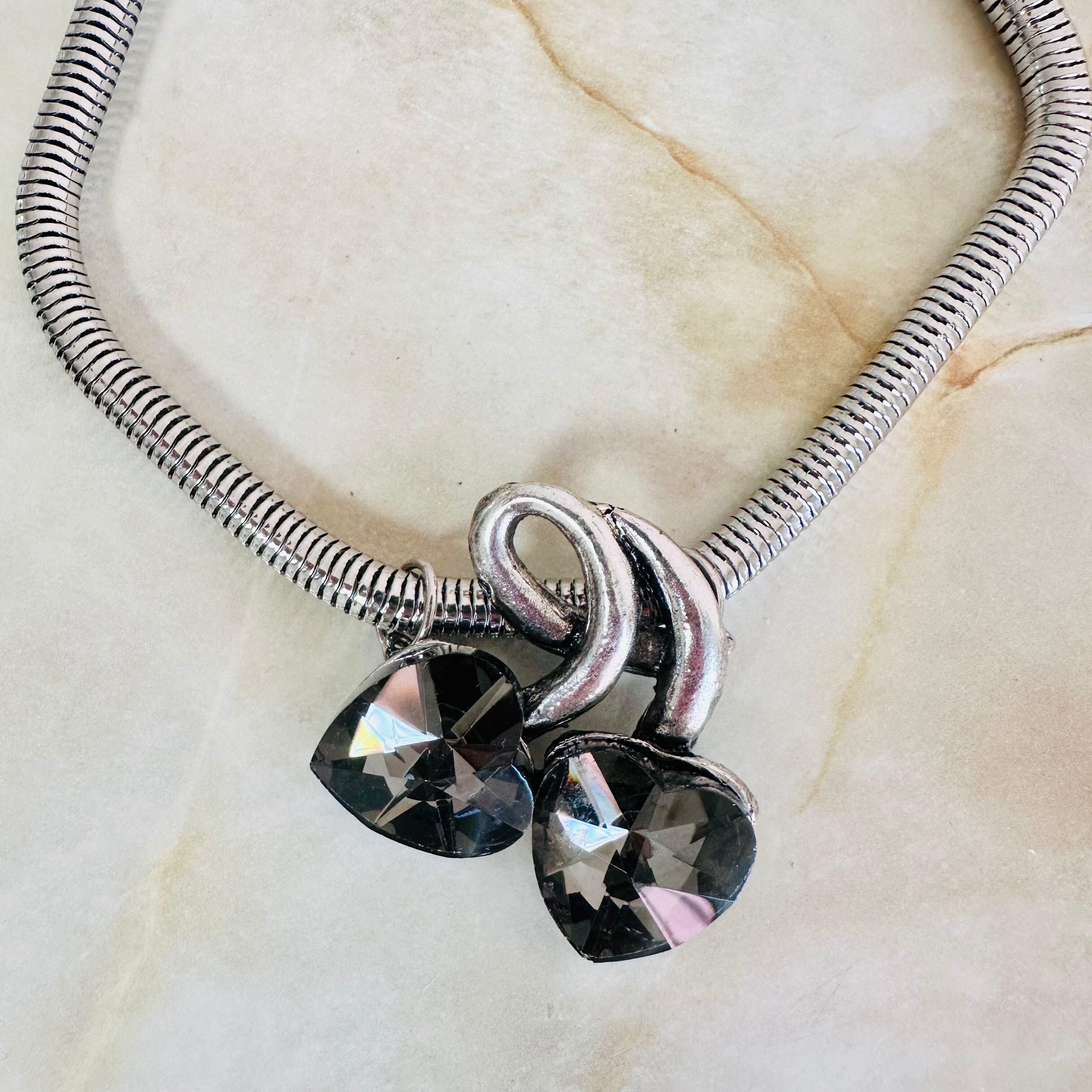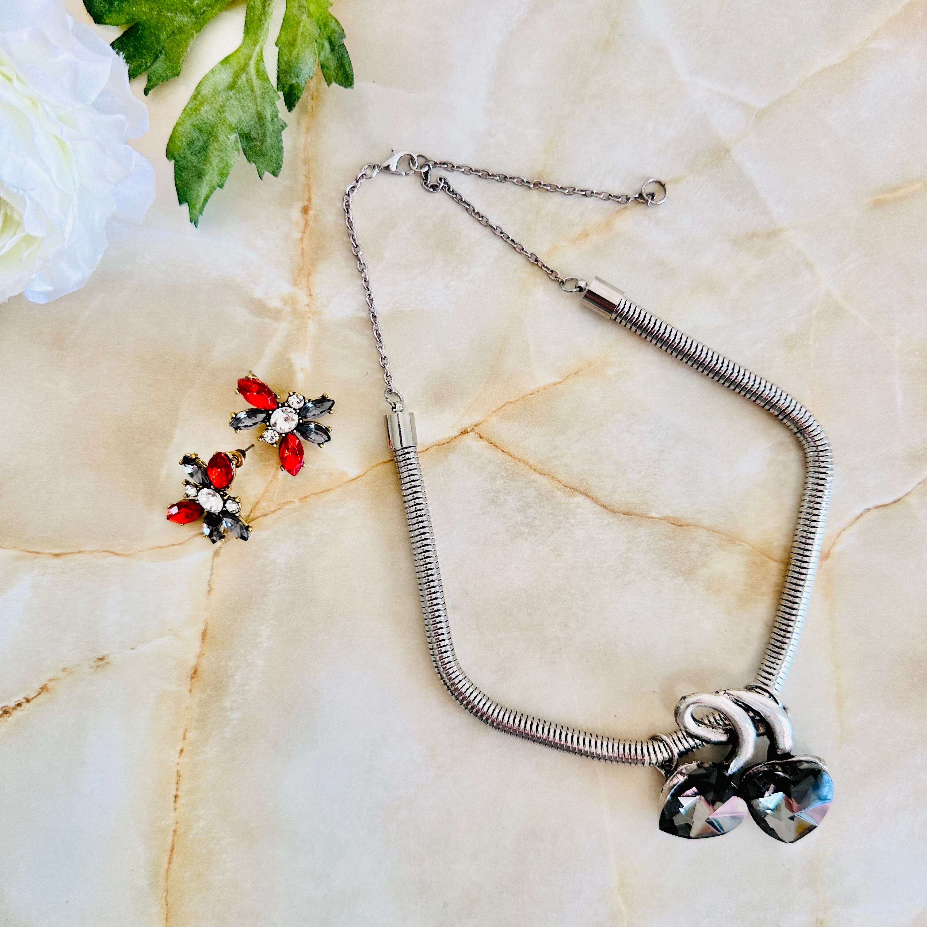 大きめハートのガラスパーツをチェリーのモチーフにし、アンティークシルバーカラーで大人っぽくしあげました。