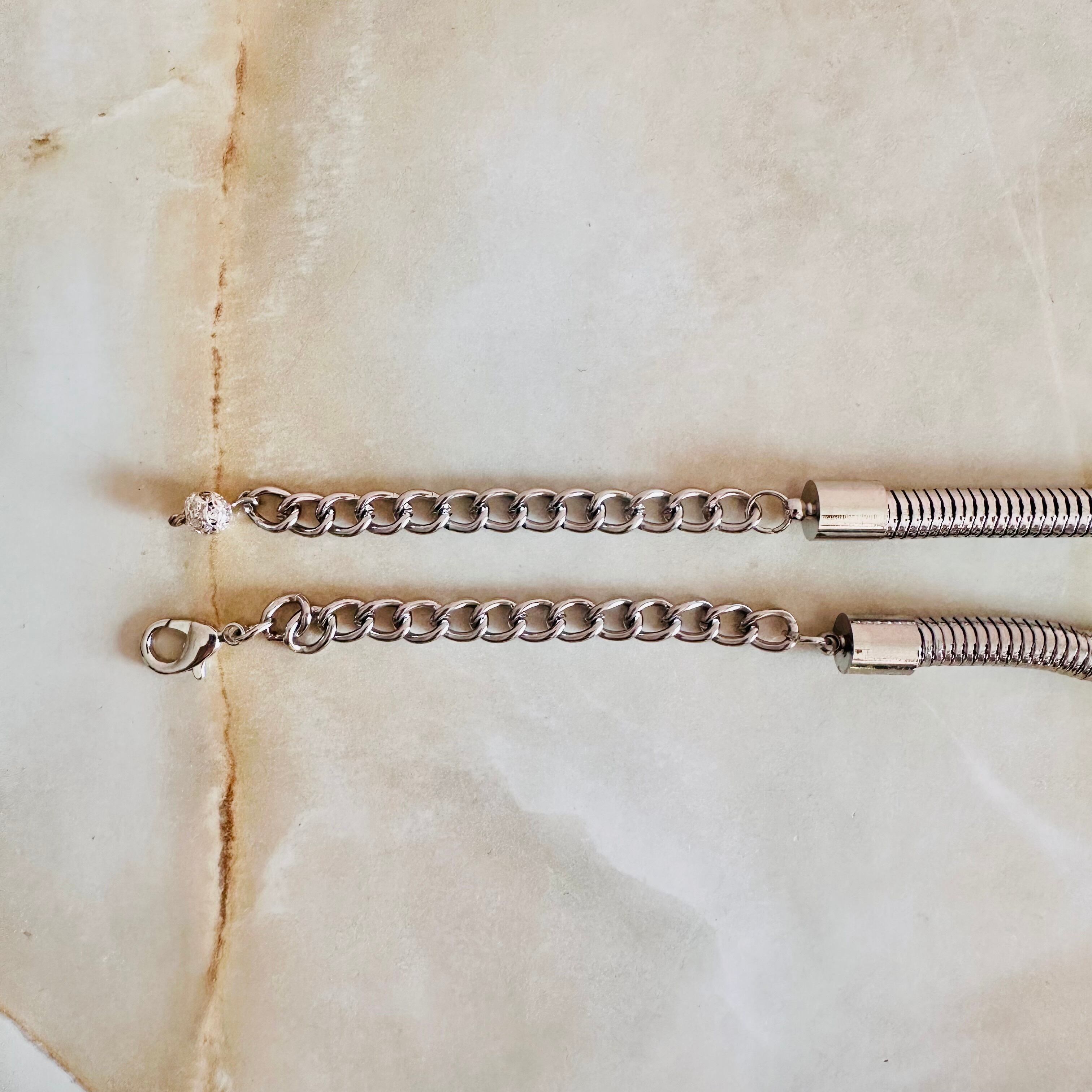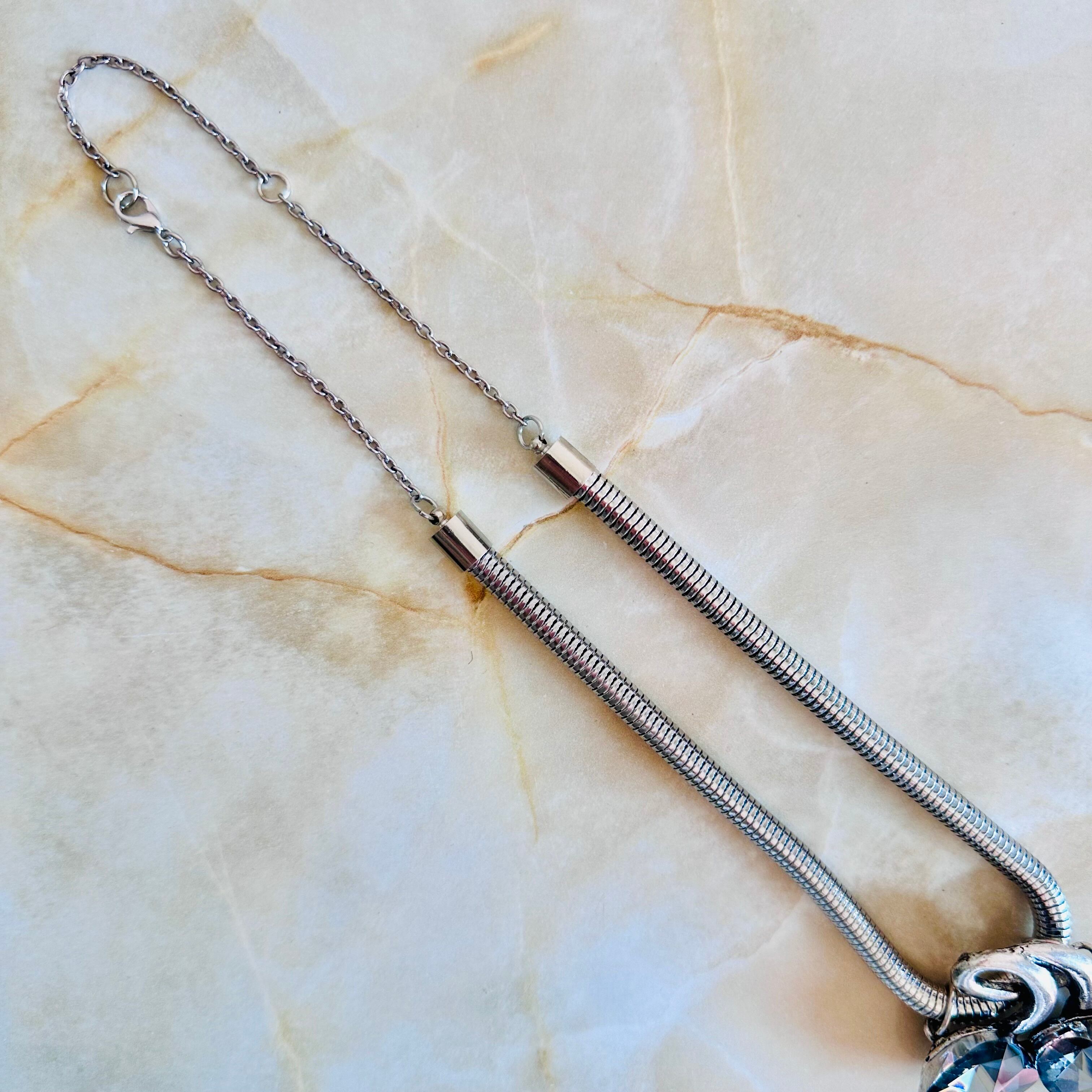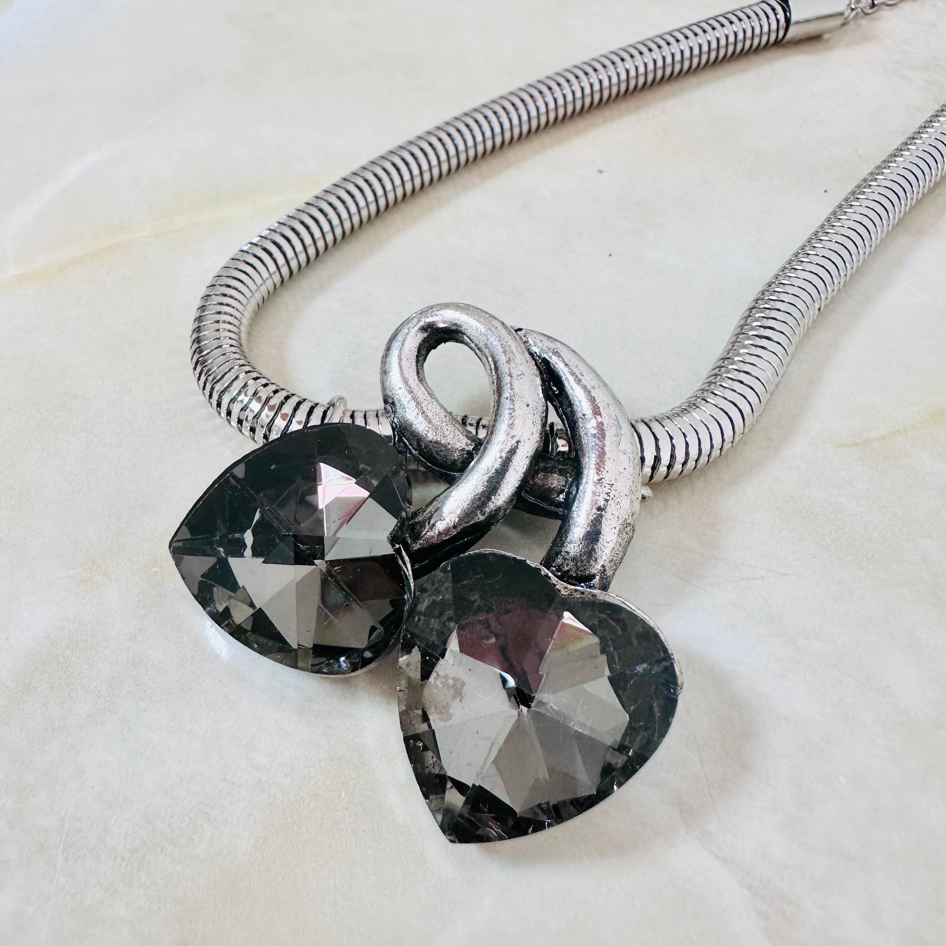クリアグレー✖️アンティークシルバーカラーのネックレスです。