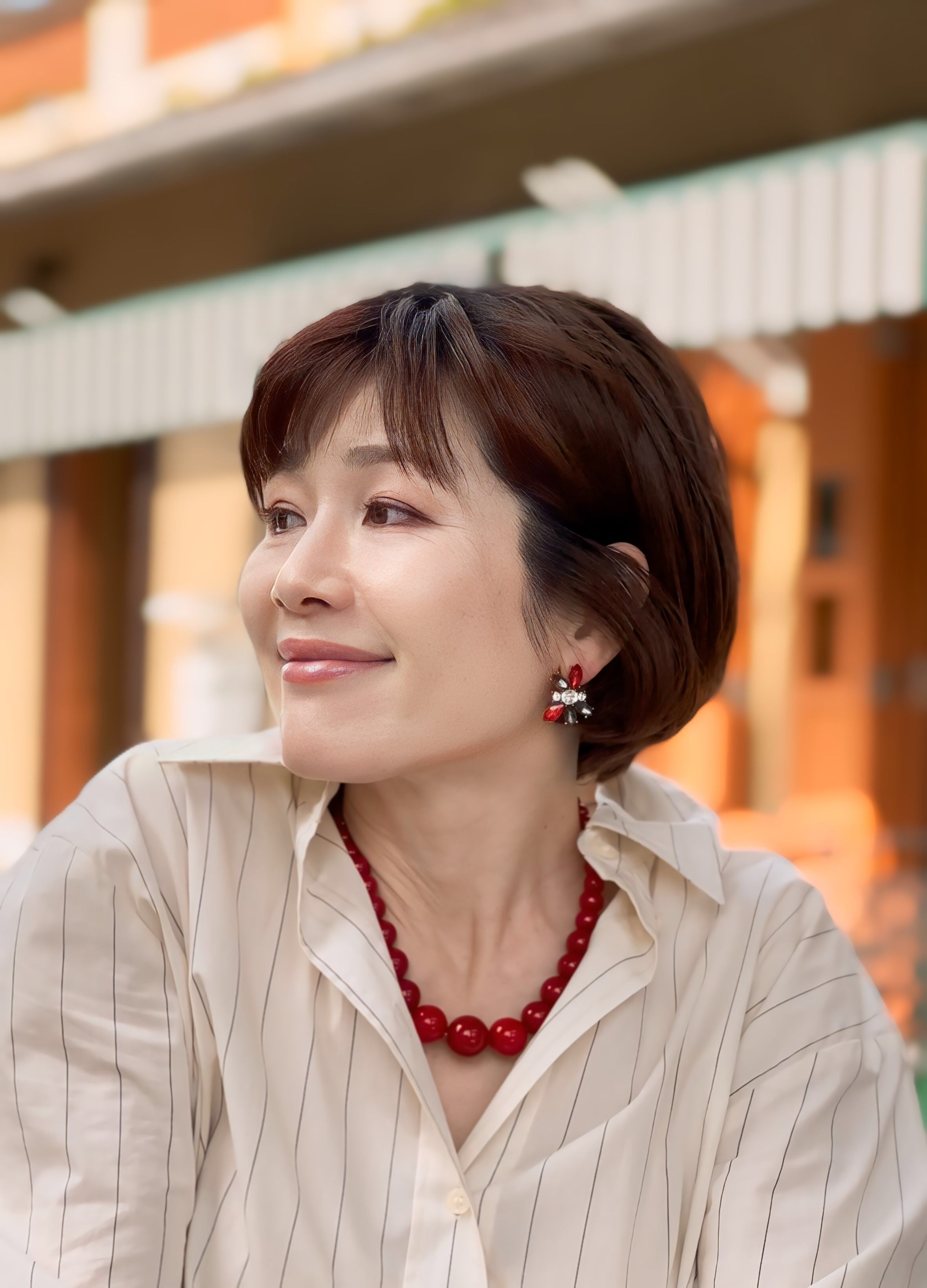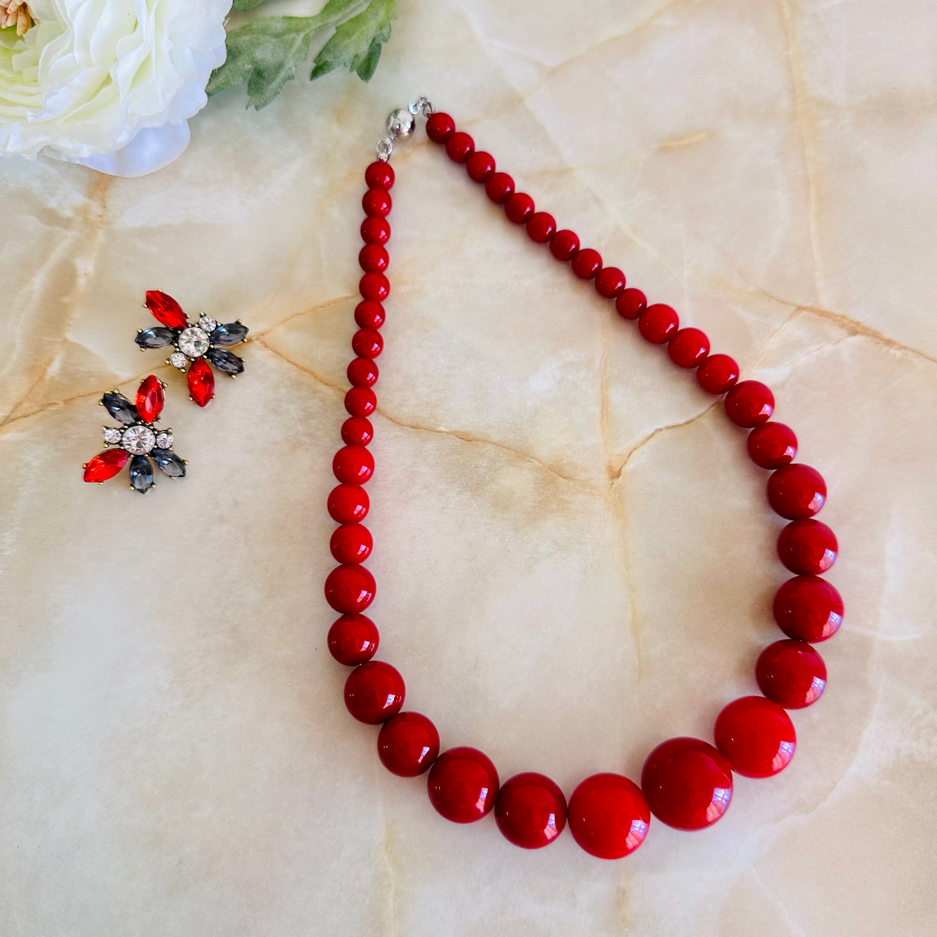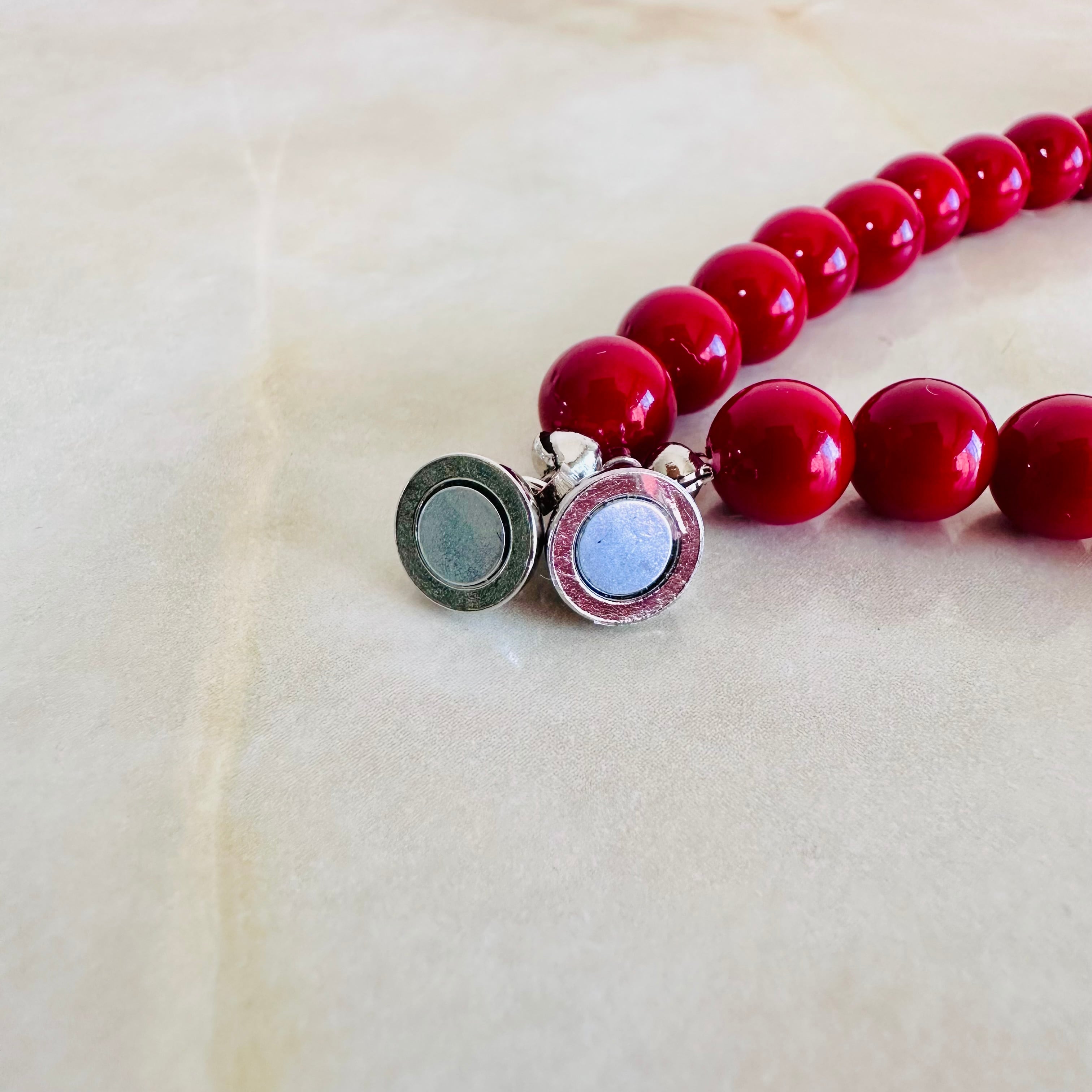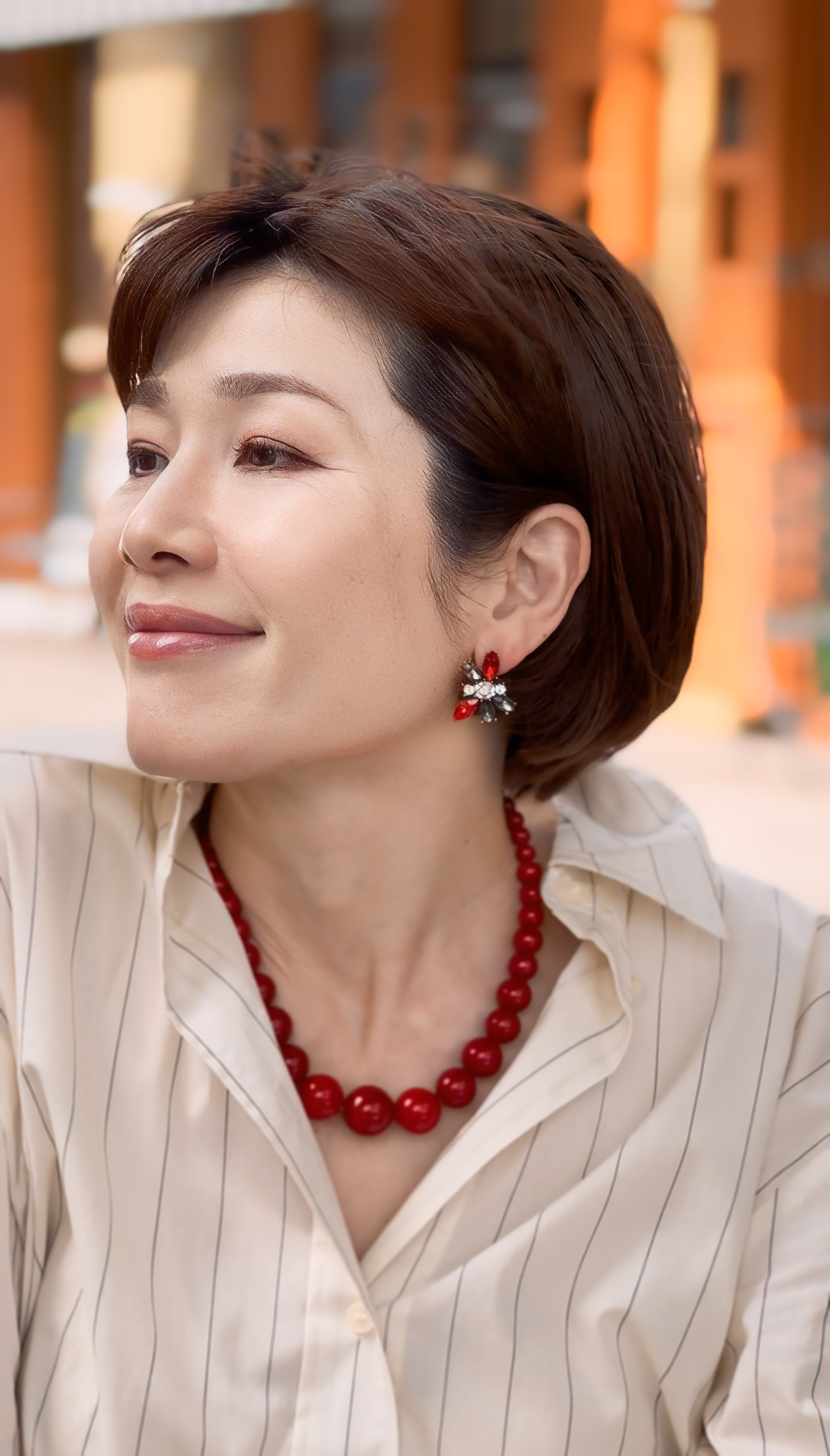 落ち着きのある艶やかなレッドビーズを使用したデザインです。