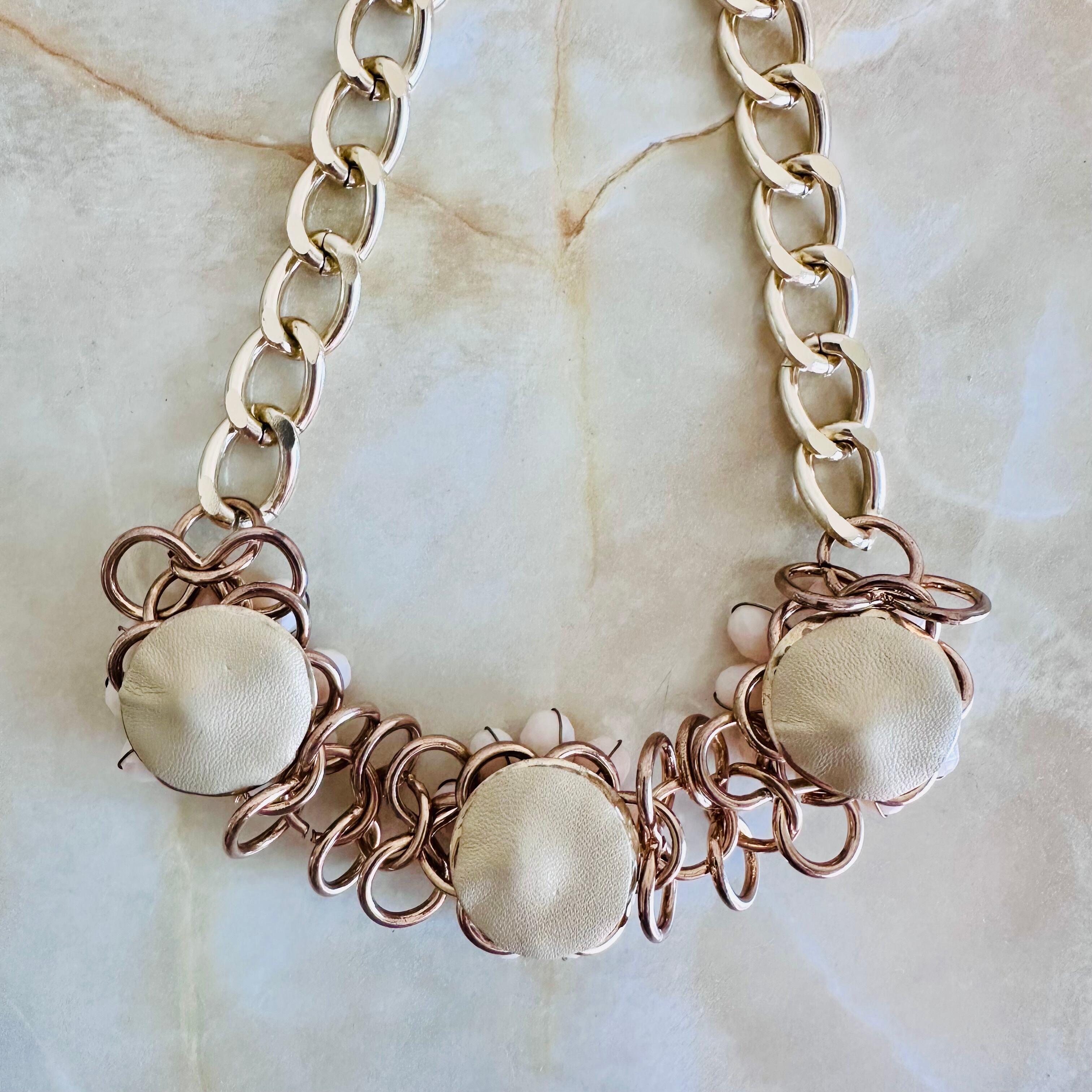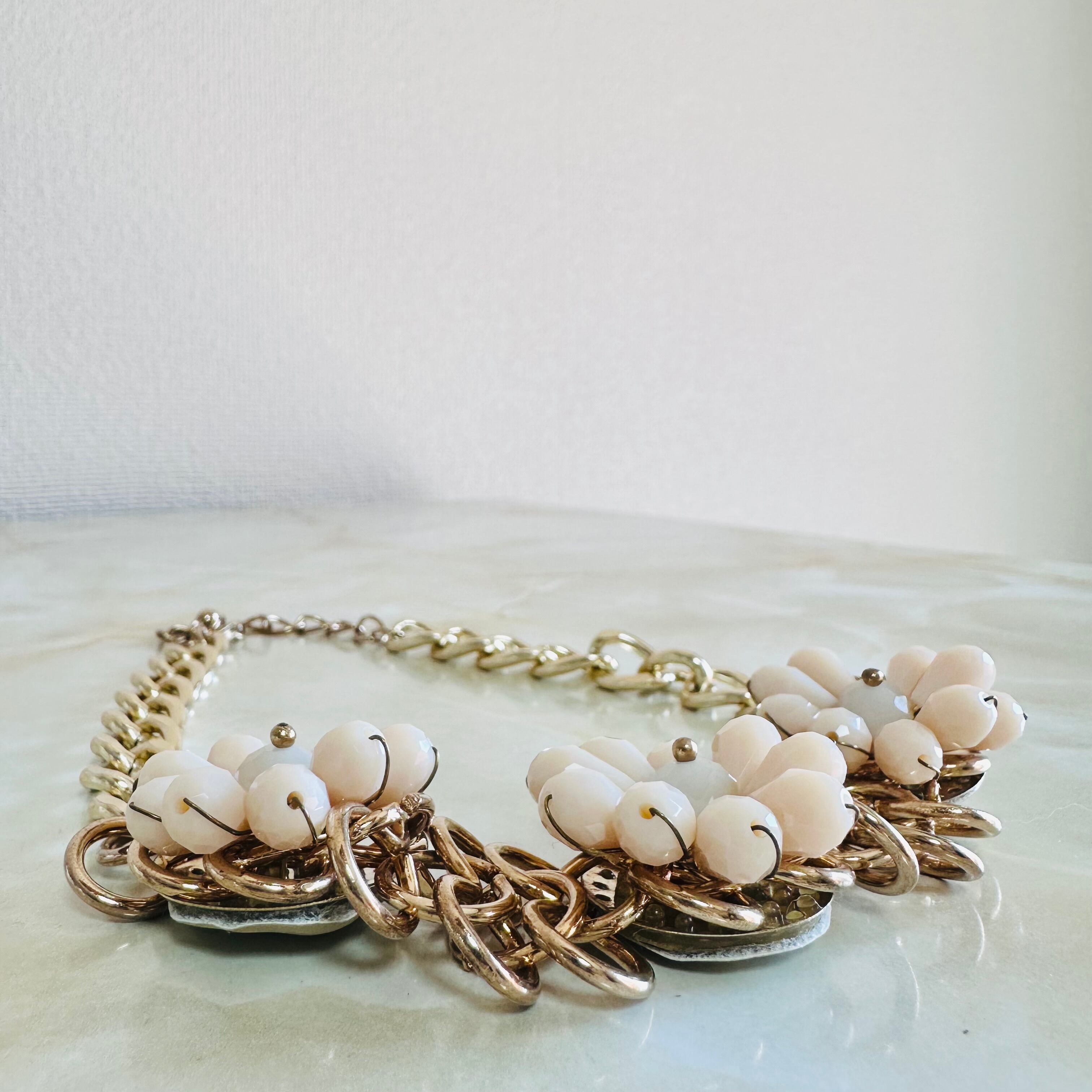 ピンクベージュ✖️ゴールドカラーのネックレスです。