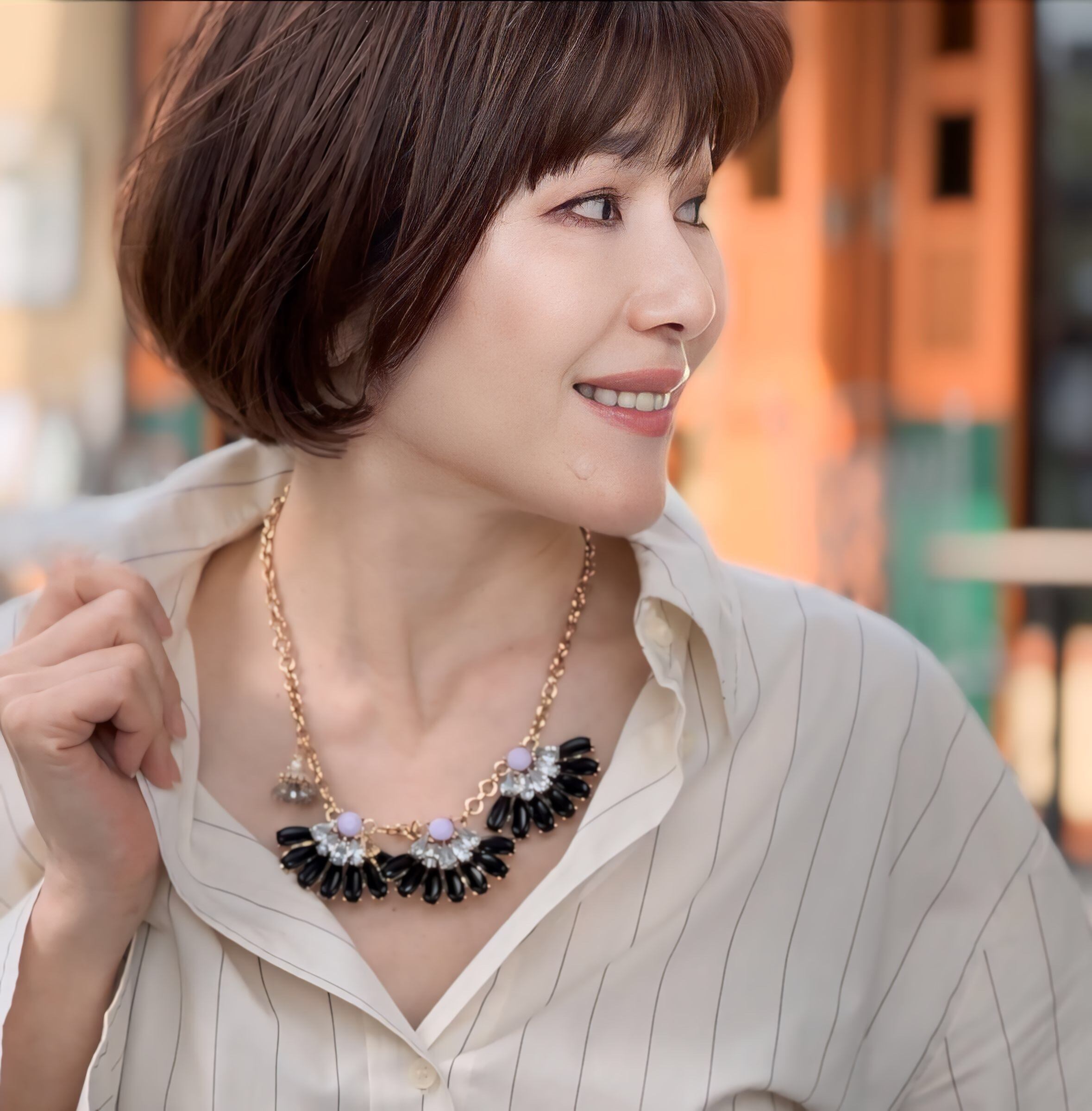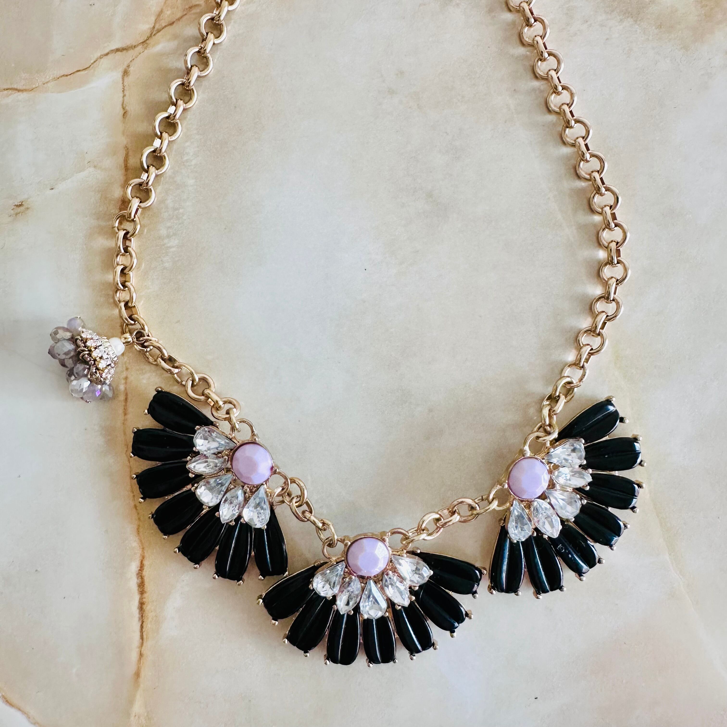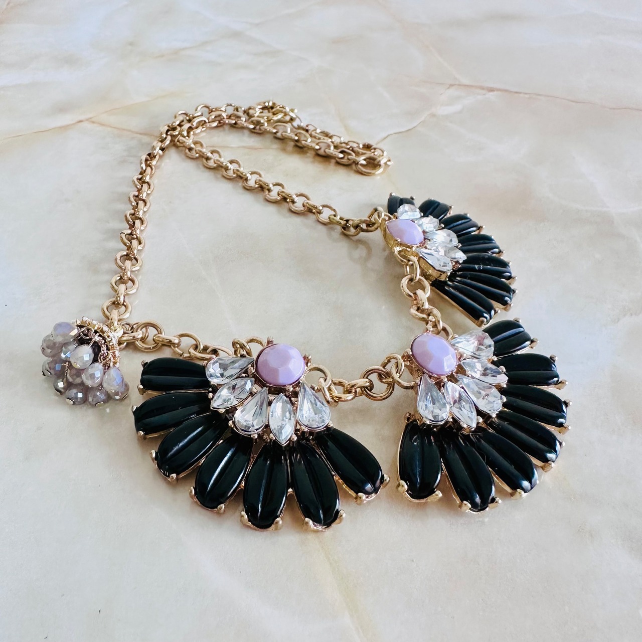 ブラック、クリア、ピンク✖️ゴールドカラーのネックレスです。