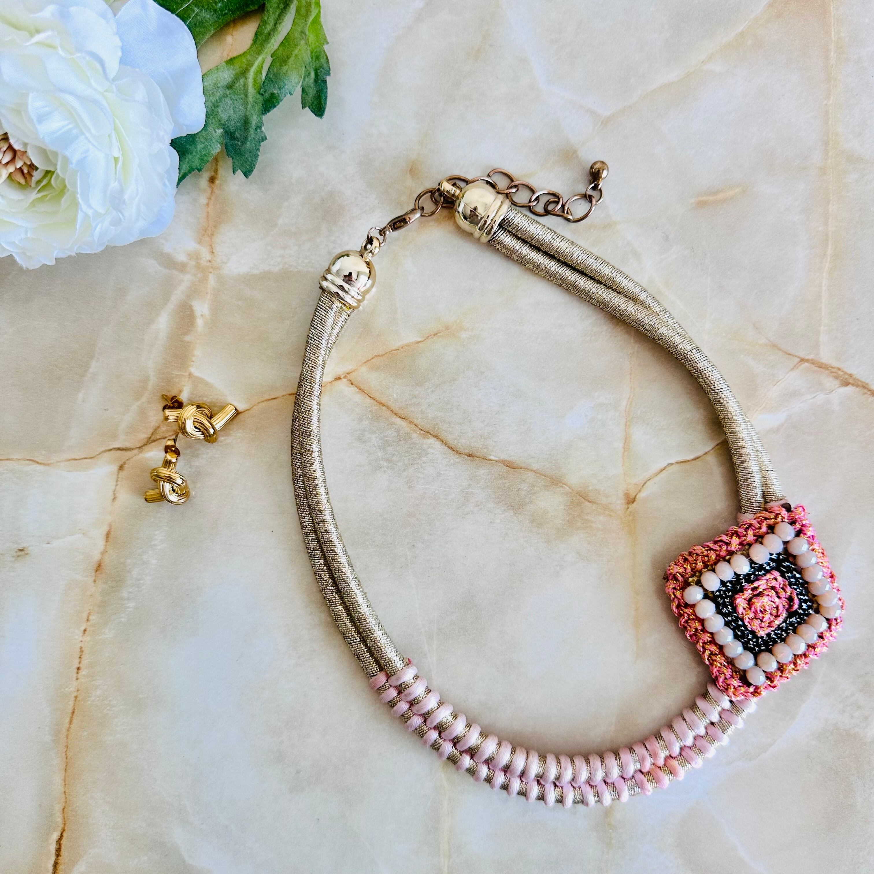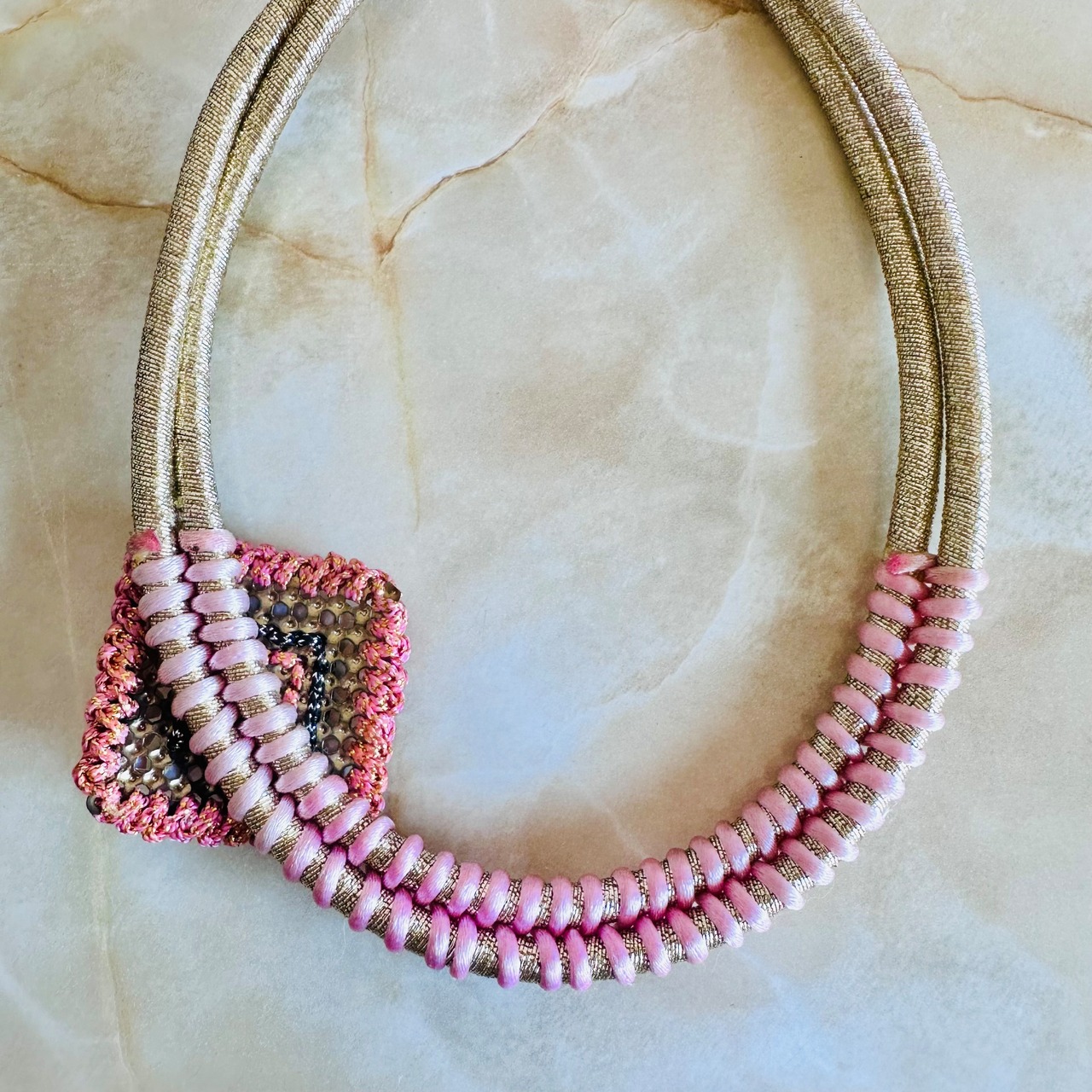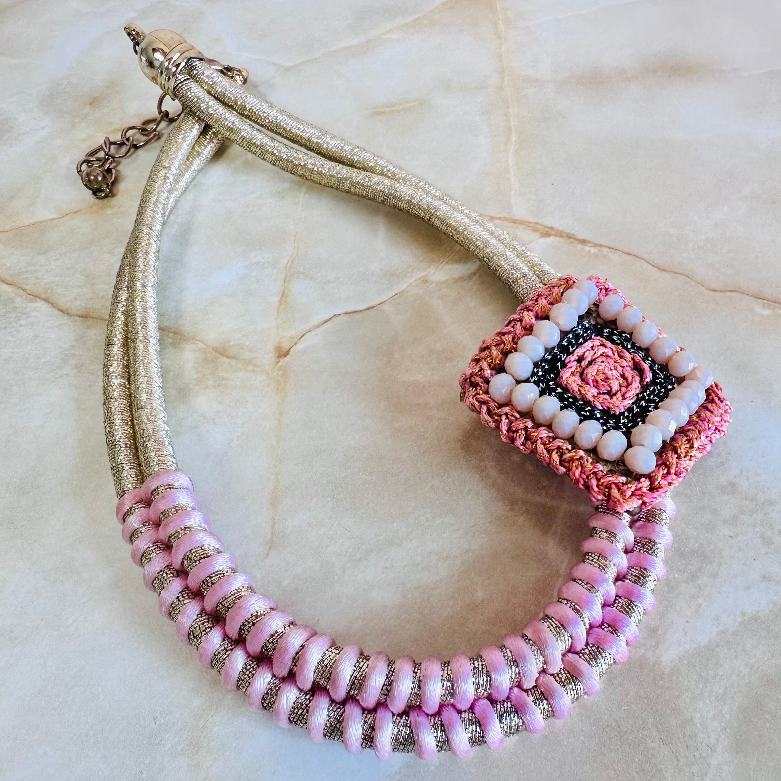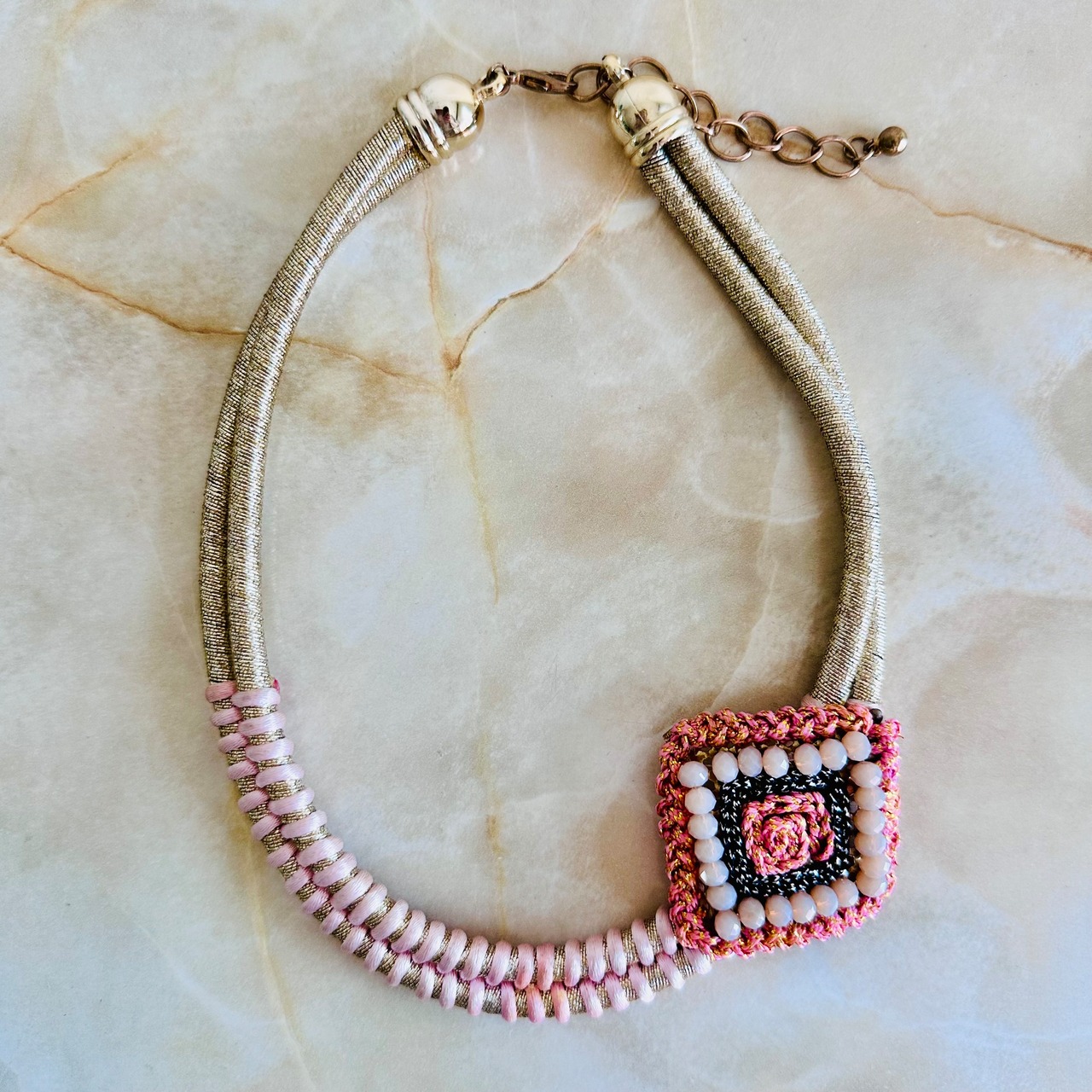 ピンク系✖️ゴールドカラーのネックレスです。