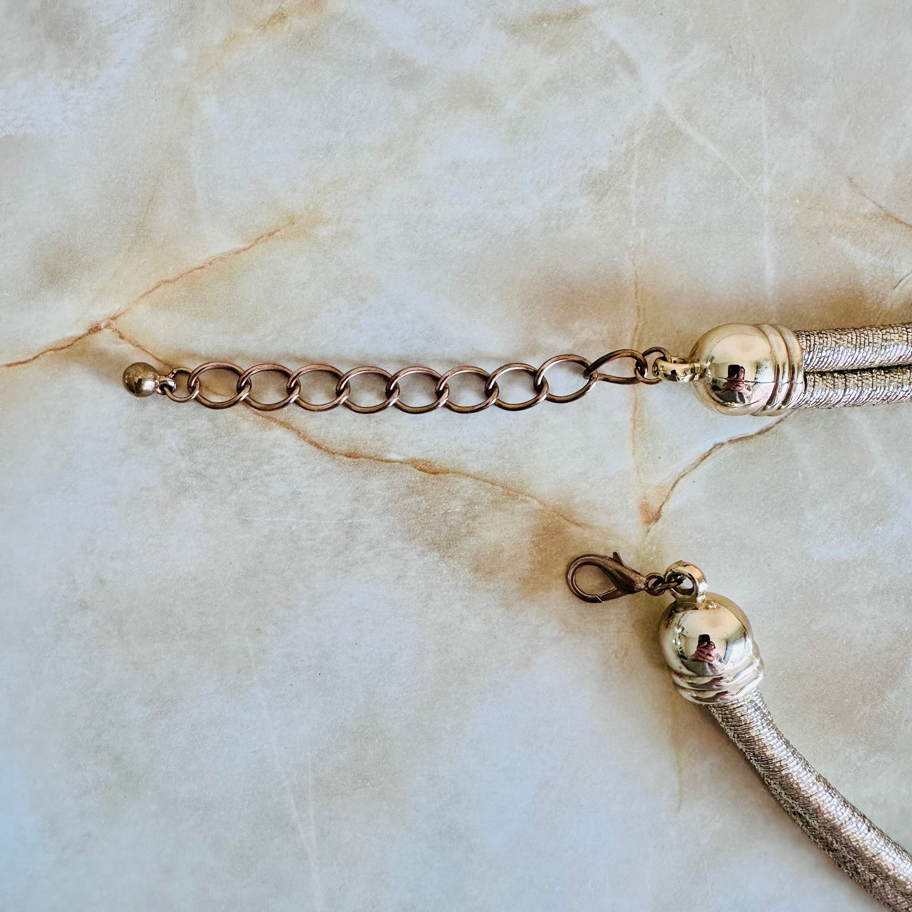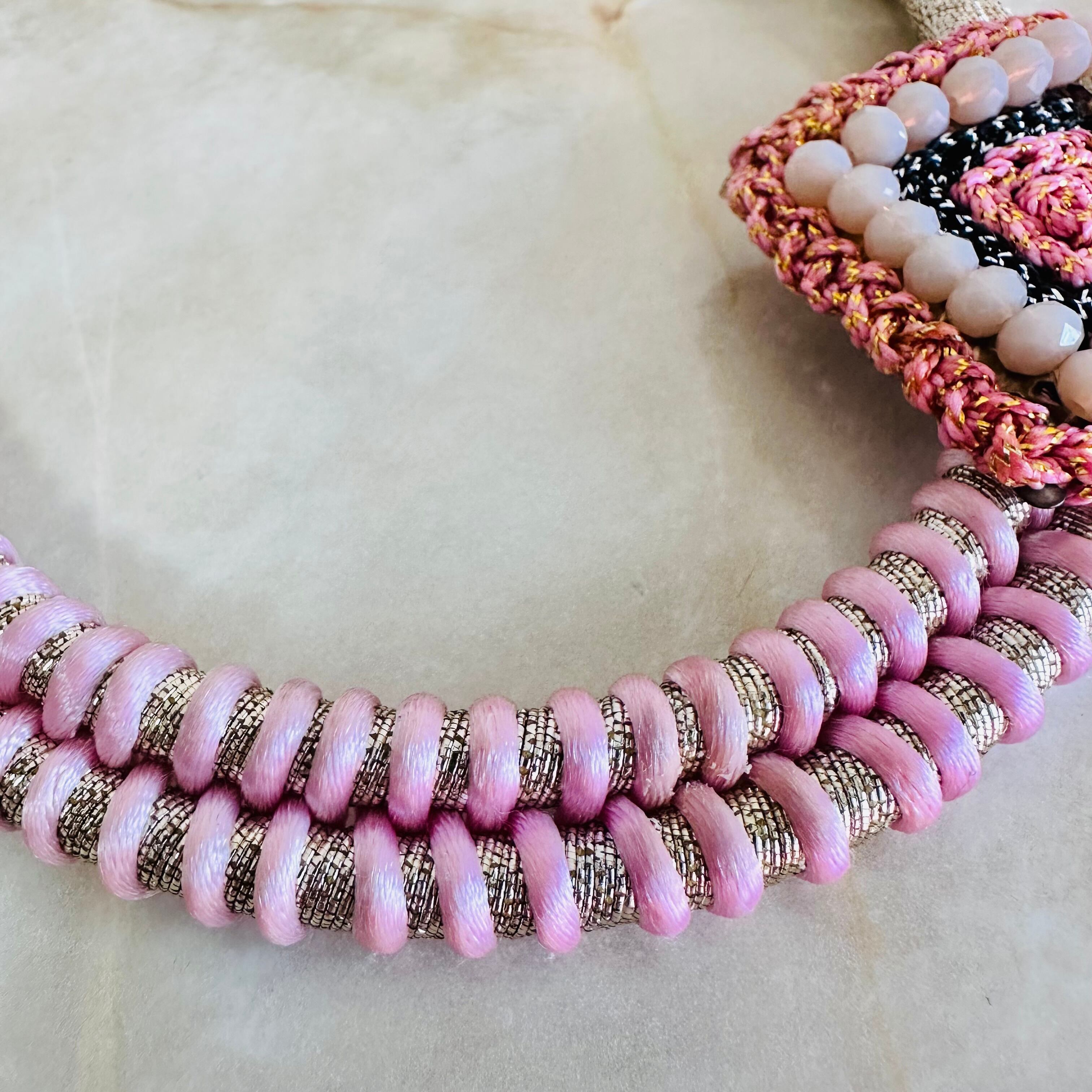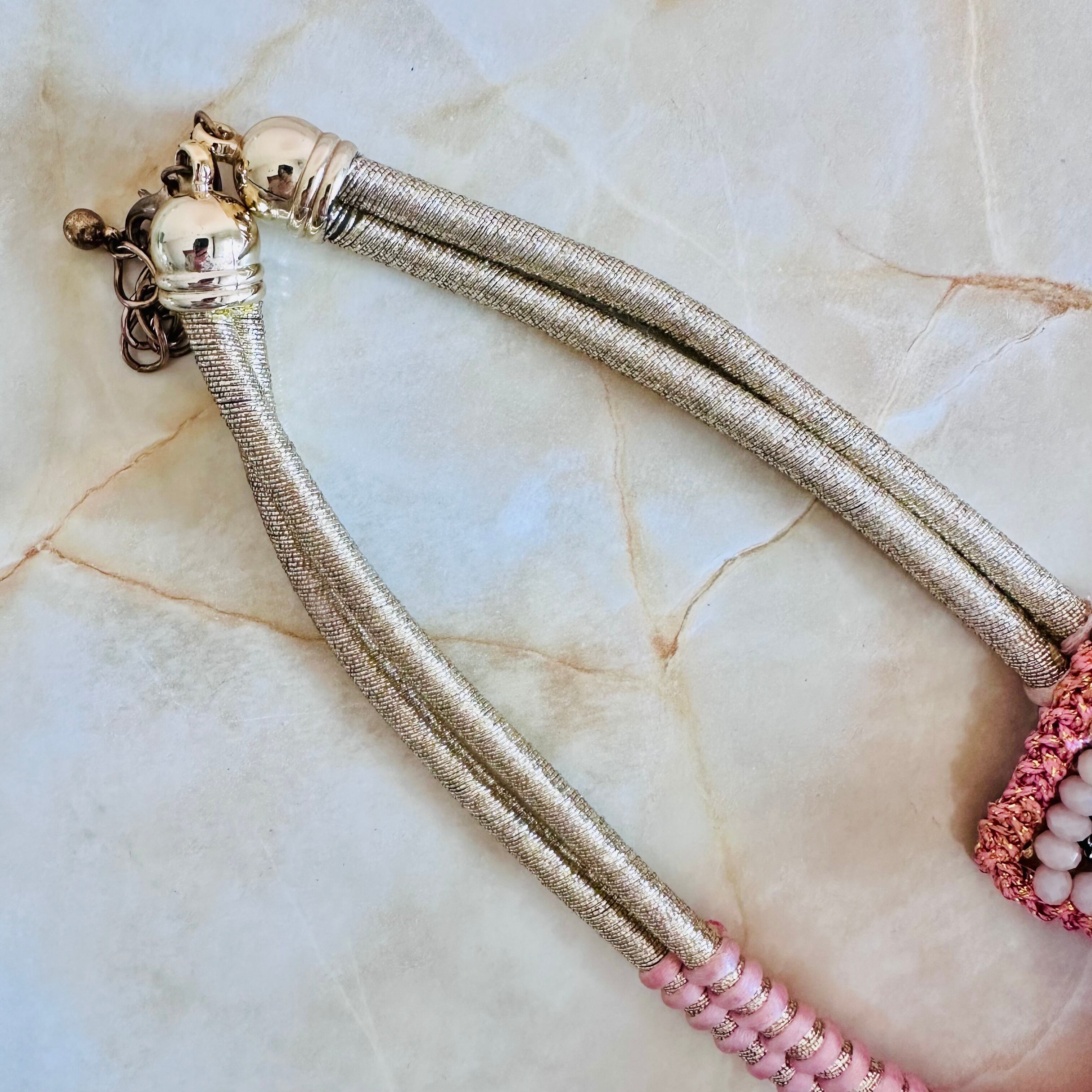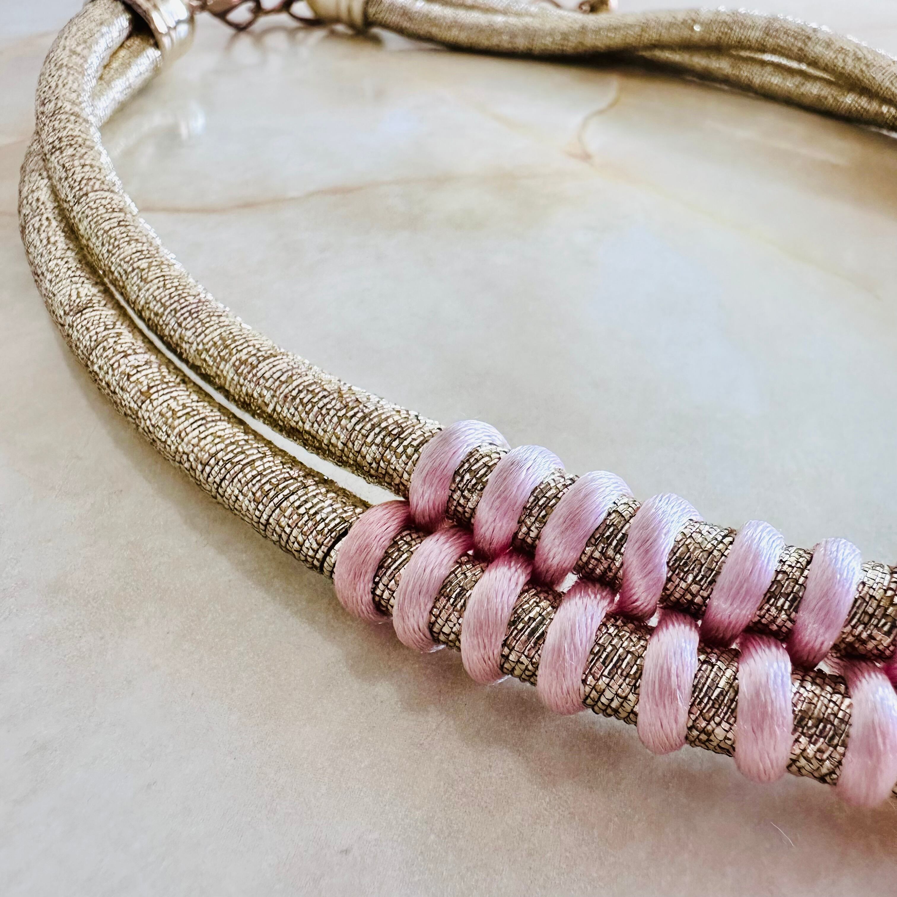 ゴールドのコードに、ベビーピンクの暇を巻きつけ