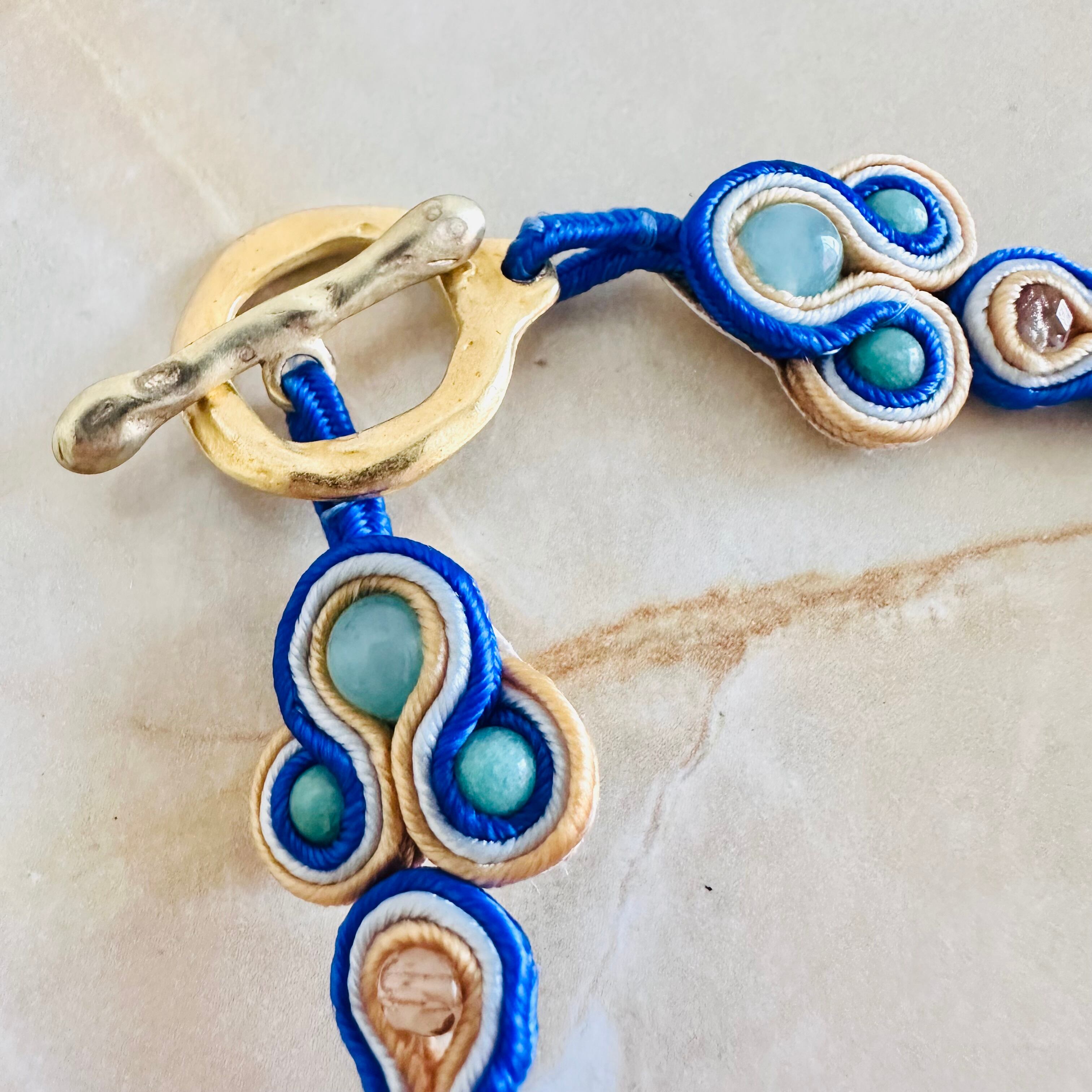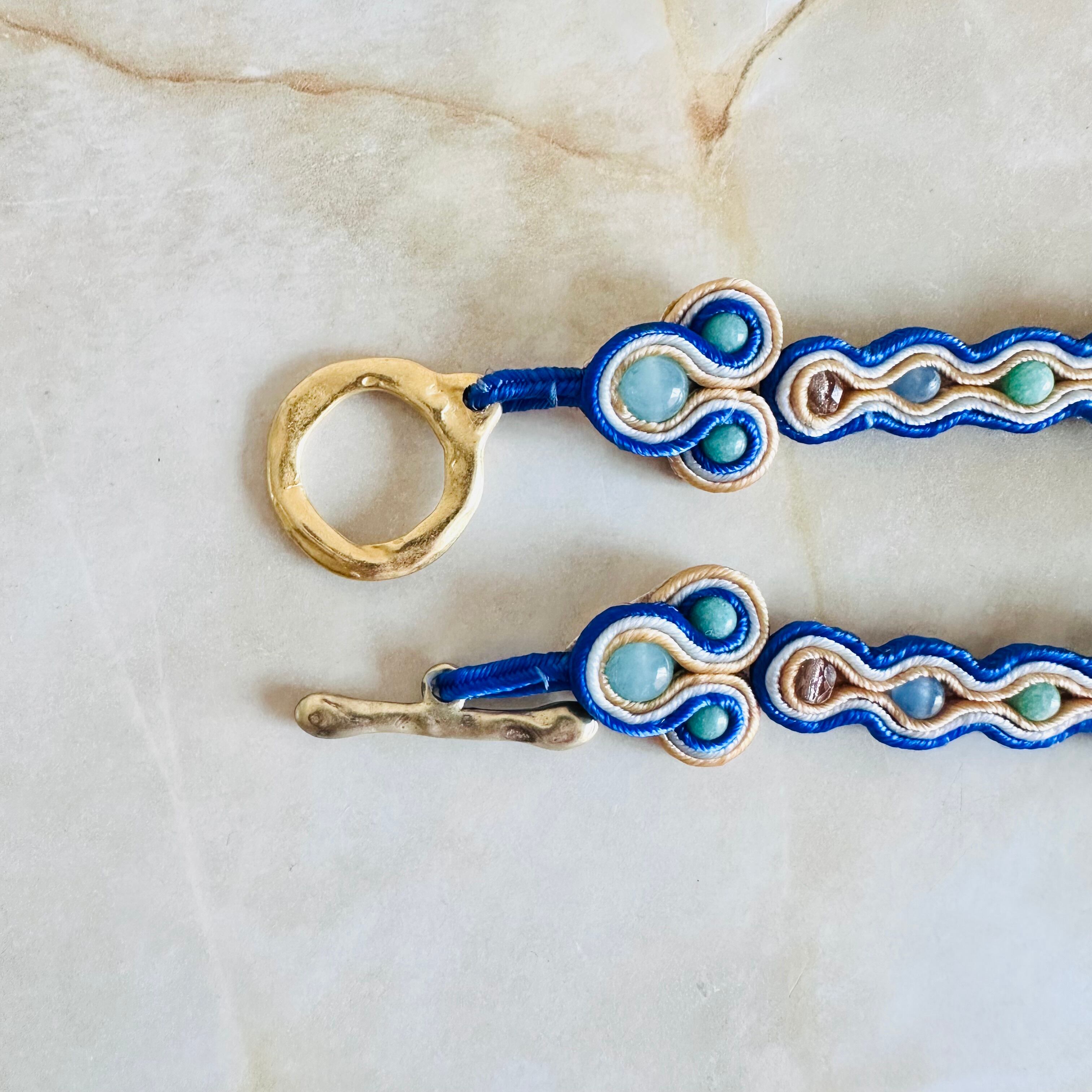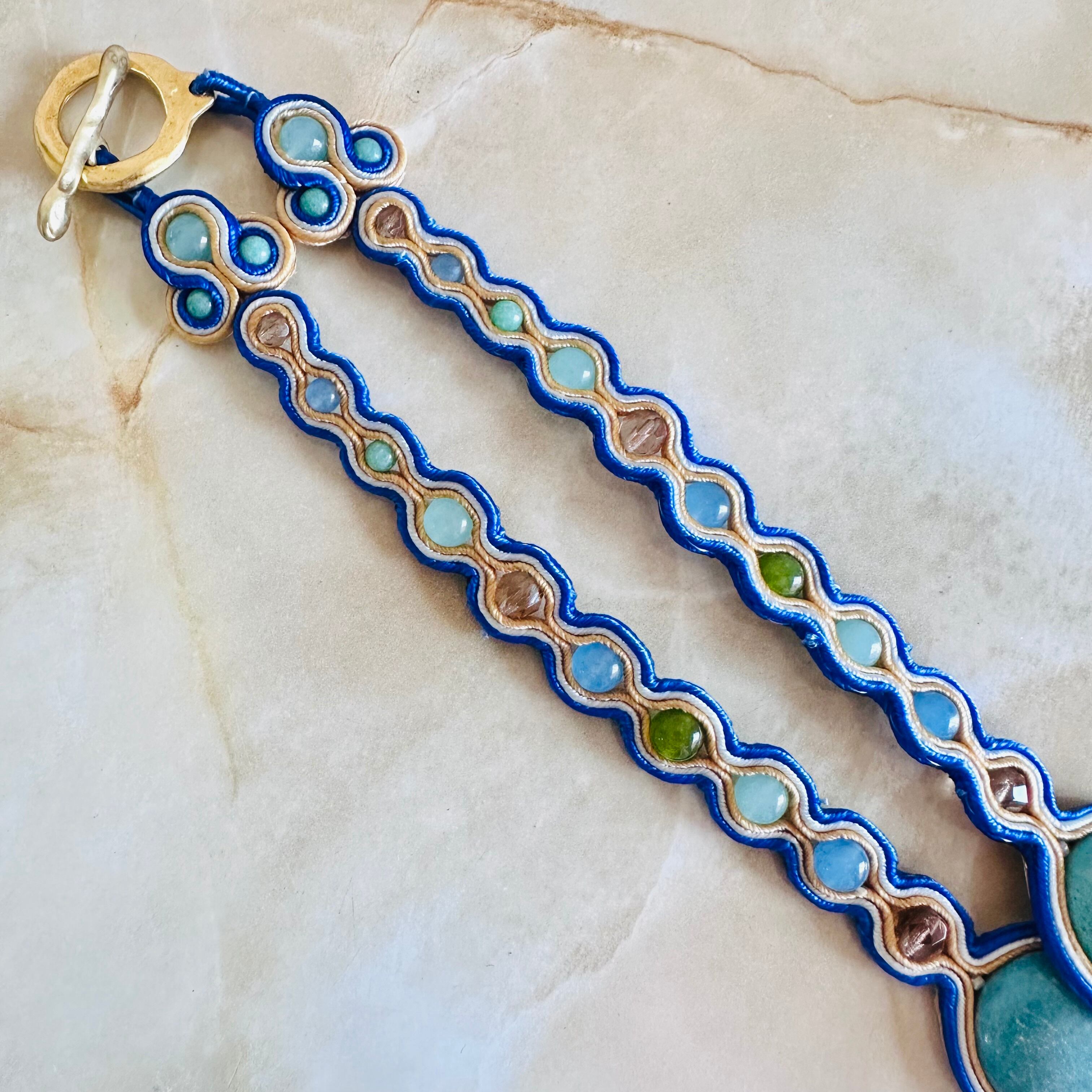 ターコイズブルー、マルチカラー✖️マットゴールドカラーのチョーカーネックレスです。