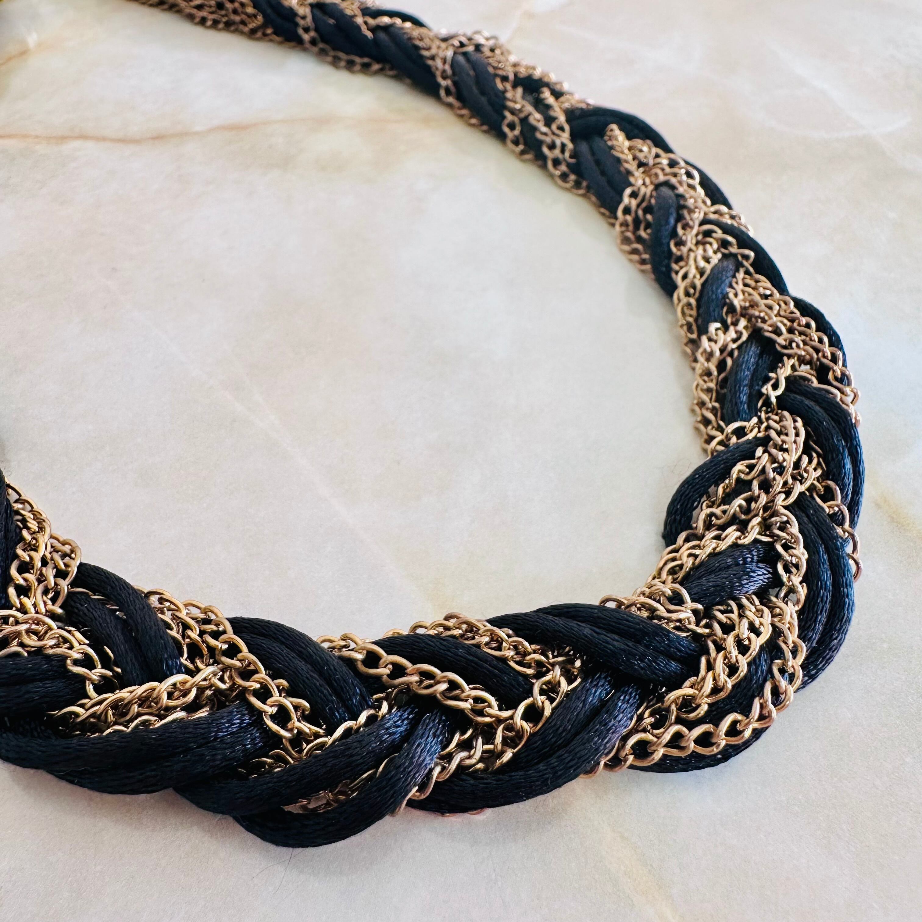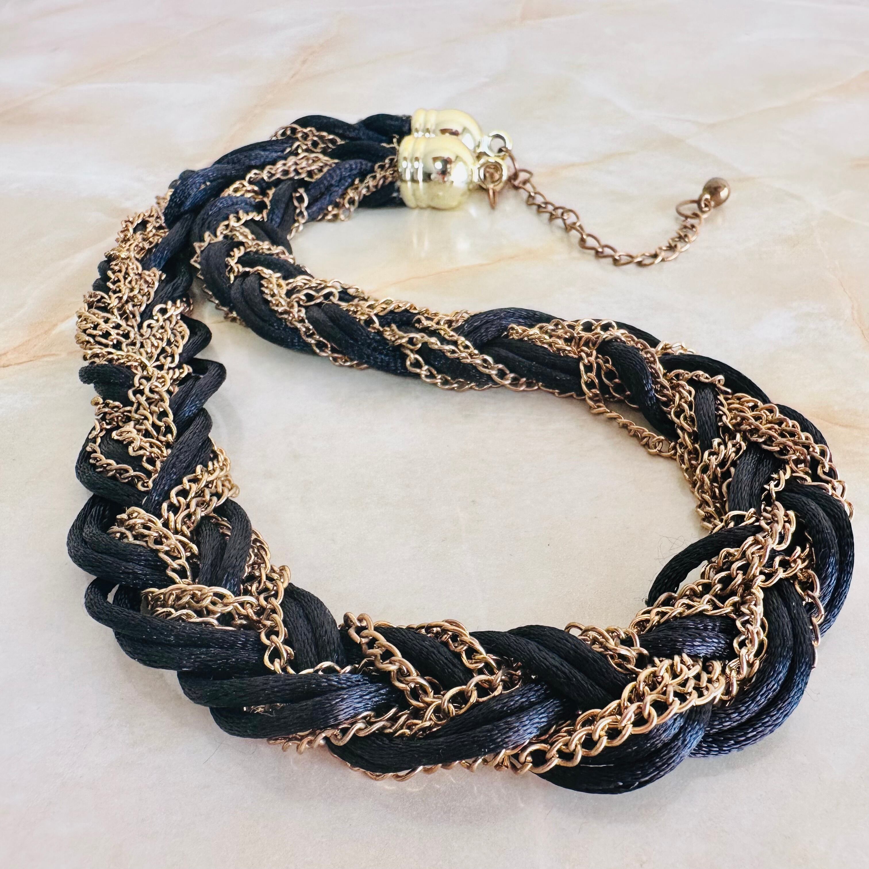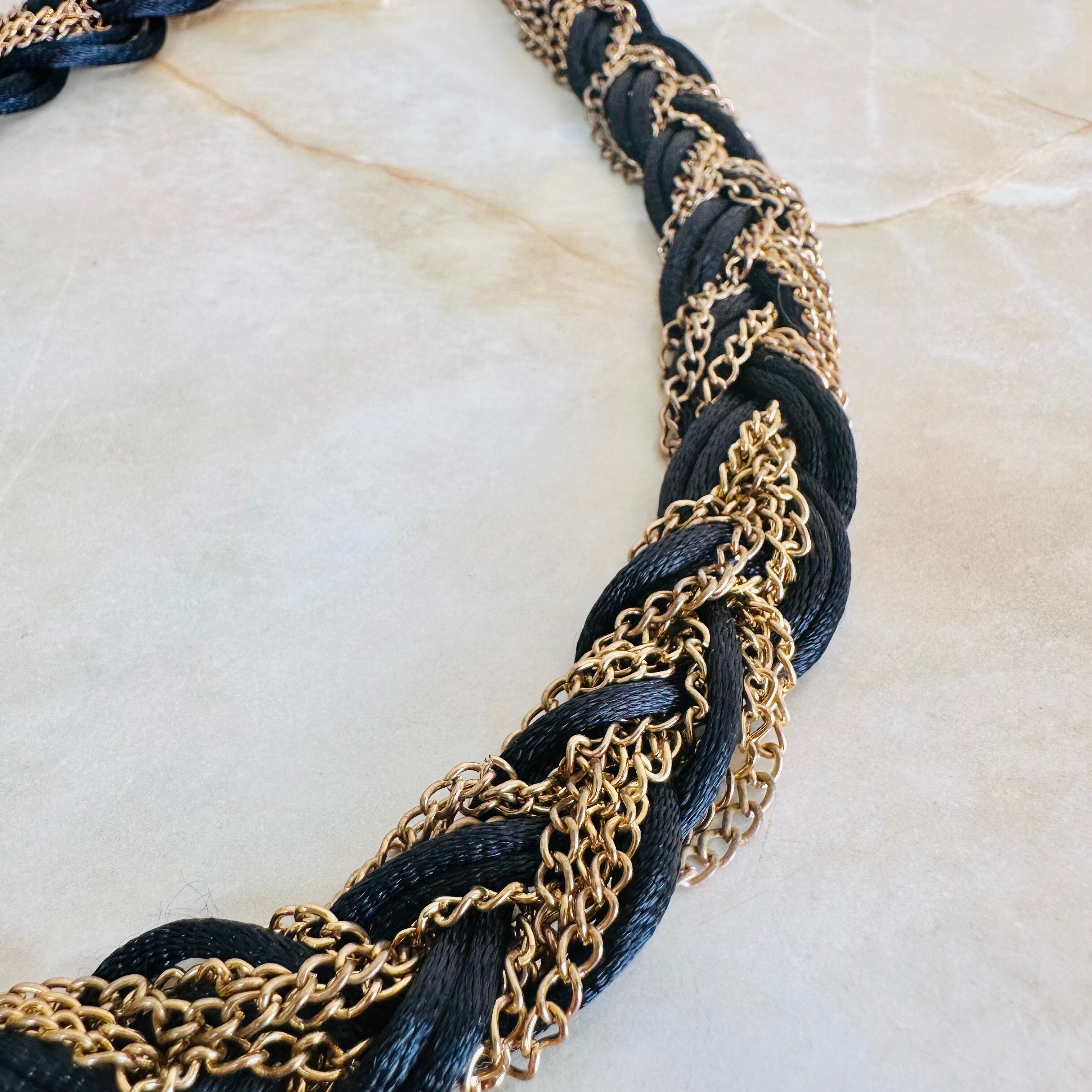 黒の紐細い5本のチェーンを編み上げたデザインです。