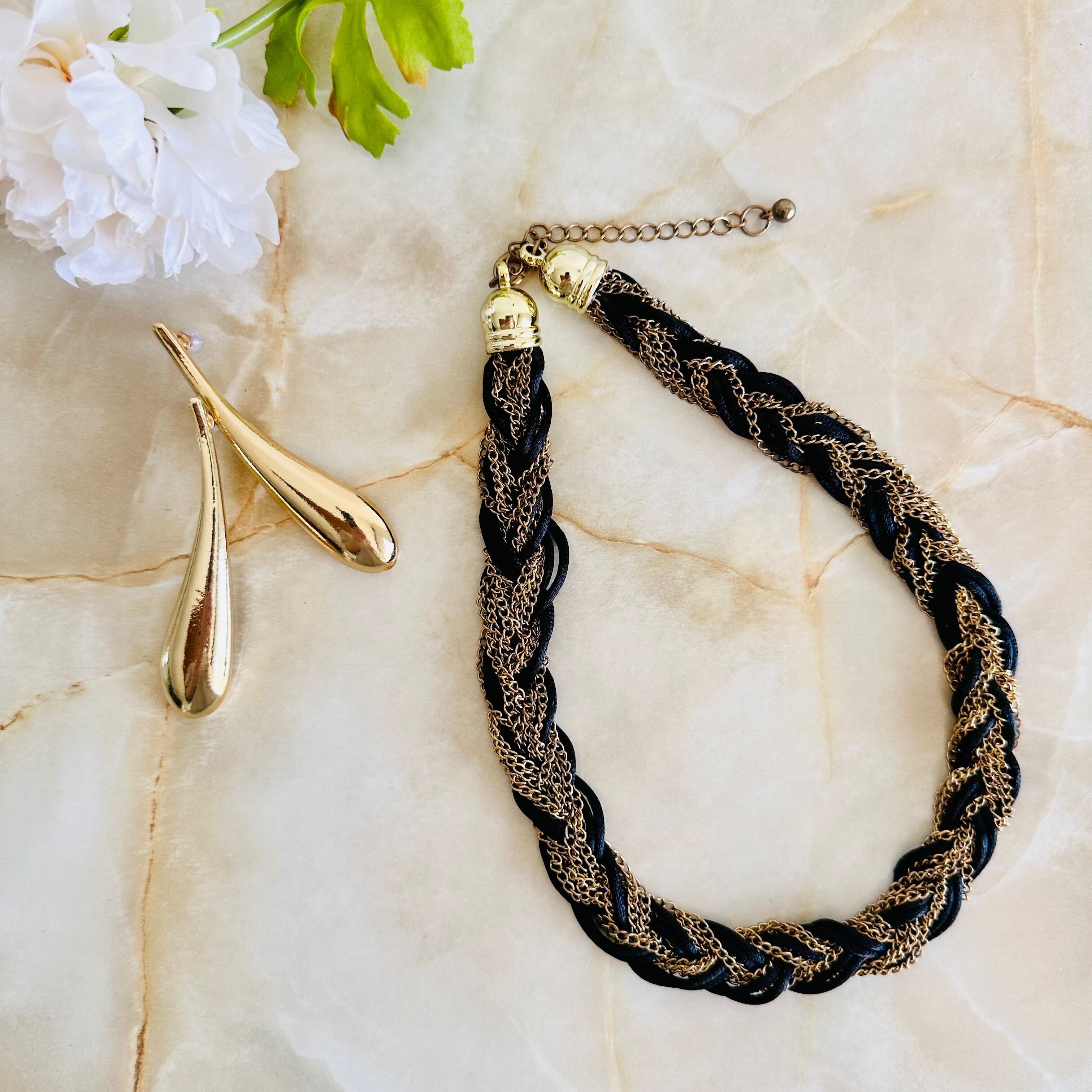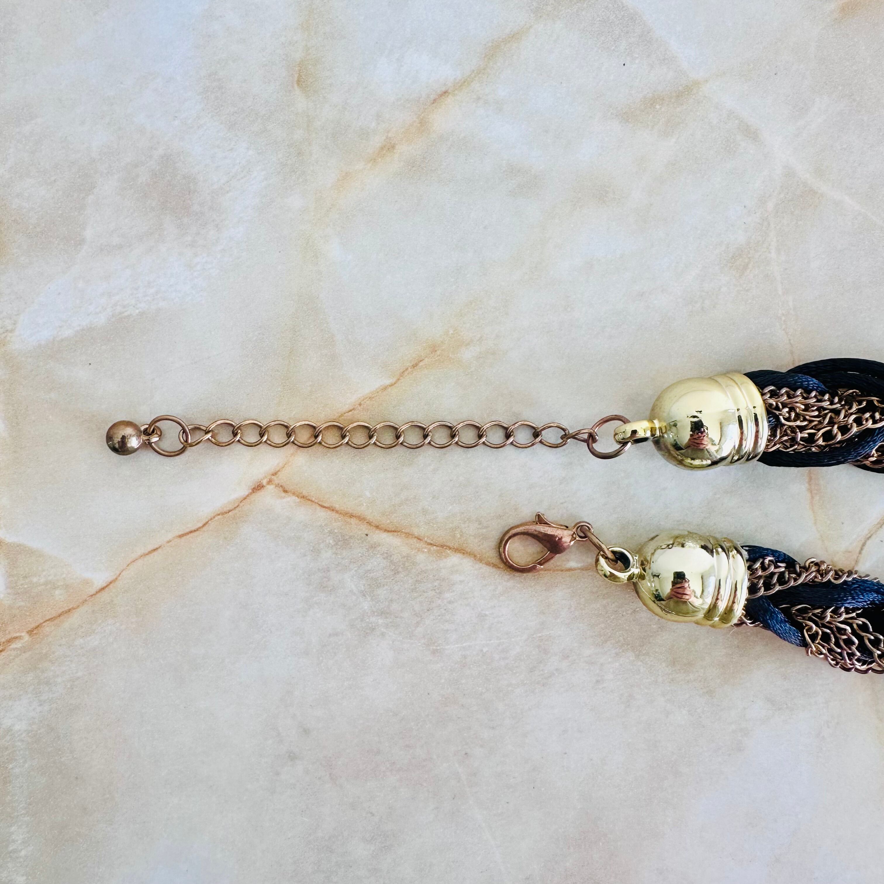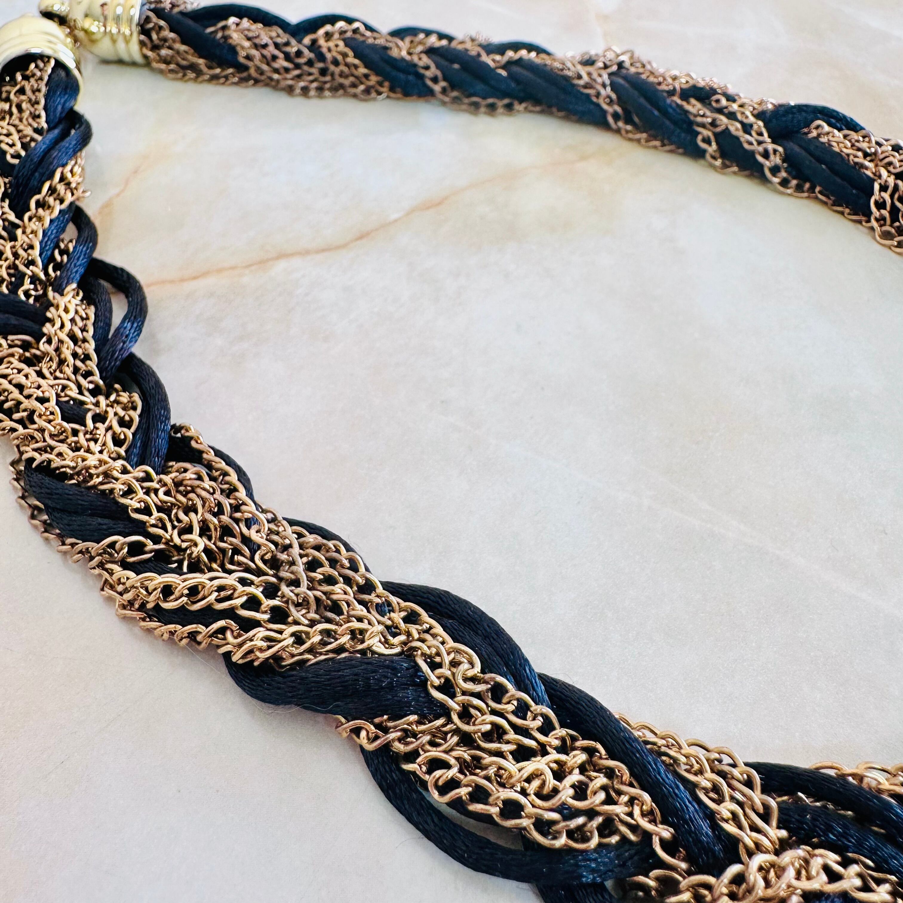 黒の紐細い5本のチェーンを編み上げたデザインです。
