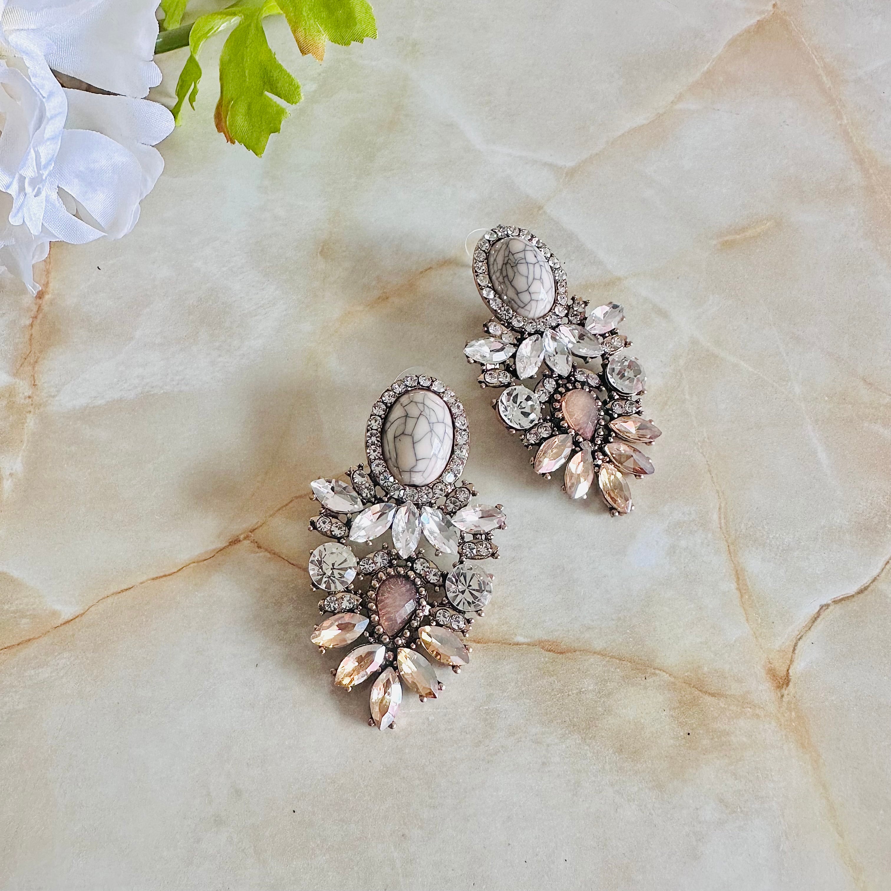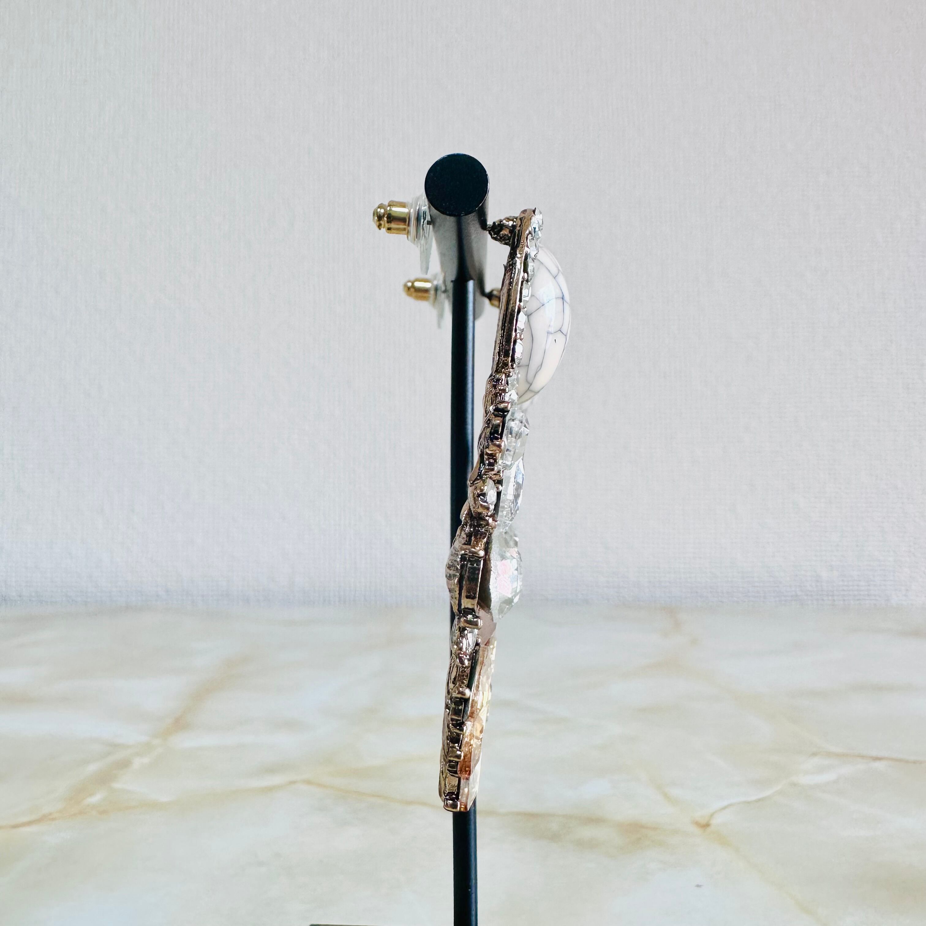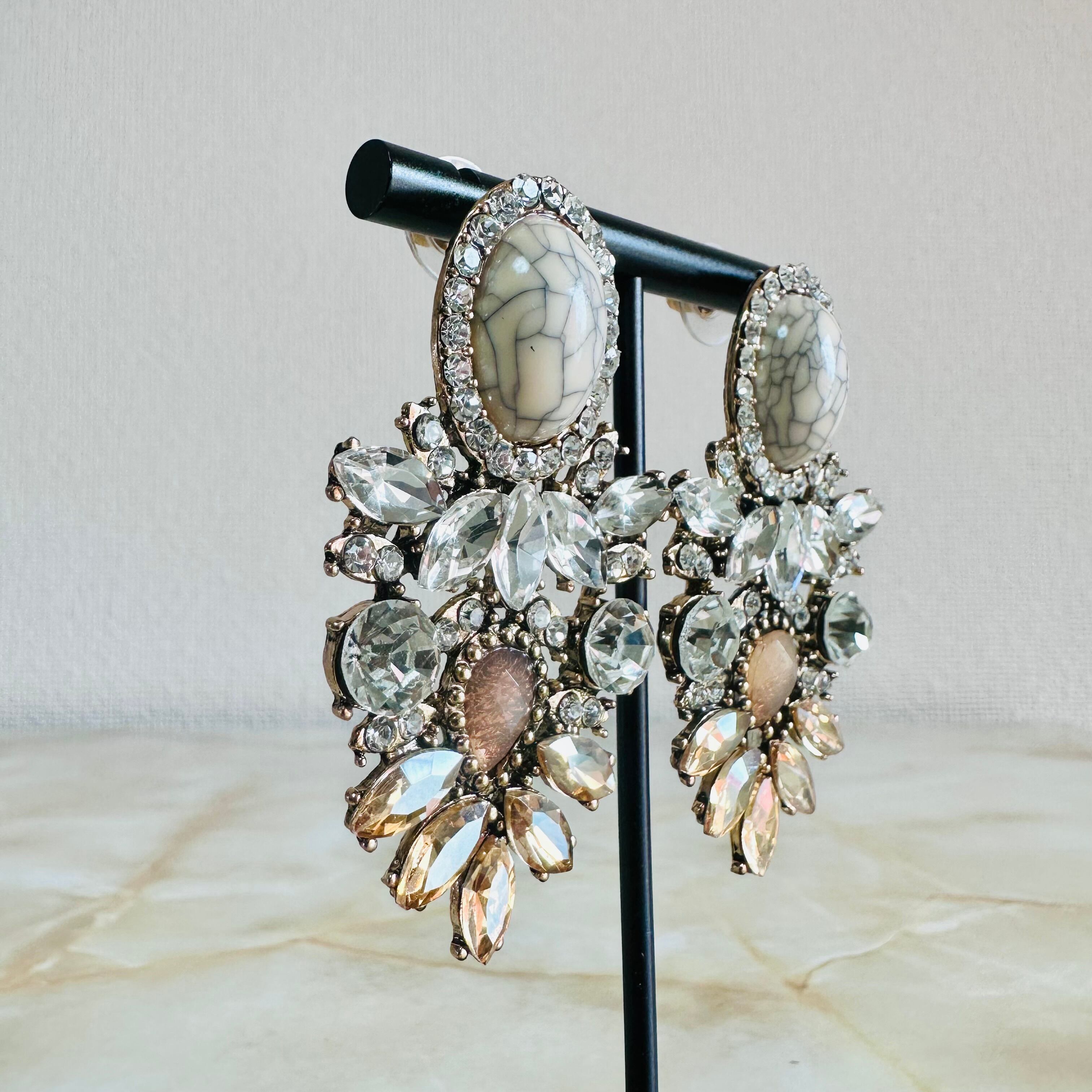 ゴージャスな大ぶりデザインは特別な日の装いはもちろん、普段のカジュアルにつけても素敵です。