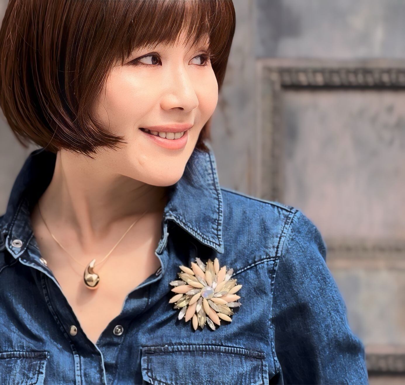ゴールドの勾玉デザインのトップが特徴的なデザインです。