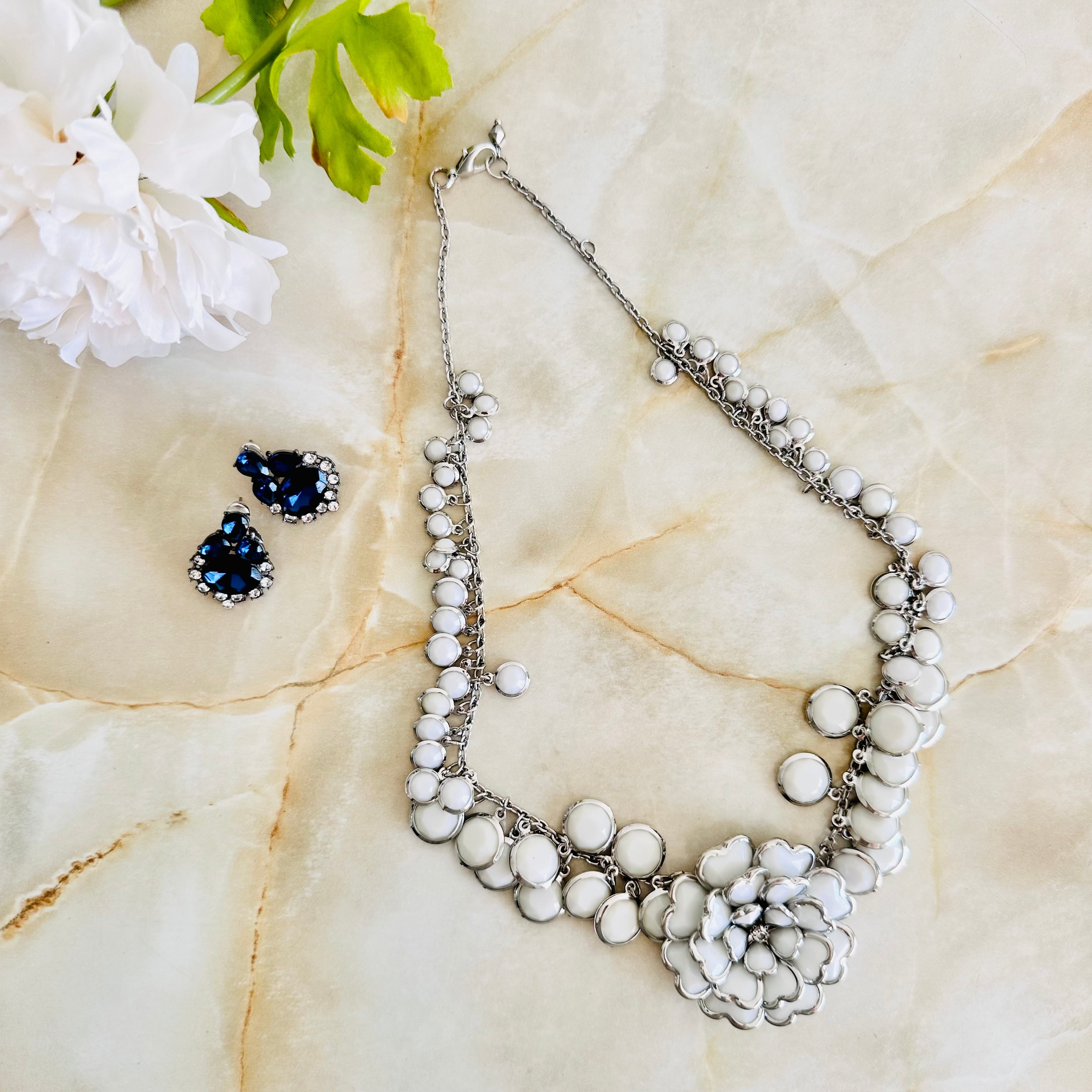 ホワイト系✖️シルバーカラーのネックレスです。