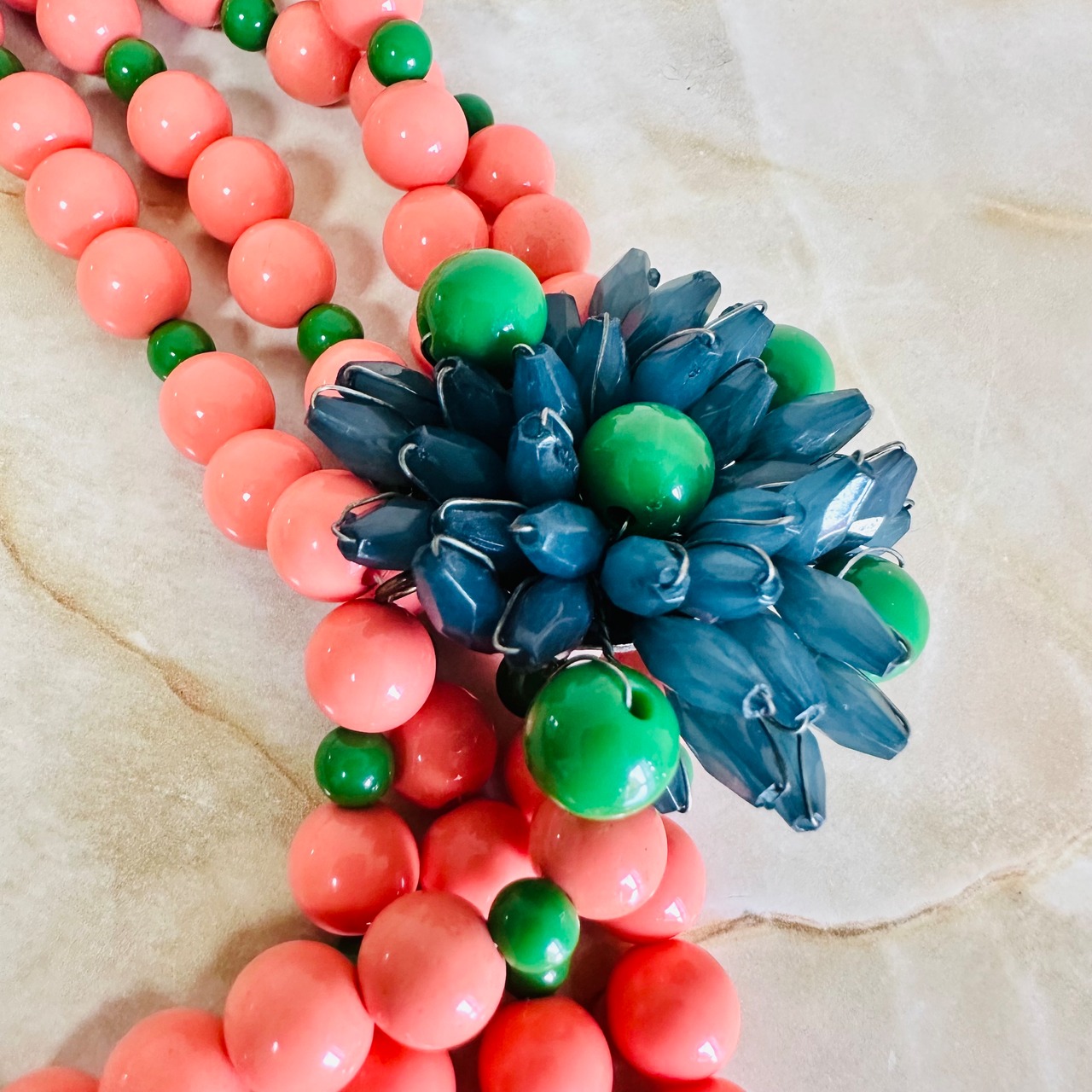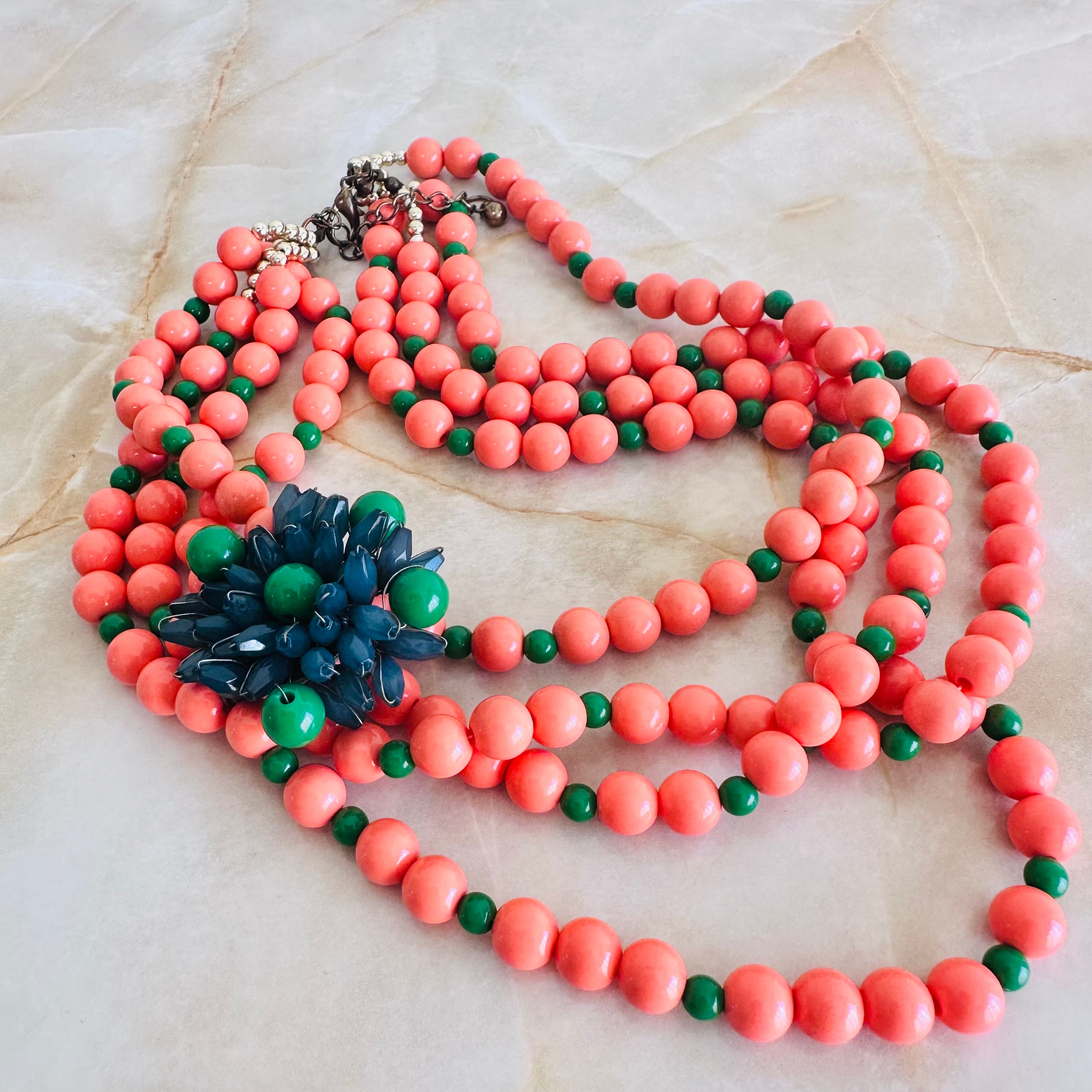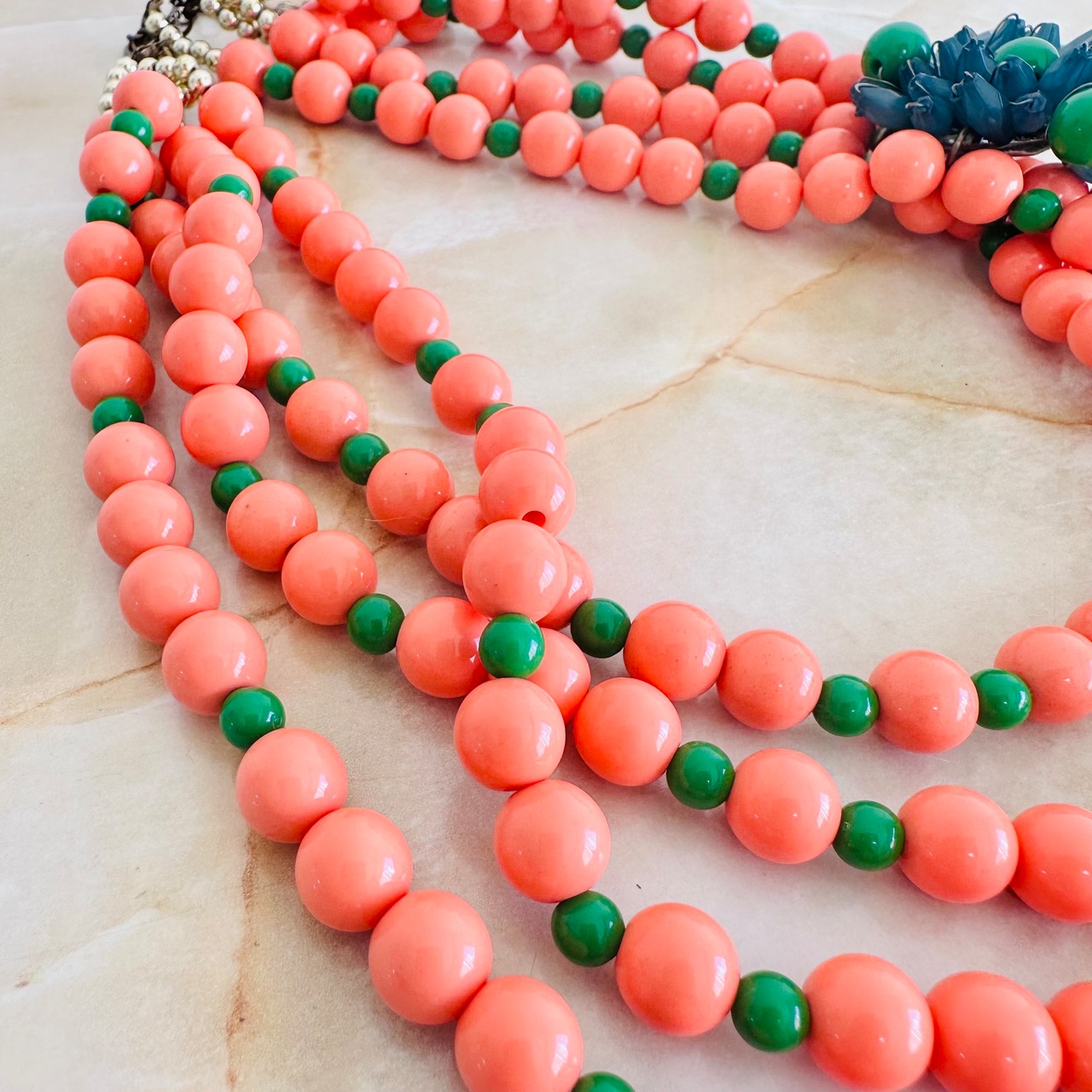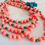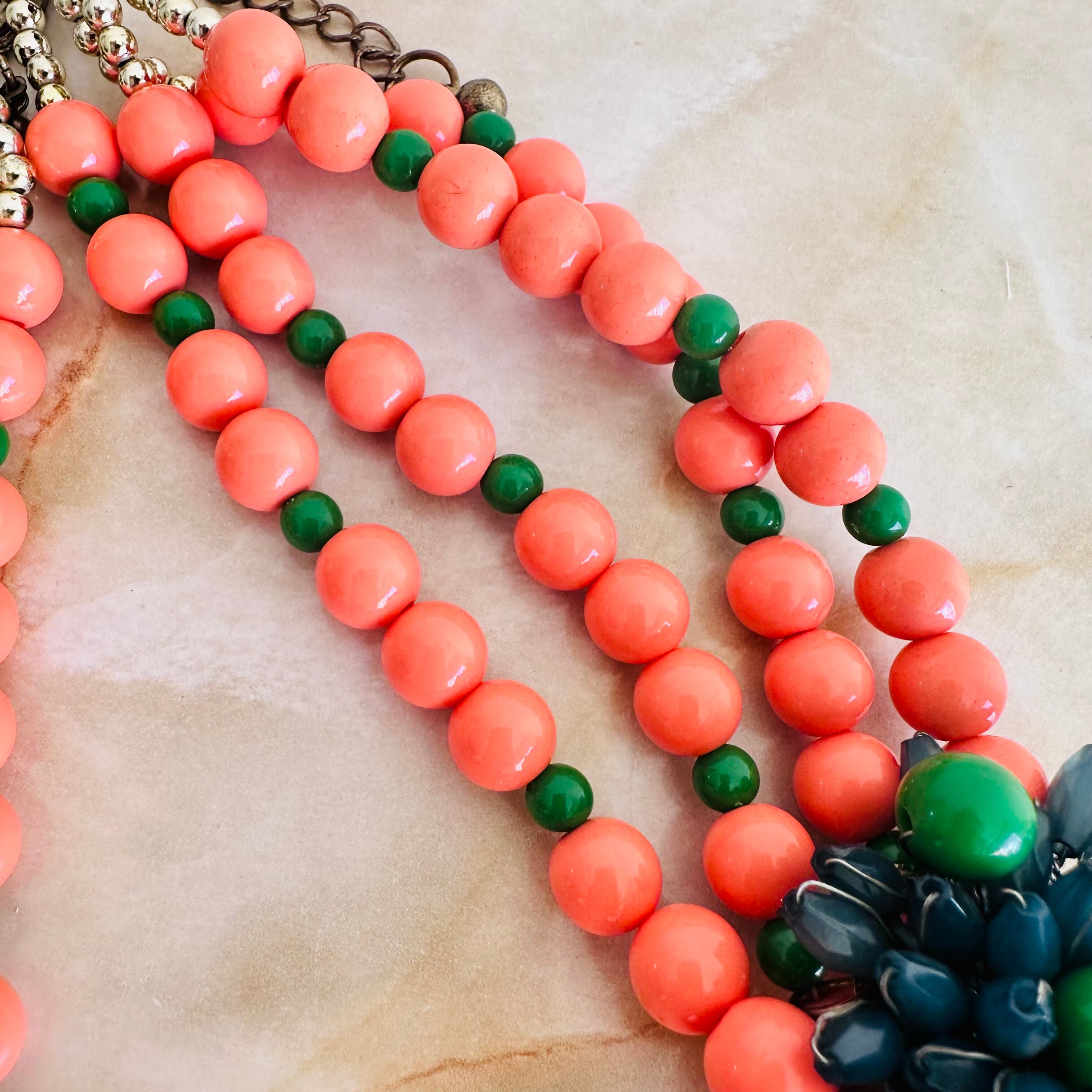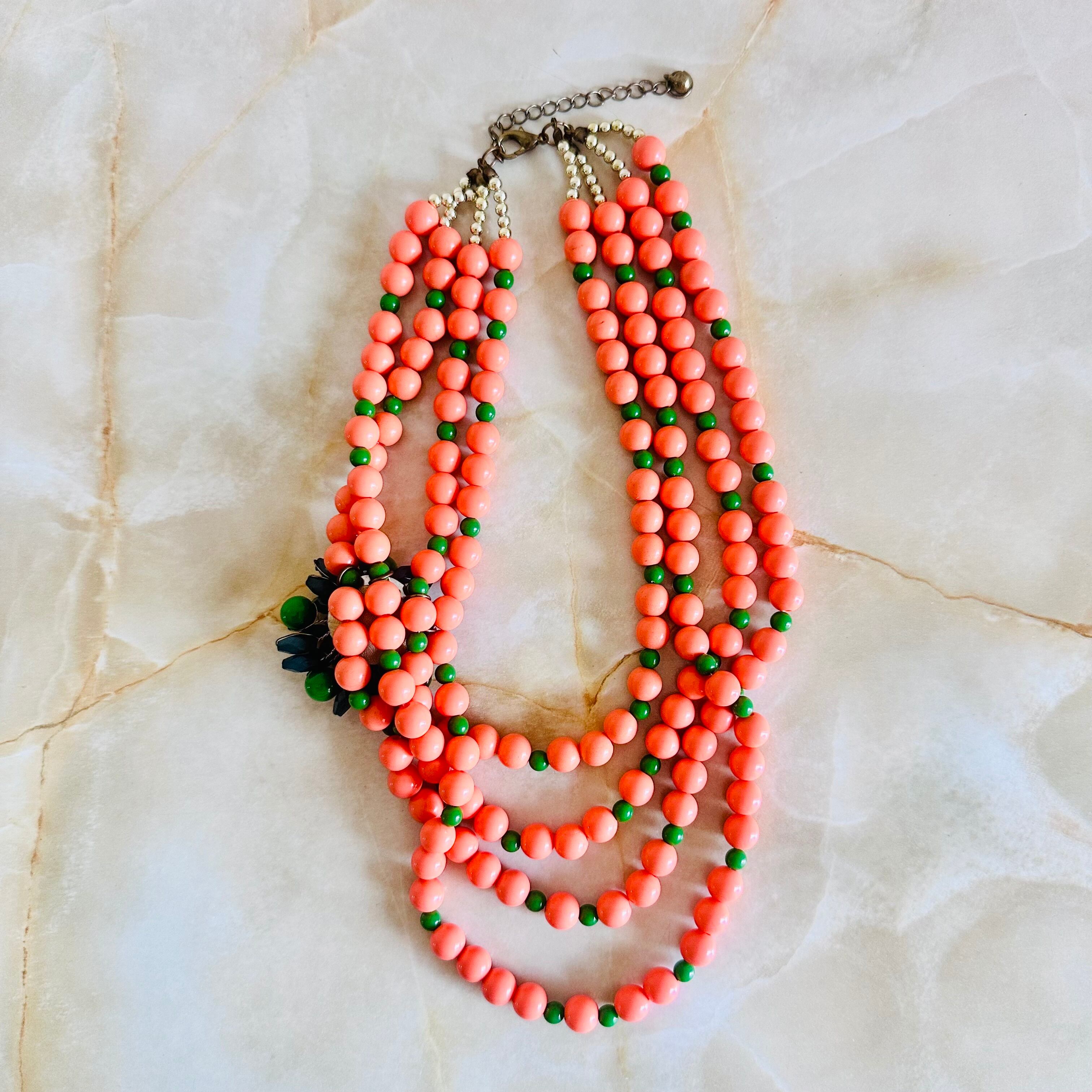 オレンジ、グリーン✖️アンティークゴールドカラーのネックレスです。