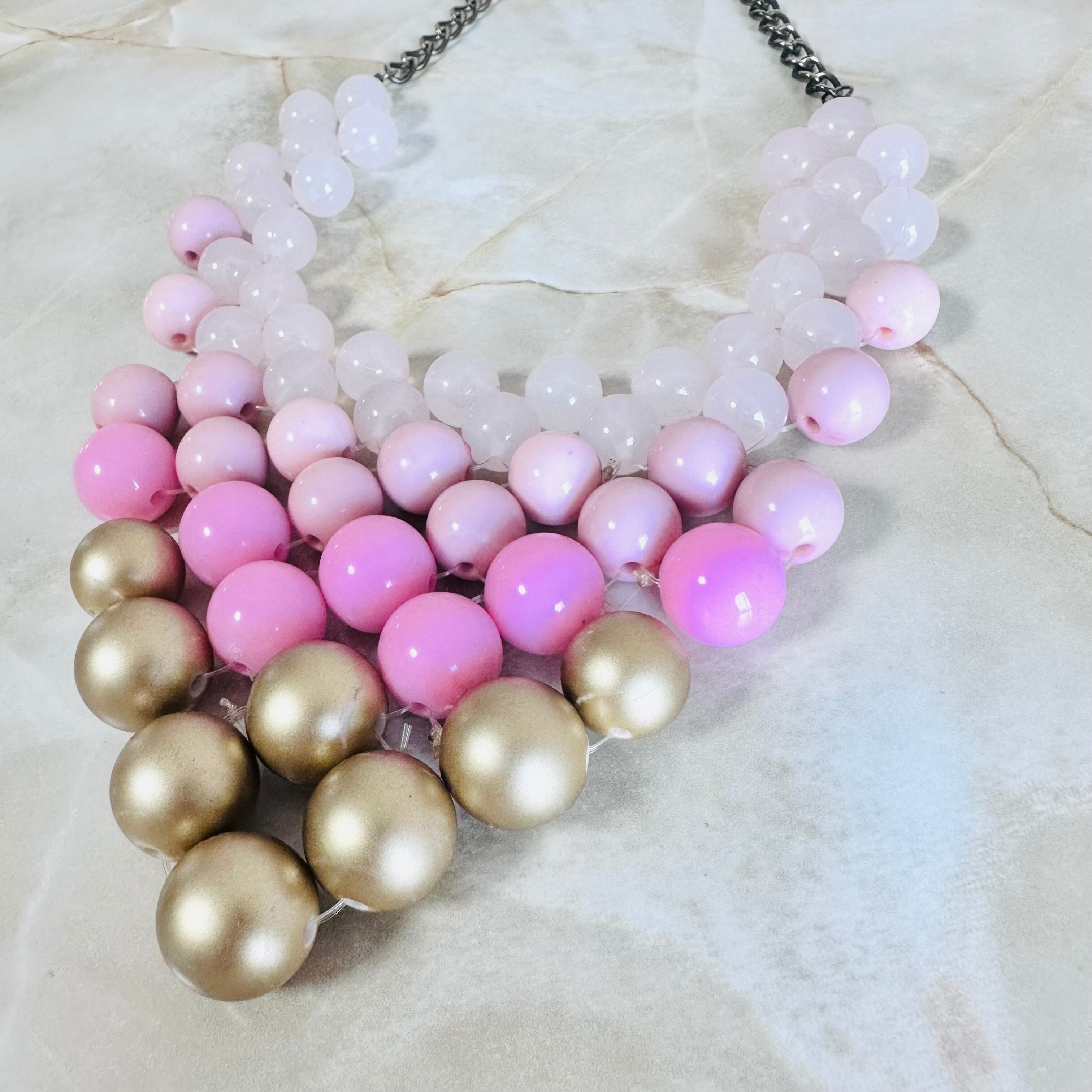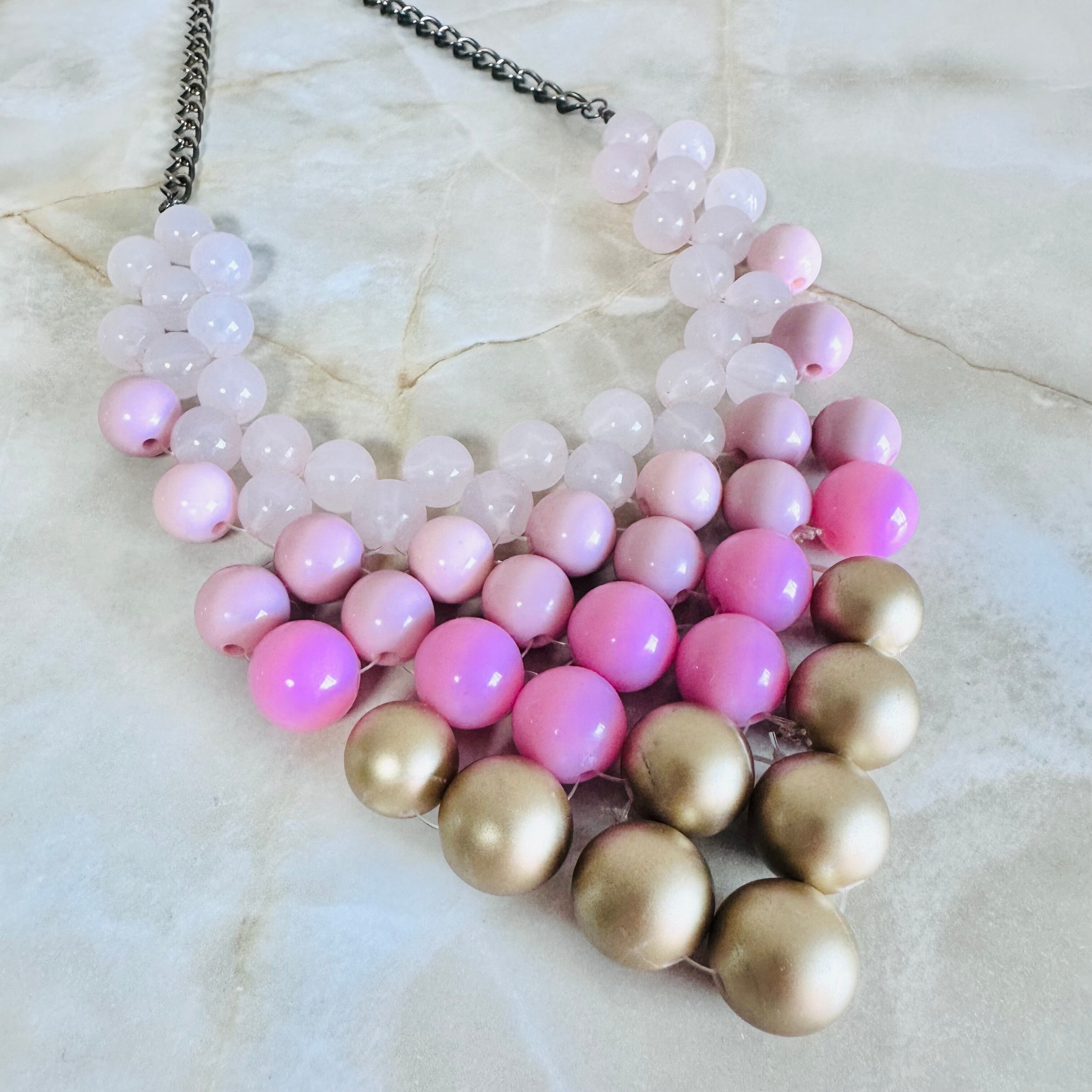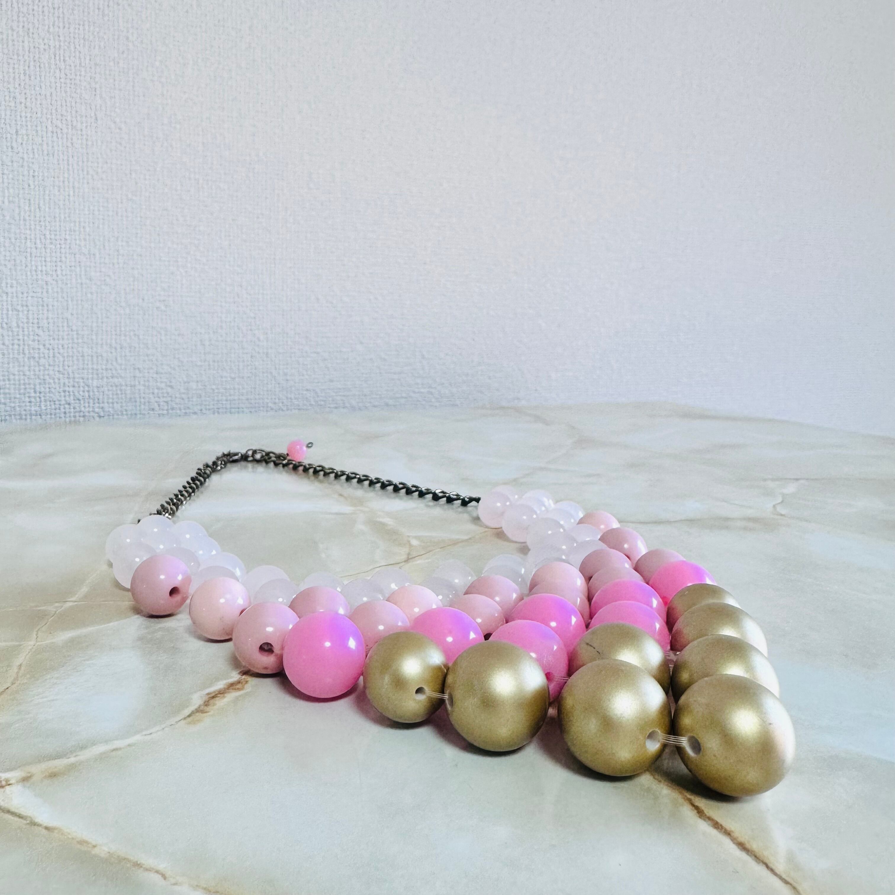 ピンク系、マットゴールド✖️アンティークゴールドカラーのネックレスです。