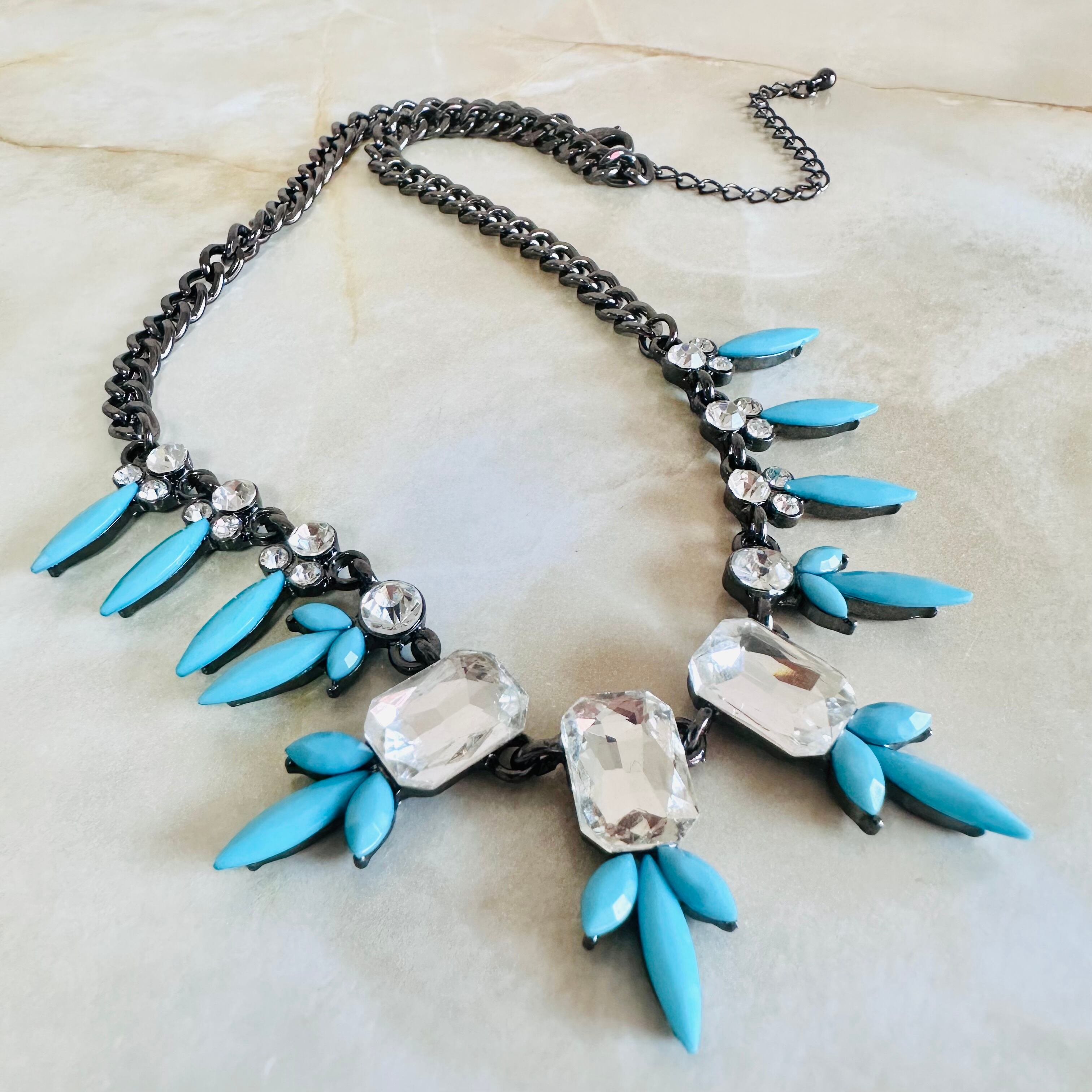 ブルー、クリア✖️ブラックシルバーカラーのネックレスです。