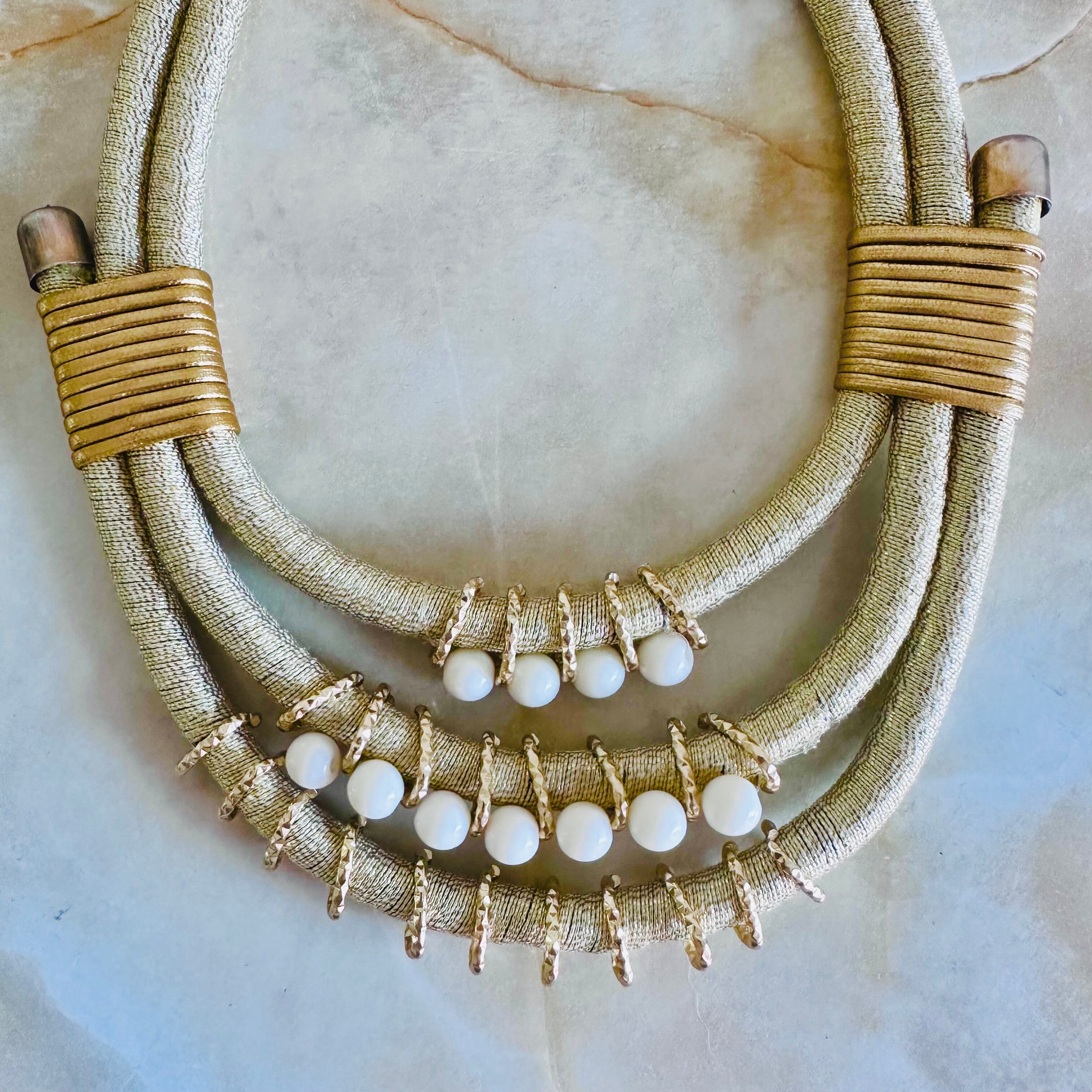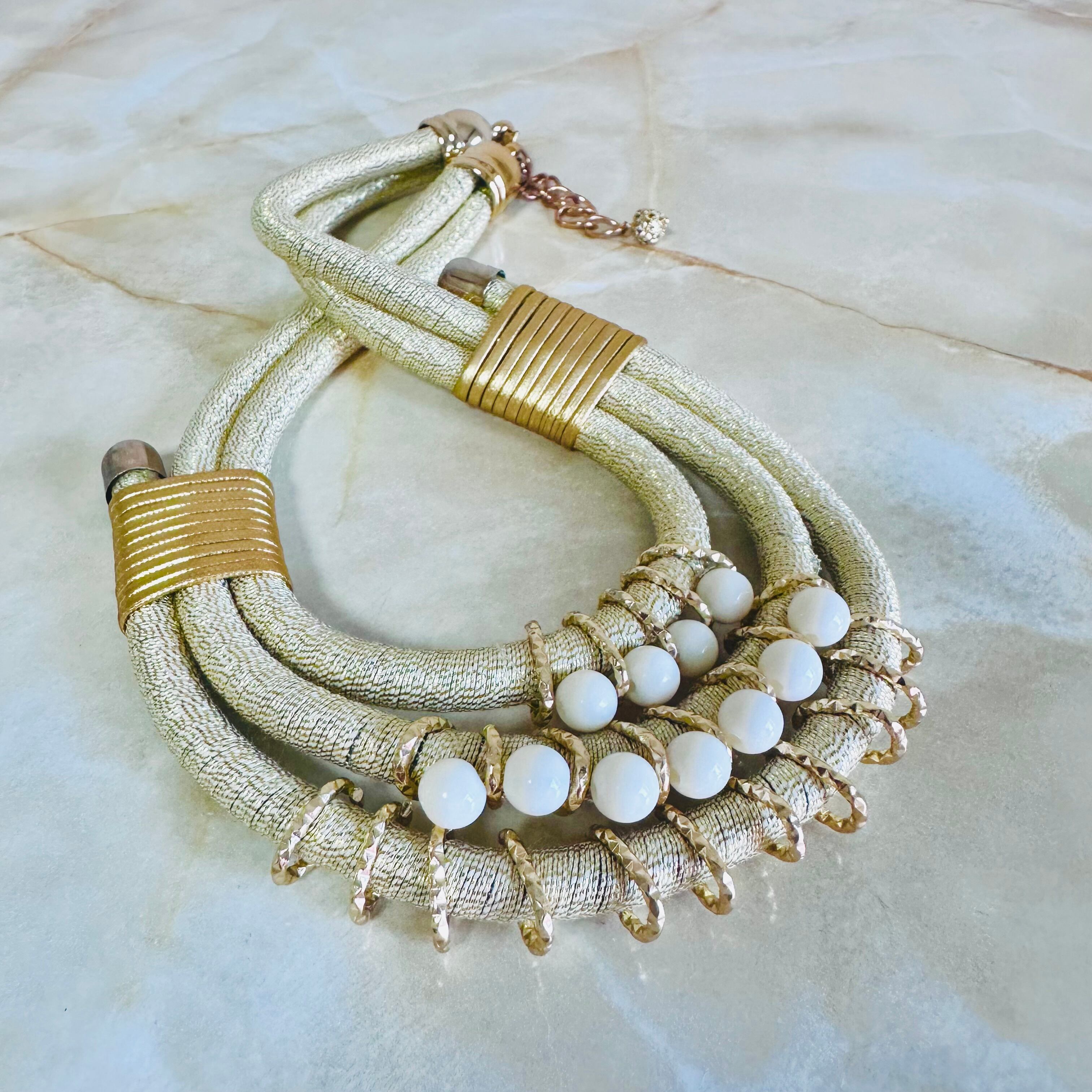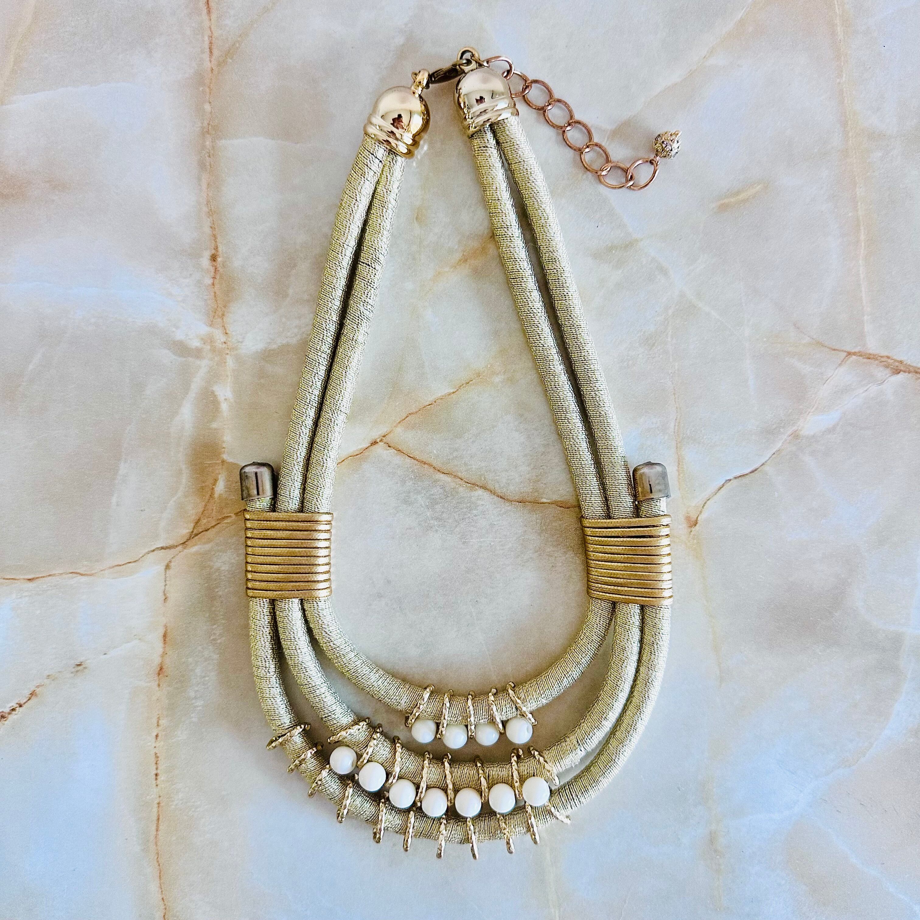 ゴールド、オフホワイト、✖️アンティークゴールドカラーのネックレスです。