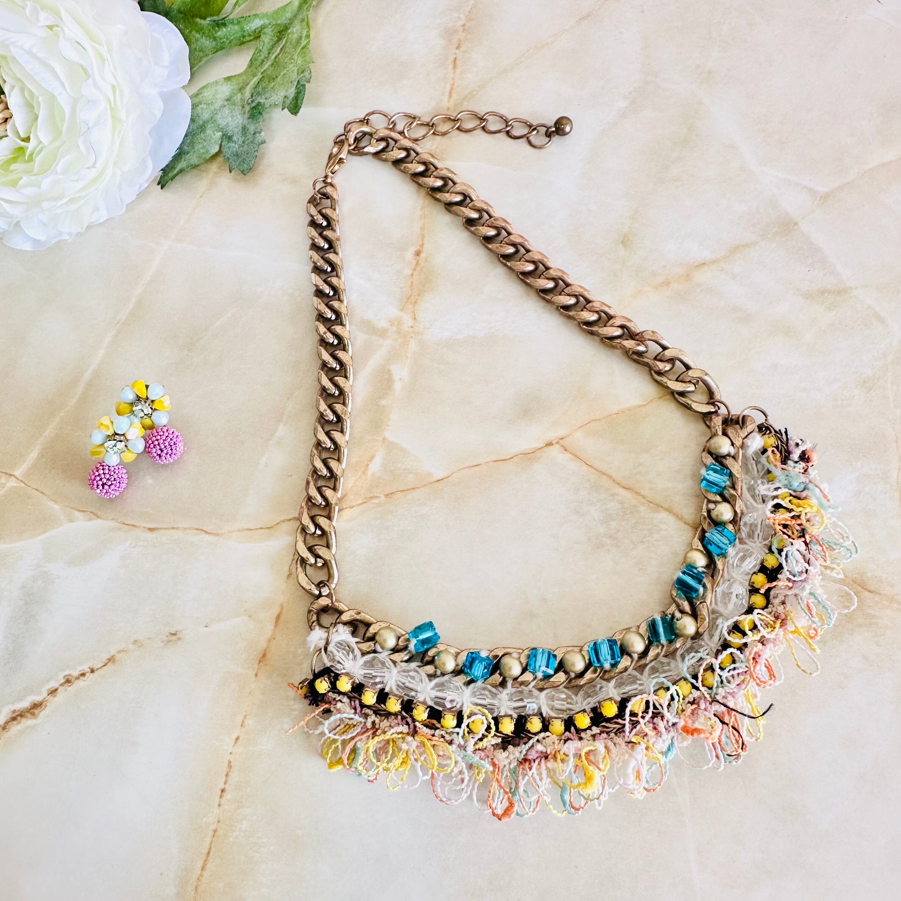 マルチカラー✖️アンティークゴールドカラーのネックレスです。