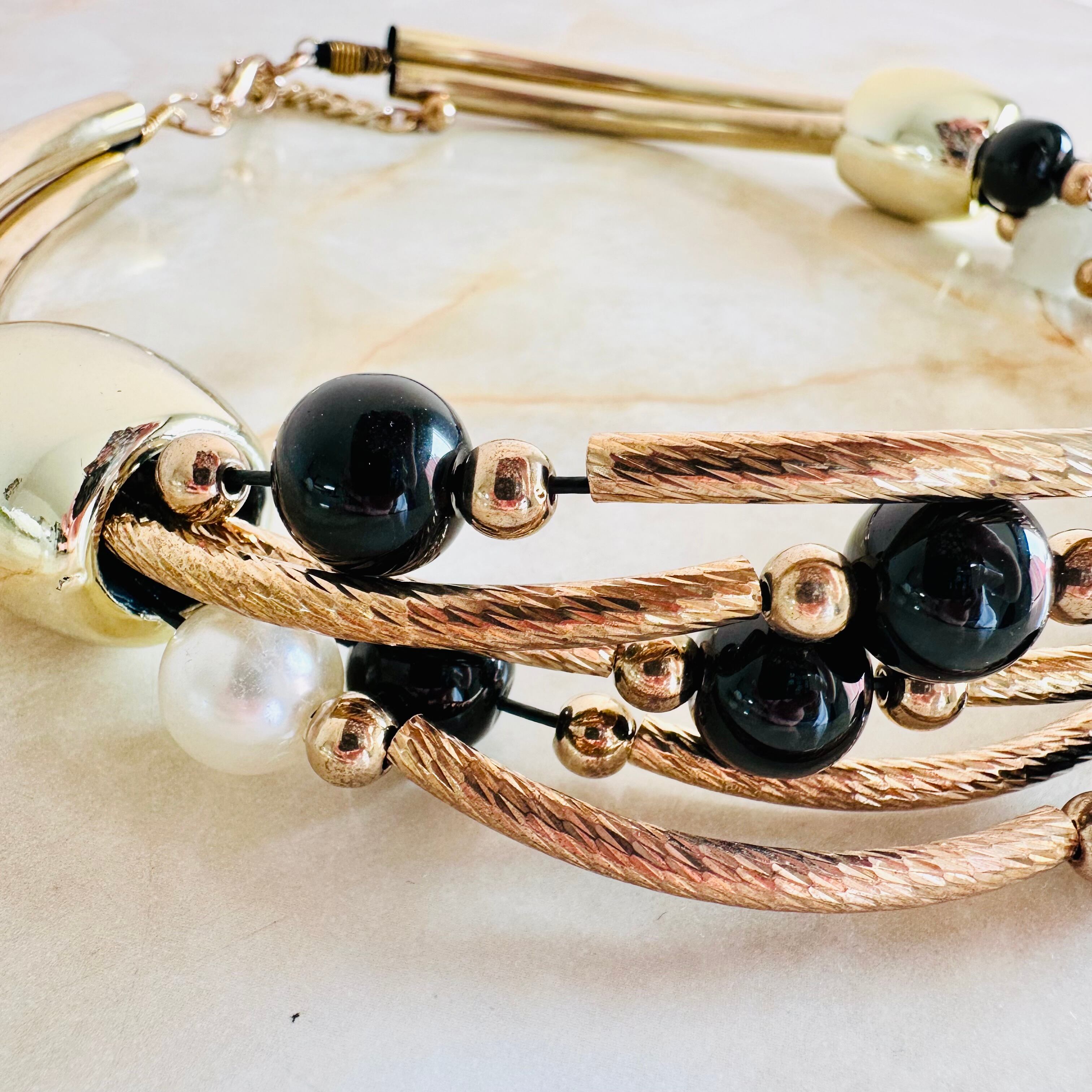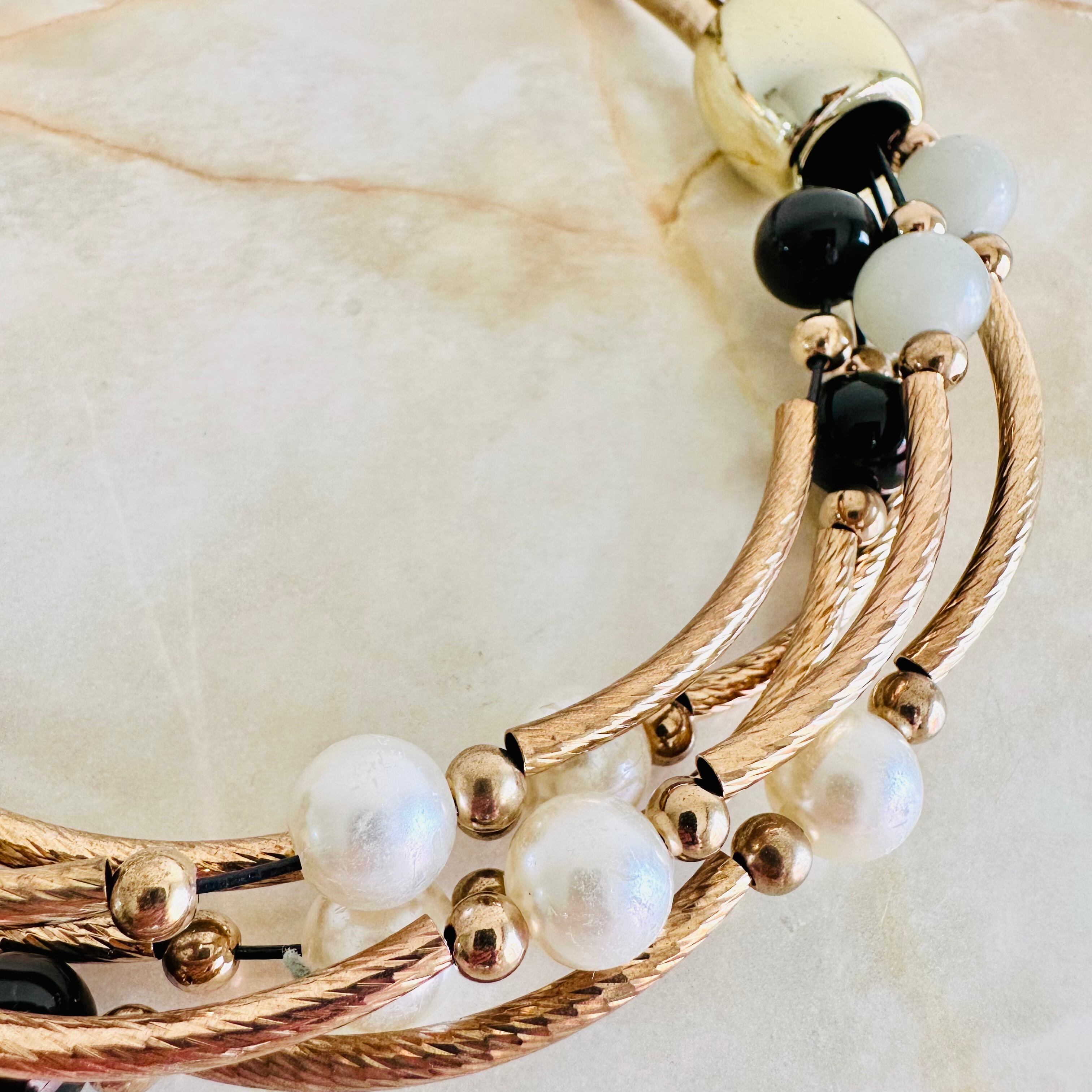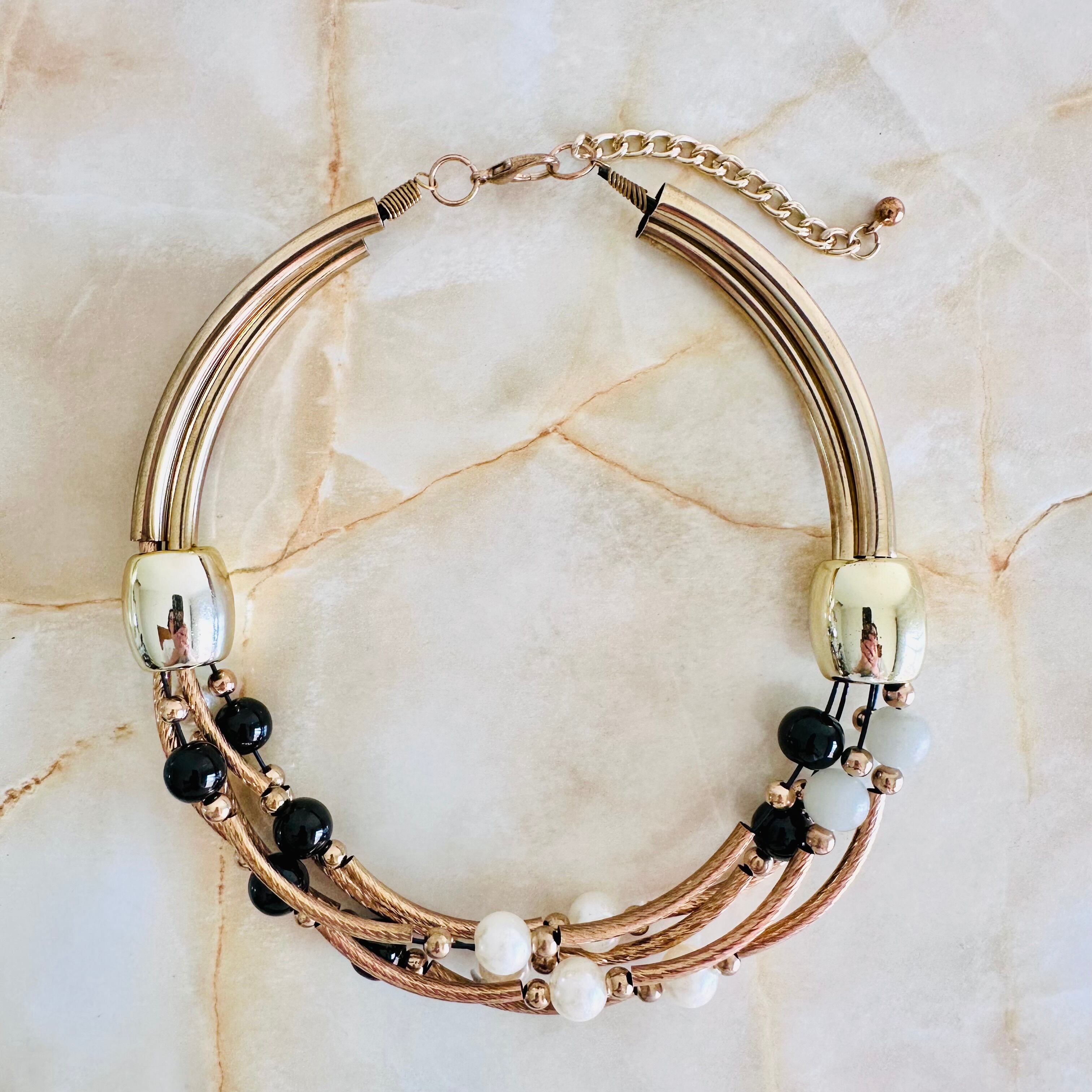 ブラック、パール、ホワイト✖️アンティークゴールドカラーのネックレスです。