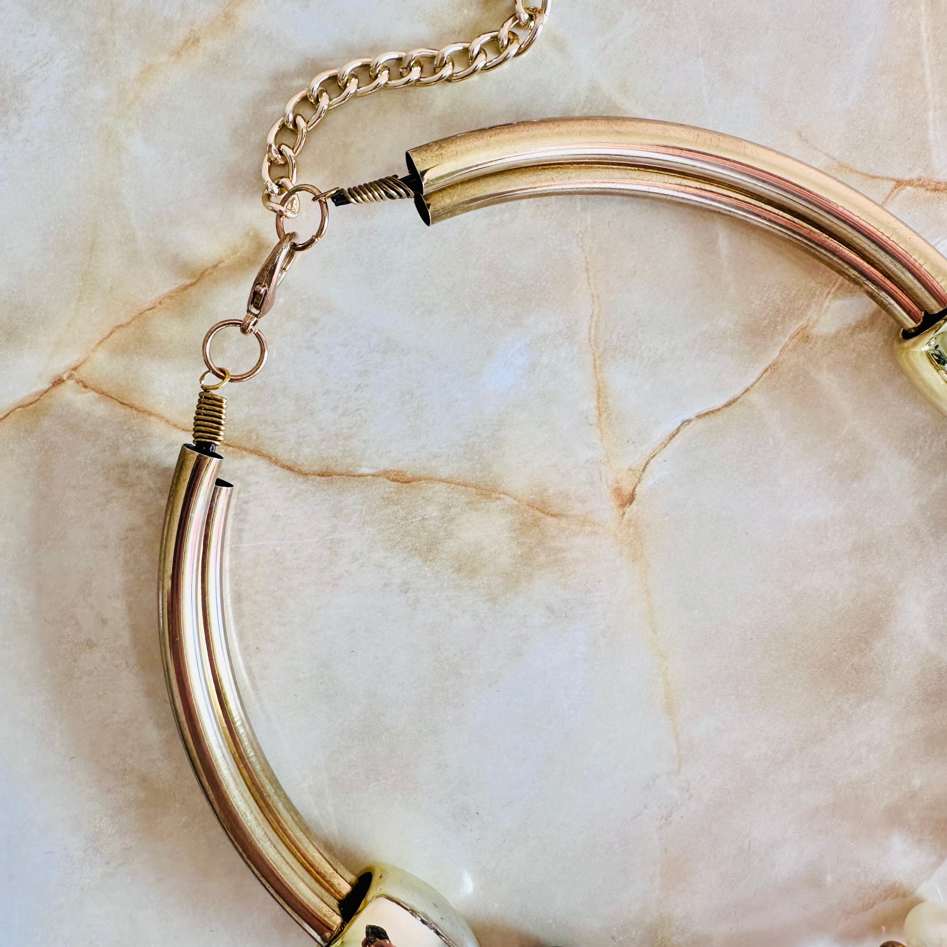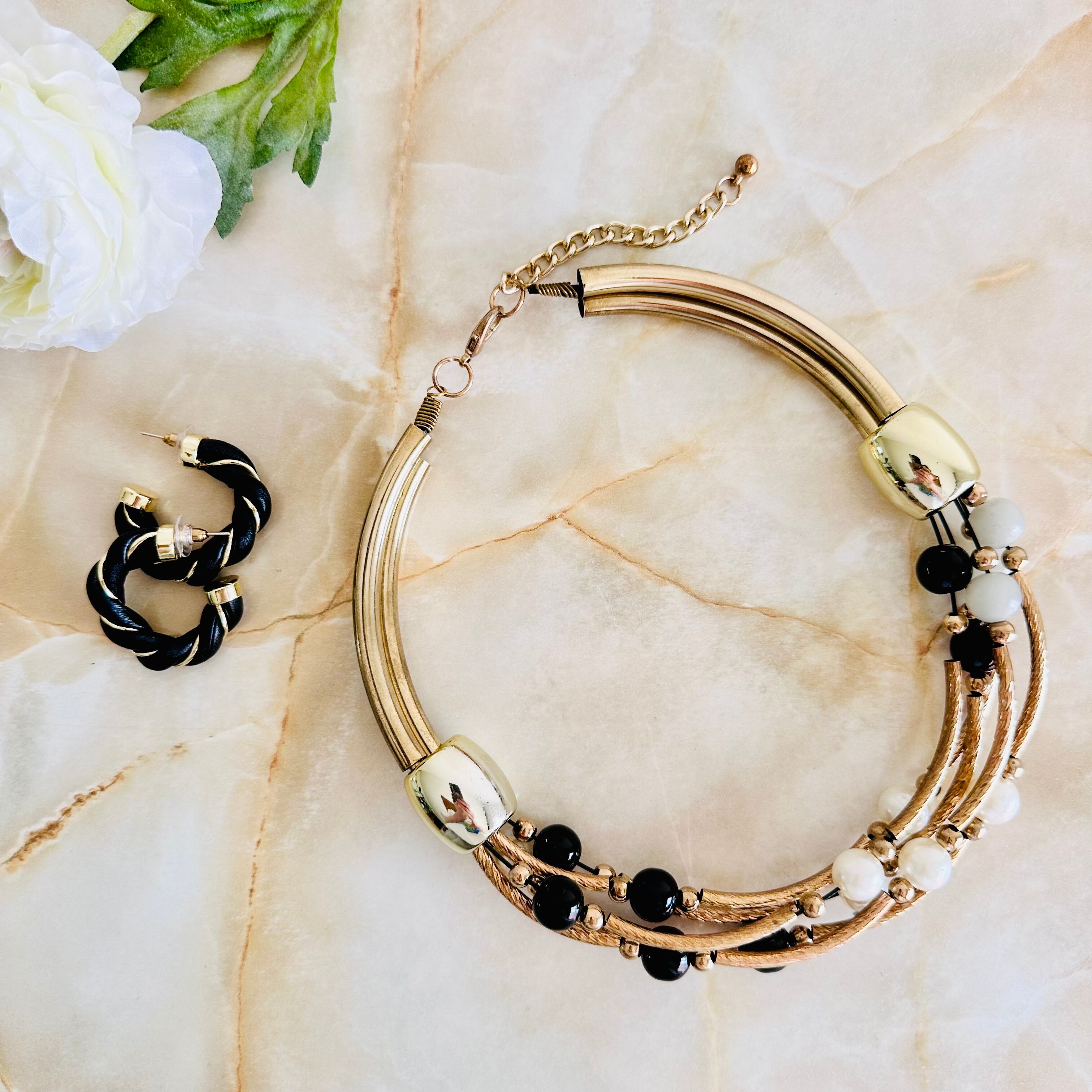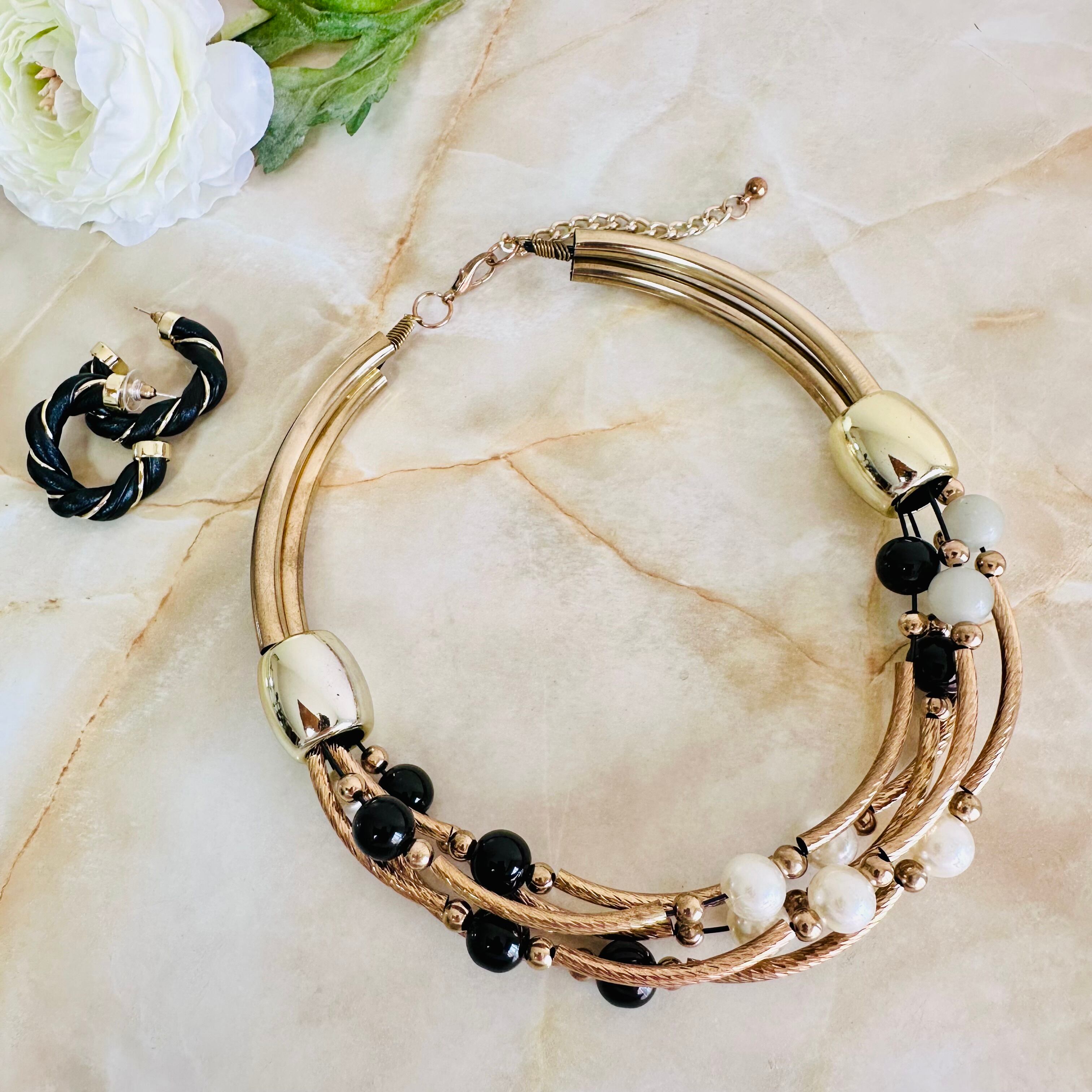 ブラック、パール、ホワイト✖️アンティークゴールドカラーのネックレスです。