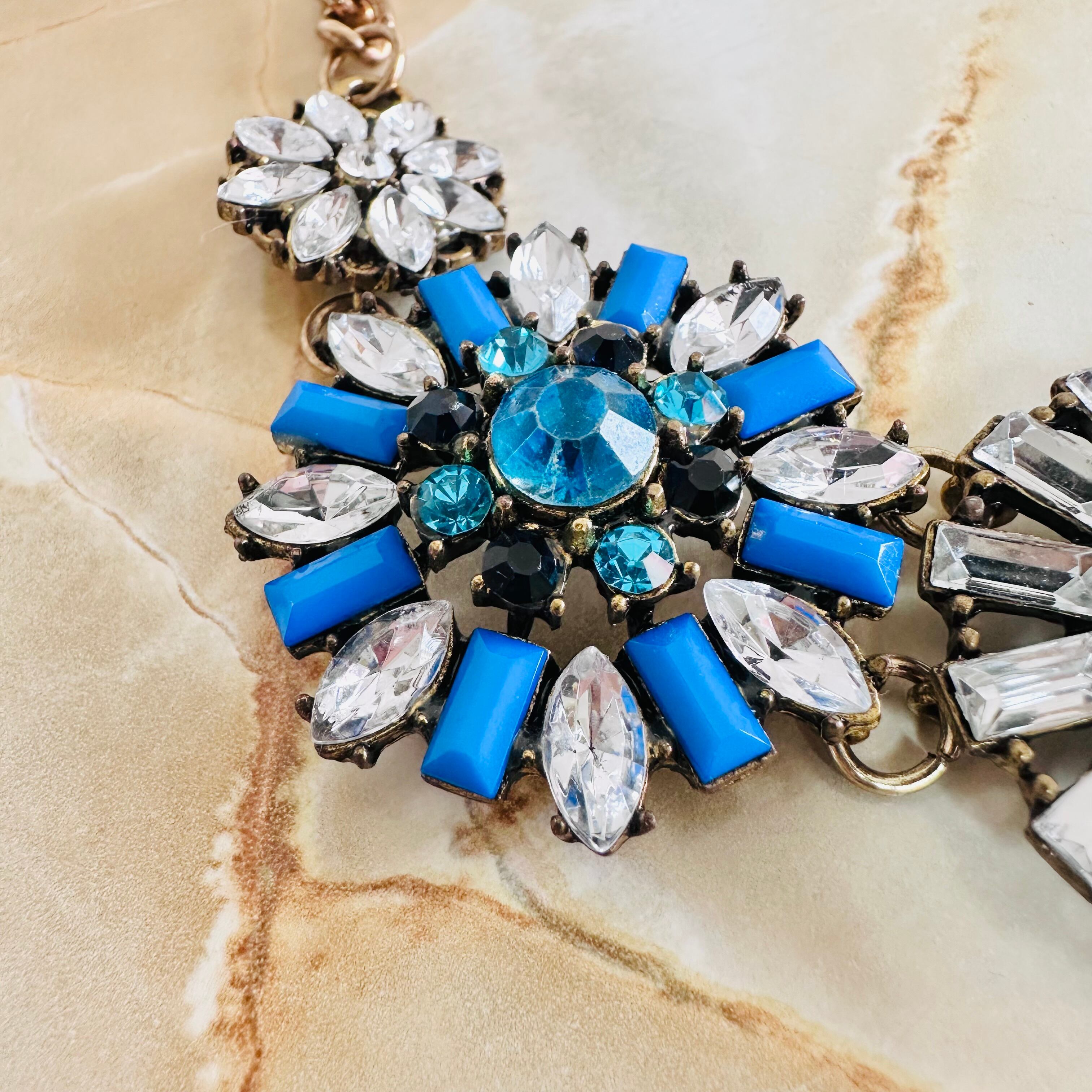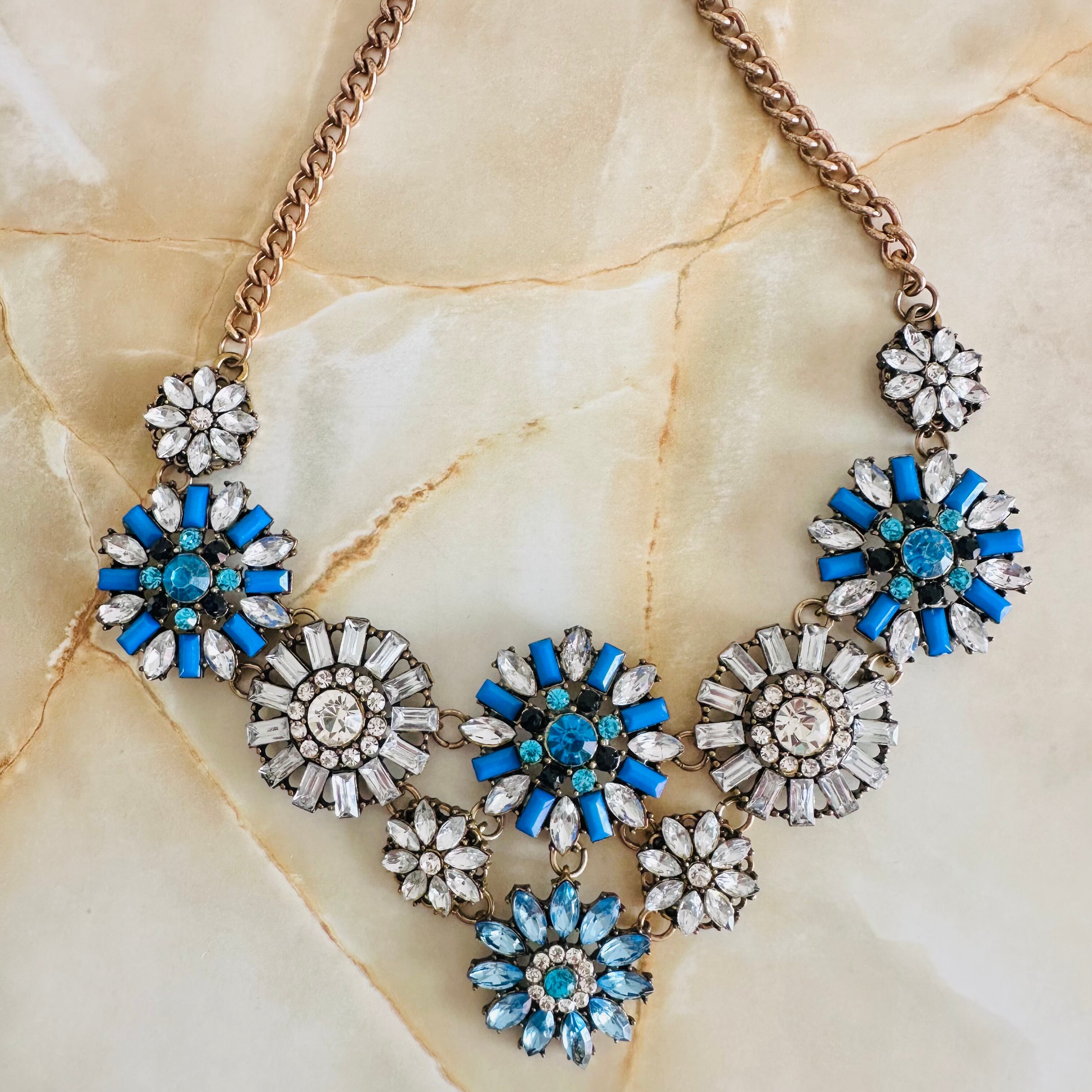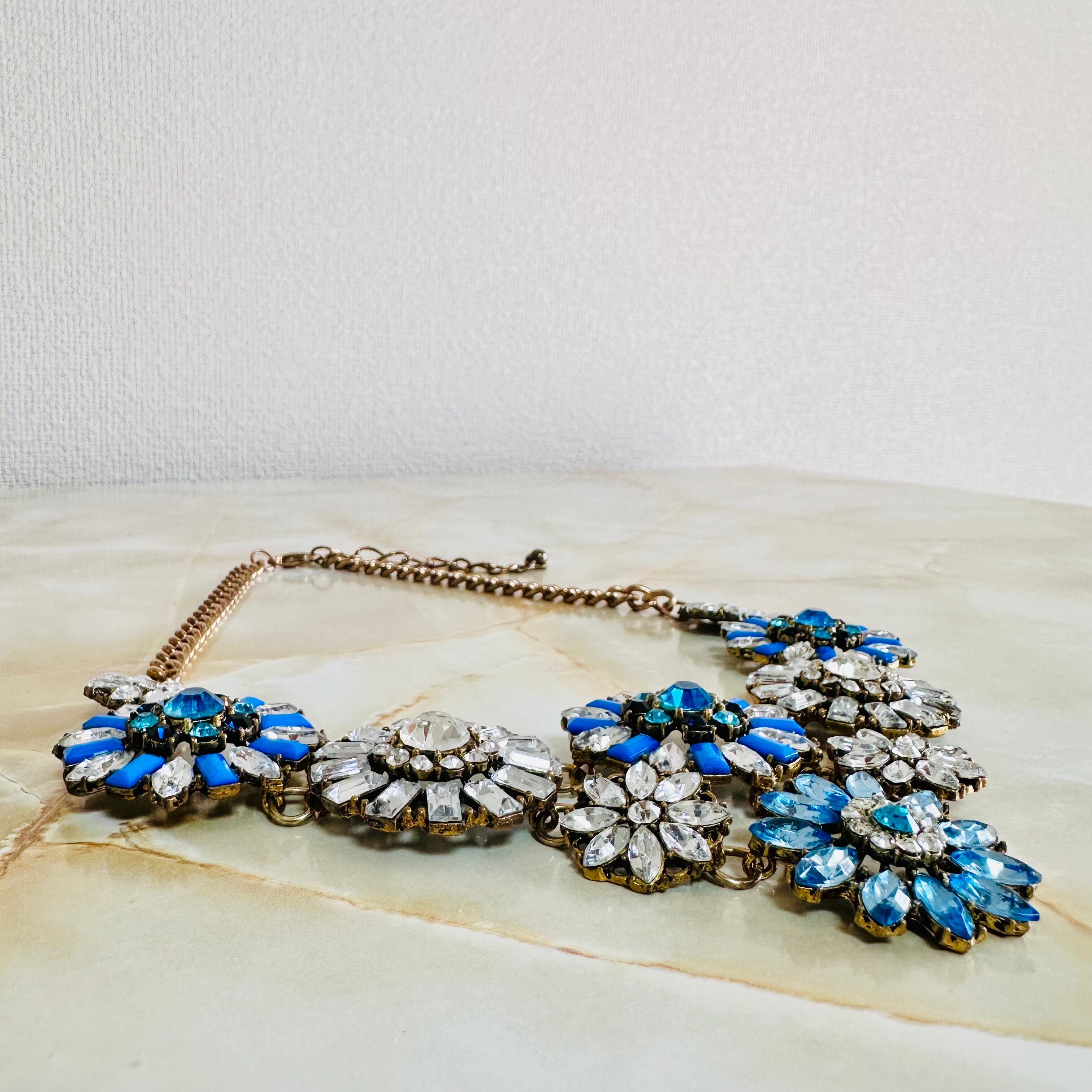 ブルー系、クリア✖️アンティークゴールドカラーのネックレスです。