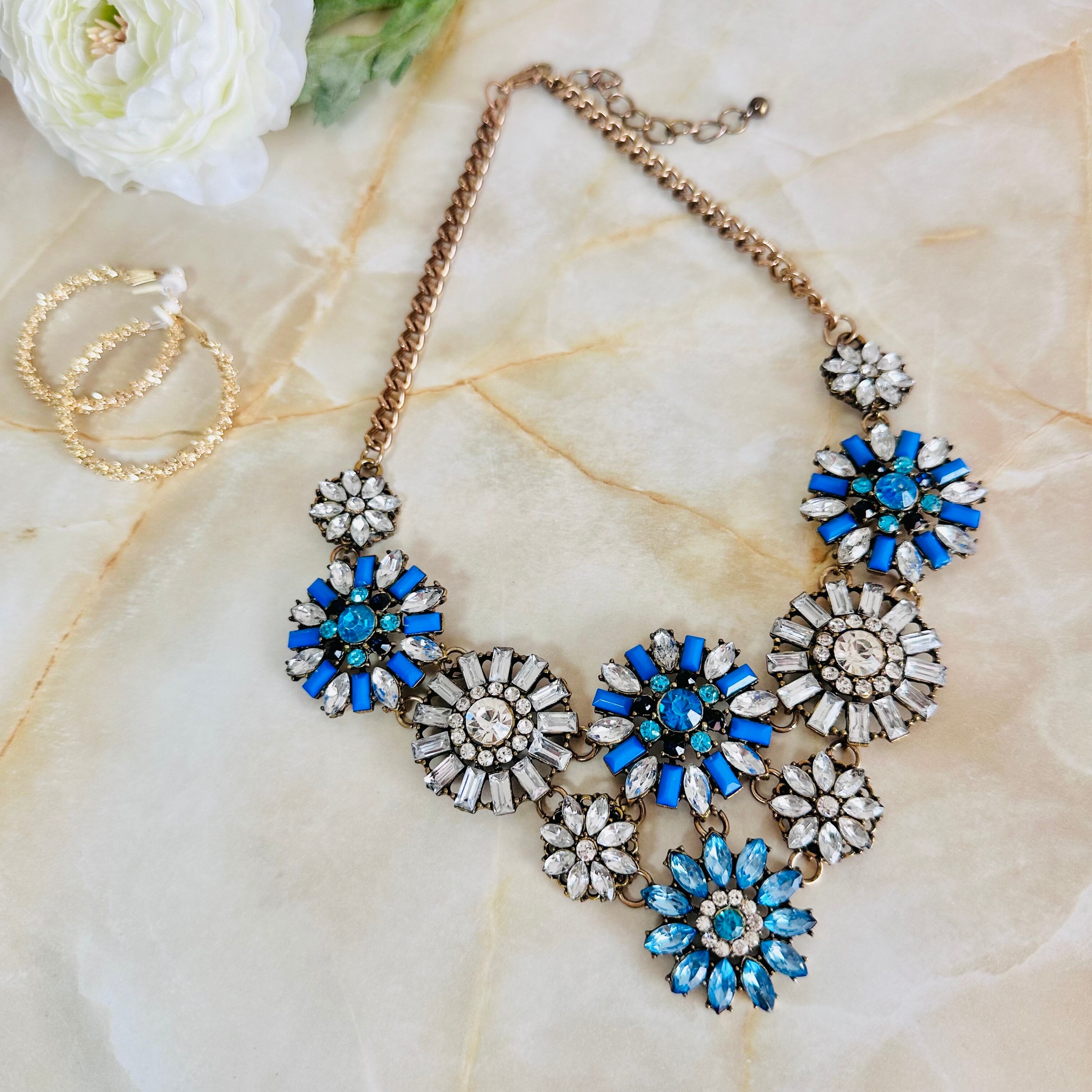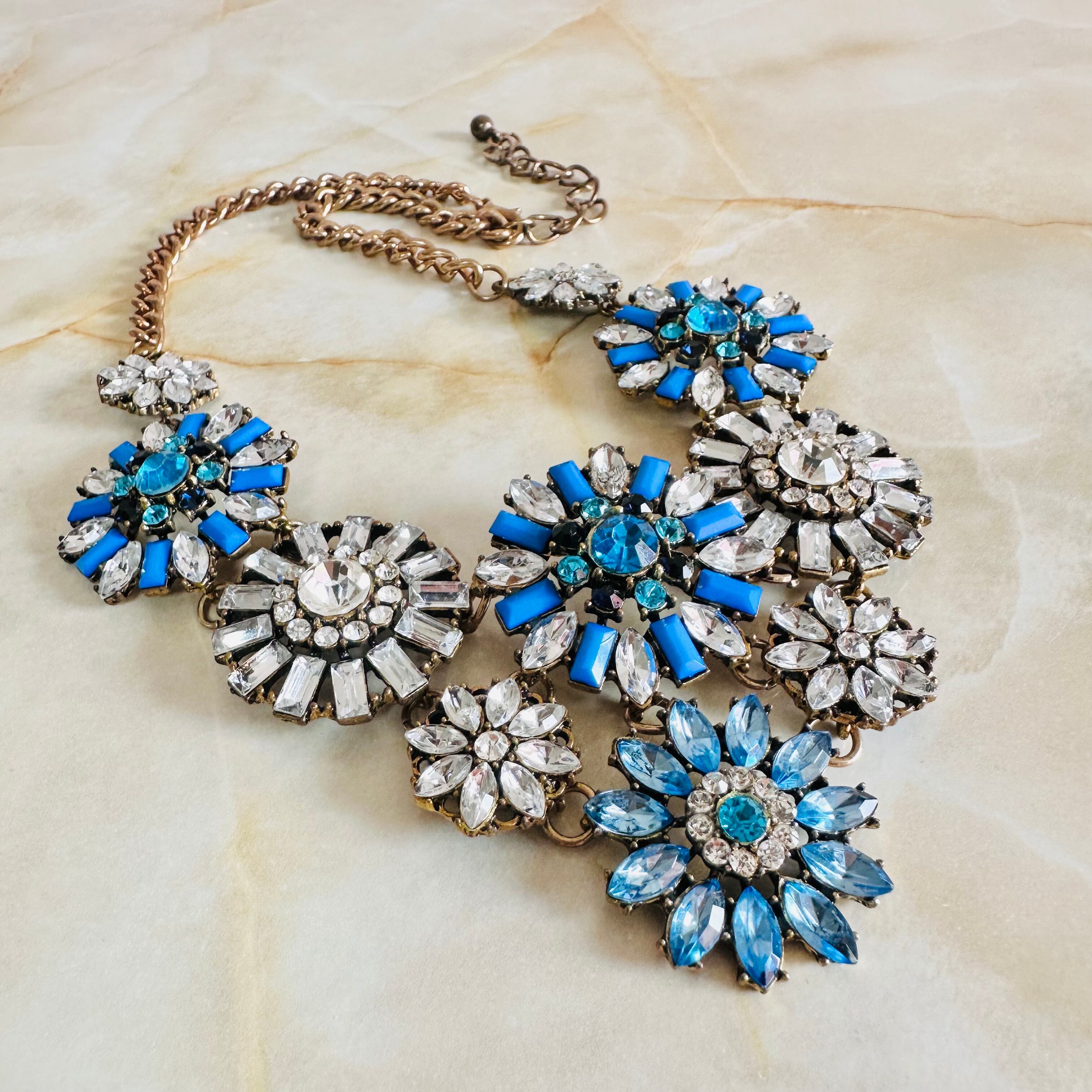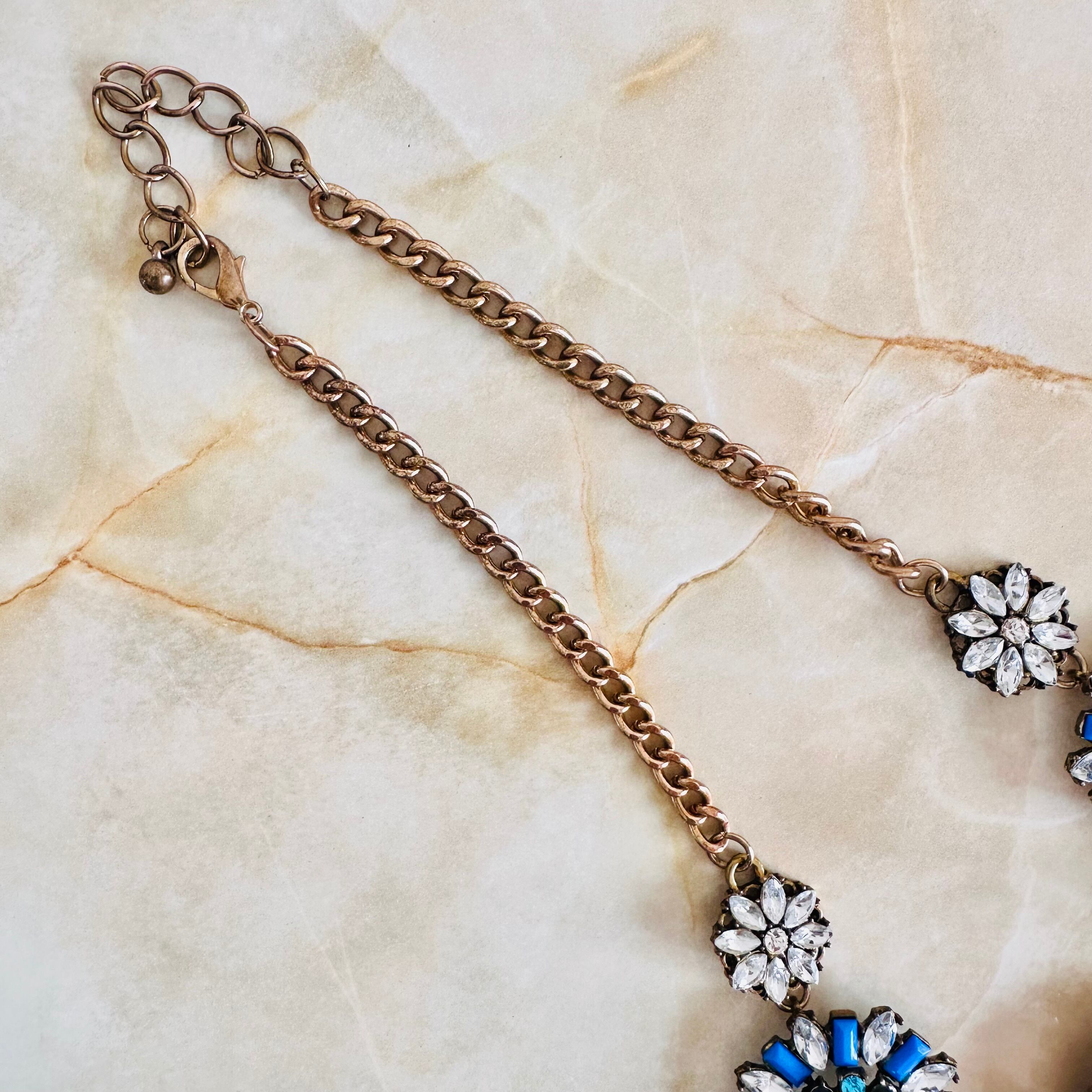 ブルー系、クリア✖️アンティークゴールドカラーのネックレスです。