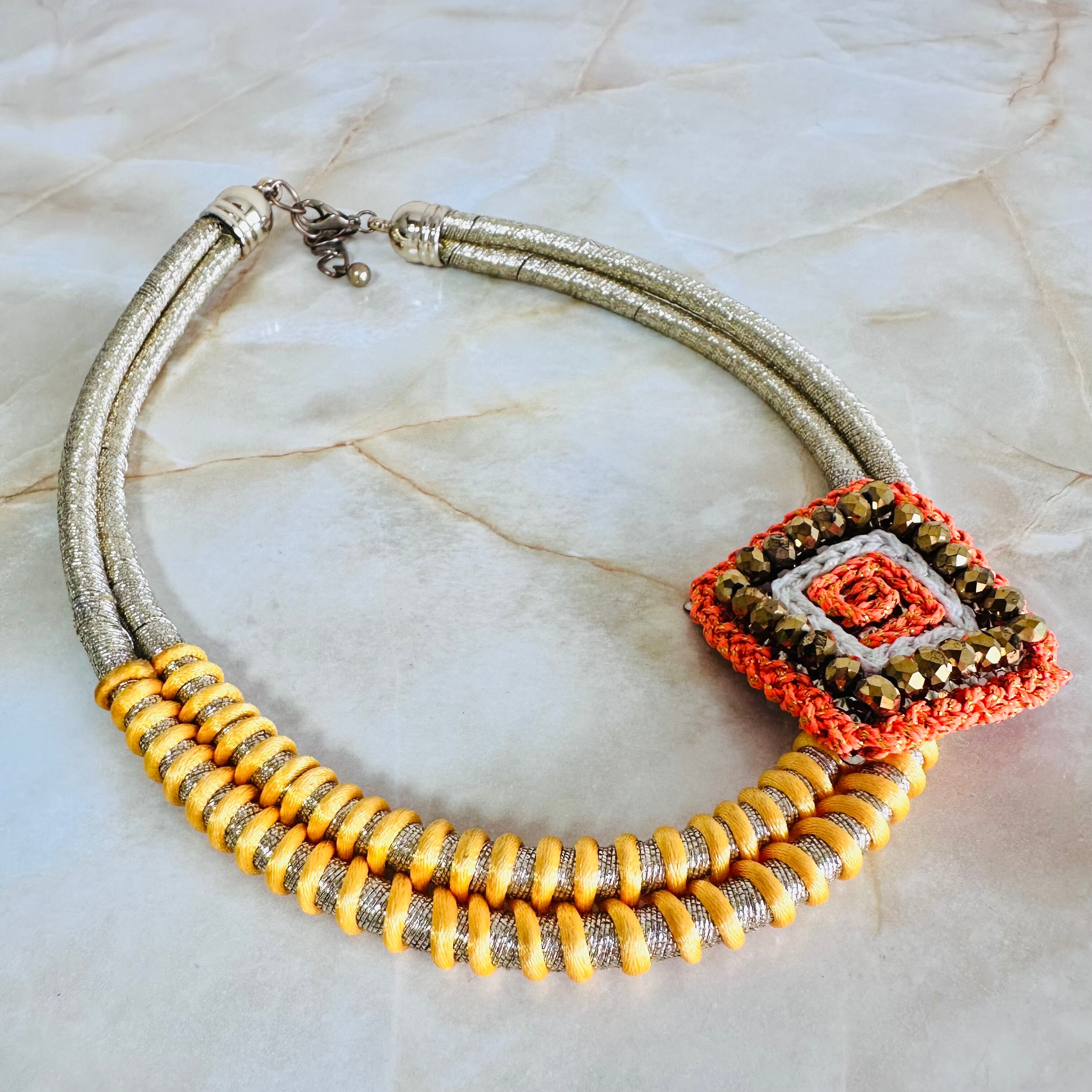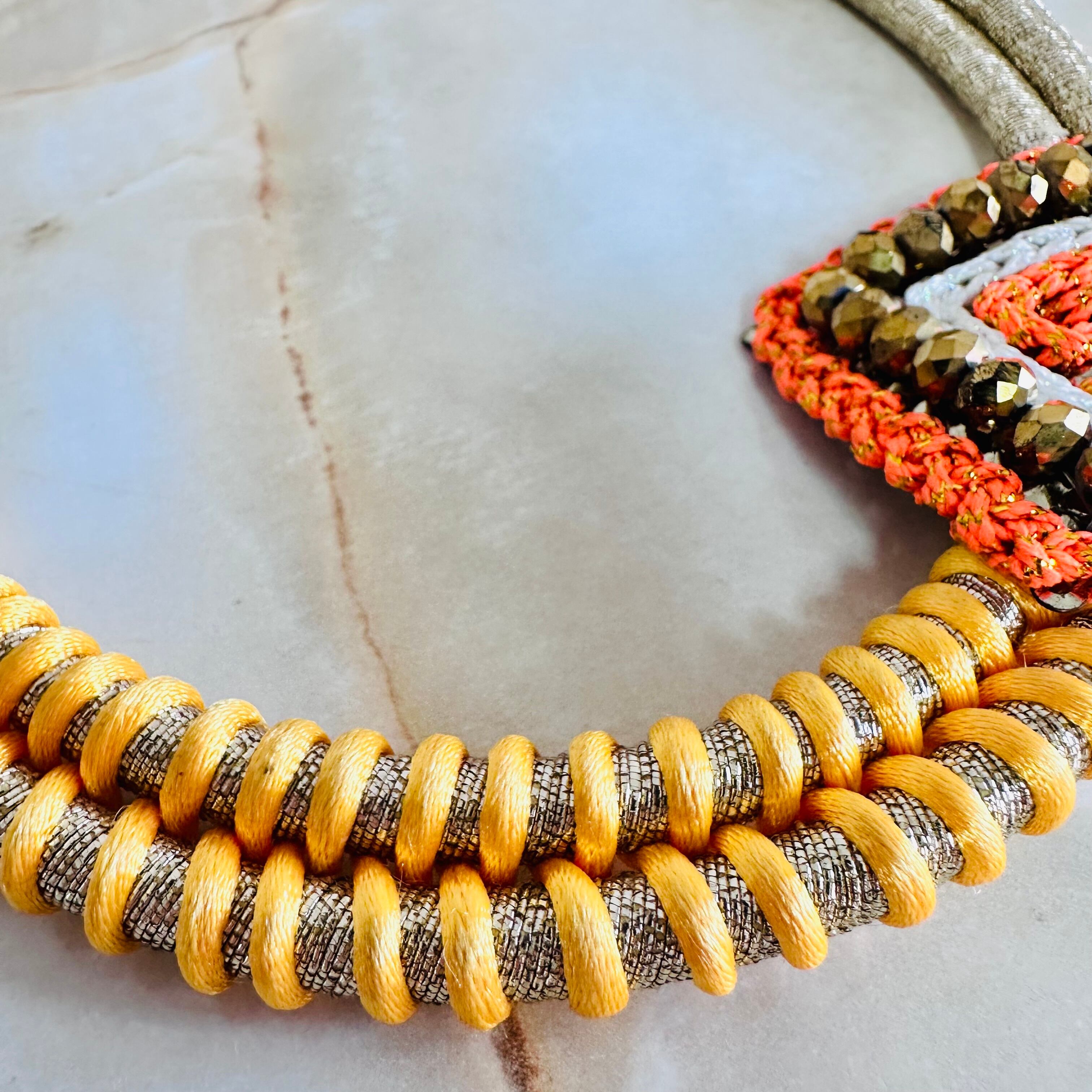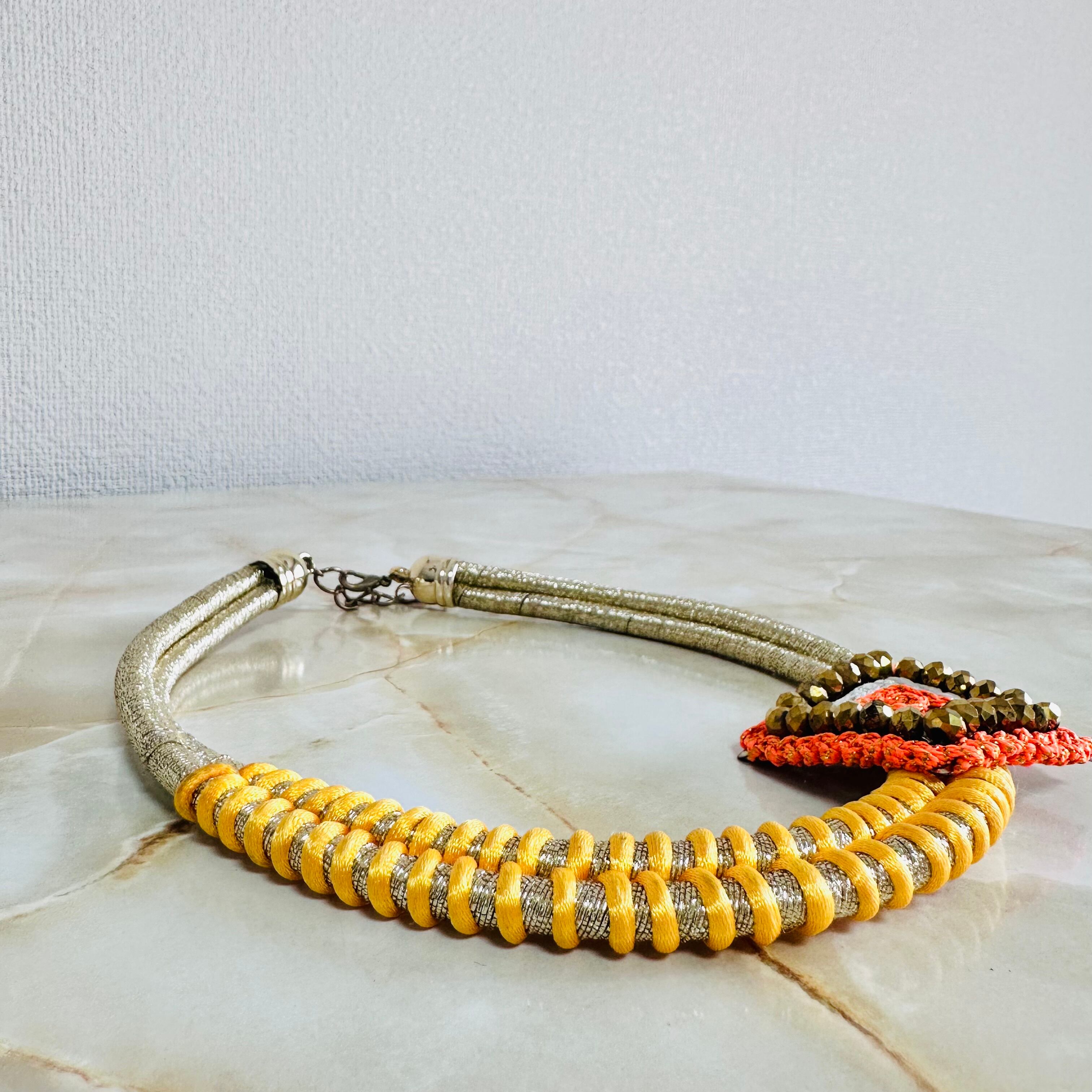 オレンジ系✖️ゴールドカラーのネックレスです。