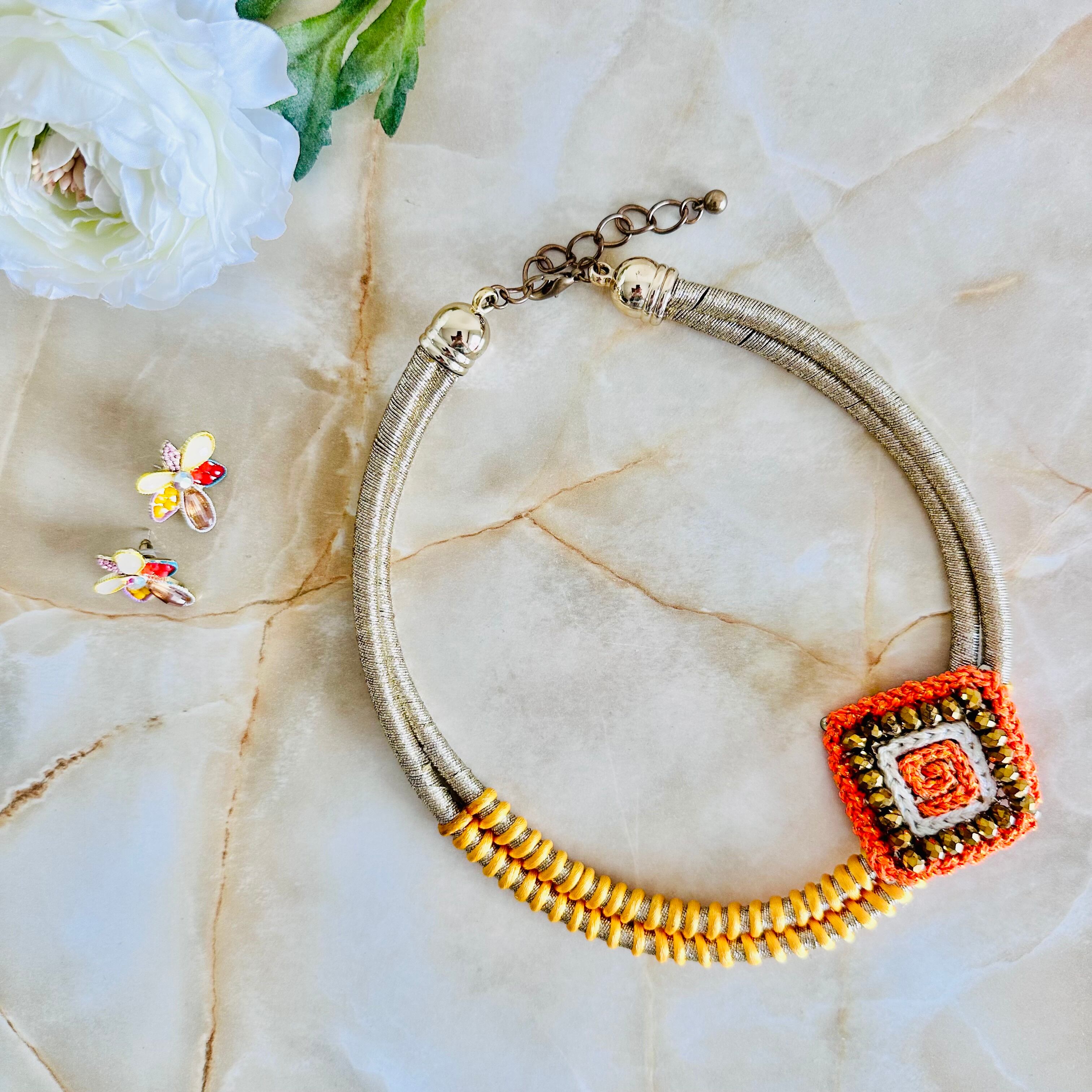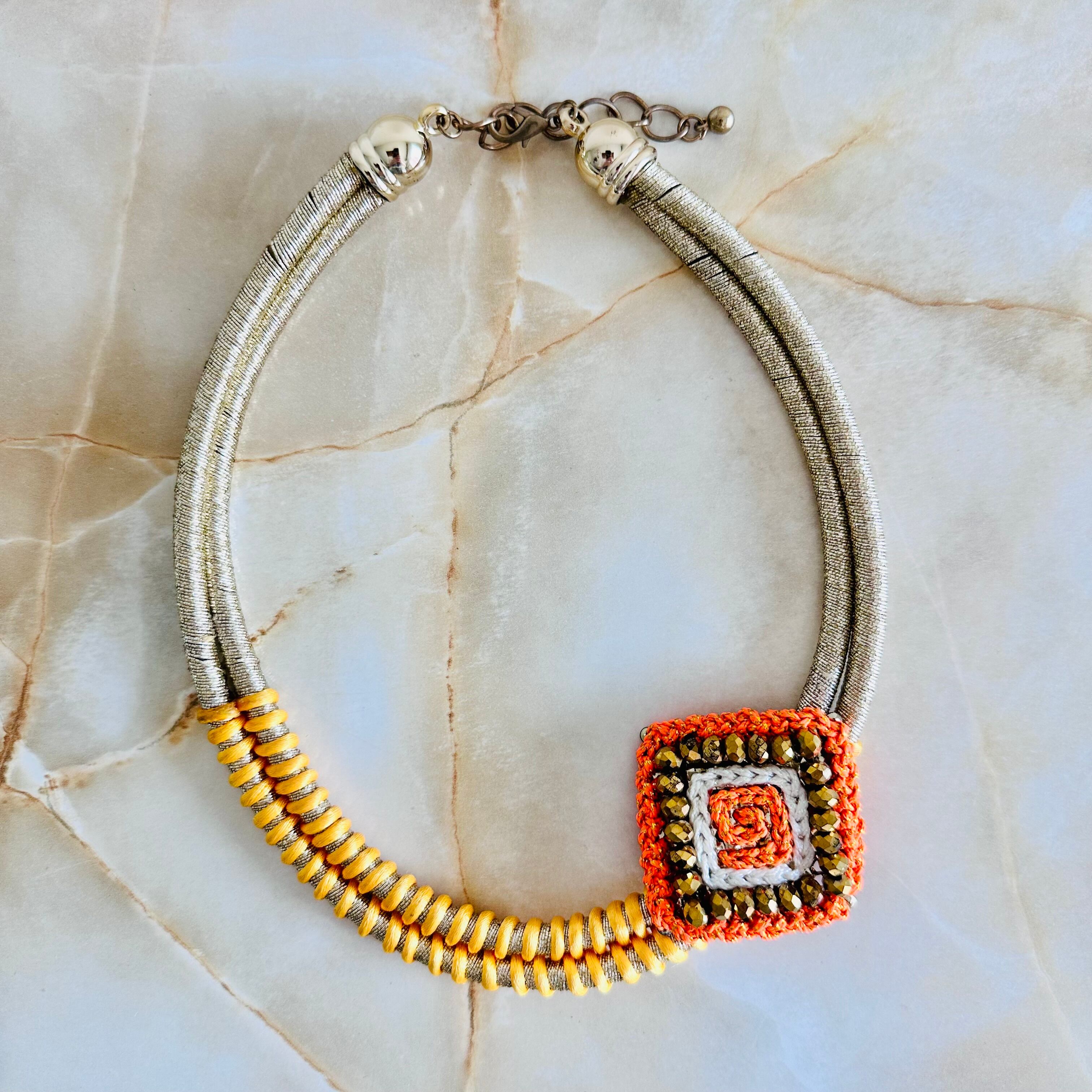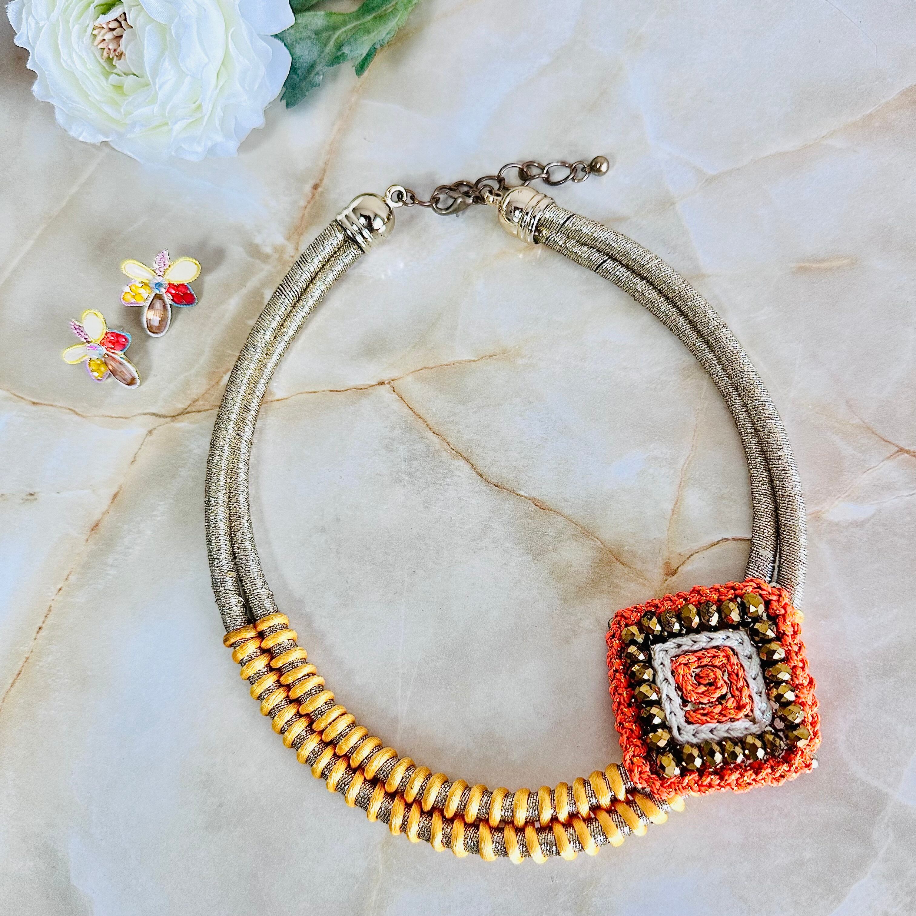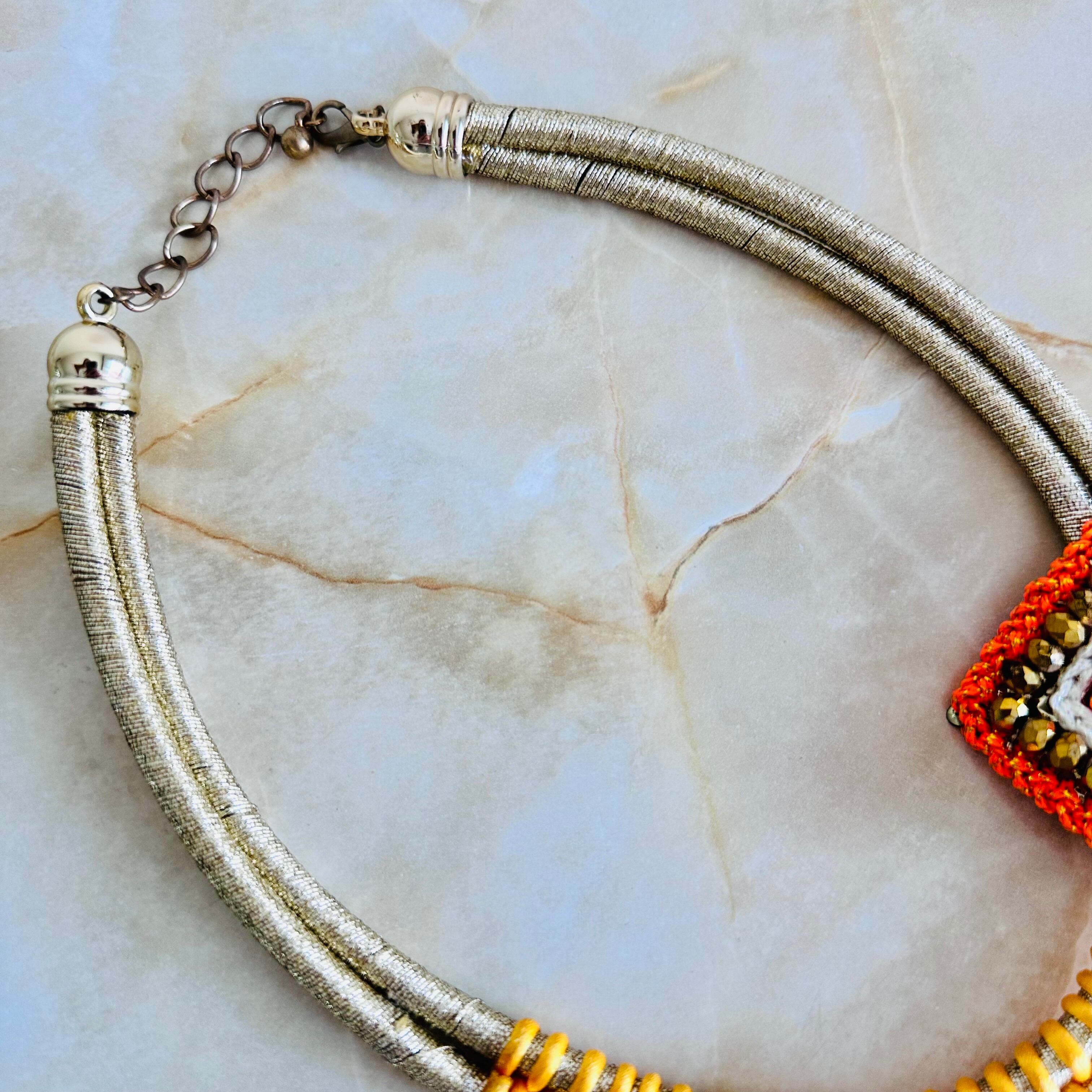 オレンジ系✖️ゴールドカラーのネックレスです。