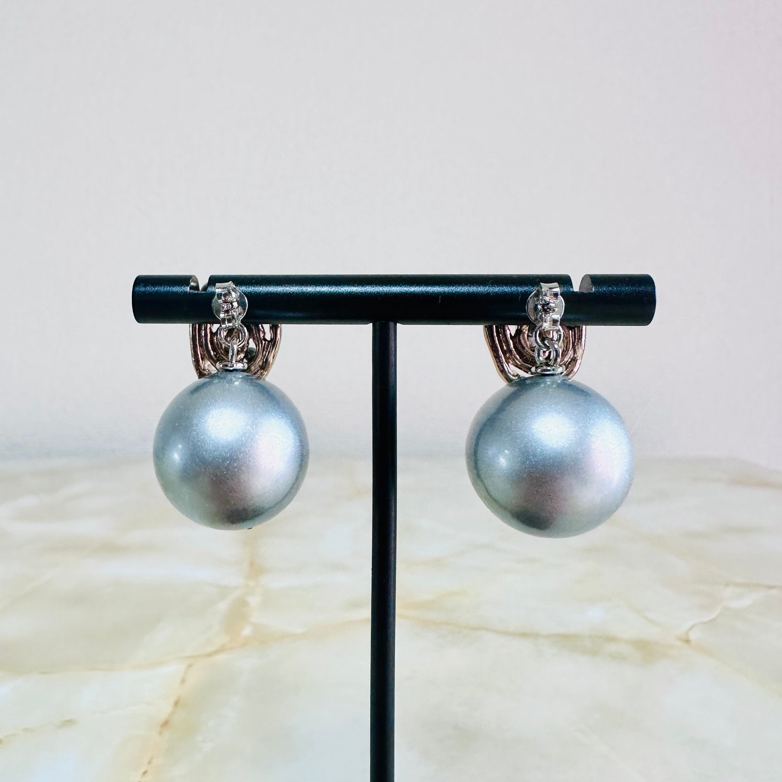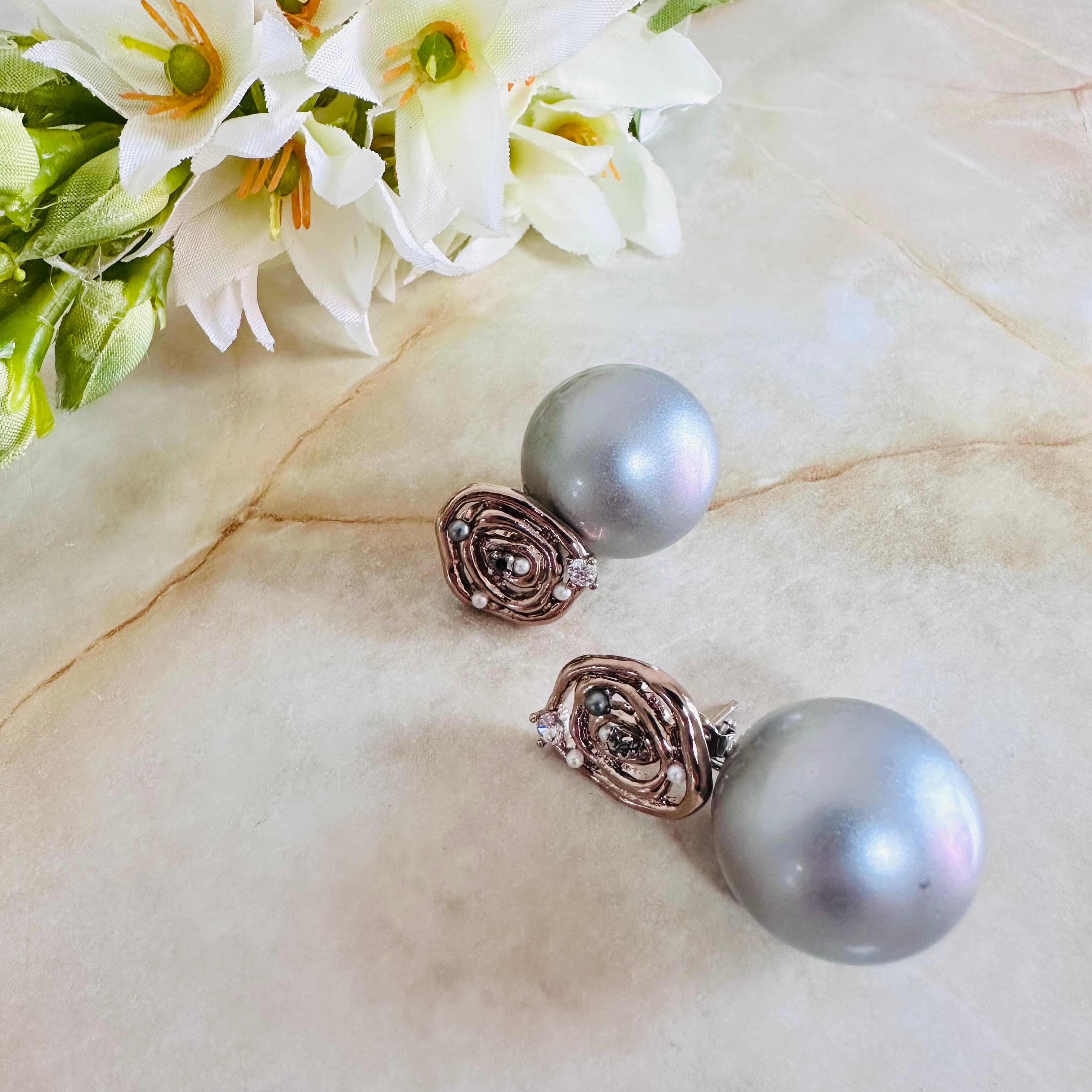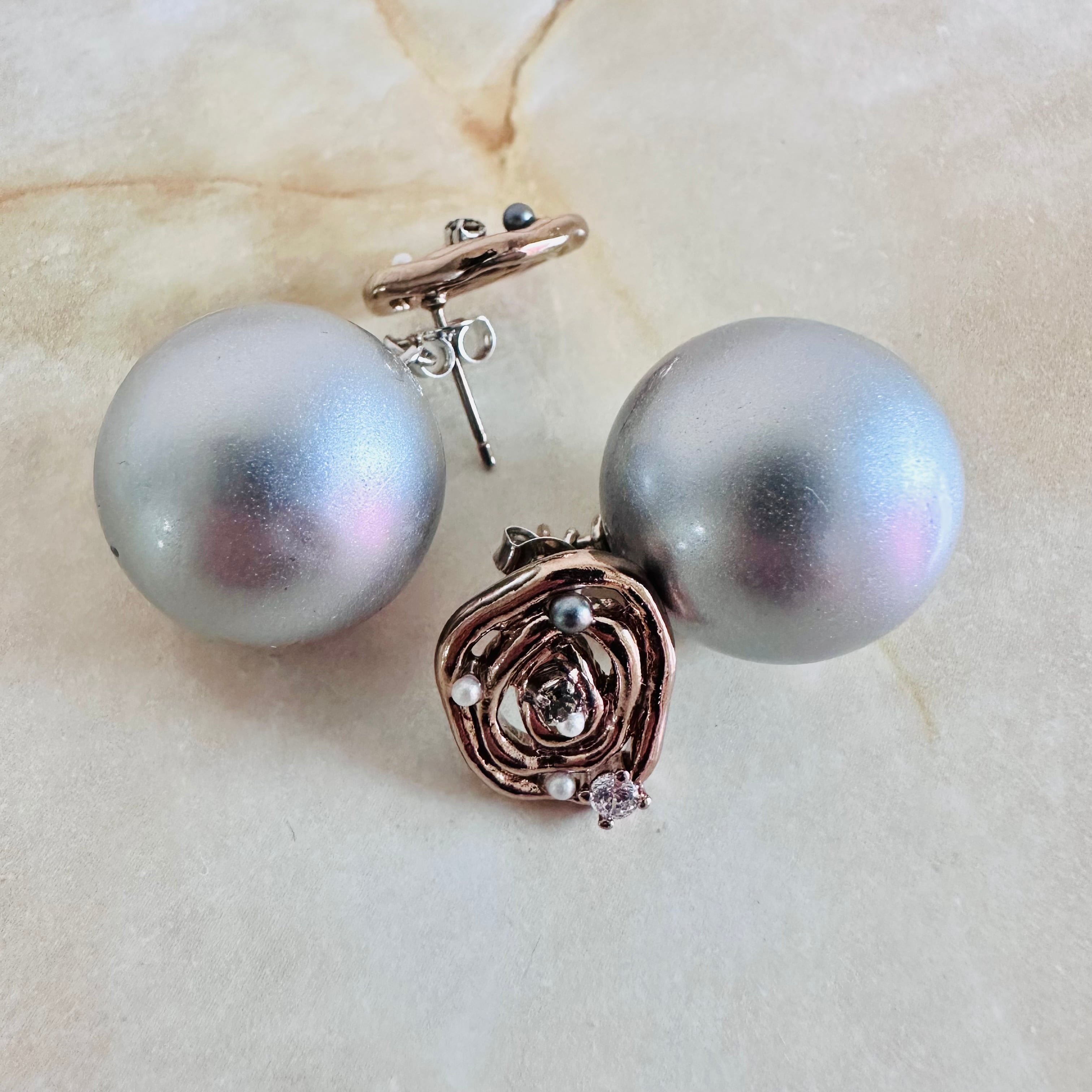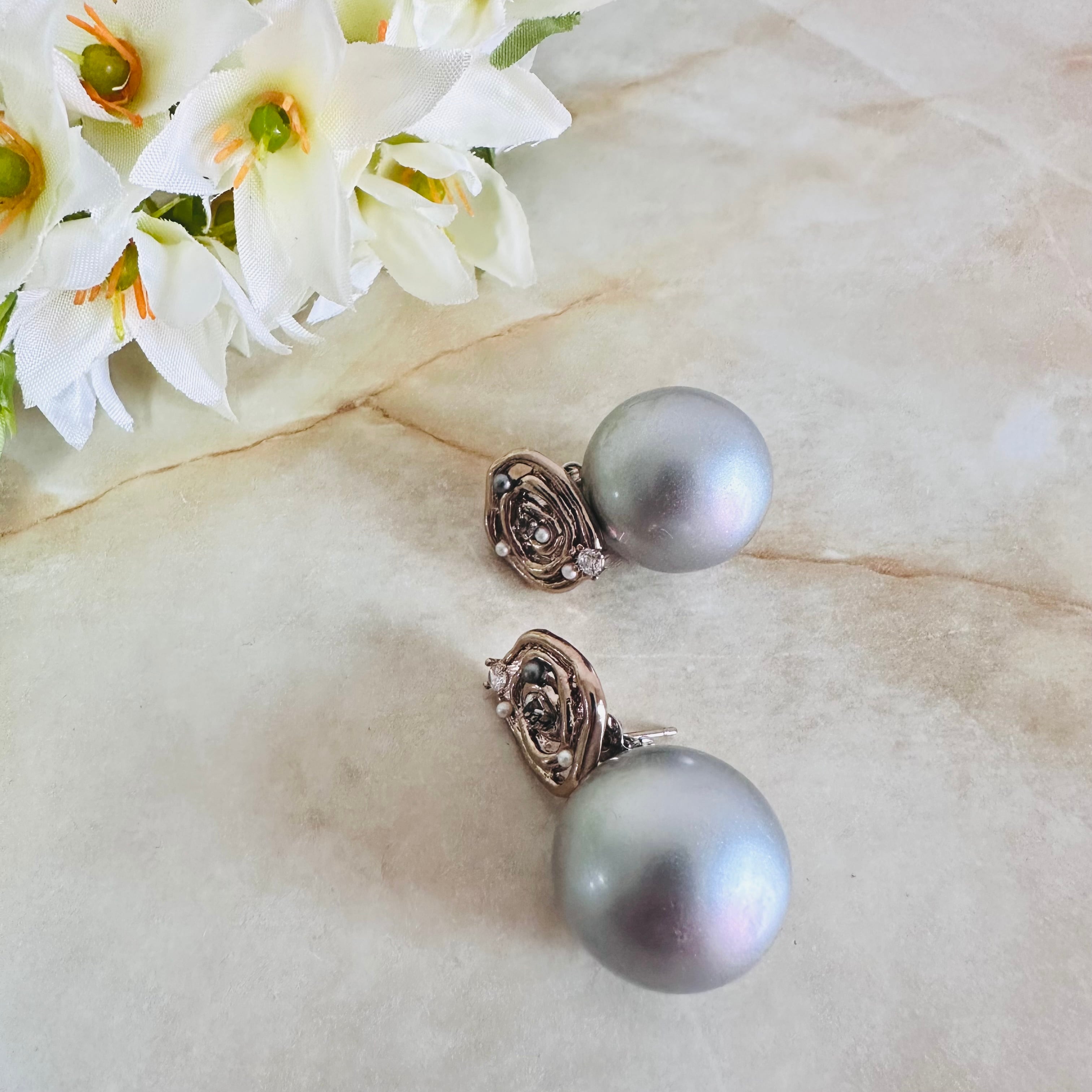 小粒のラインストーンやパールを付けたデザインのキャッチャー側にグレーの大粒パールを組み合わせた2wayデザインです。