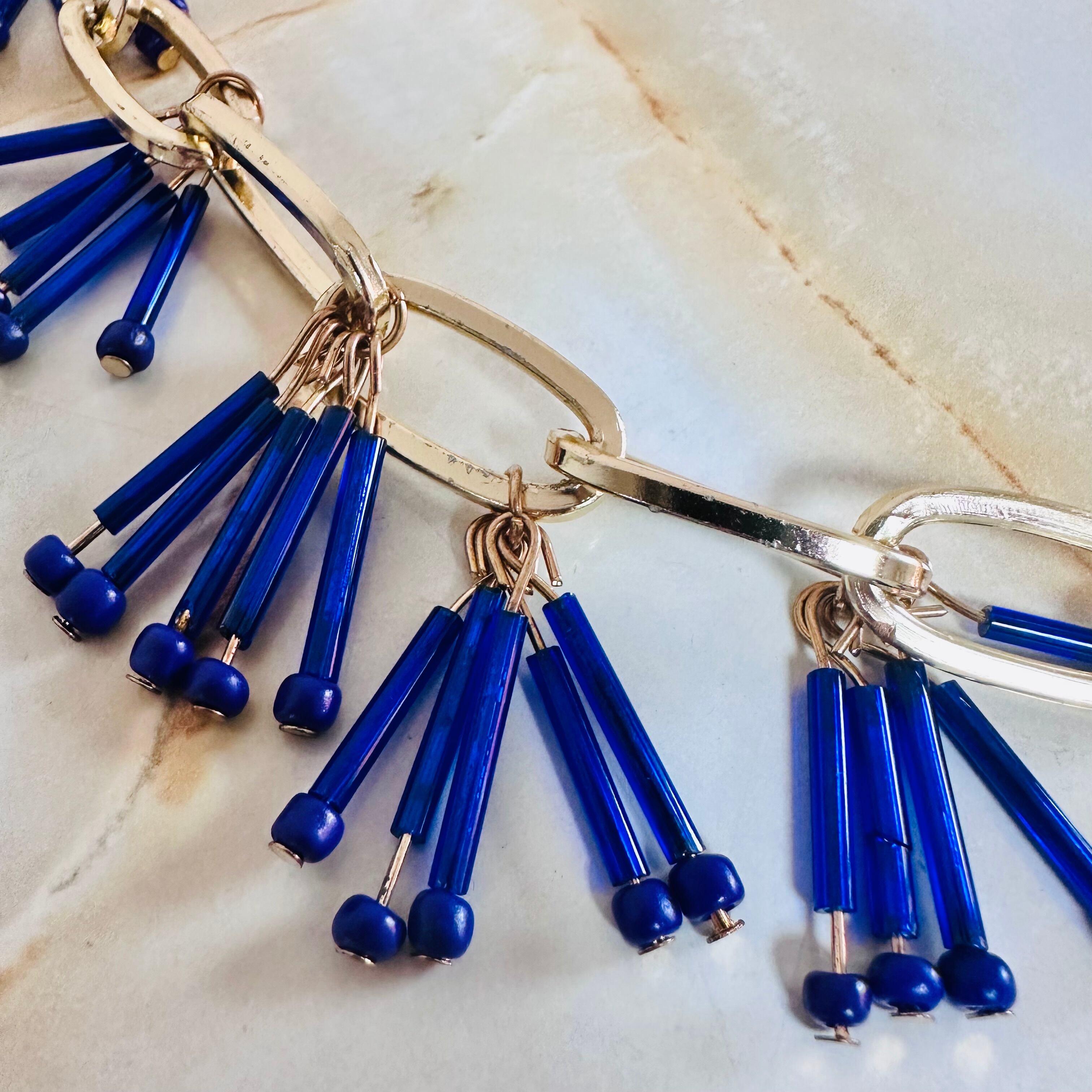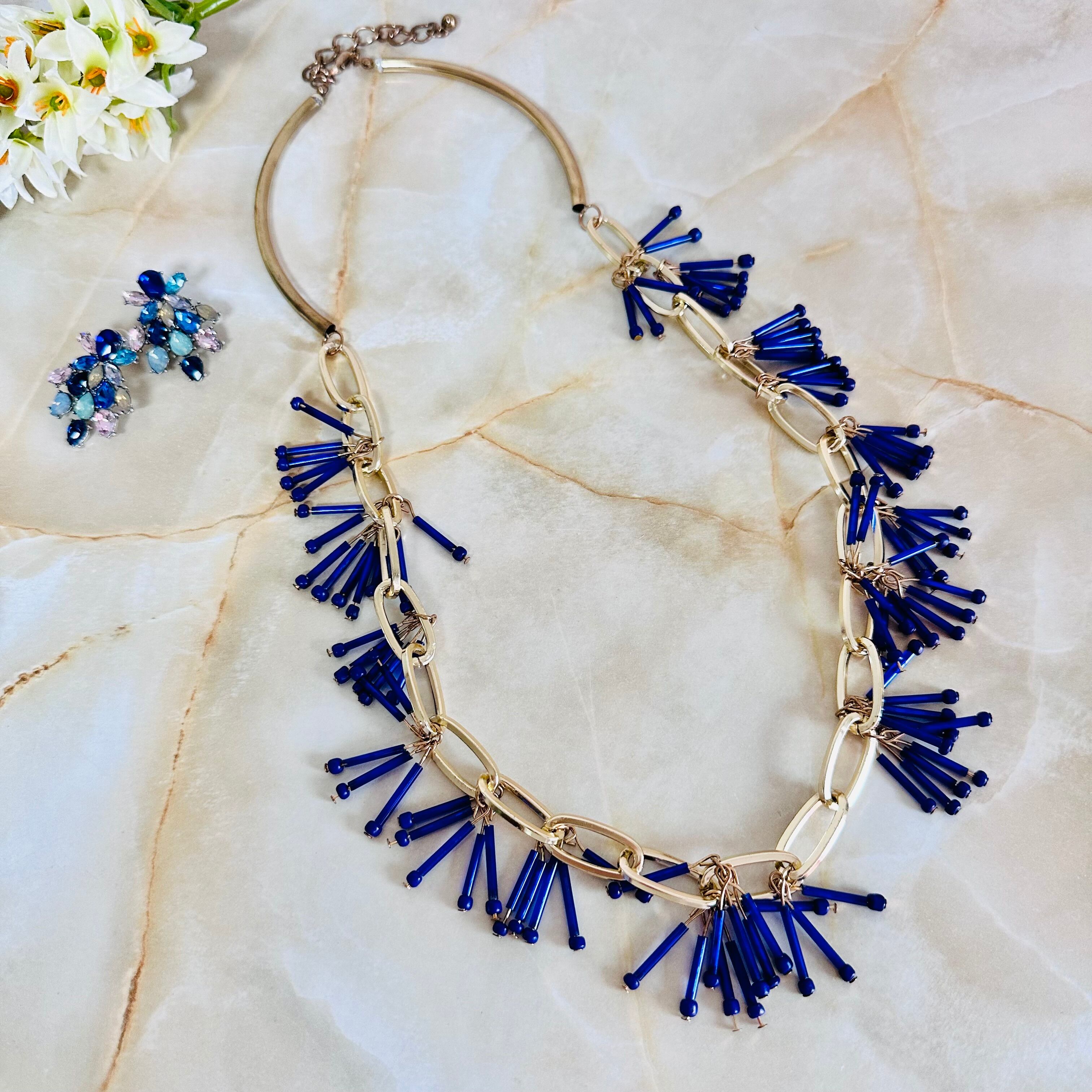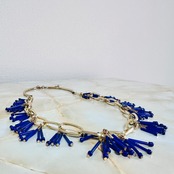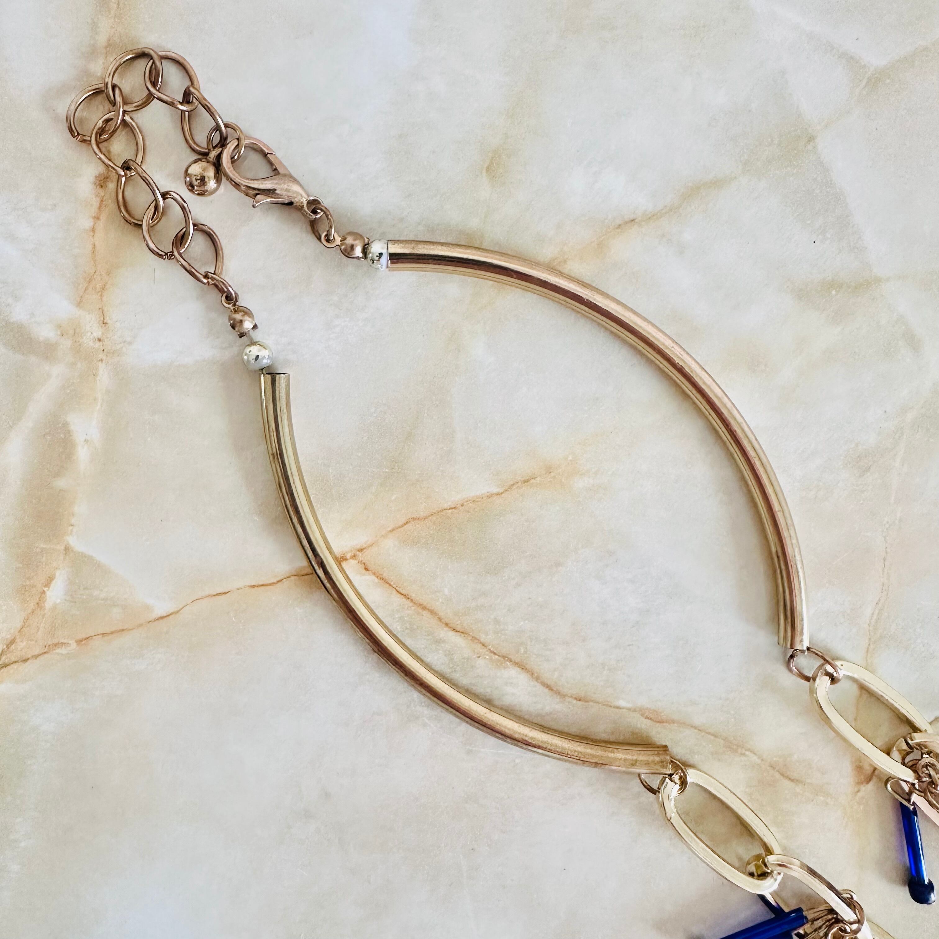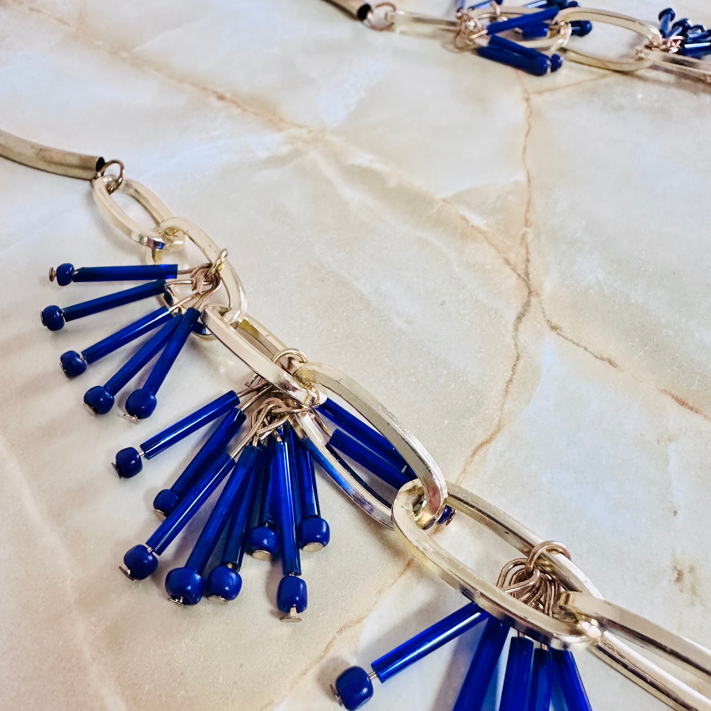 ブルー系✖️アンティークゴールドカラーのロングネックレスです。