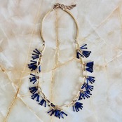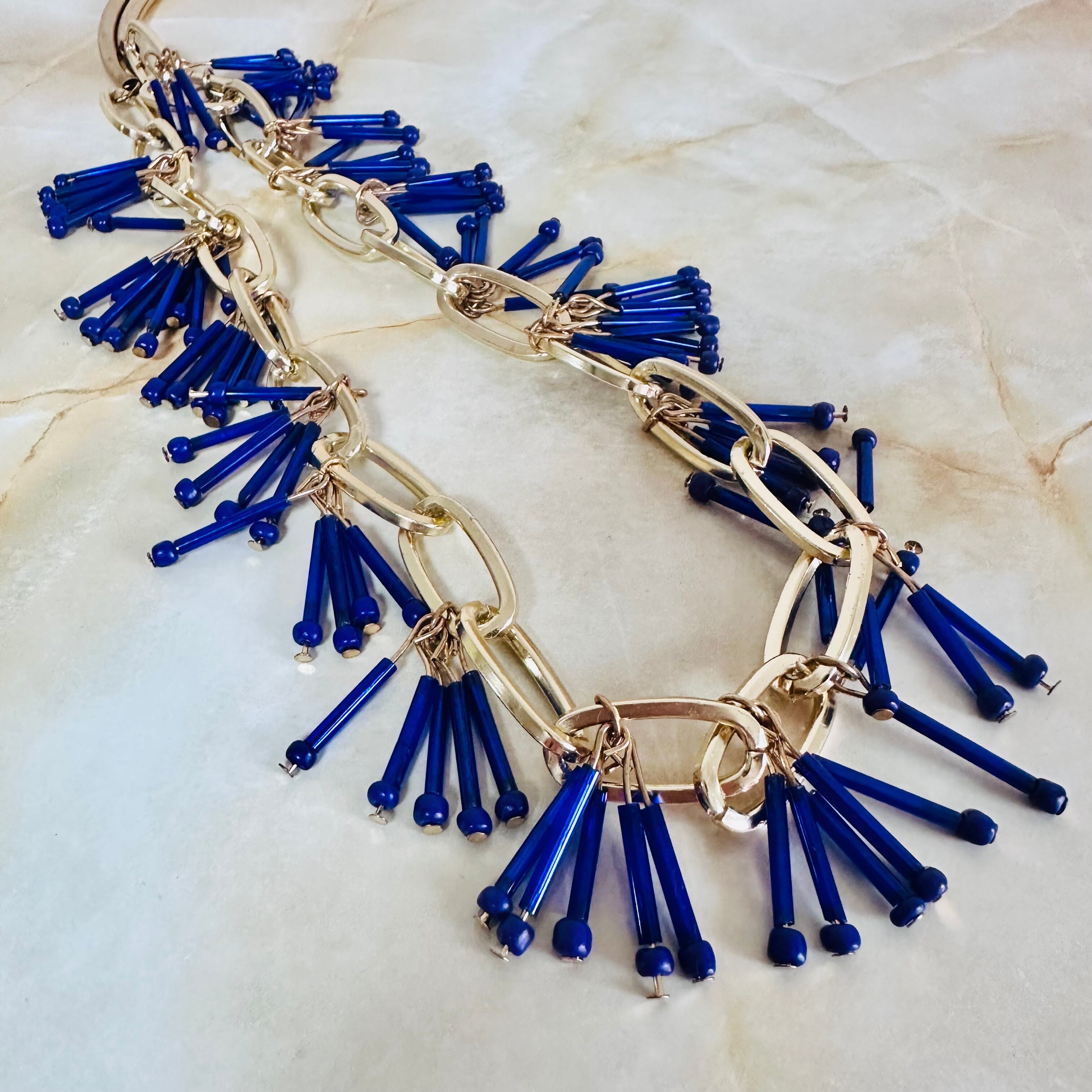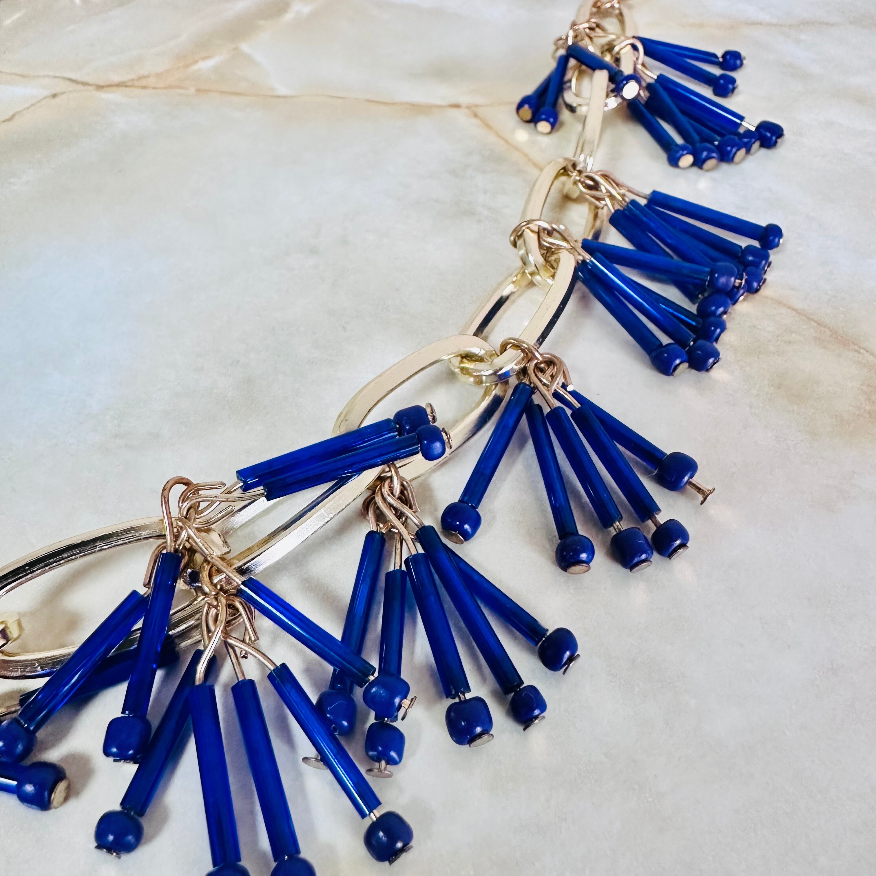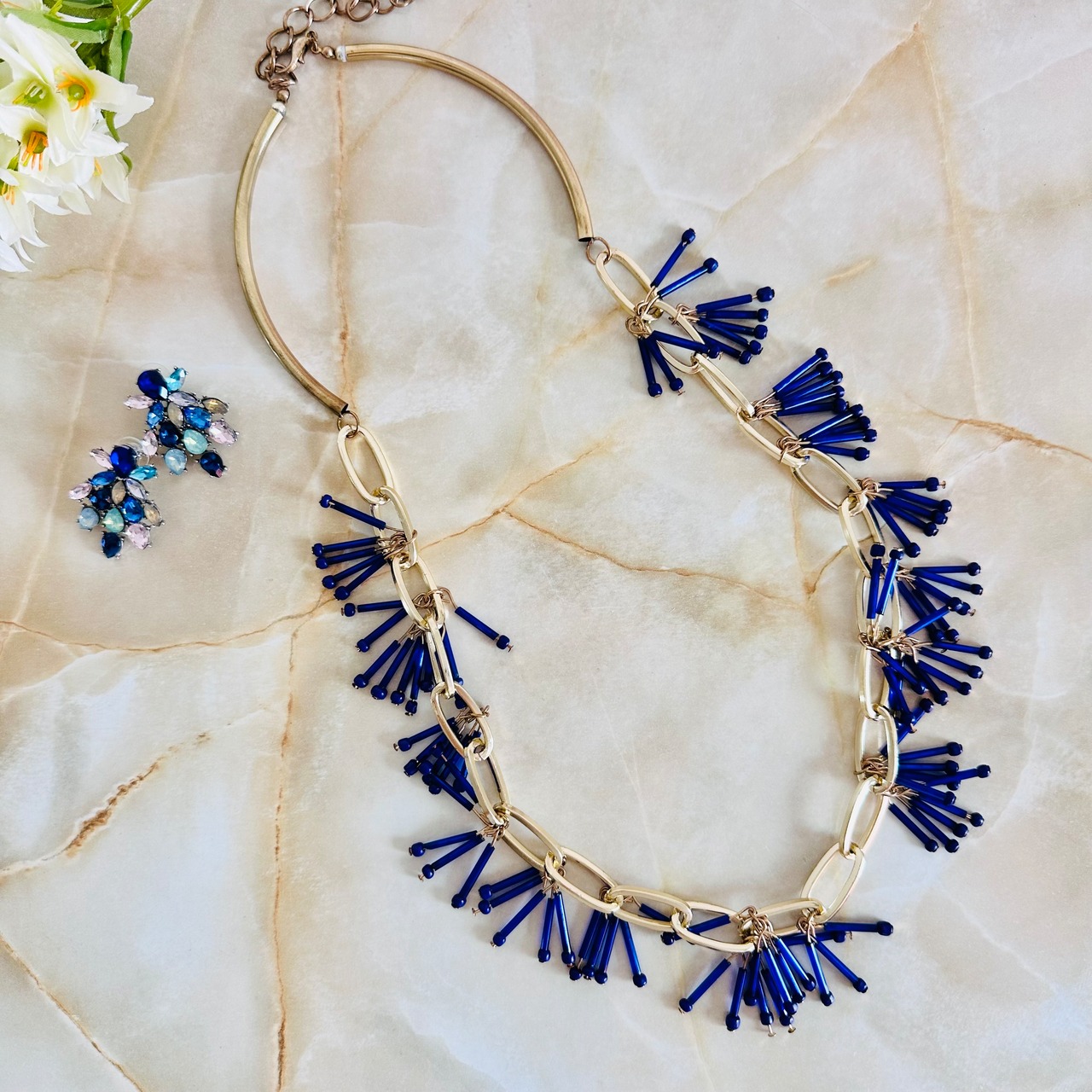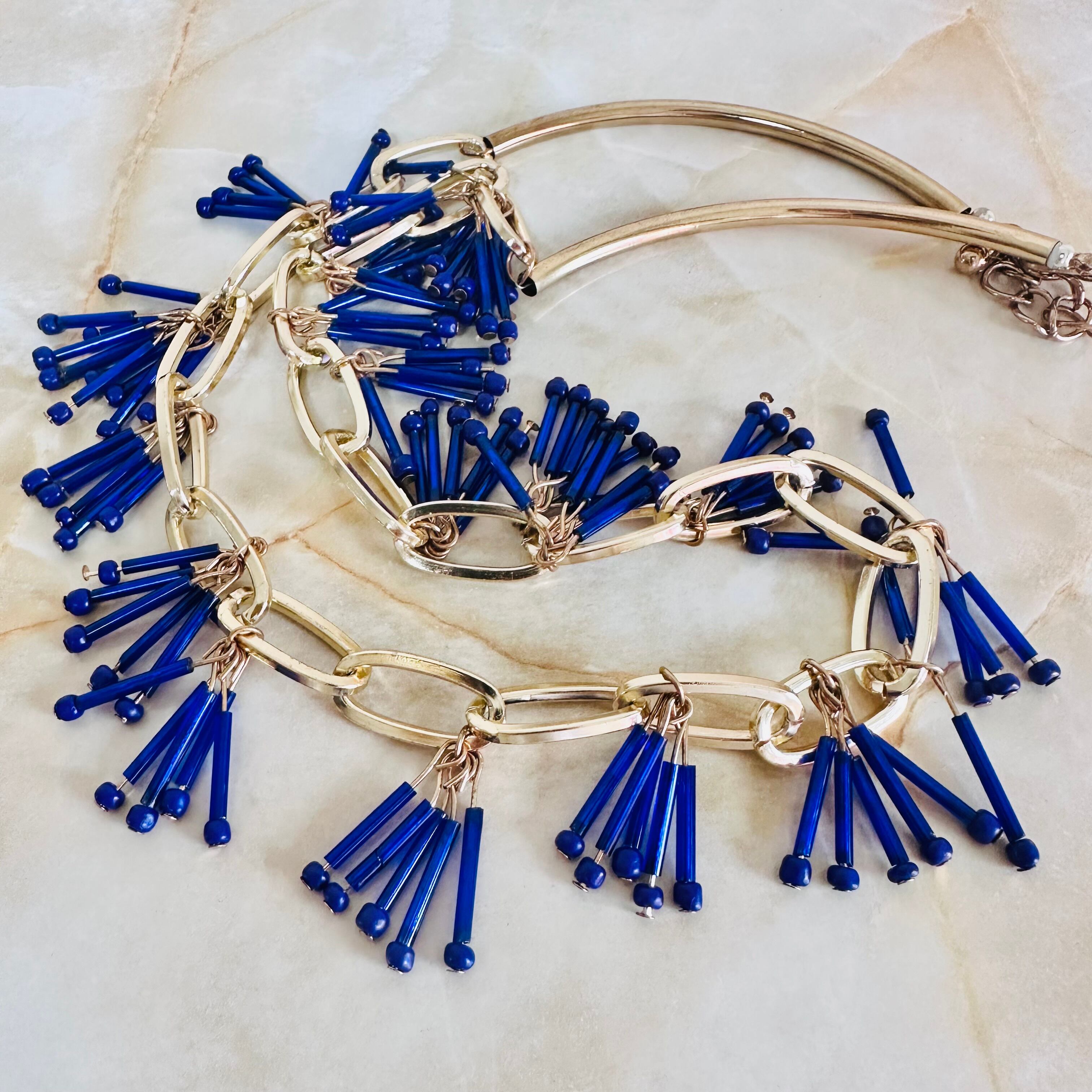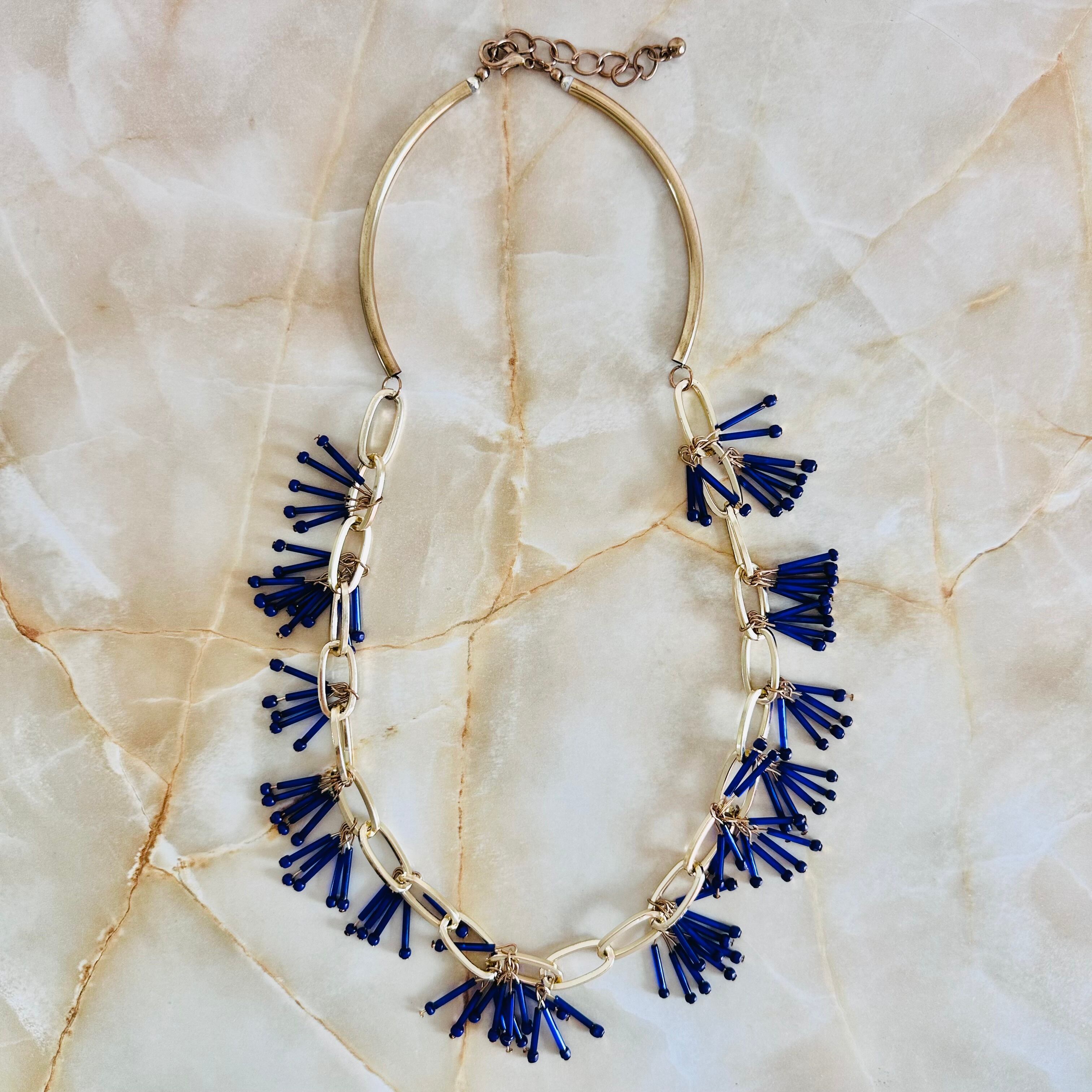 ブルー系✖️アンティークゴールドカラーのロングネックレスです。