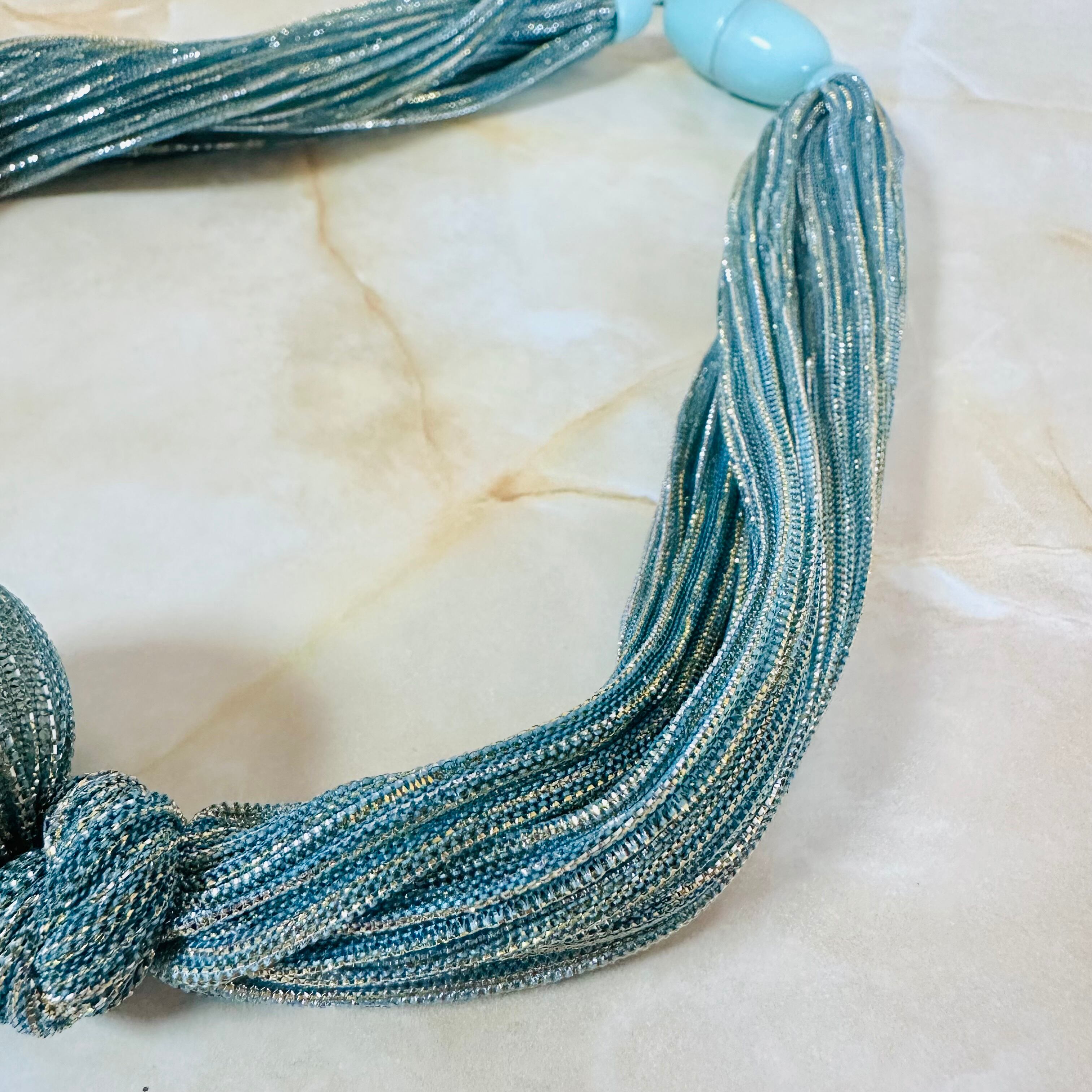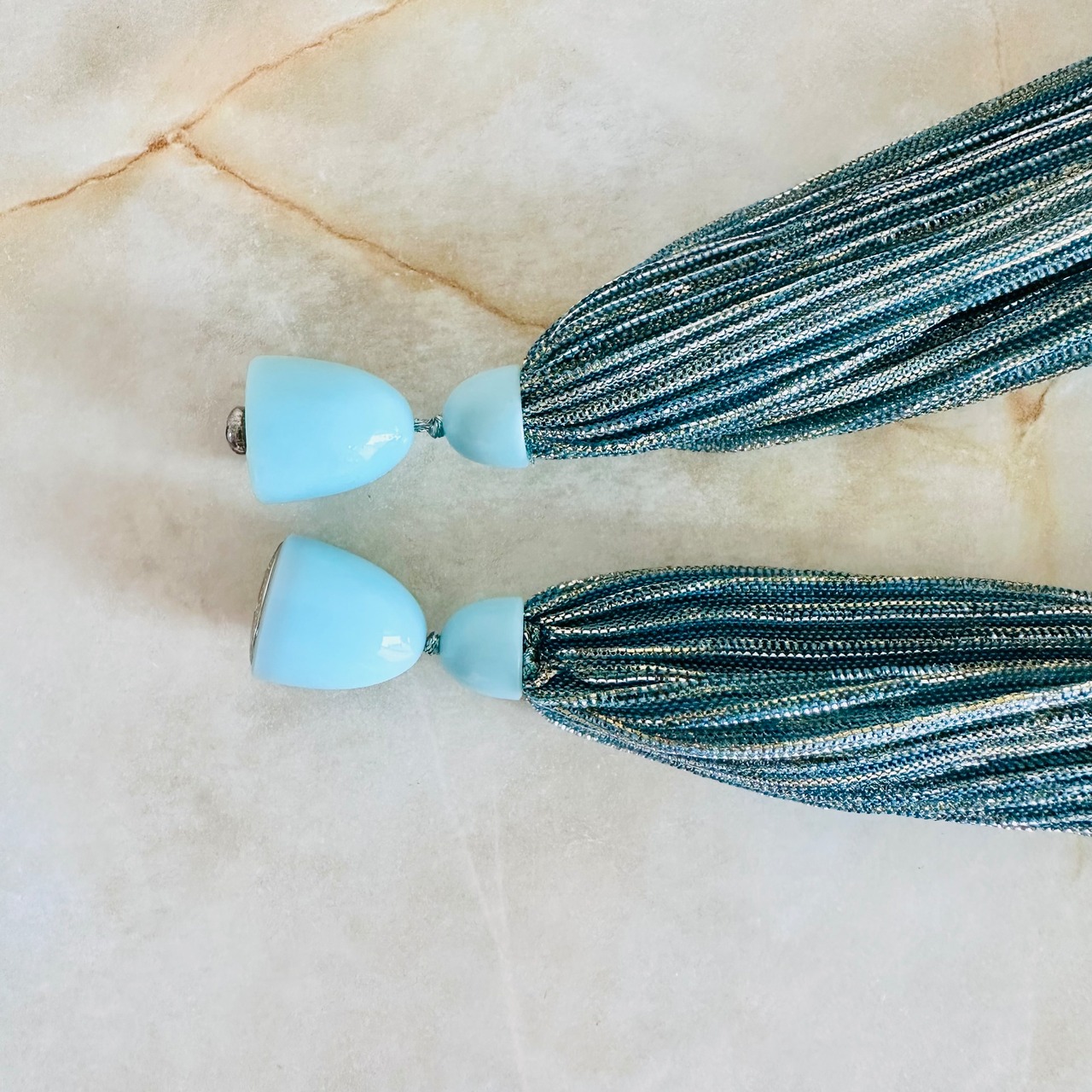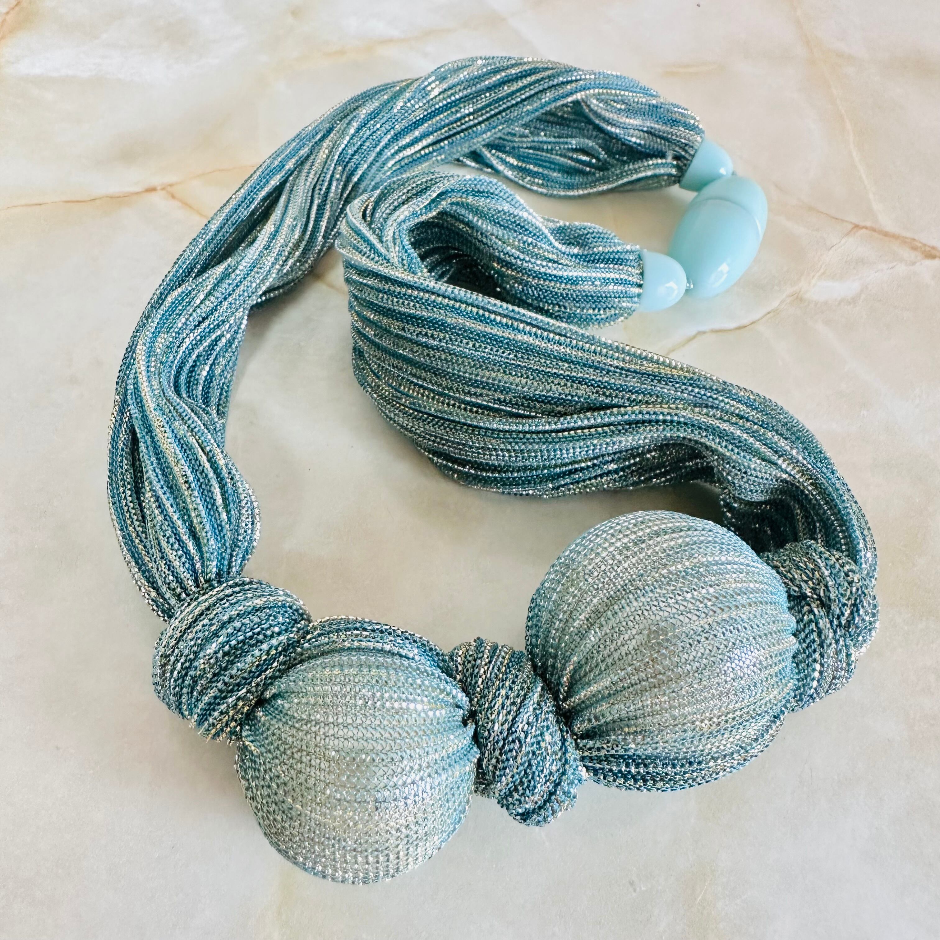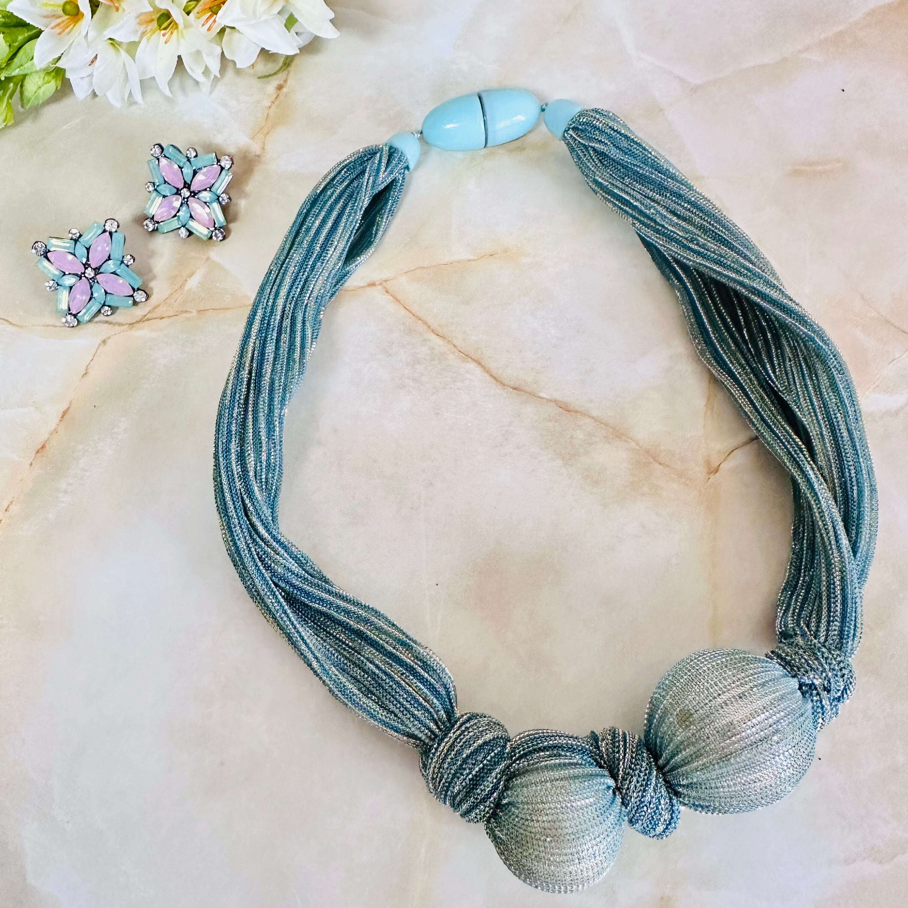 ラメの入ったブルーの生地でパールを包んだデザインです。
