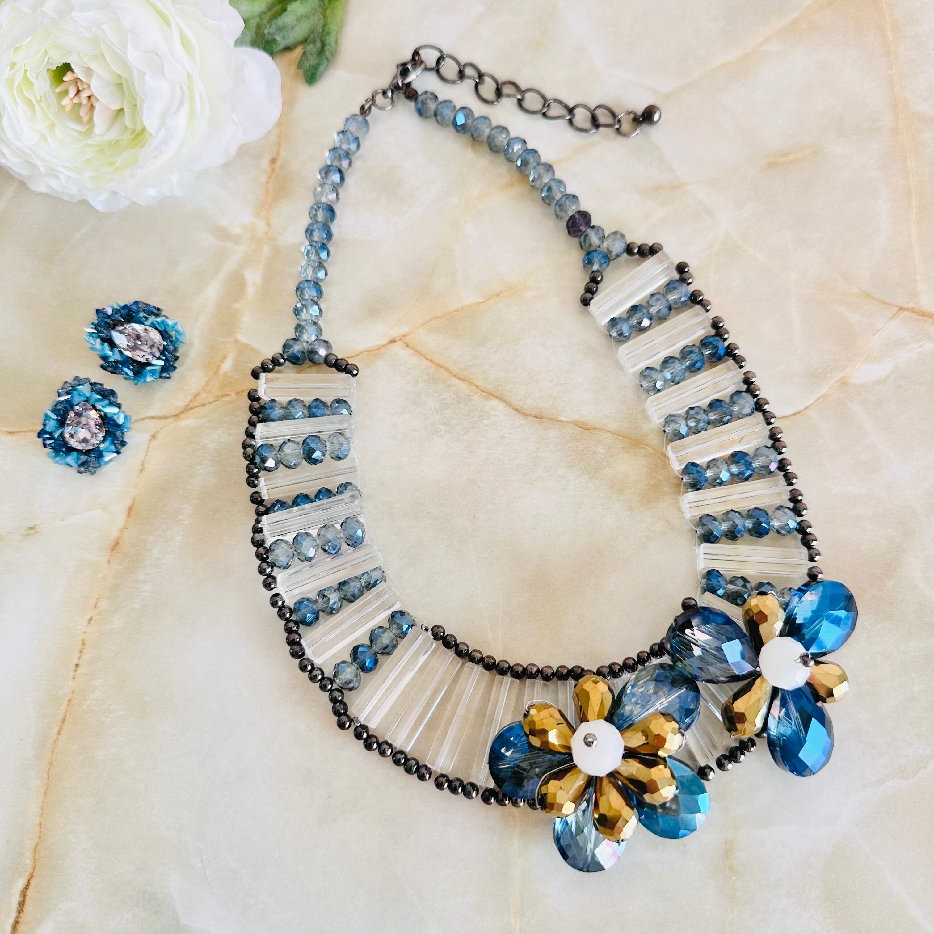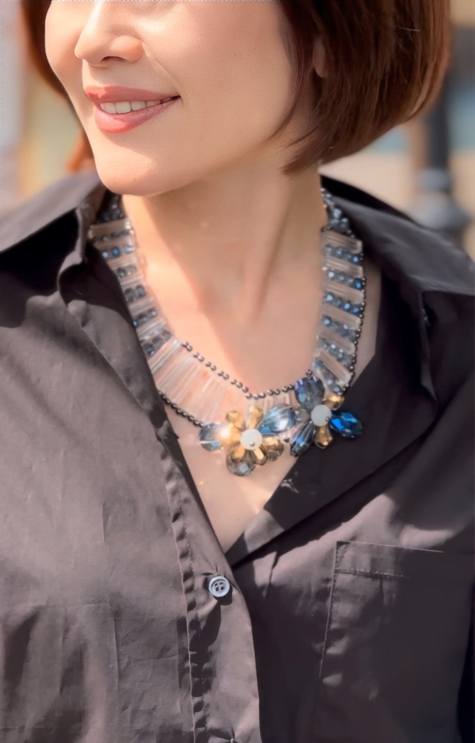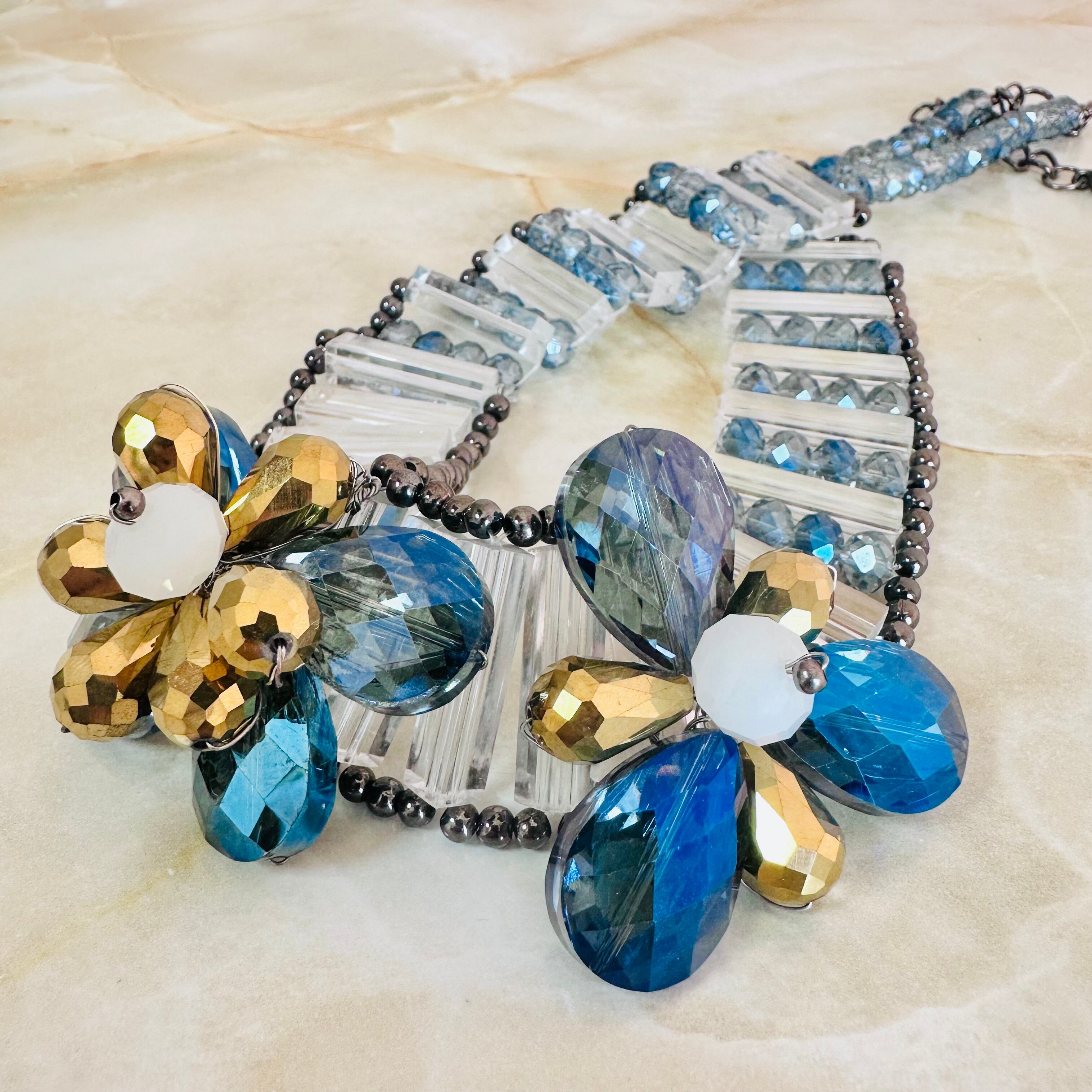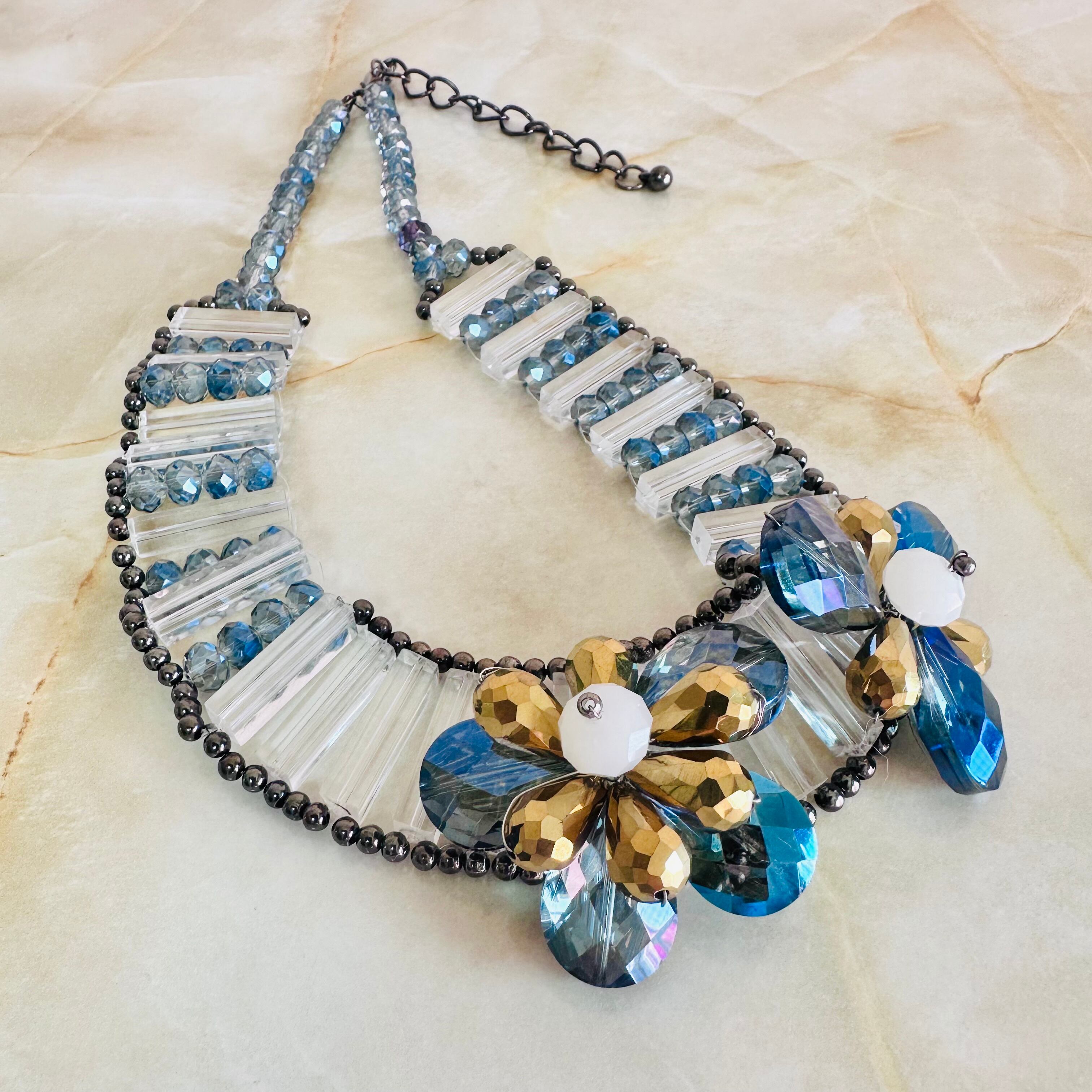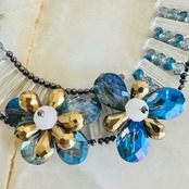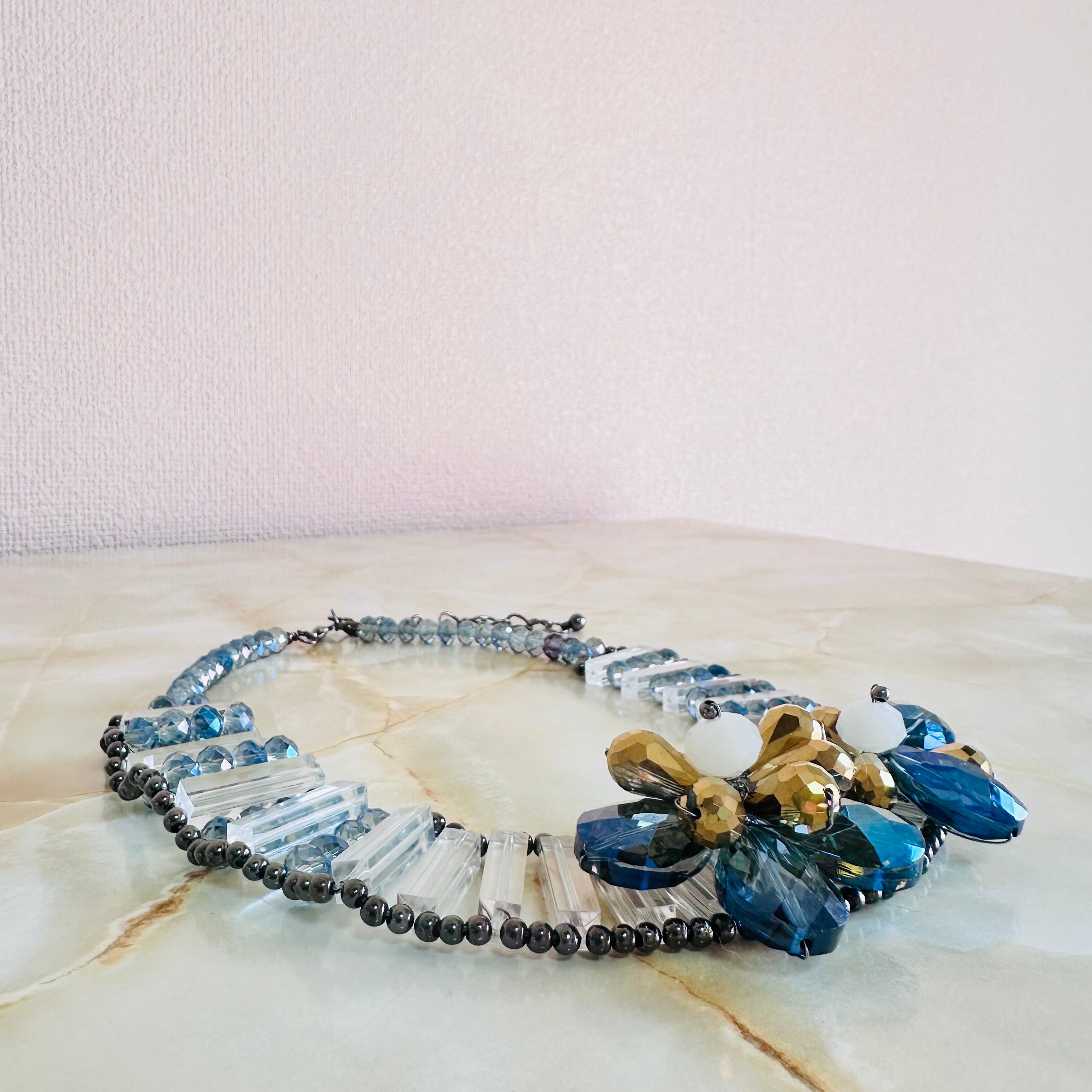 ブルー系、、クリア、ゴールド✖️ブラックシルバーカラーのネックレスです。