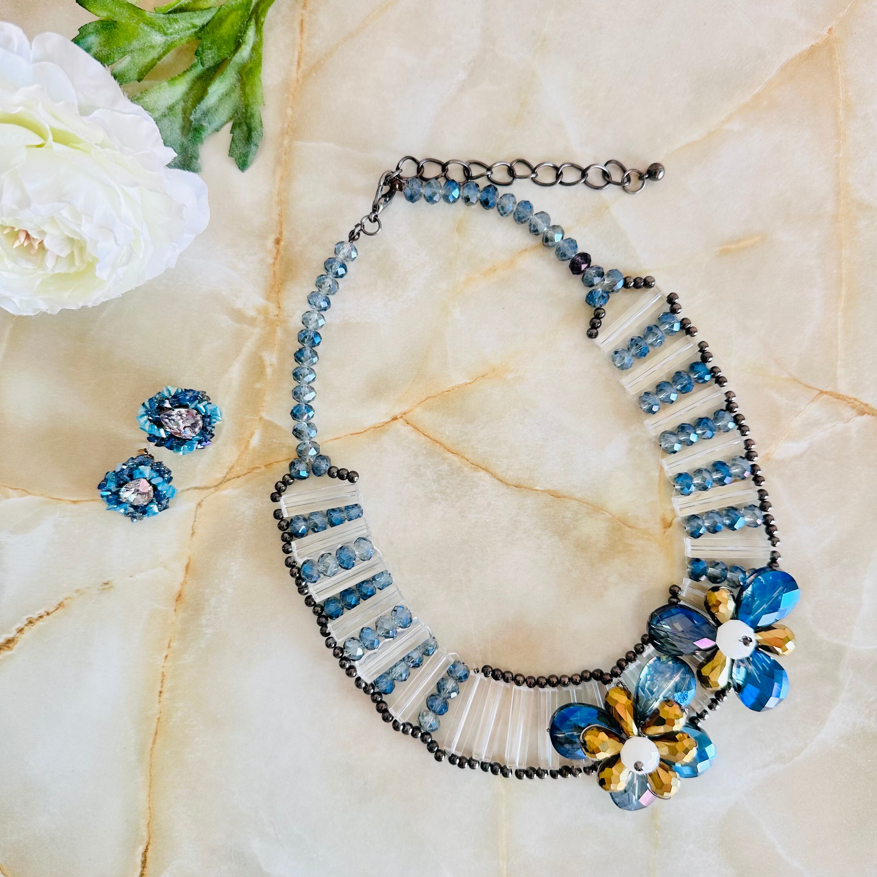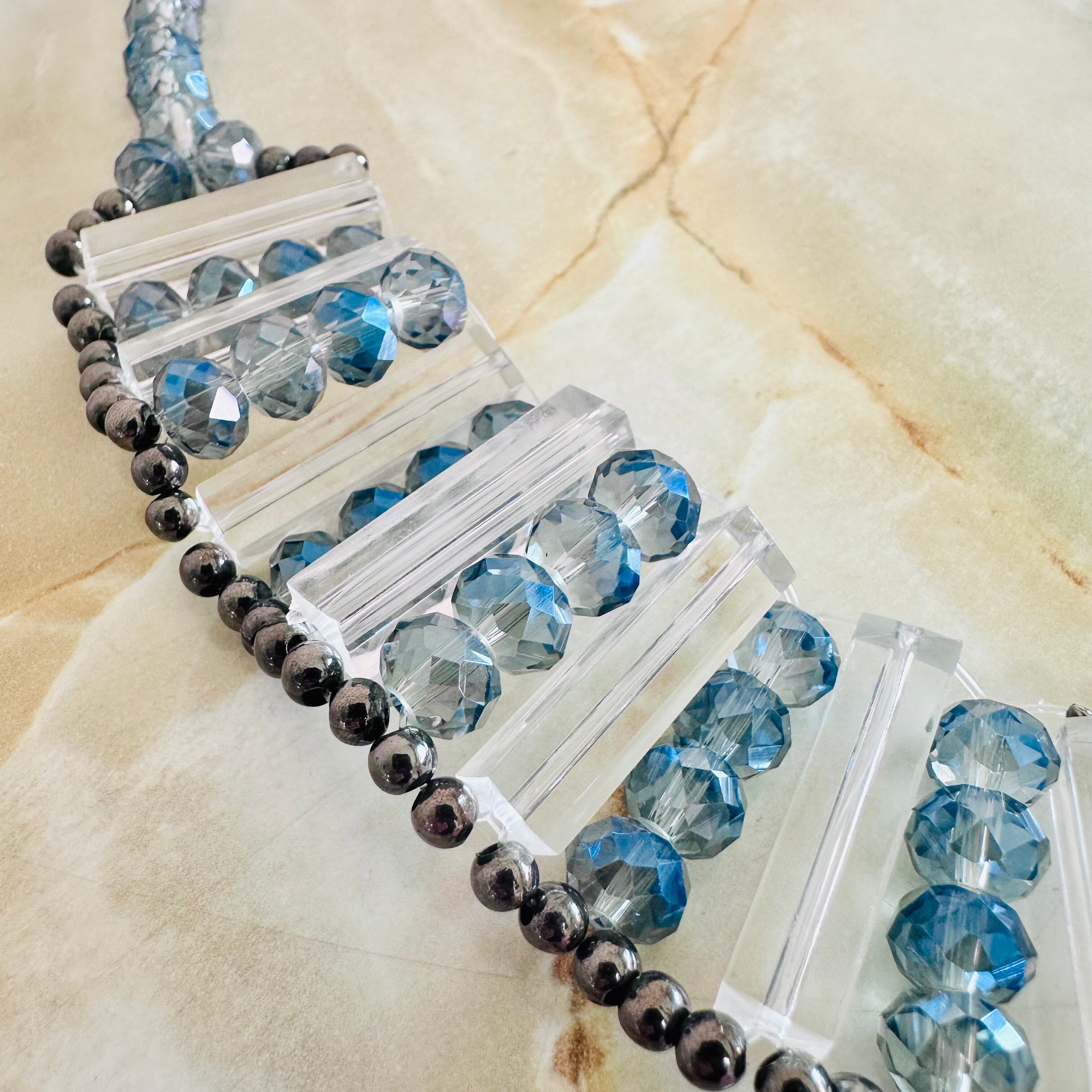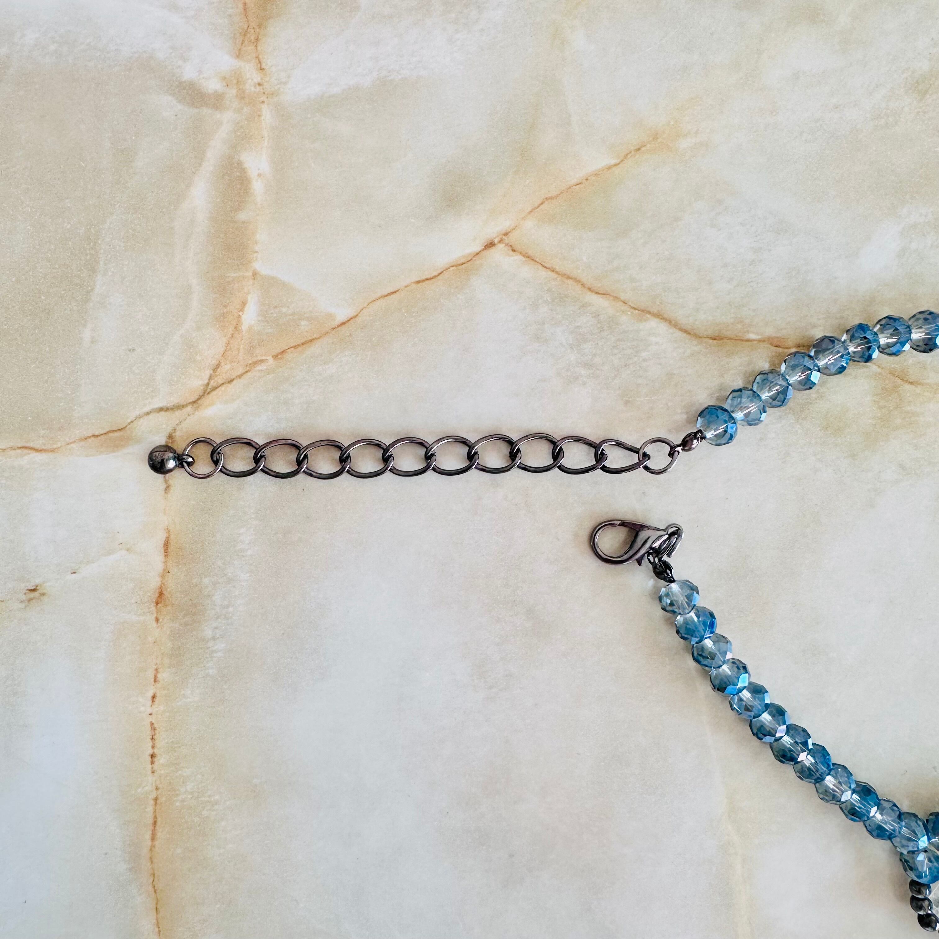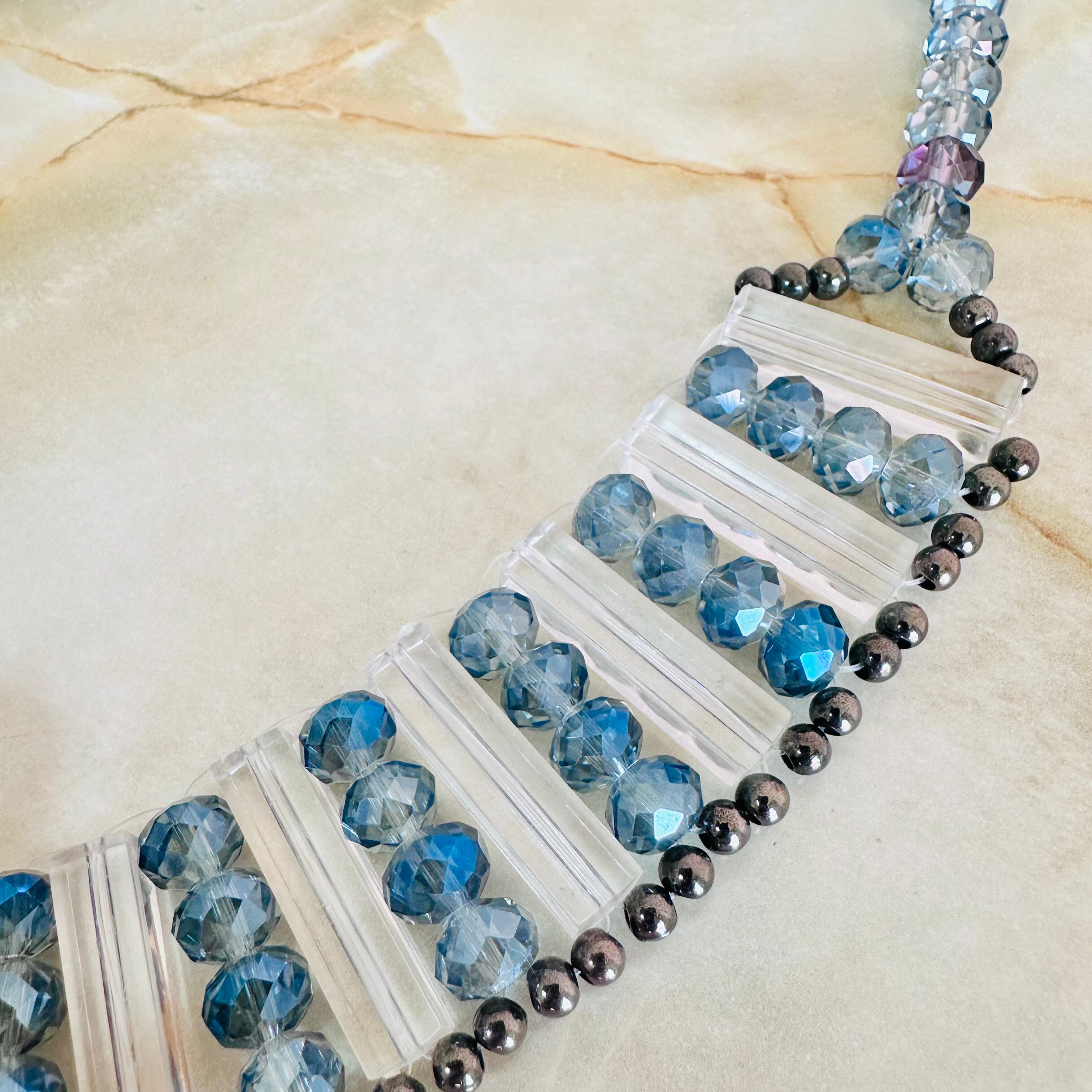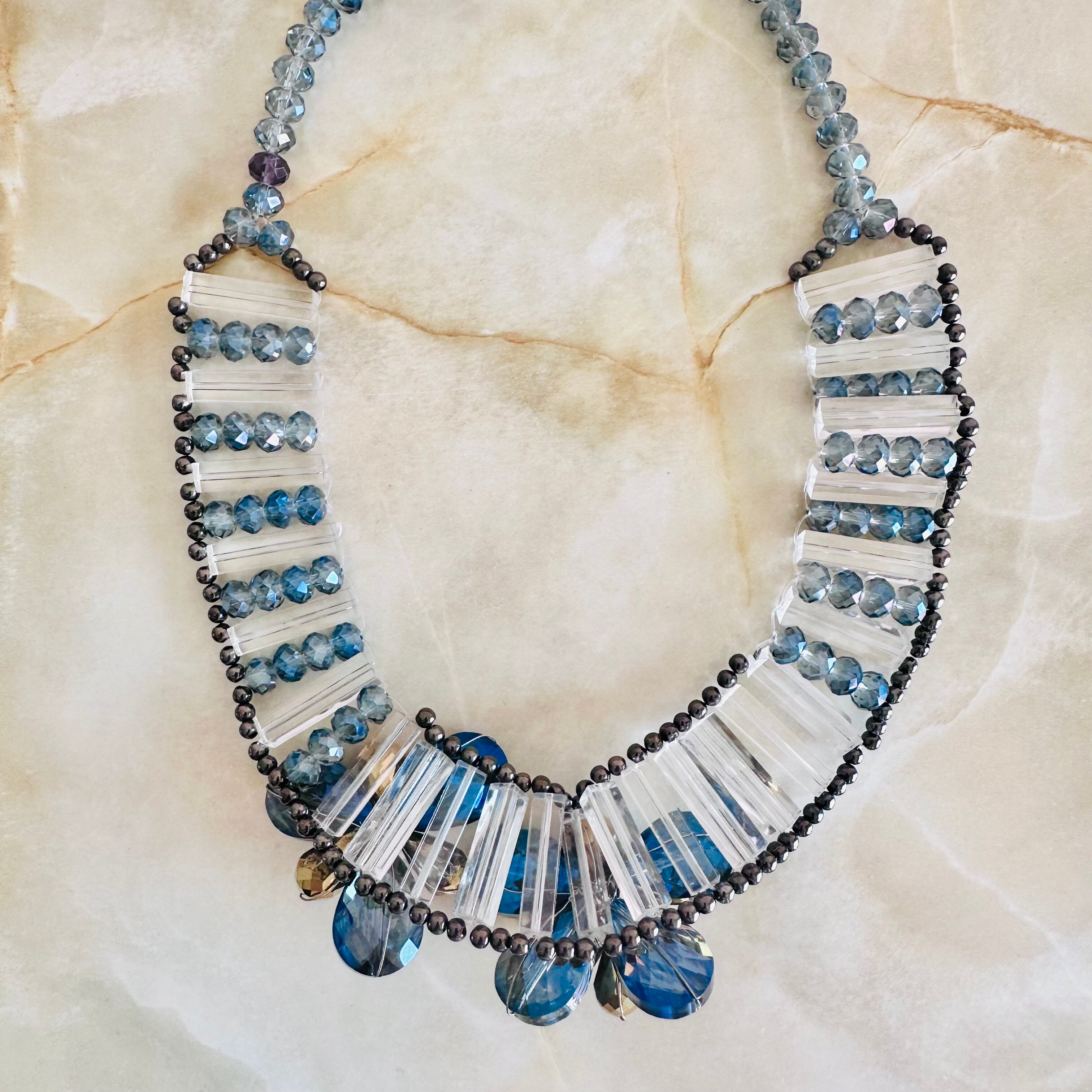 ブルー系、、クリア、ゴールド✖️ブラックシルバーカラーのネックレスです。