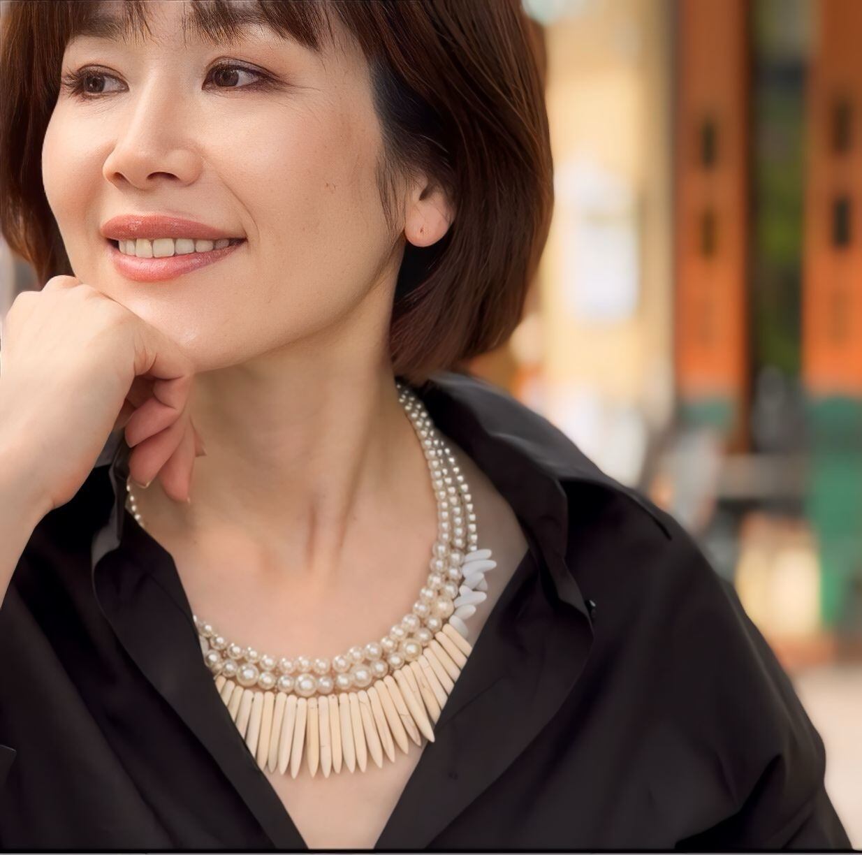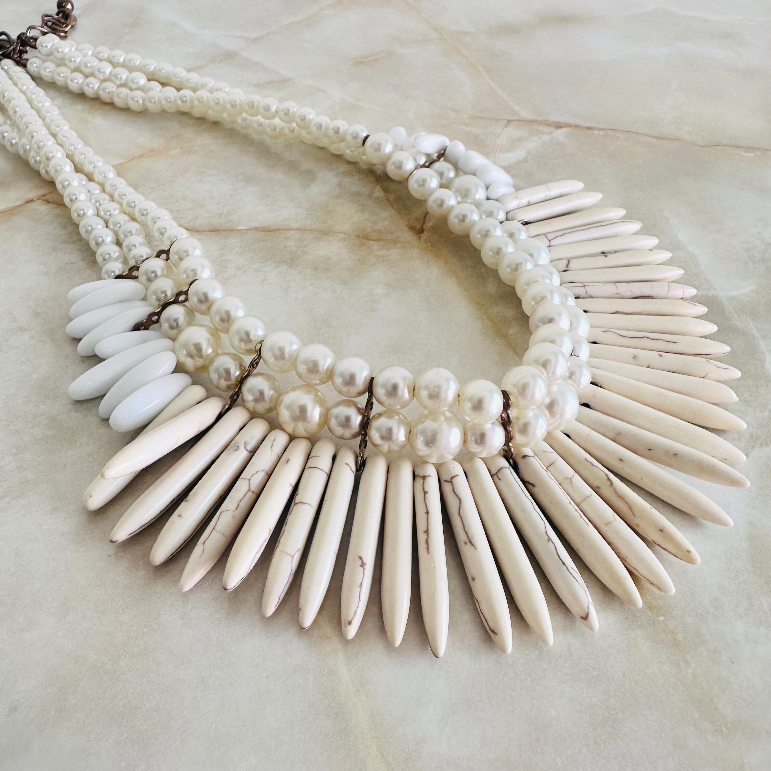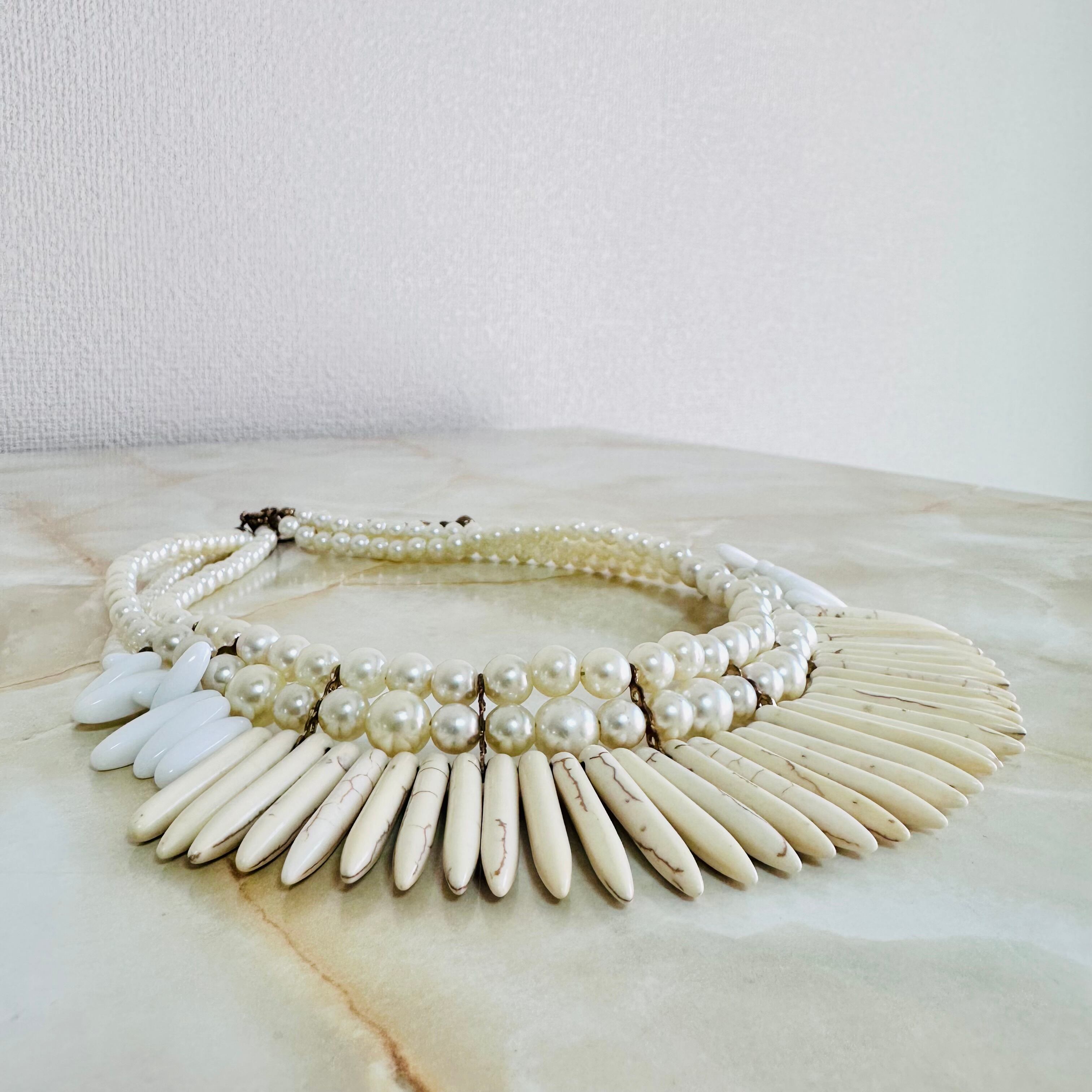 アイボリー、パール✖️アンティークゴールドカラーのネックレスです。