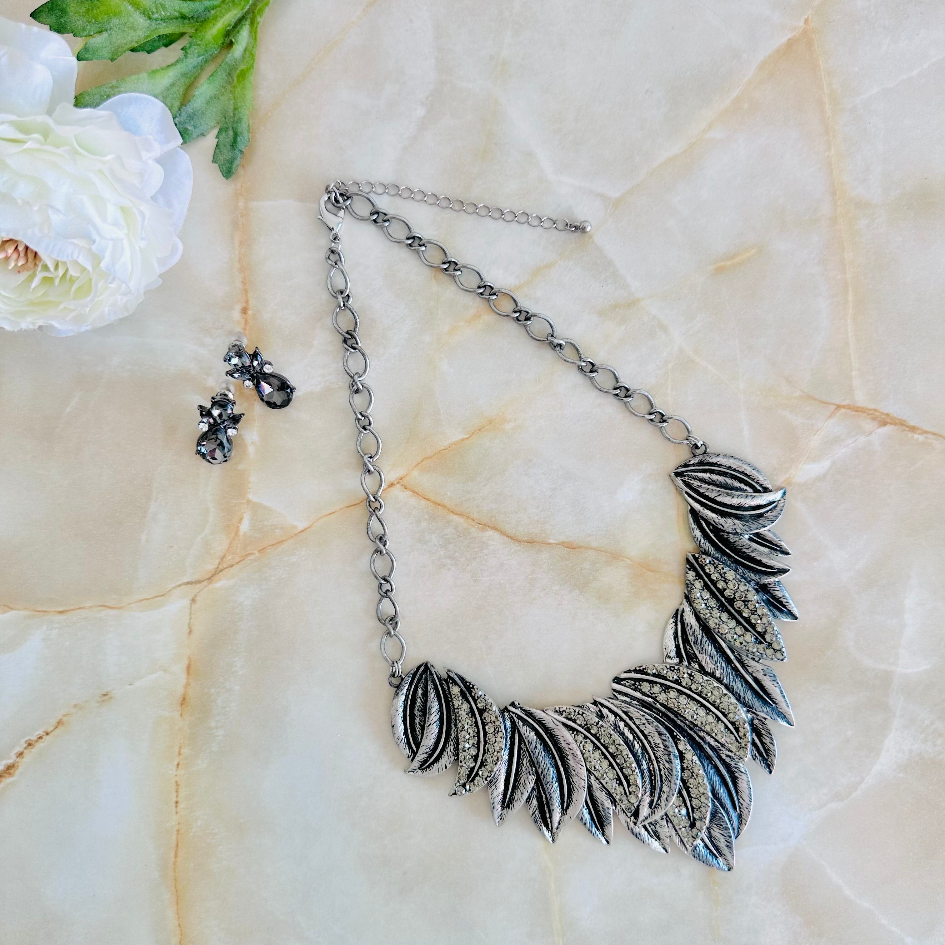 リーフデザインのモチーフに同色のラインストーンをのせ、華やかさをプラスしたデザインです。