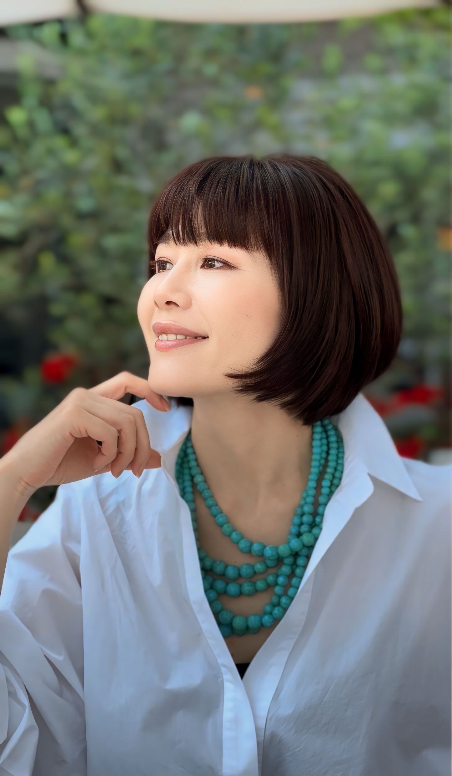 透明感があり涼しげなカラーが軽やかに胸元をかざってくれます。