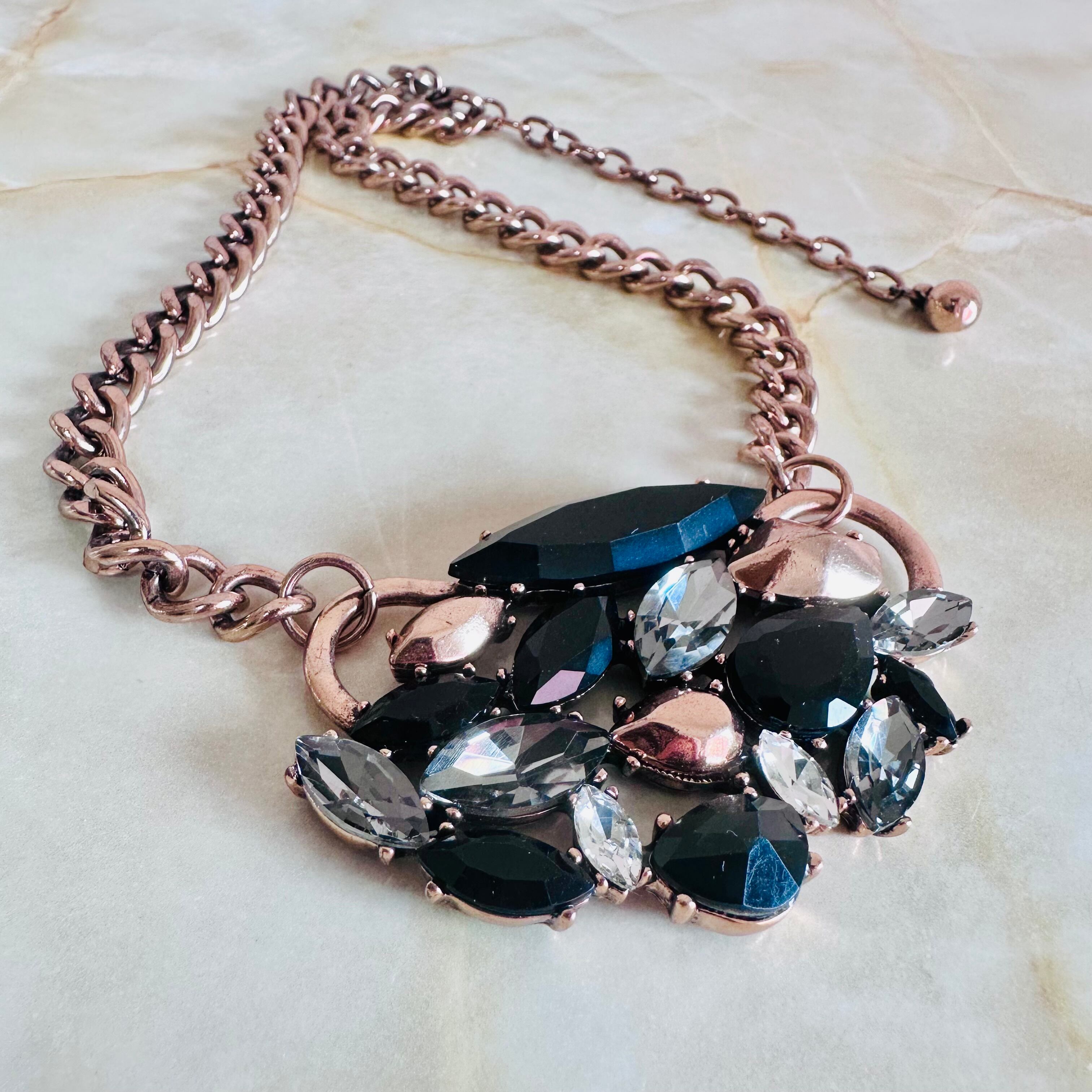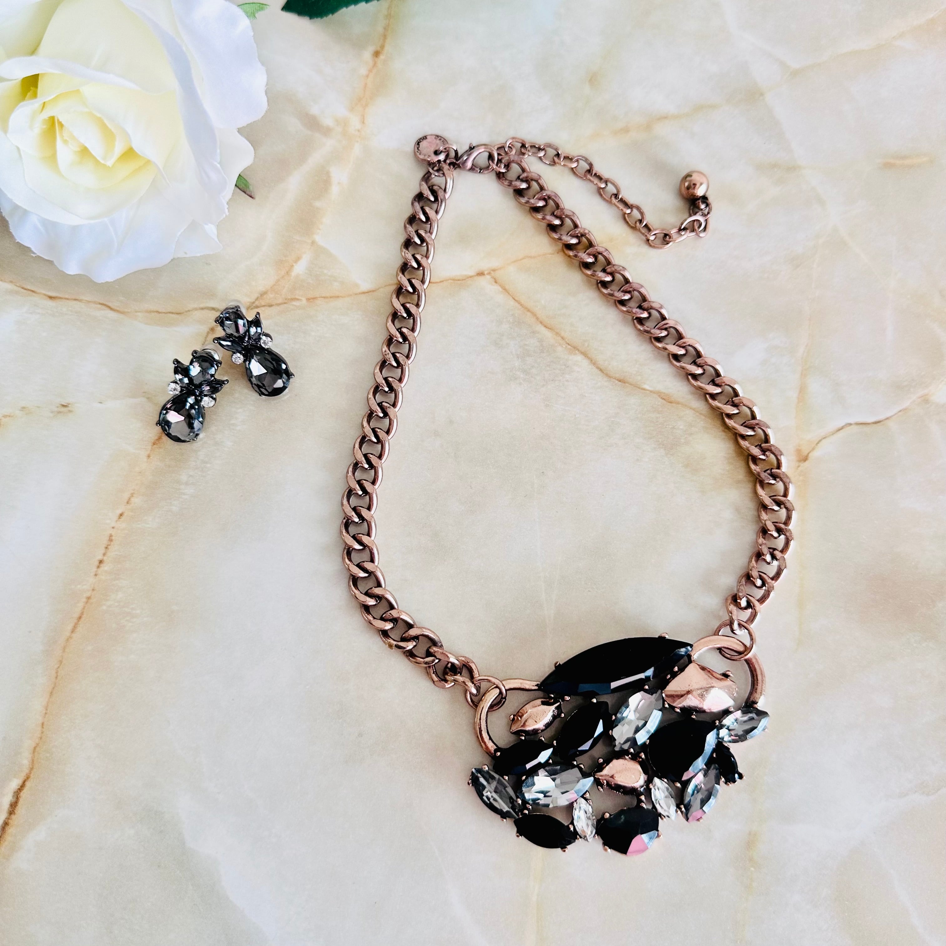 ブラック、グレー、クリア✖️ローズゴールドカラーのネックレスです。