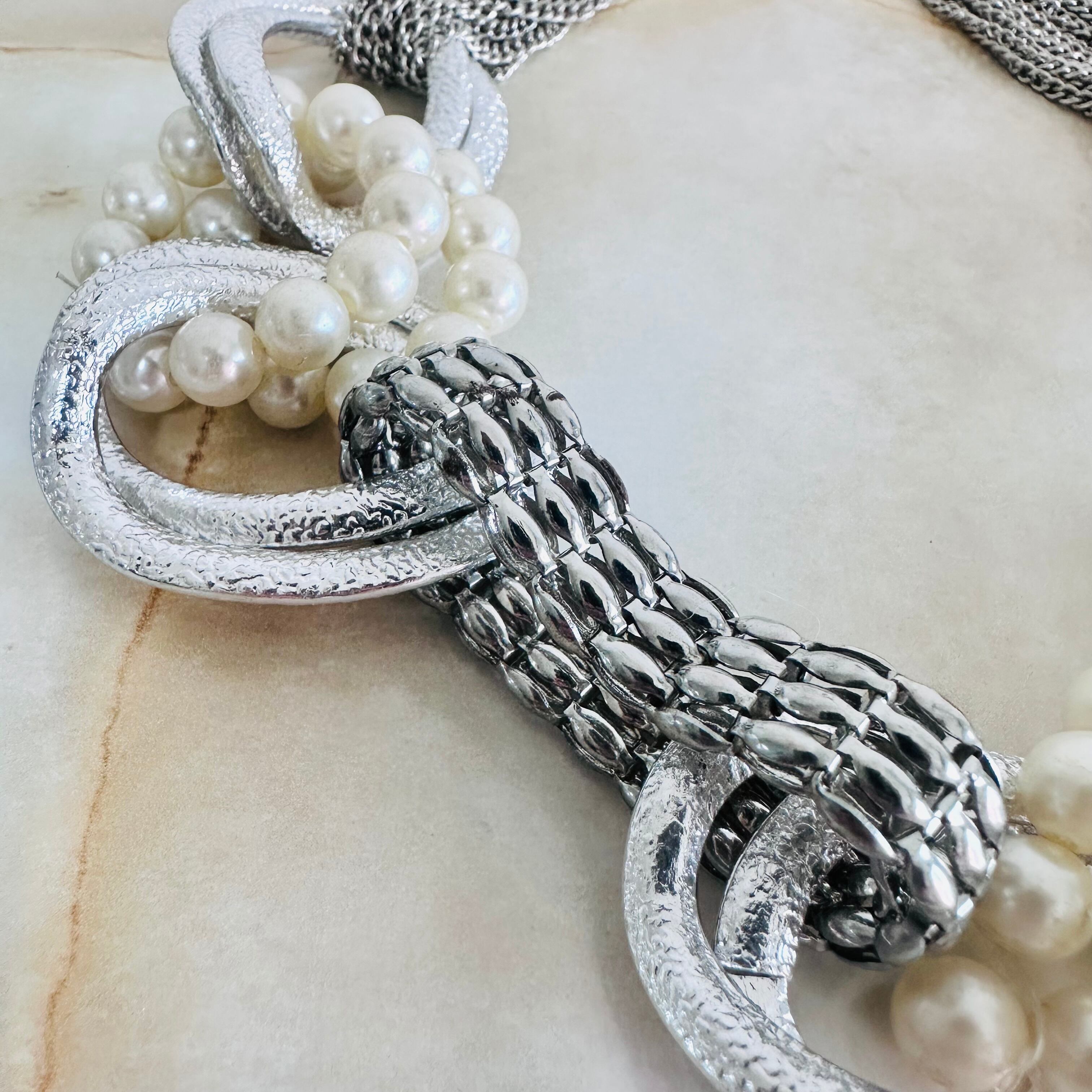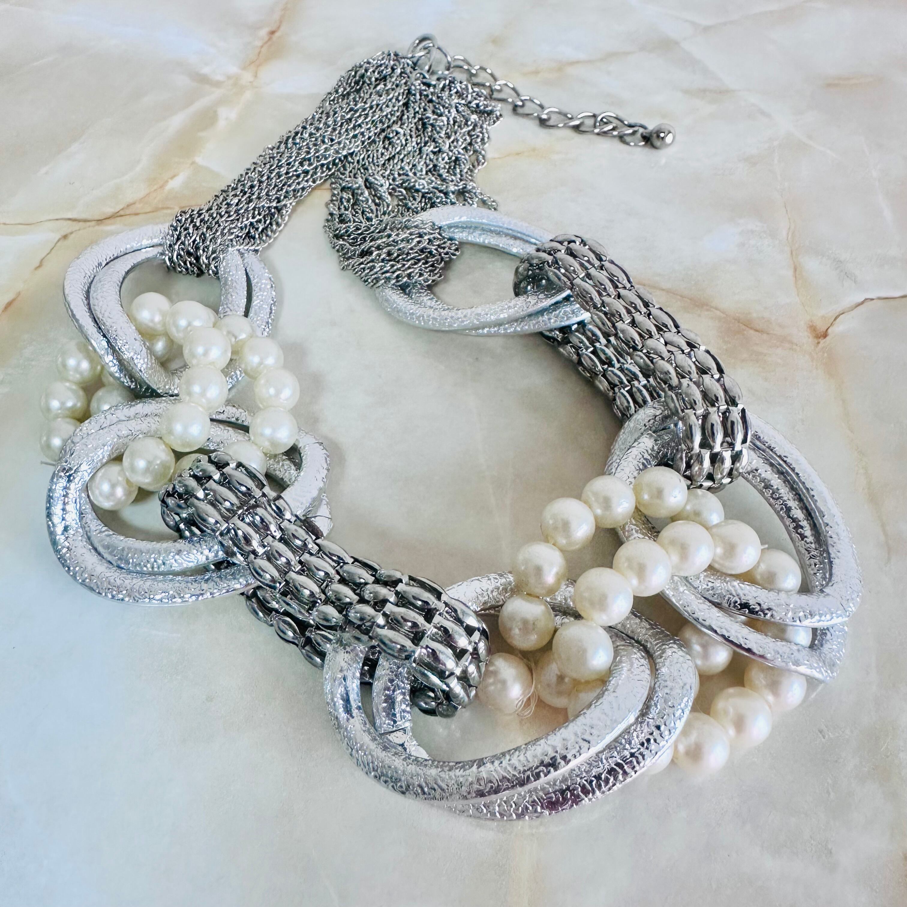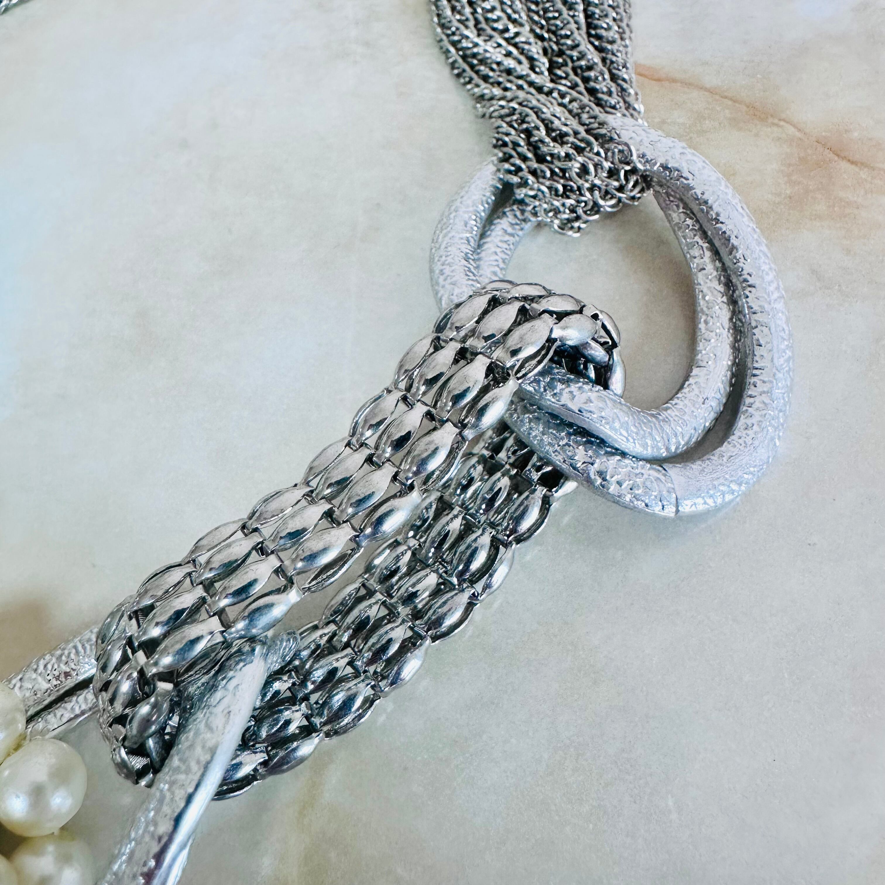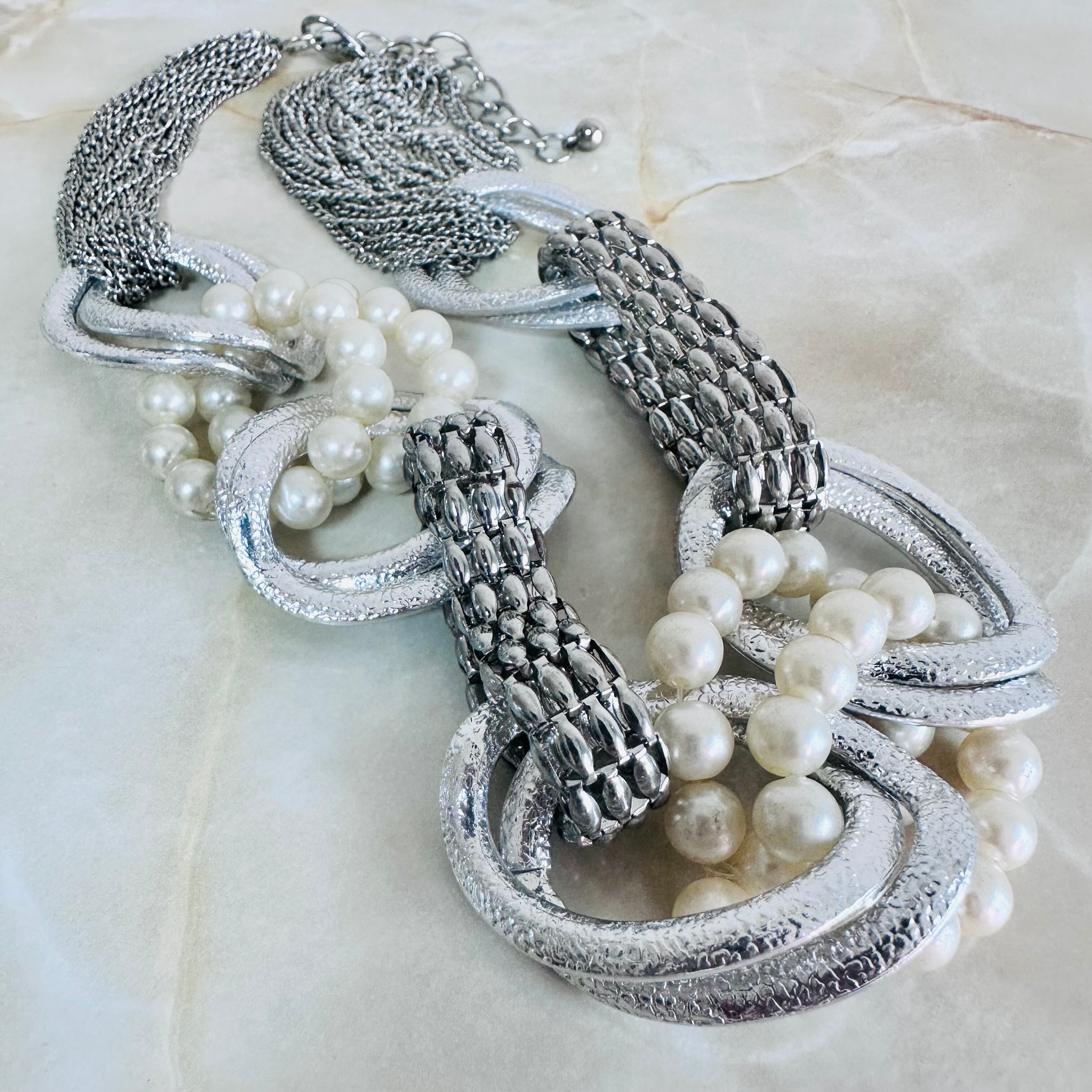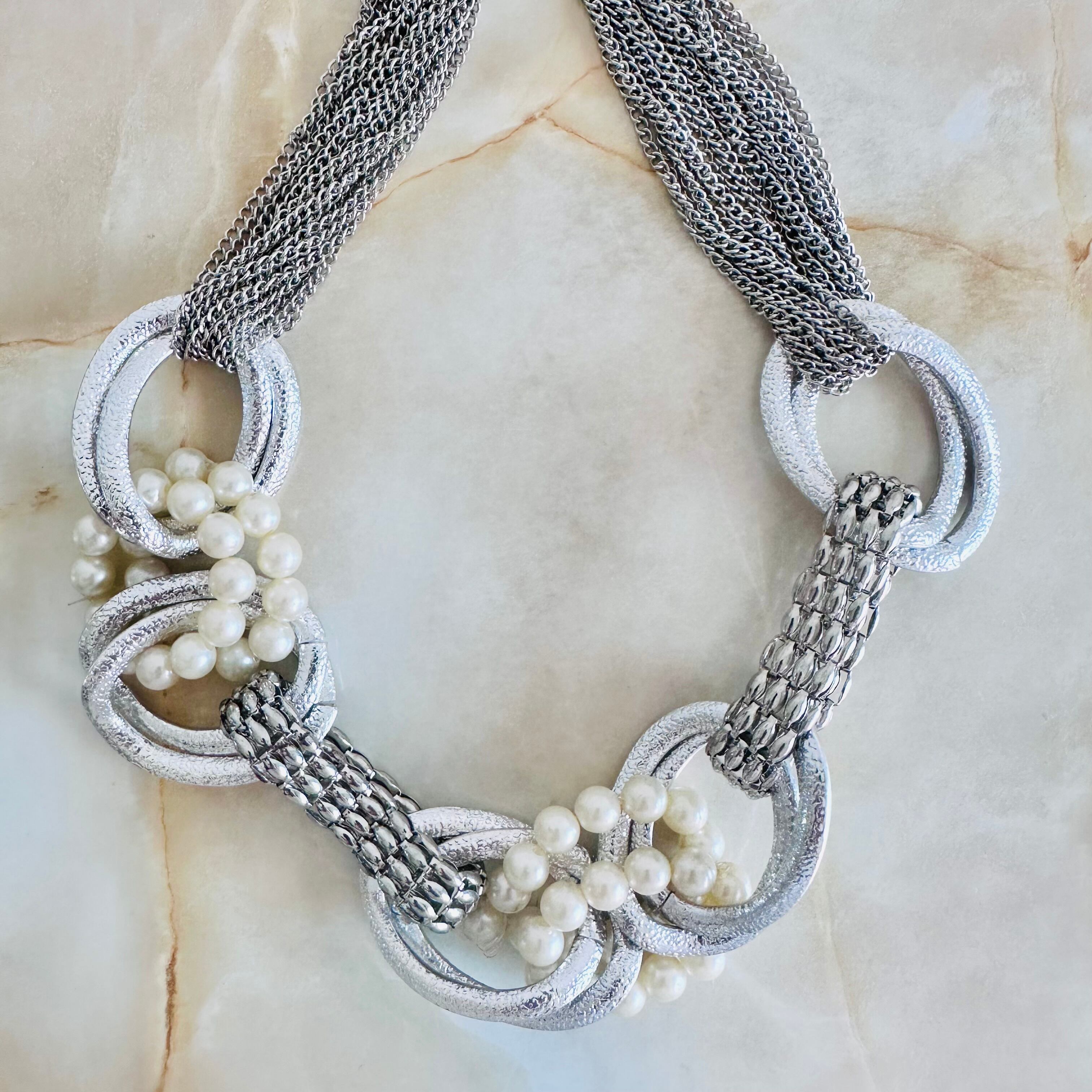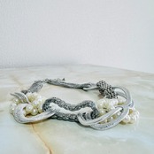 幾何学的なサークルモチーフとパールをシルバーで合わせ、スタイリッシュに仕上げました。