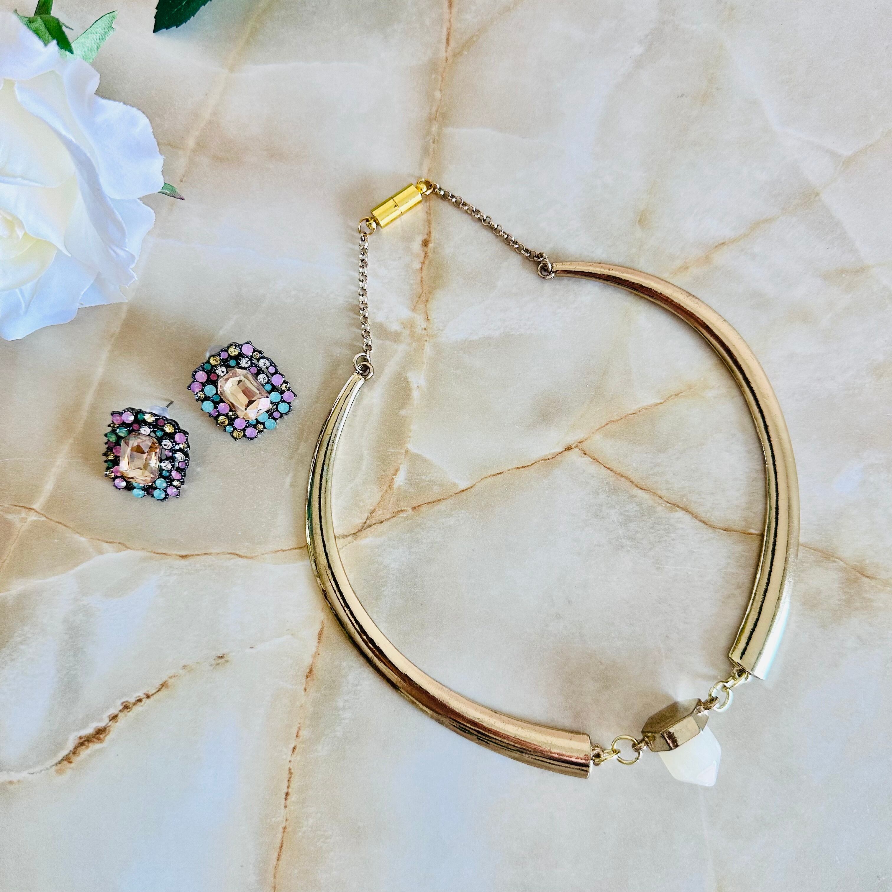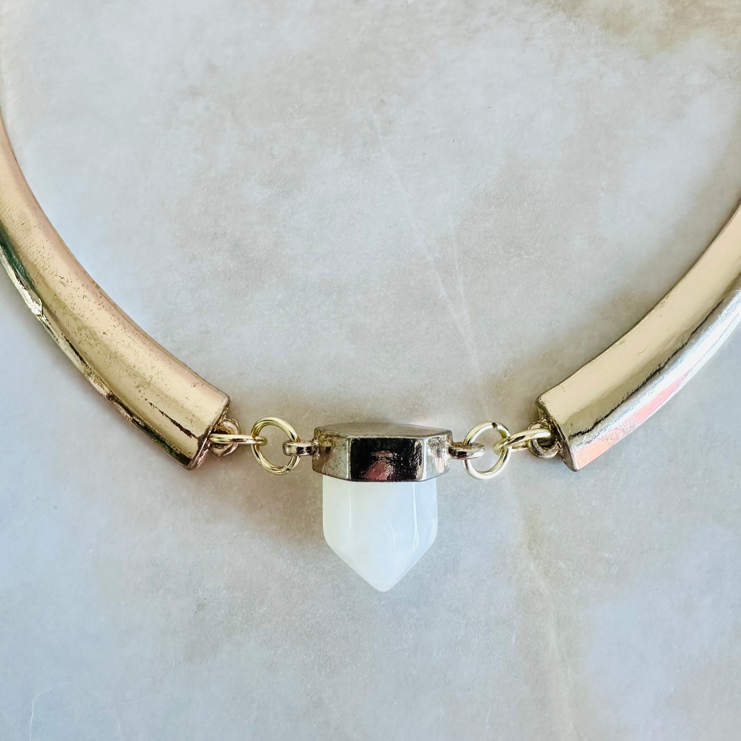 クリーミーホワイト系カラー✖️アンティークゴールドカラーのチョーカーネックレスです。