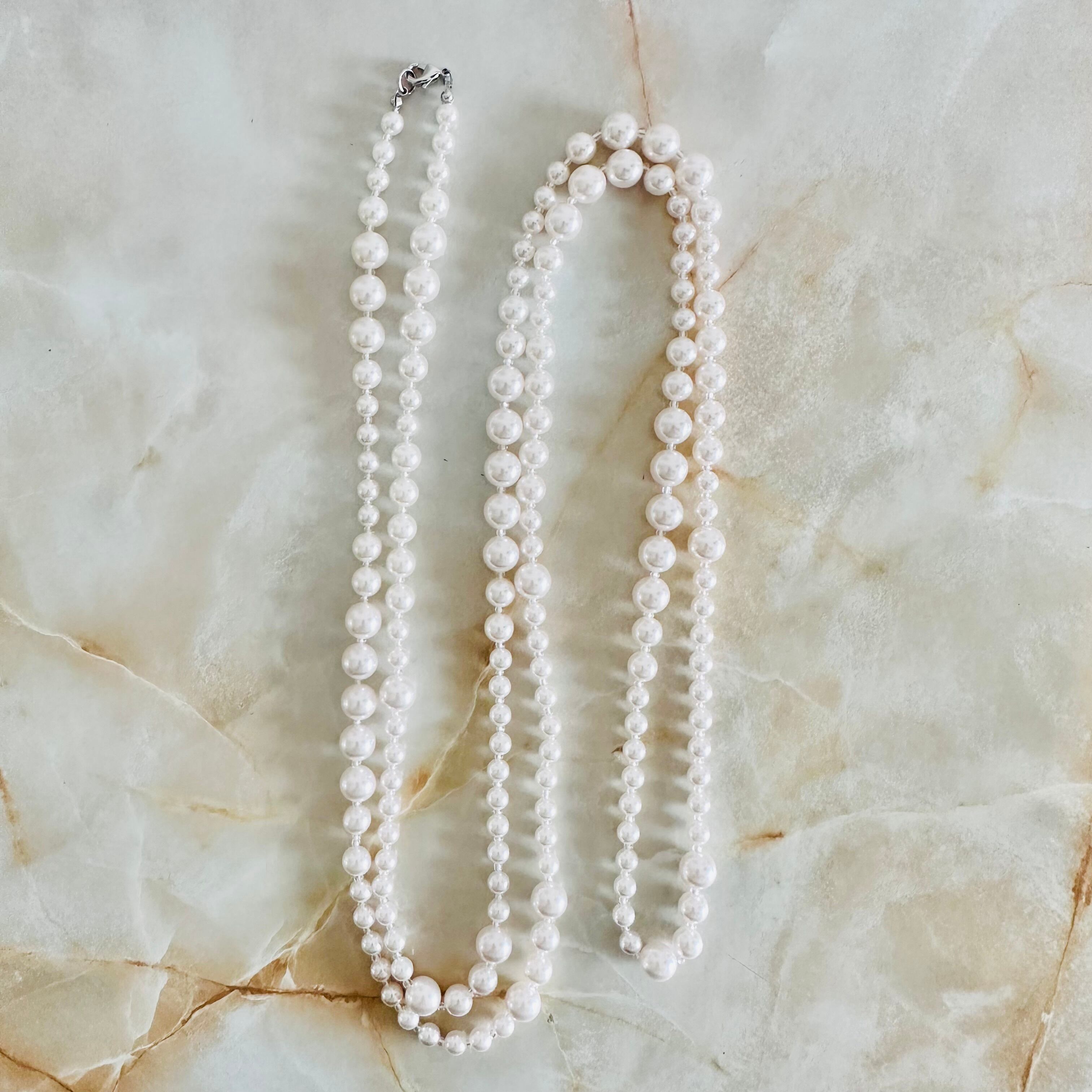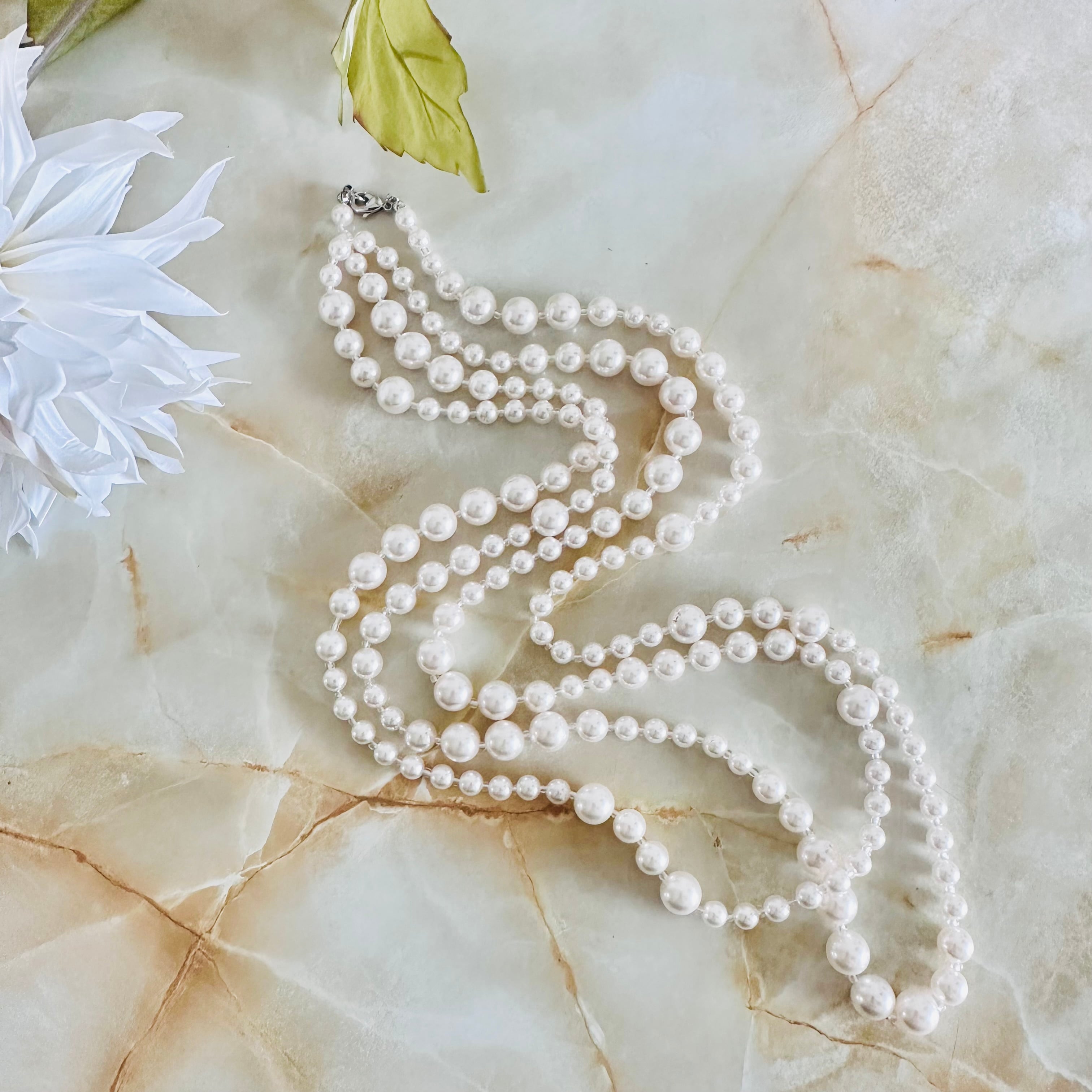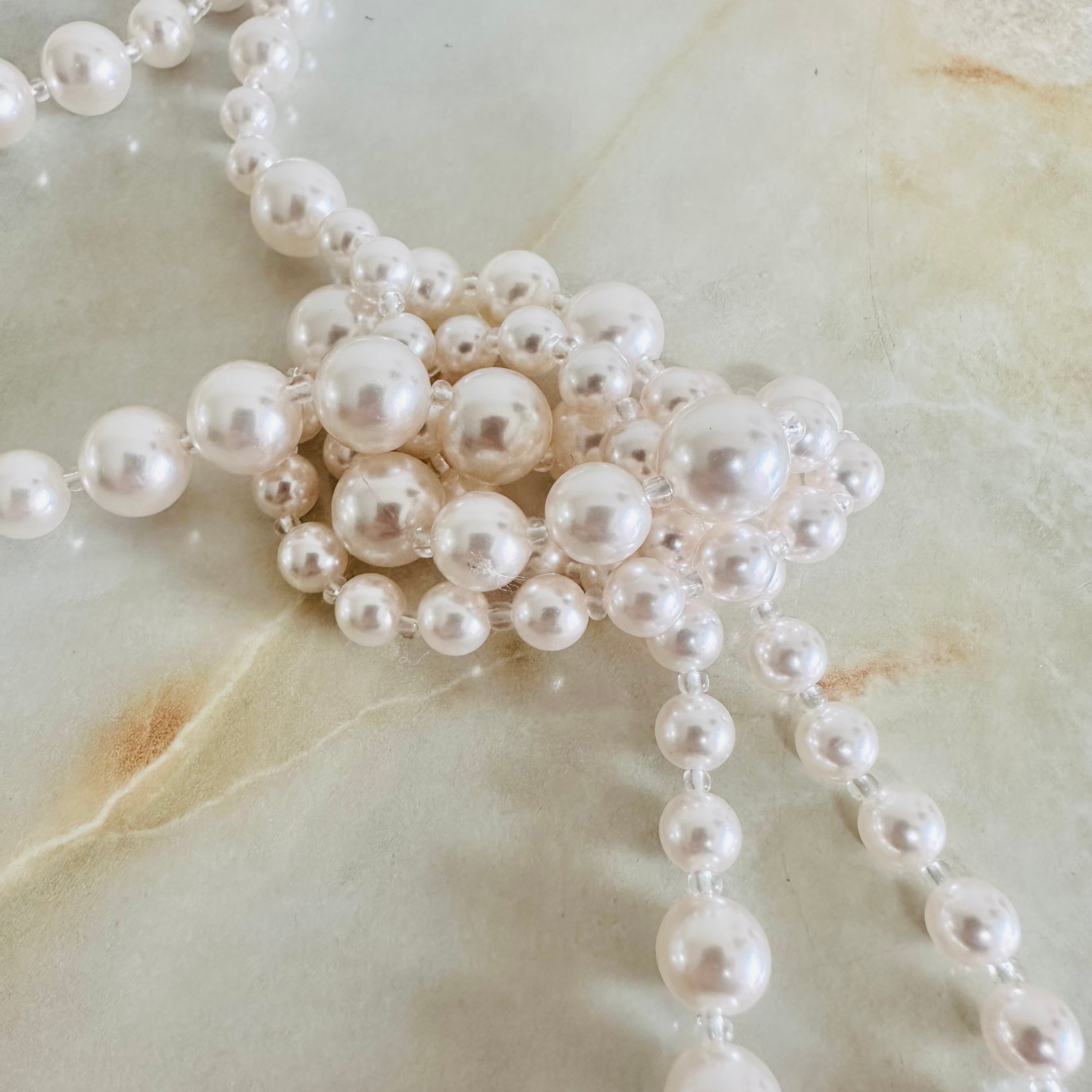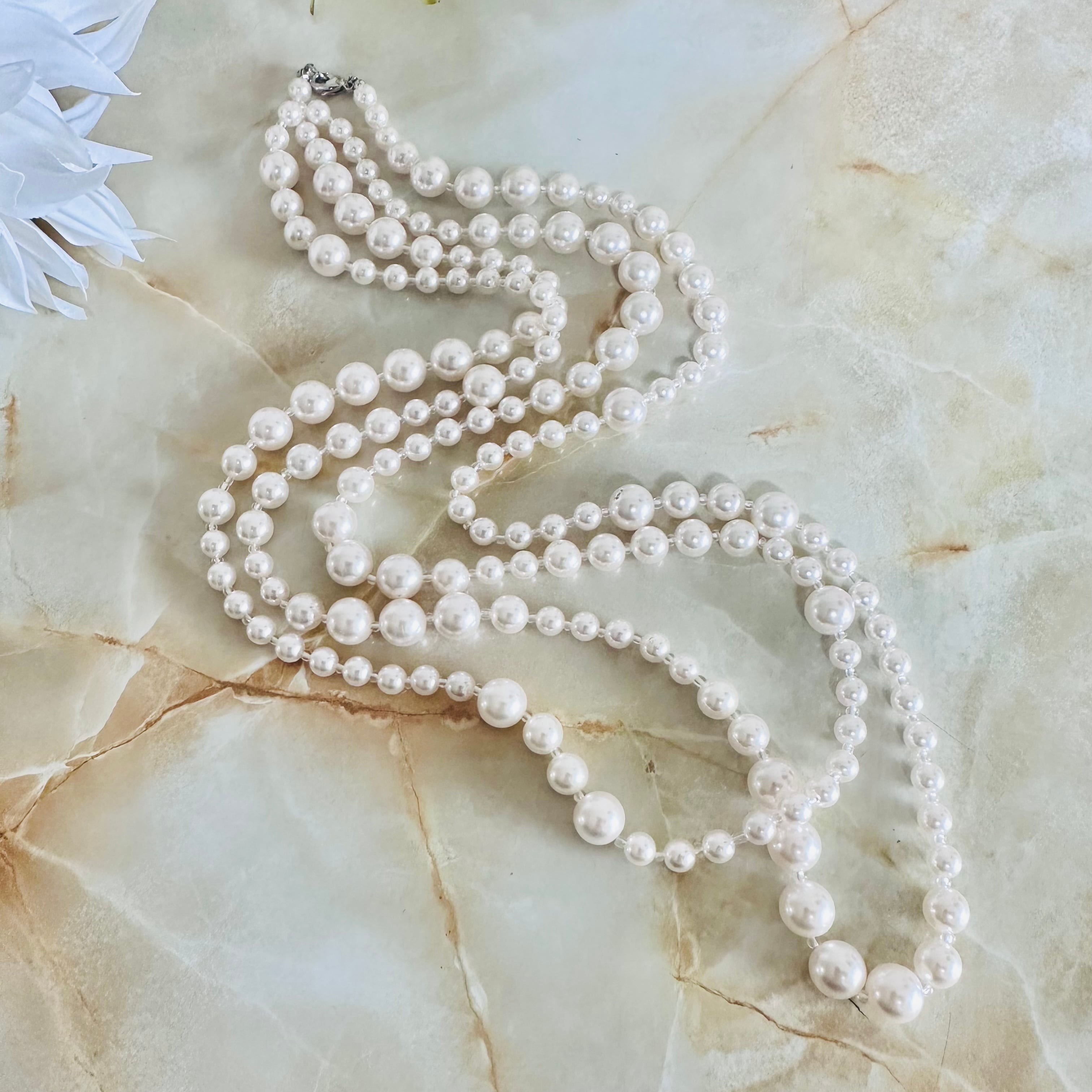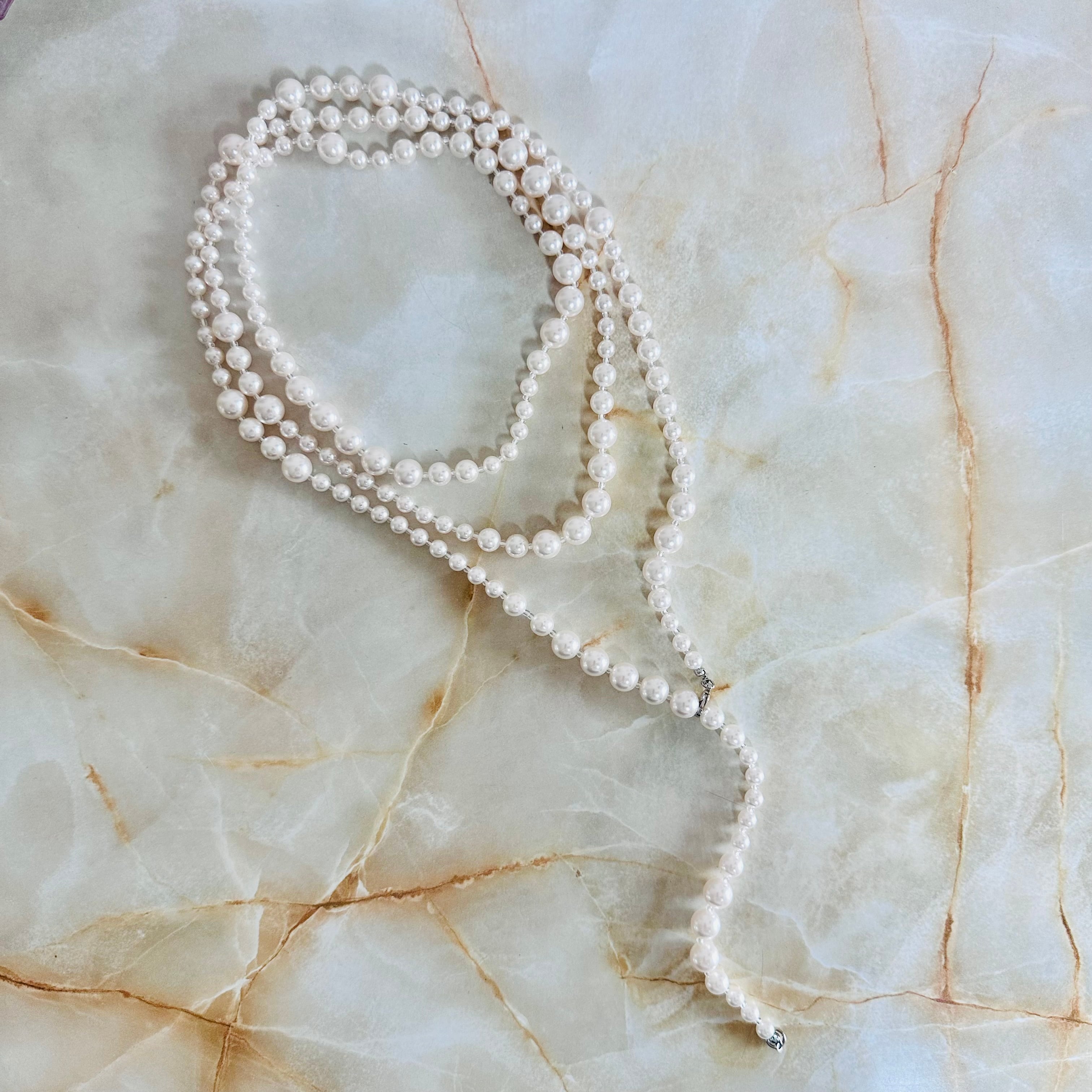 ややピンクがかった大小の大きさのパールとクリアなビーズを連ねて変化をつけたデザインです。