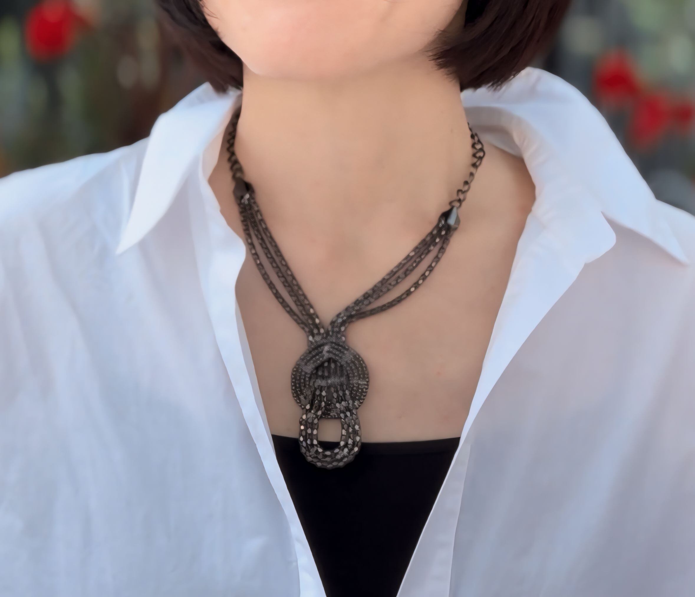 アンティークブラックシルバーカラーのネックレスです。