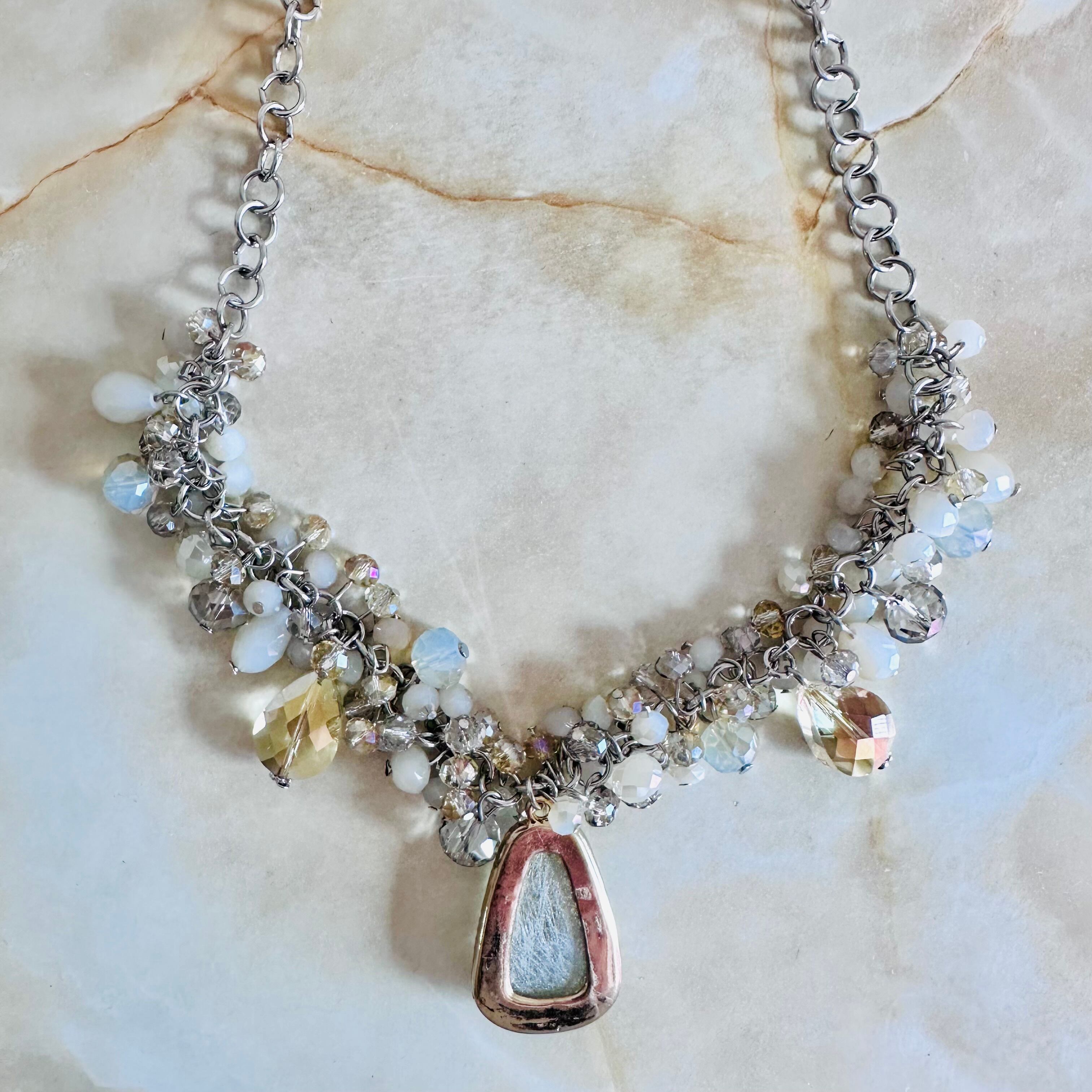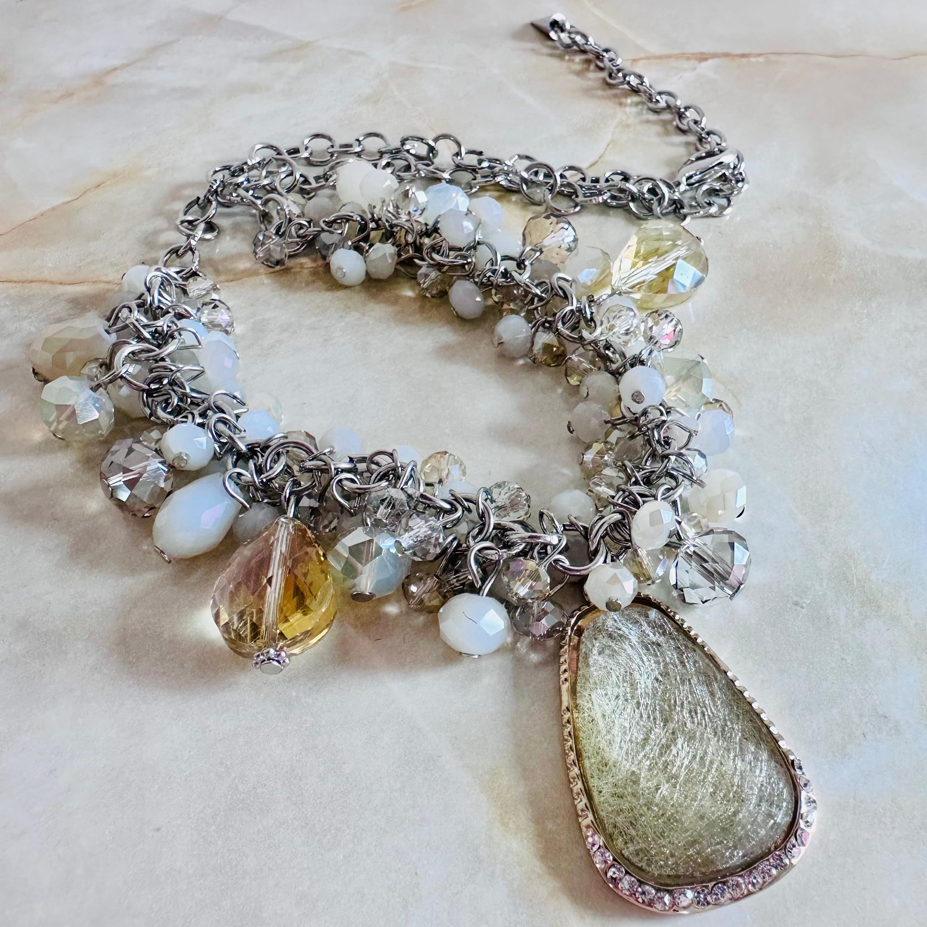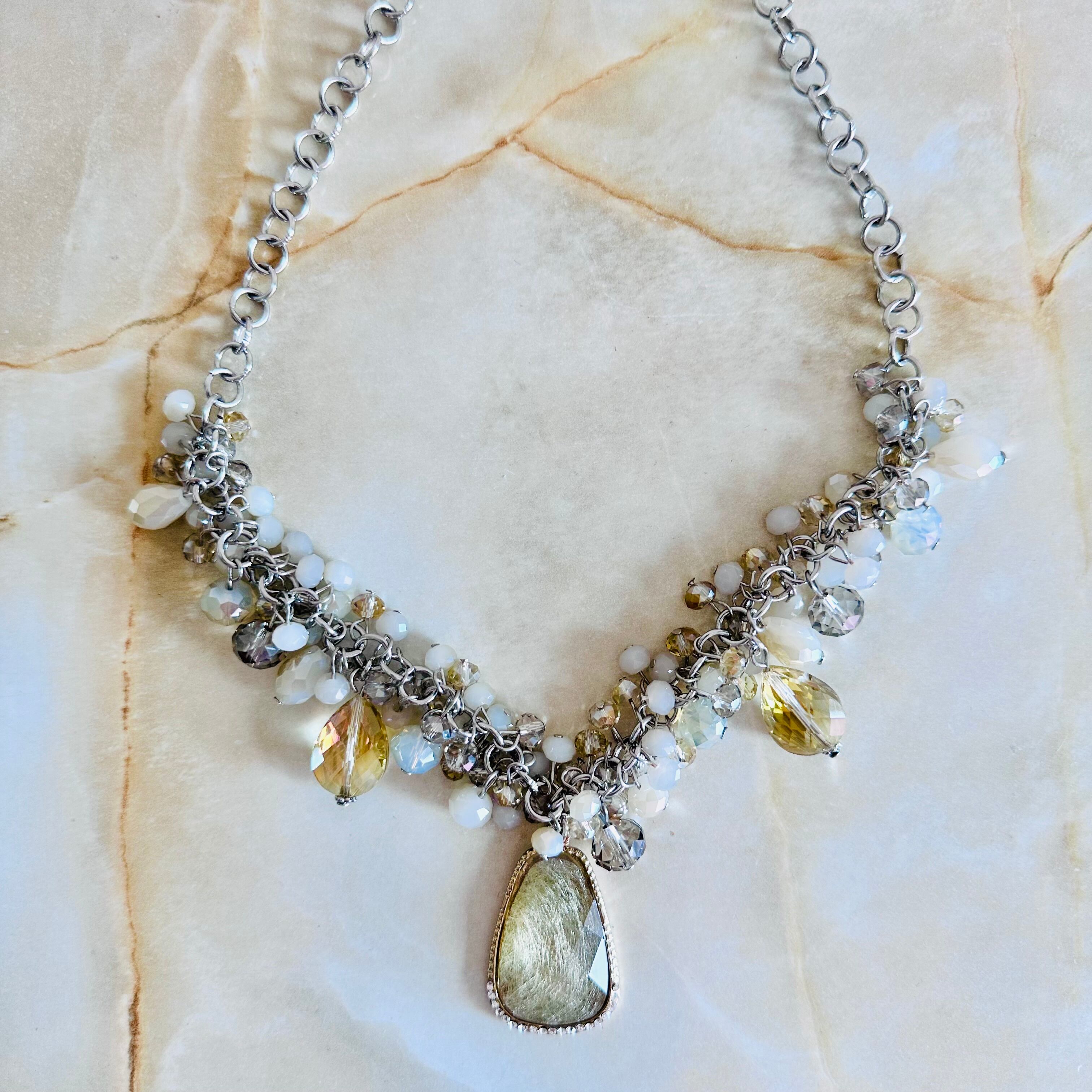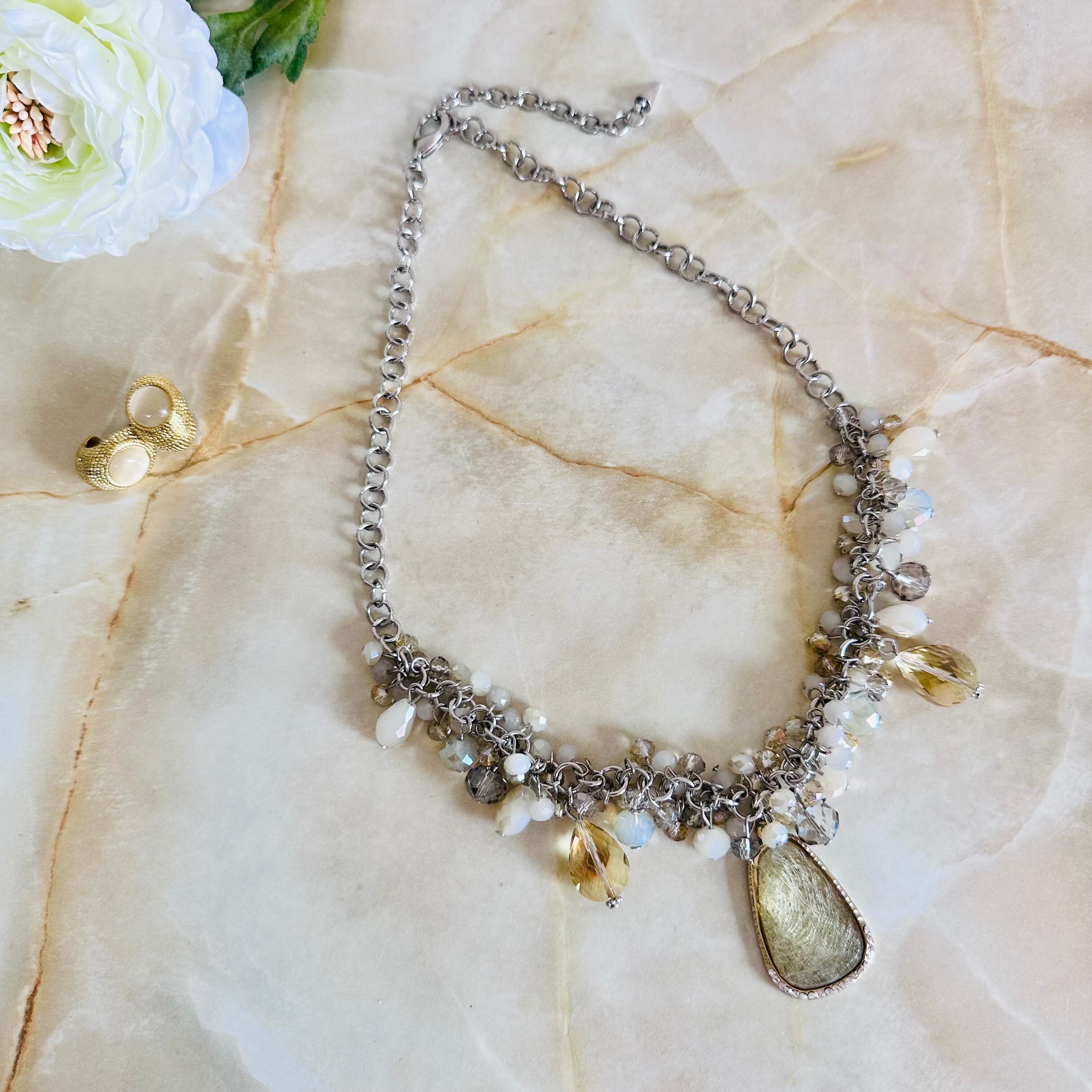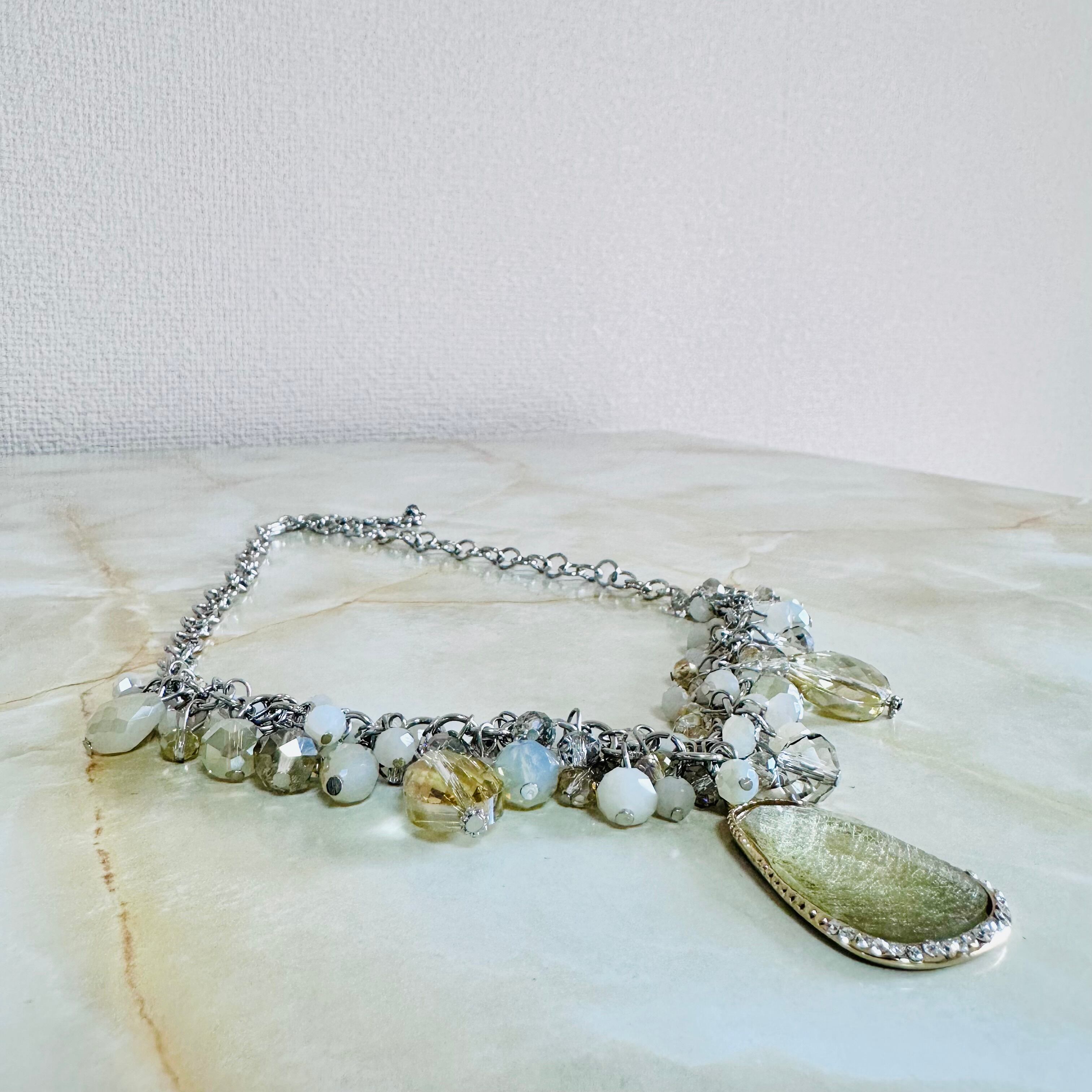 シルバーカラーのチェーンとの組み合わせに清涼感があり涼しげな印象を与えてくれます☆