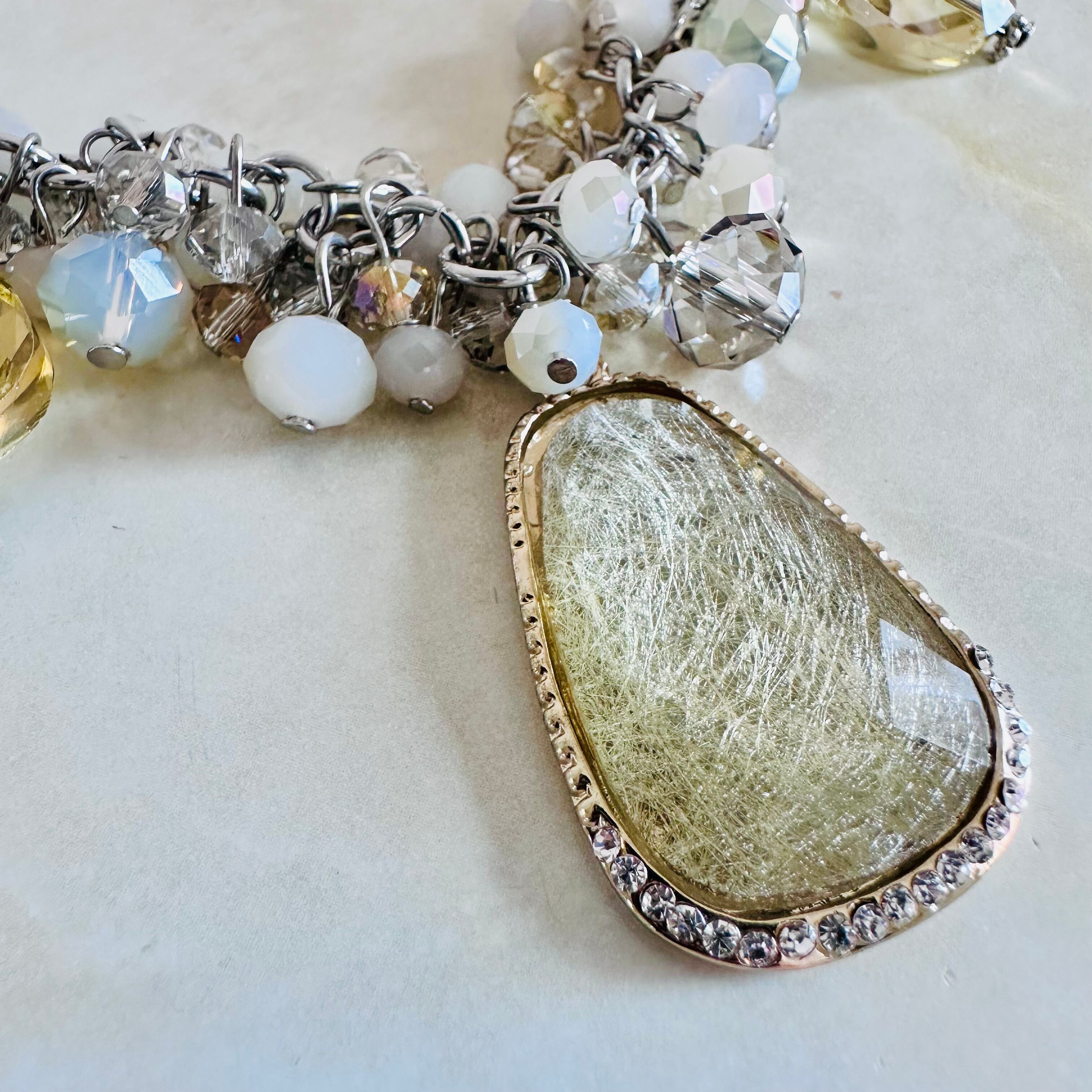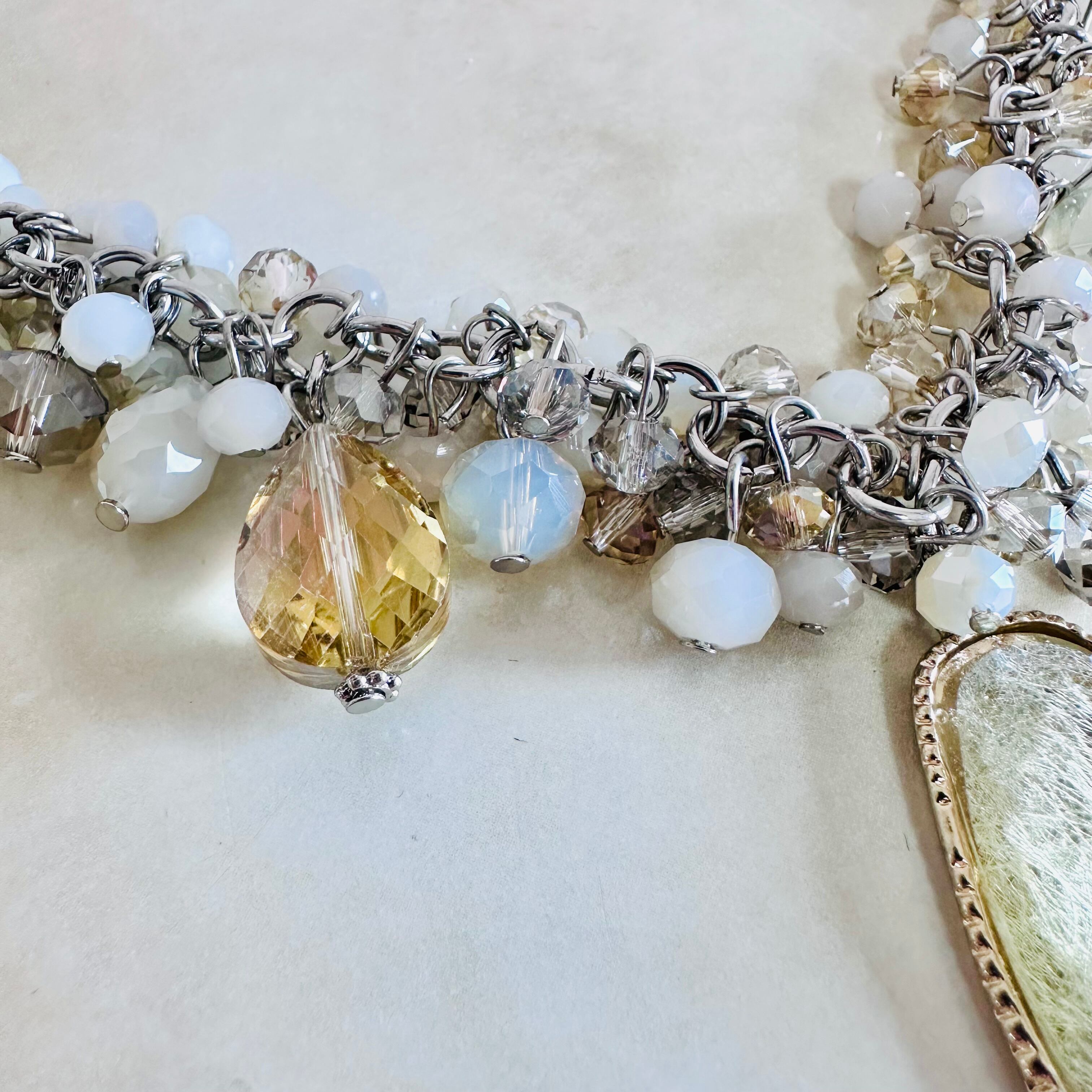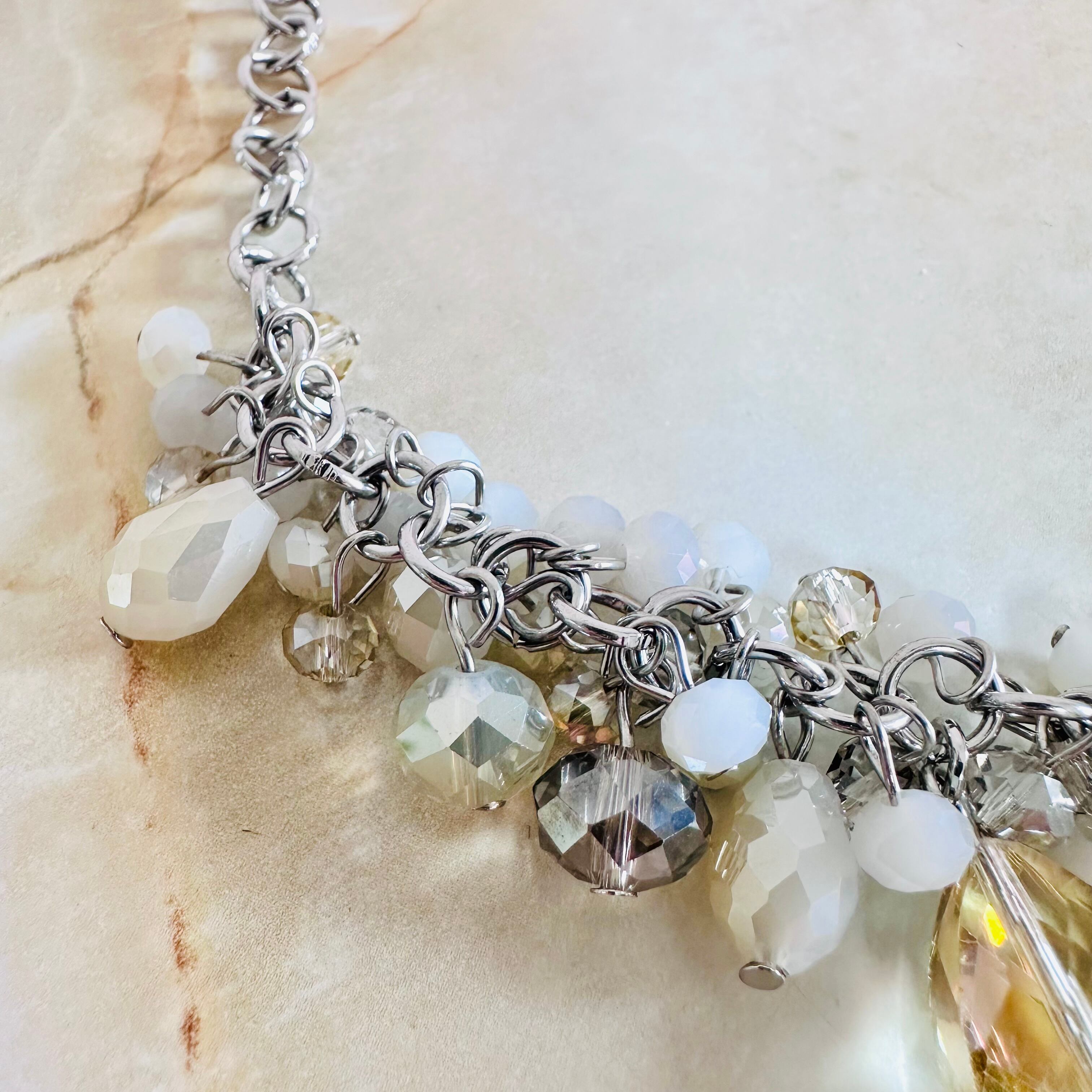 上品なカラーのクリスタルビーズを使用しトップにはシャンパンゴールドのアクリルモチーフをプラスしたデザインです。