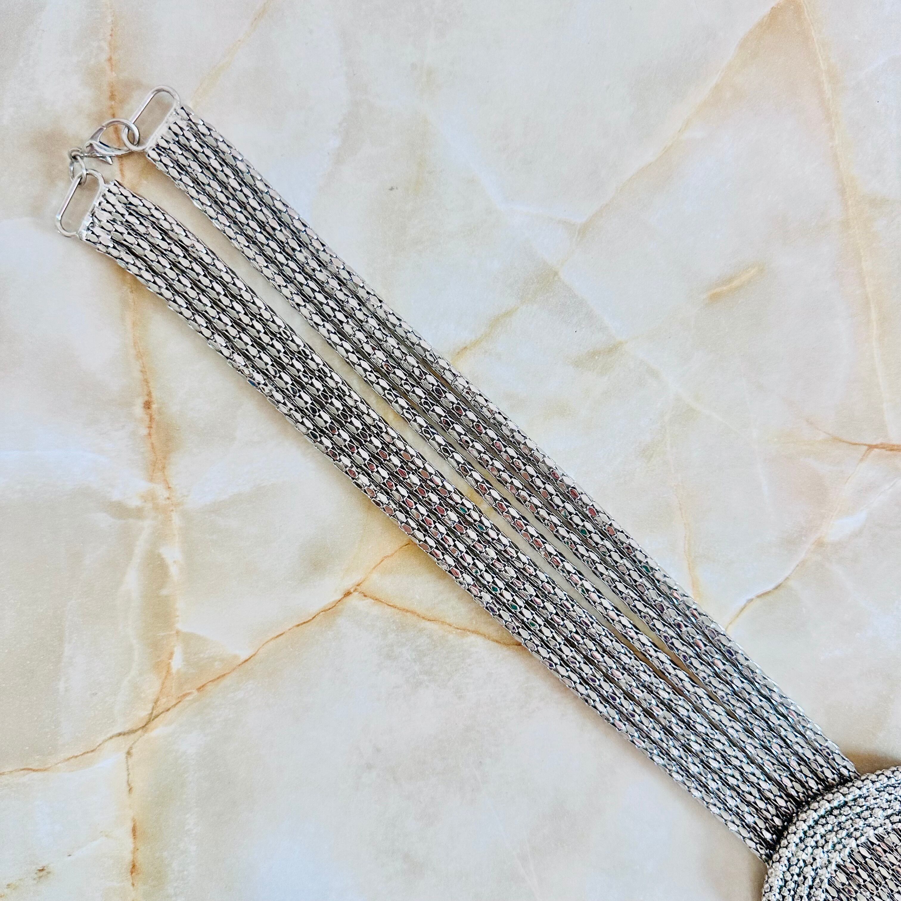 輝きのあるシルバーのチェーンを使用し、ブローチとしても使える2wayデザインになっております。