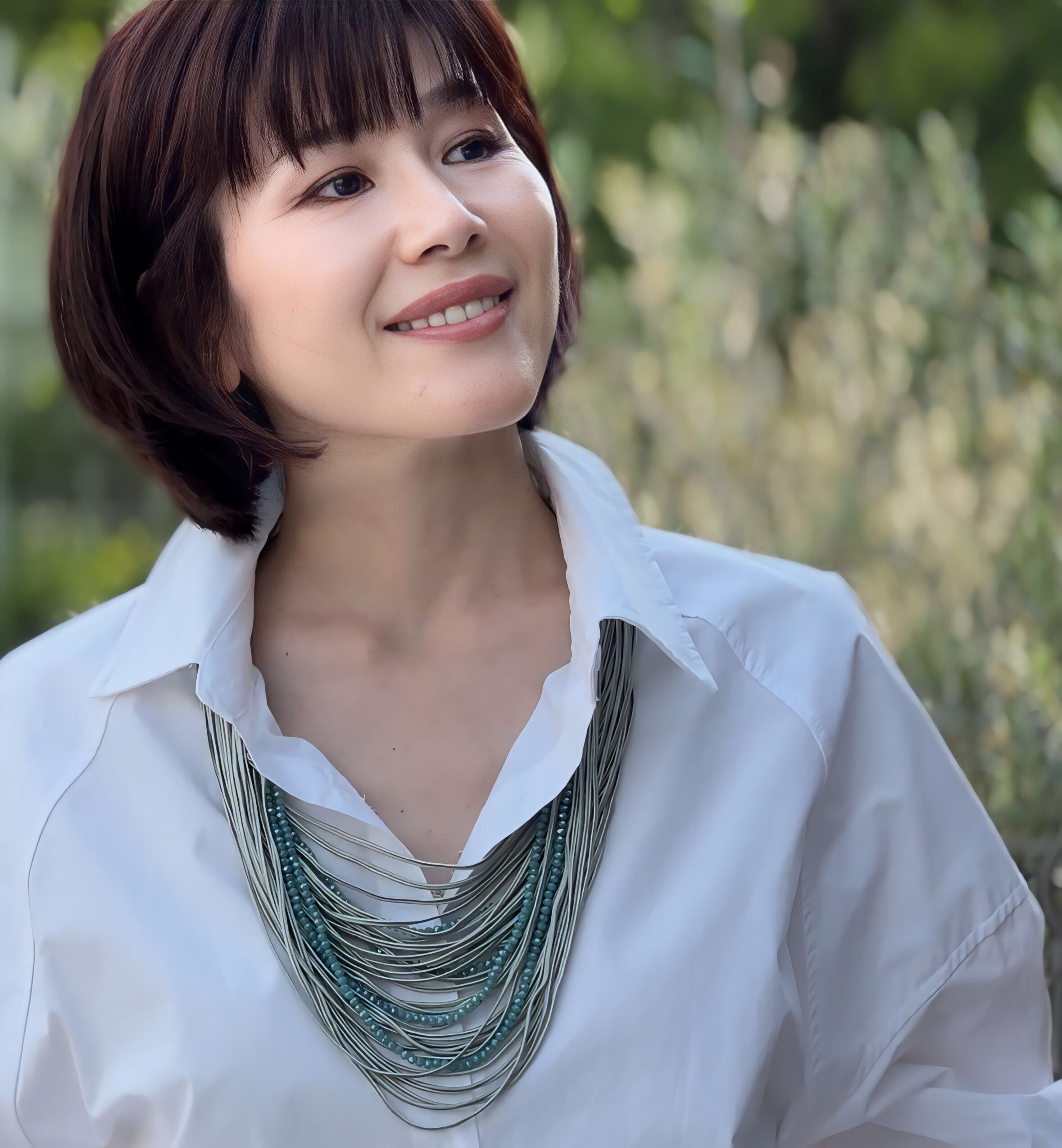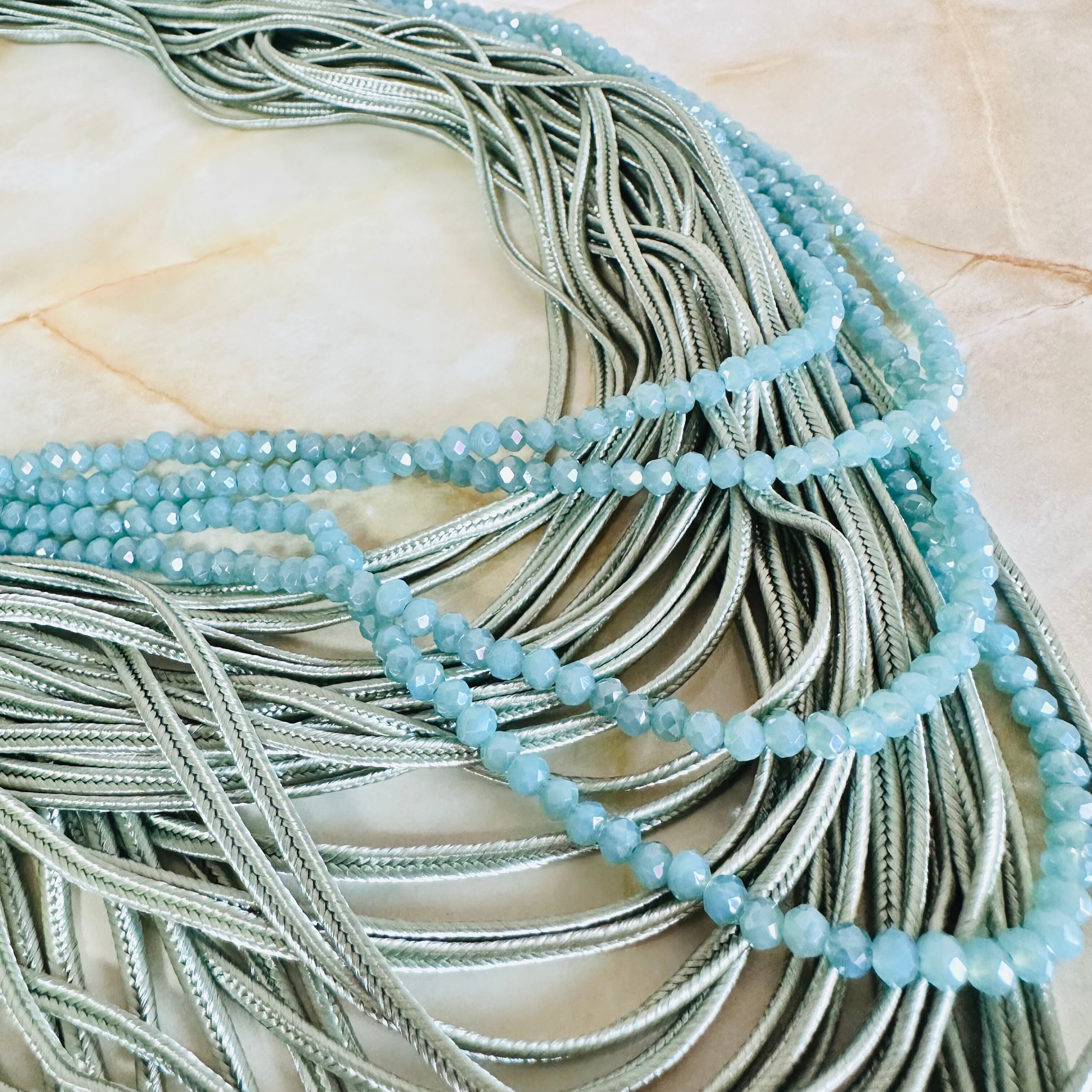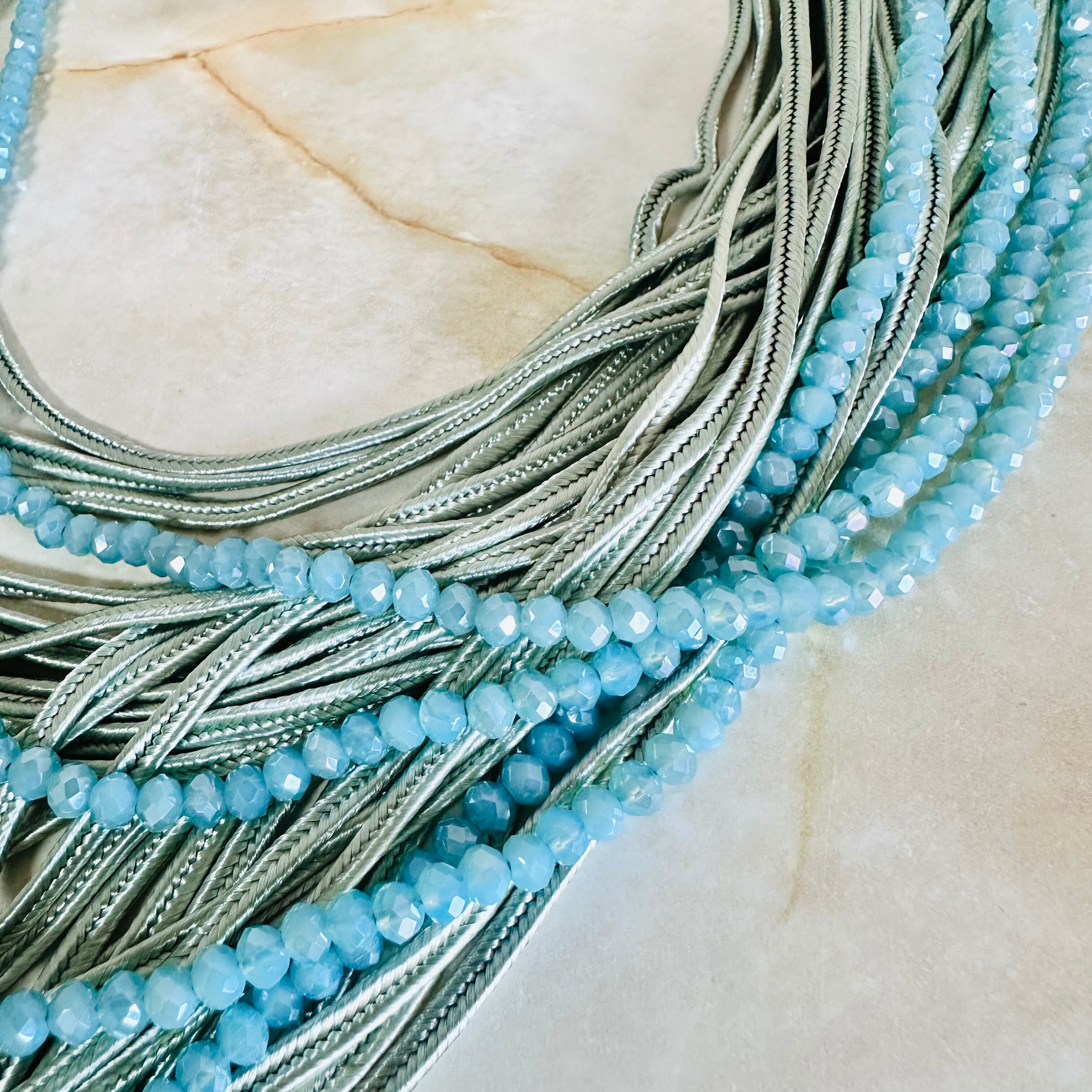 クリスタルビーズと光沢感のあるコードを幾重にも重ね、涼しげなデザインに仕上げました。