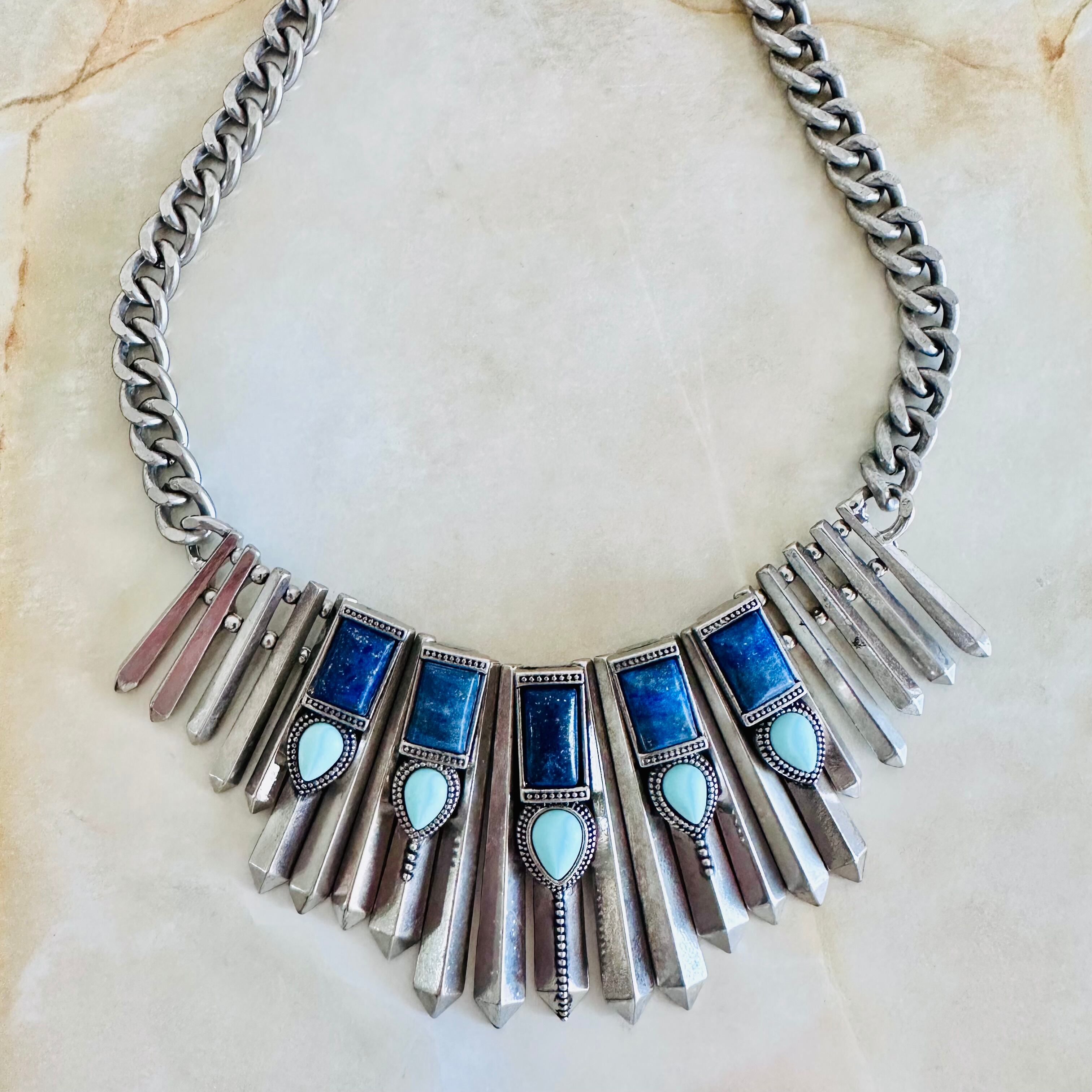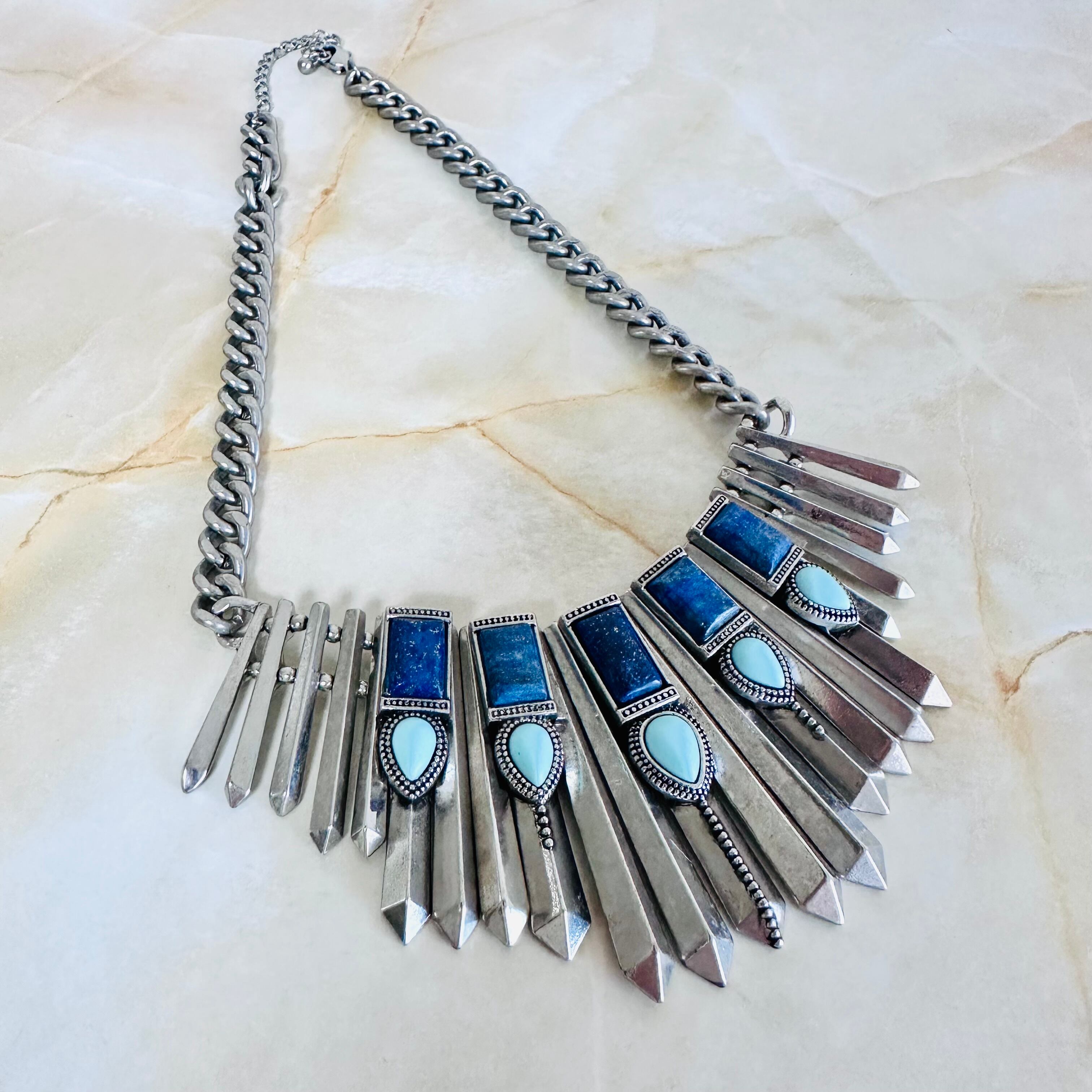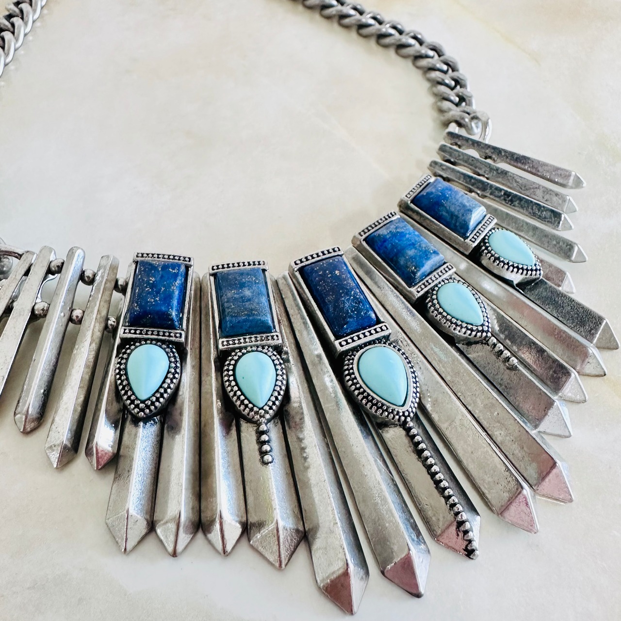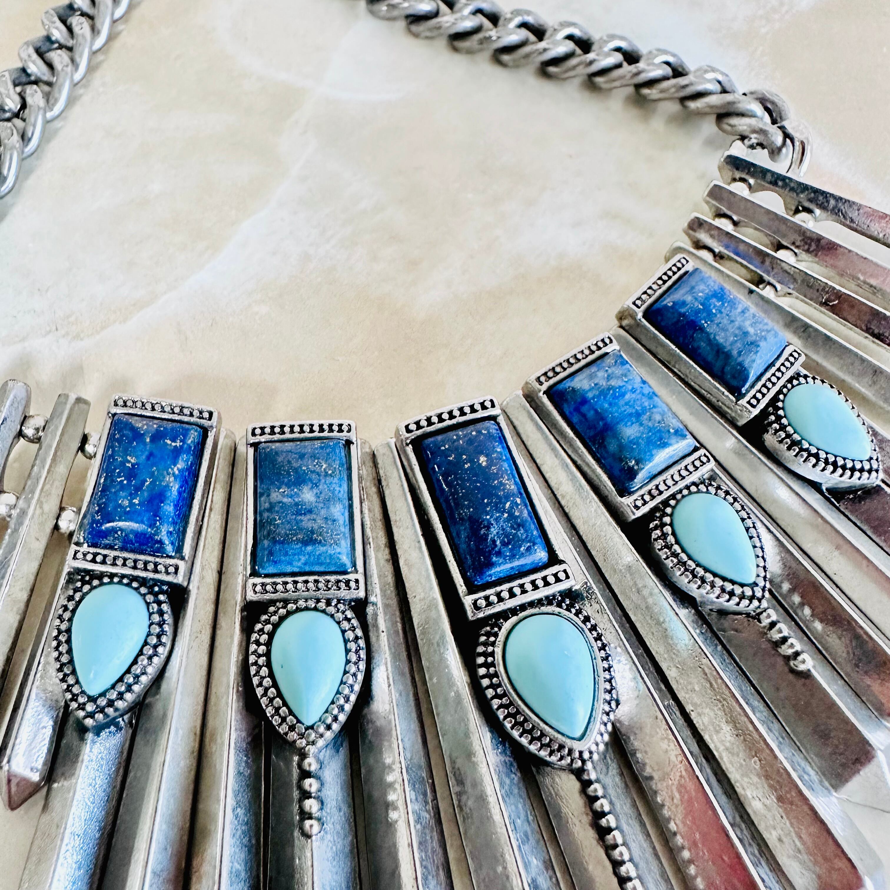 ブルー系✖️ヴィンテージシルバーのネックレスです。