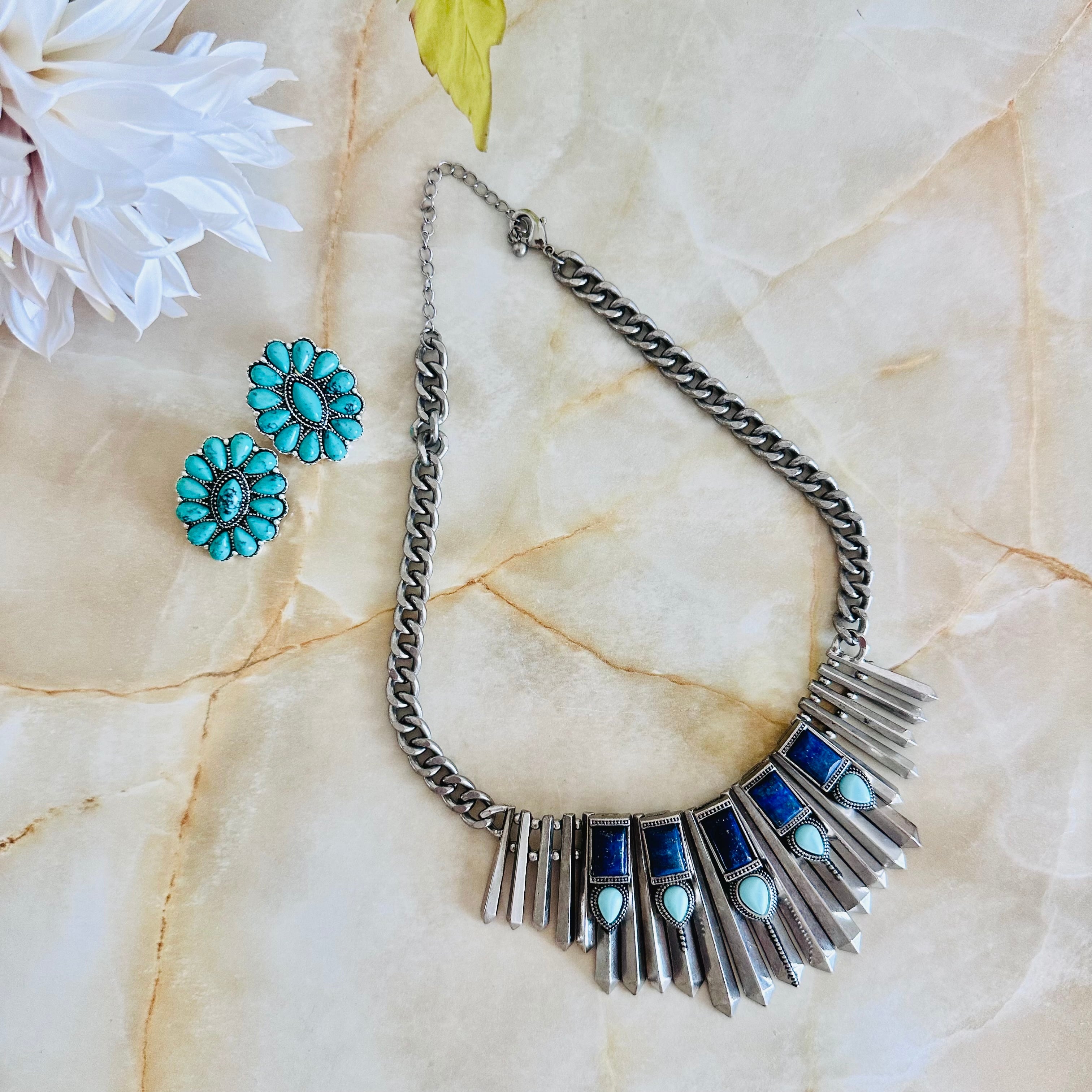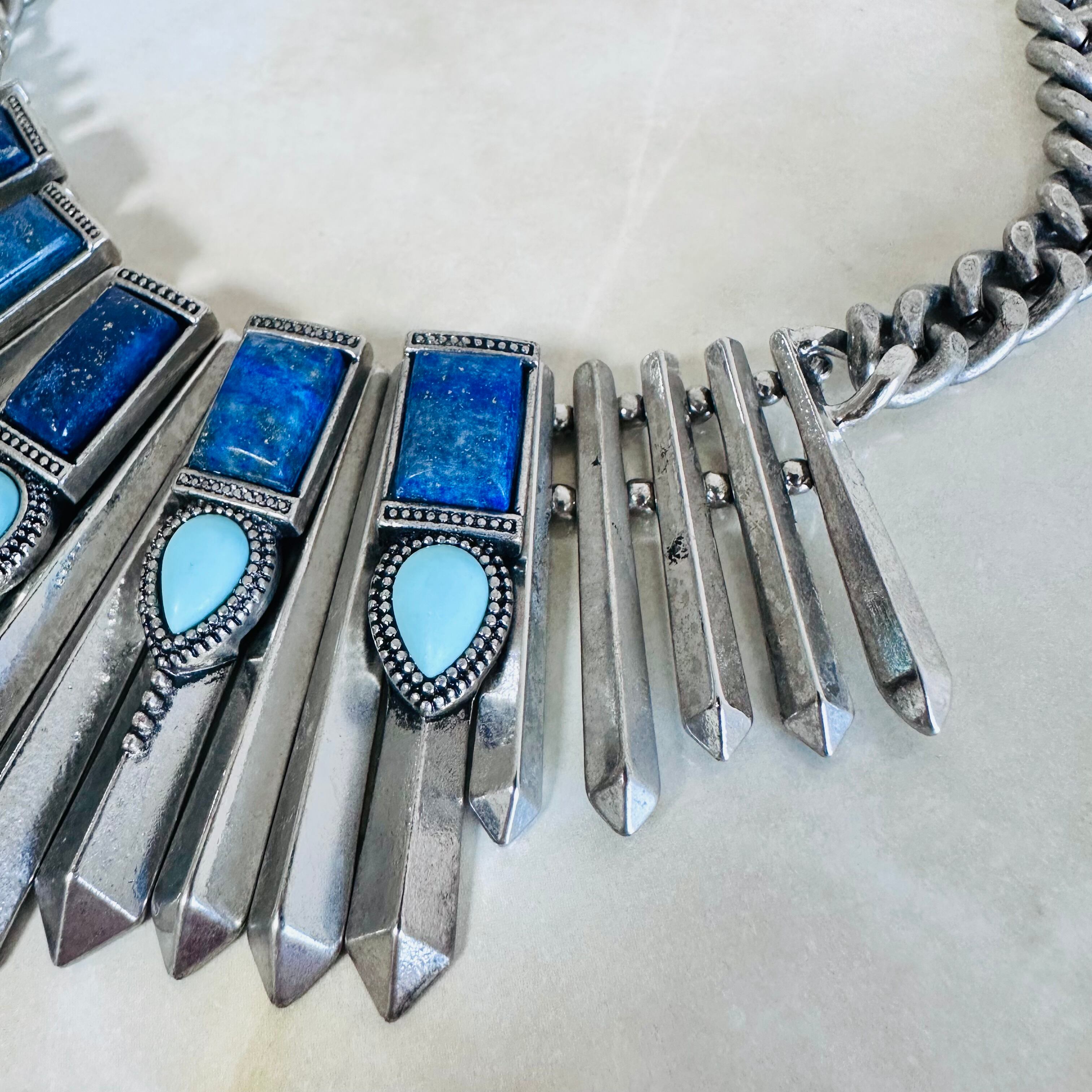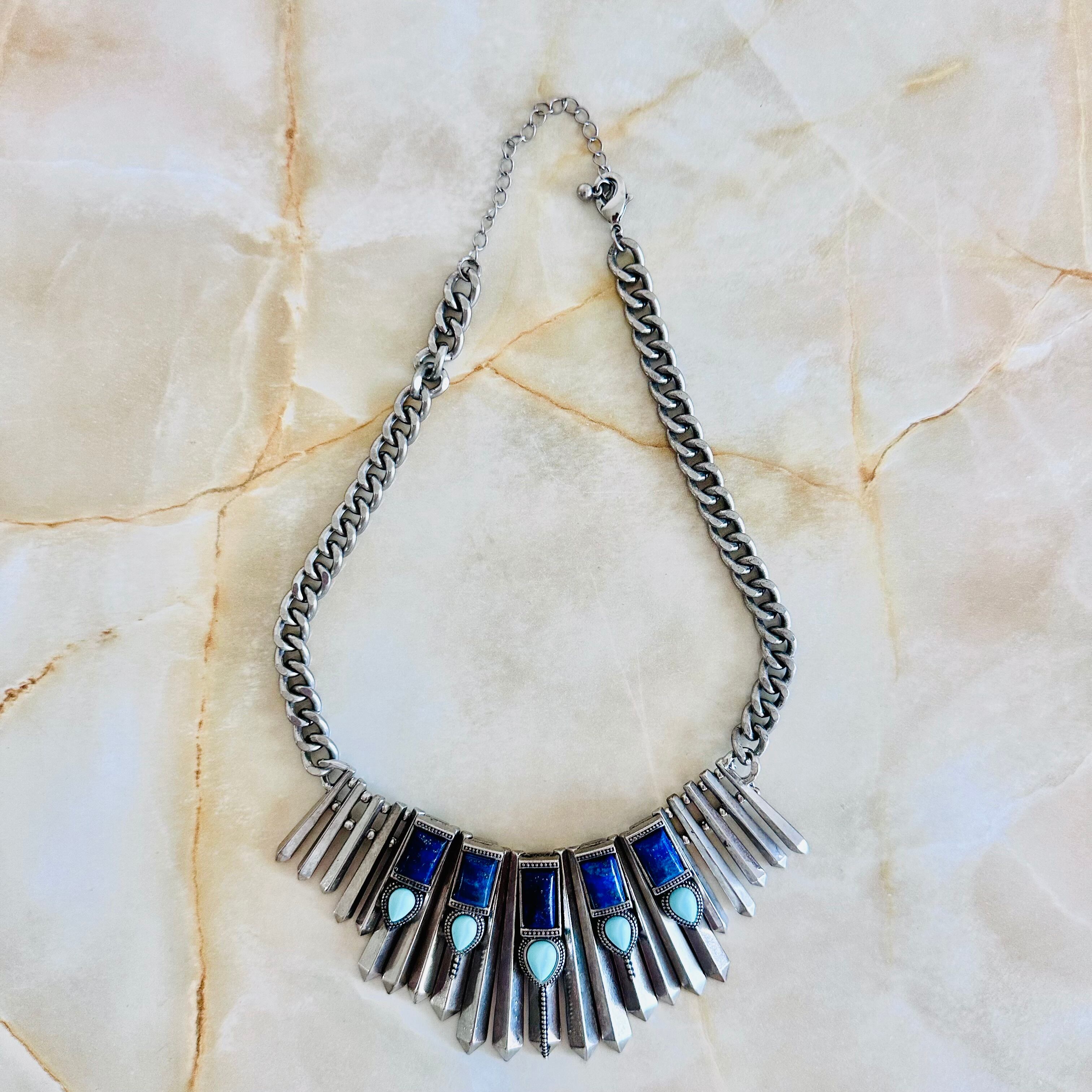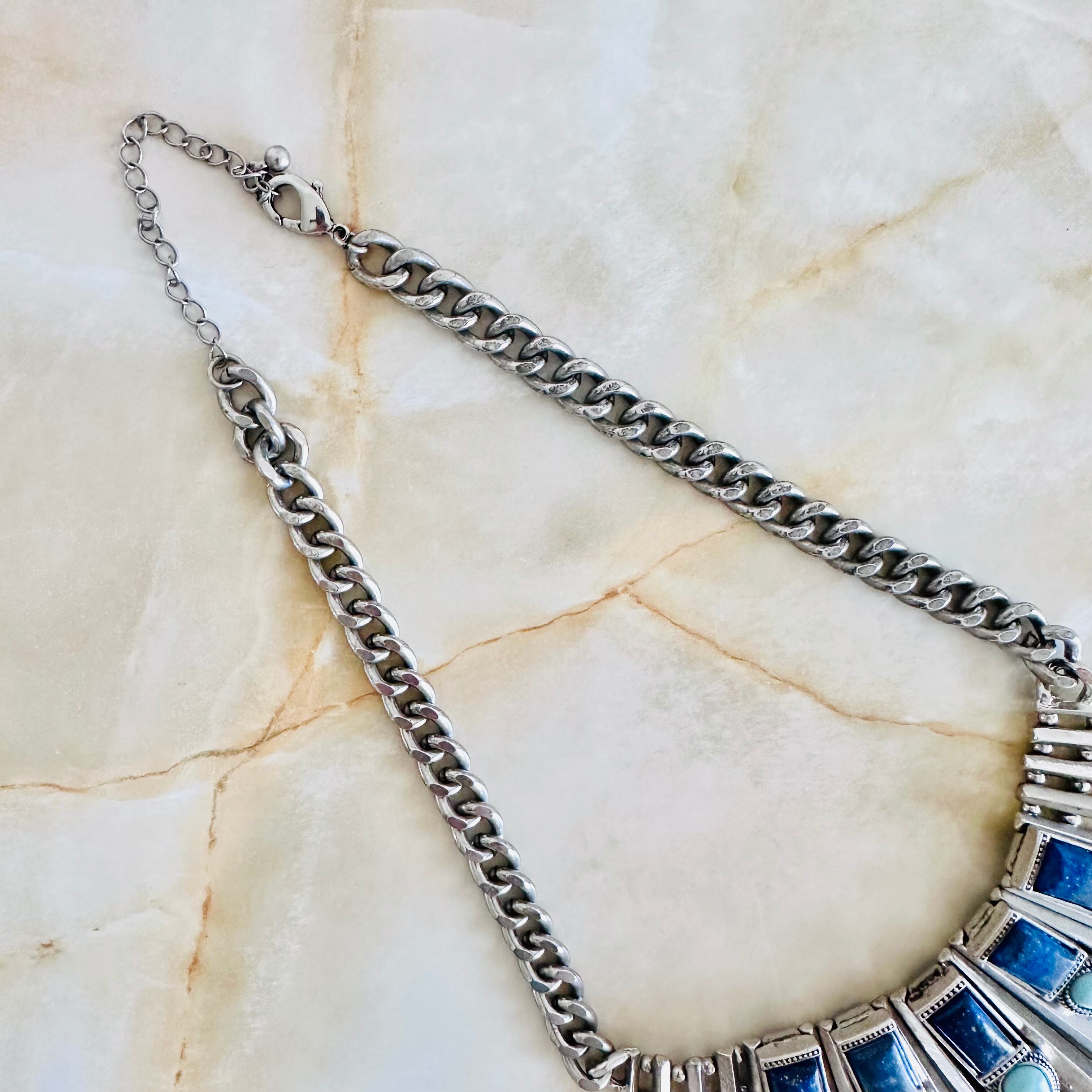 ブルー系✖️ヴィンテージシルバーのネックレスです。