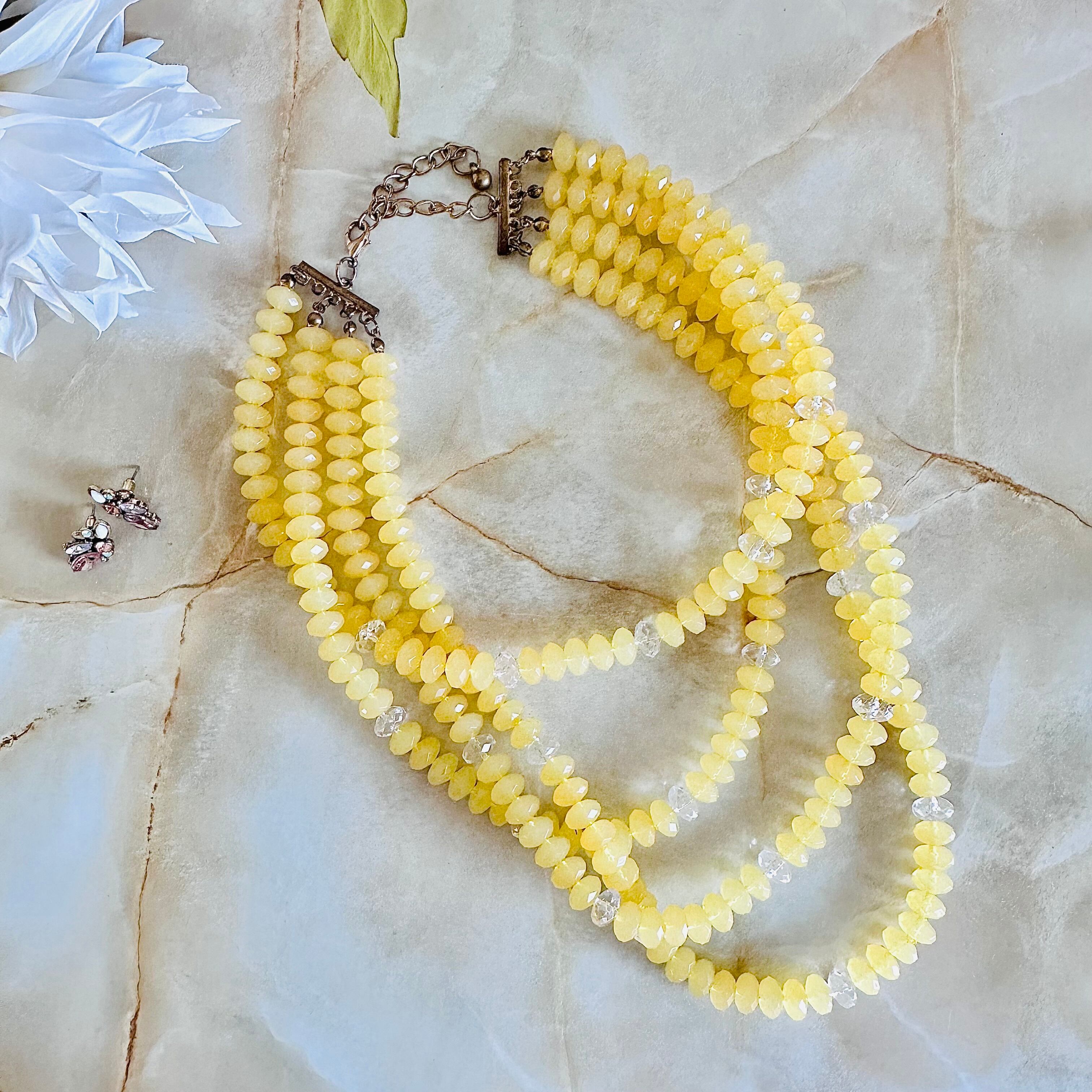 イエロー、クリア✖️アンティークゴールドカラーのネックレスです。