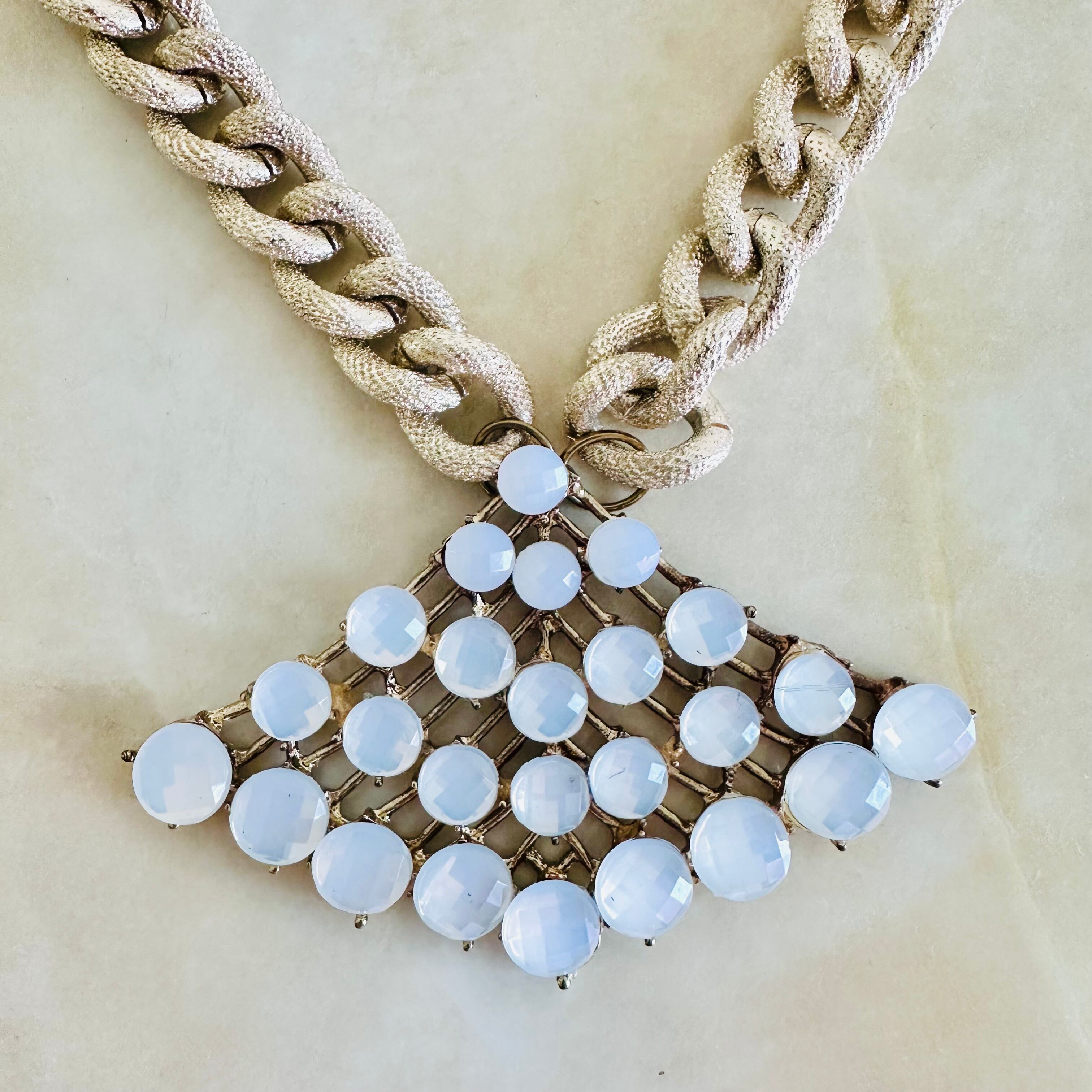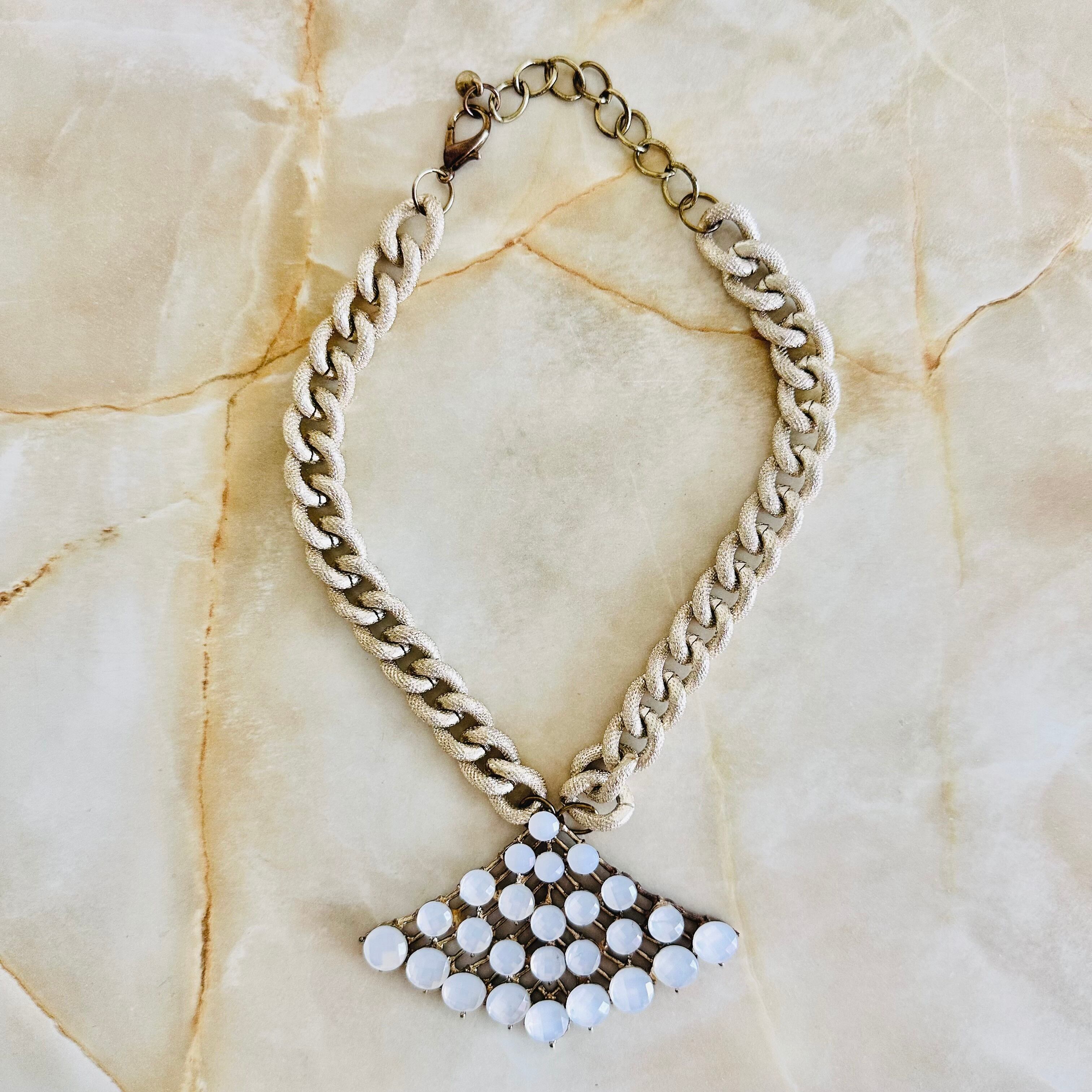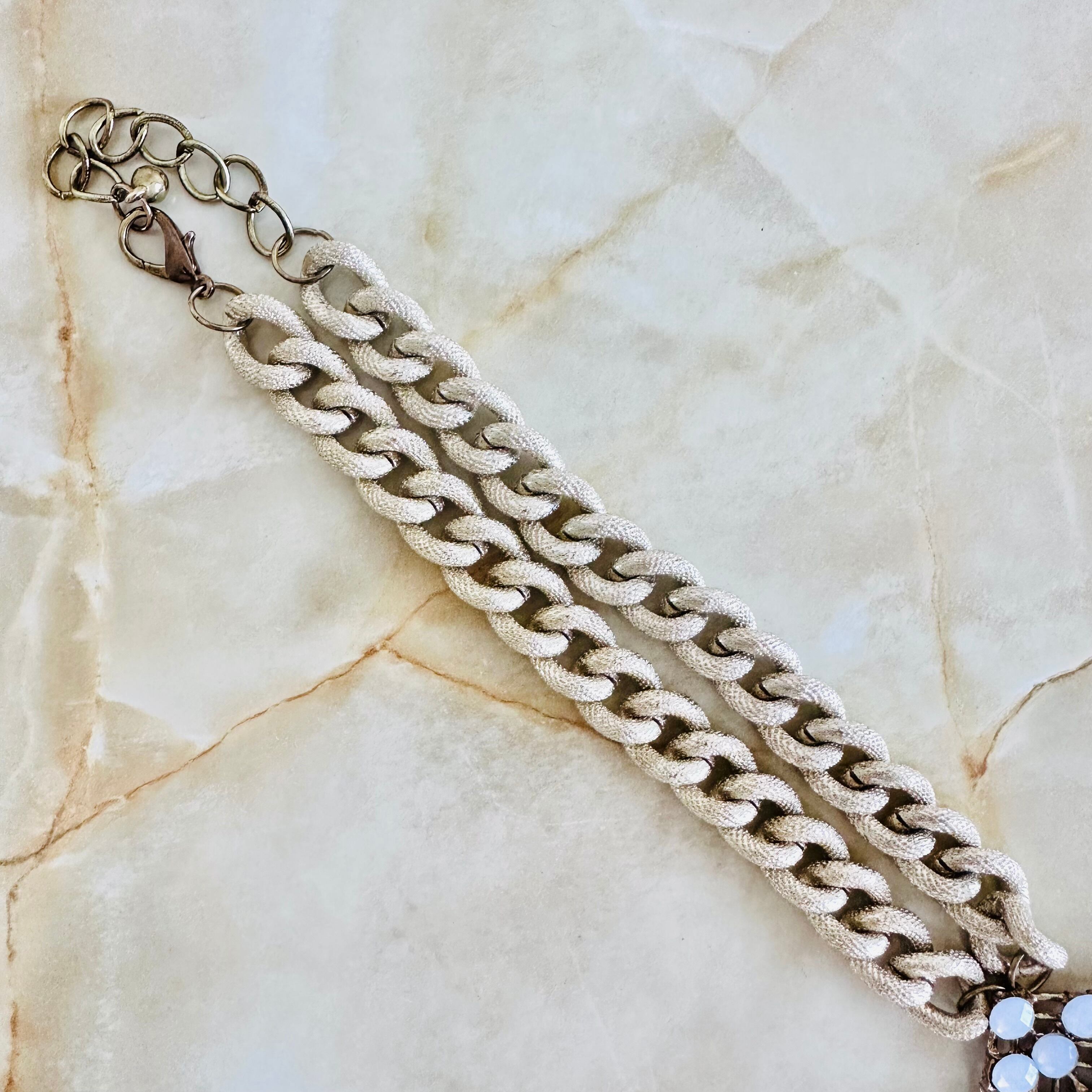 ミルキーなホワイトパーツを使用したおしゃれなモチーフを存在感のあるチャンキーチェーンにプラスしおしゃれな存在感のあるデザインに仕上げました。