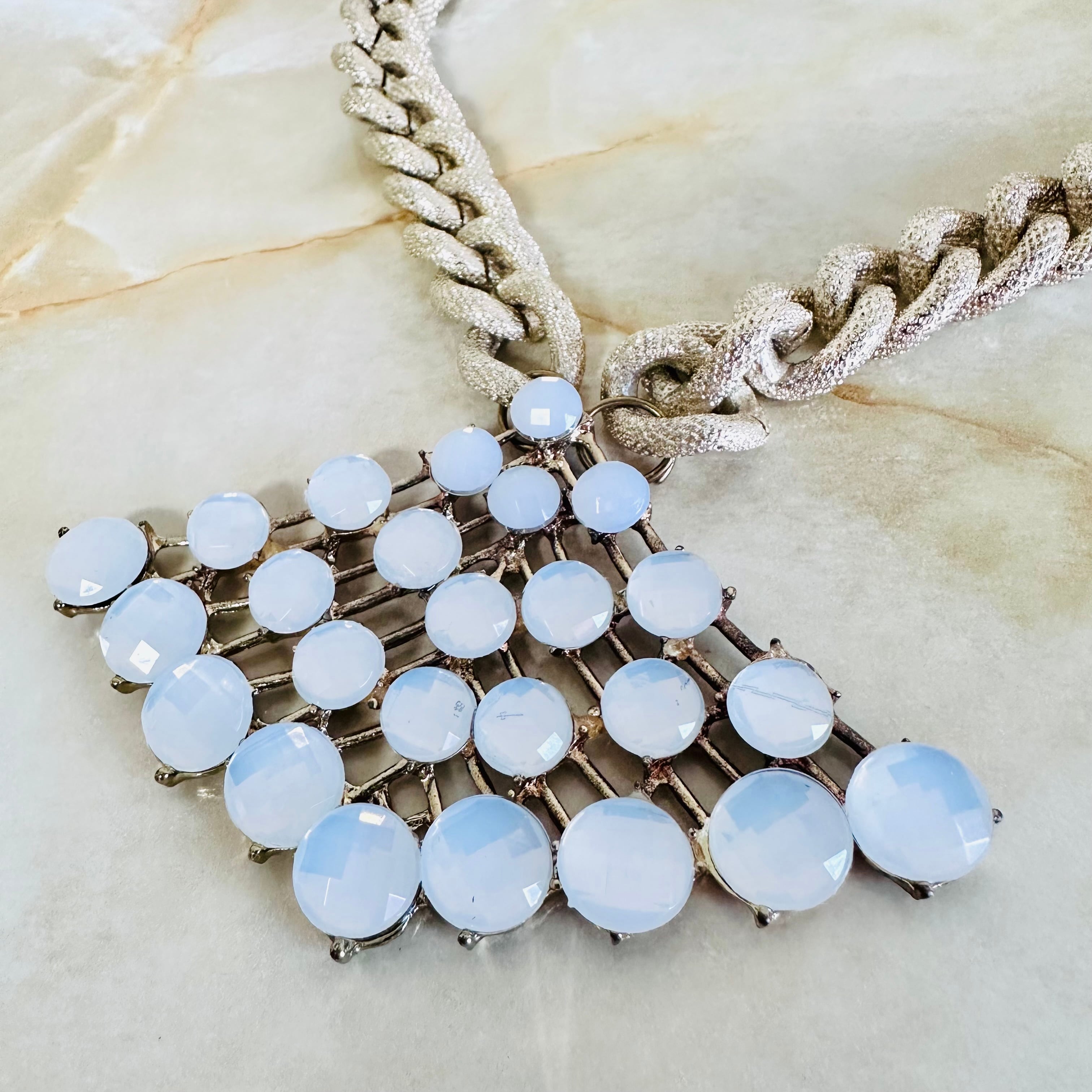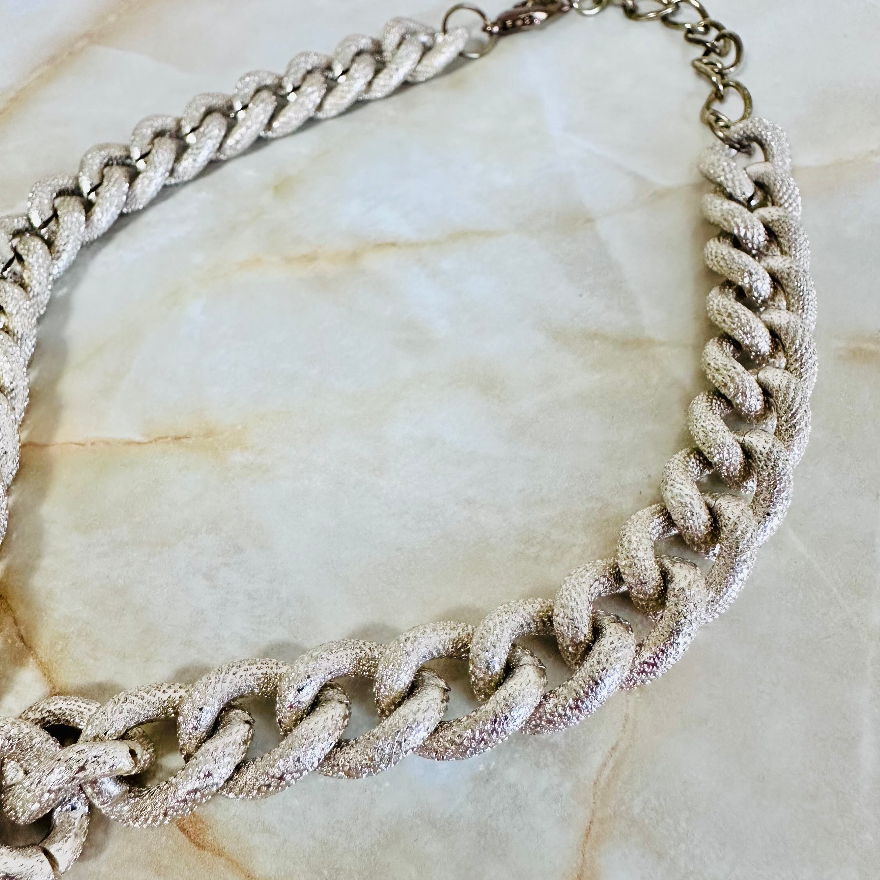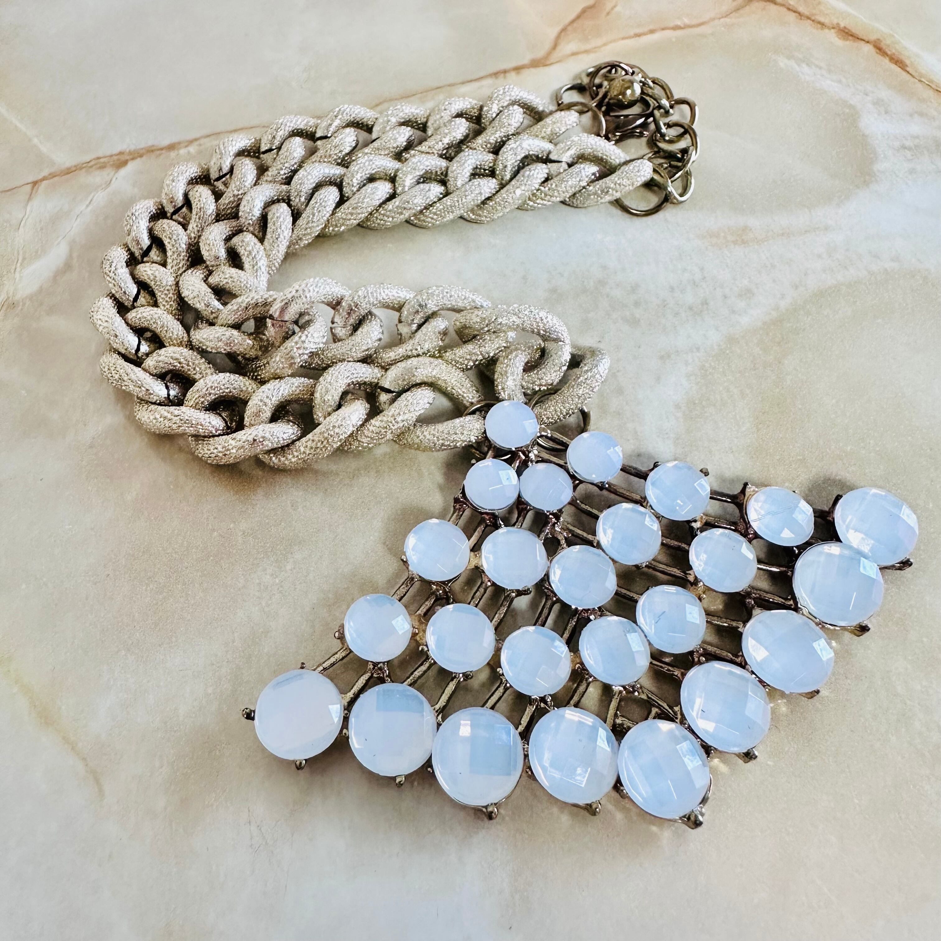 ミルキーなホワイトパーツを使用したおしゃれなモチーフを存在感のあるチャンキーチェーンにプラスしおしゃれな存在感のあるデザインに仕上げました。